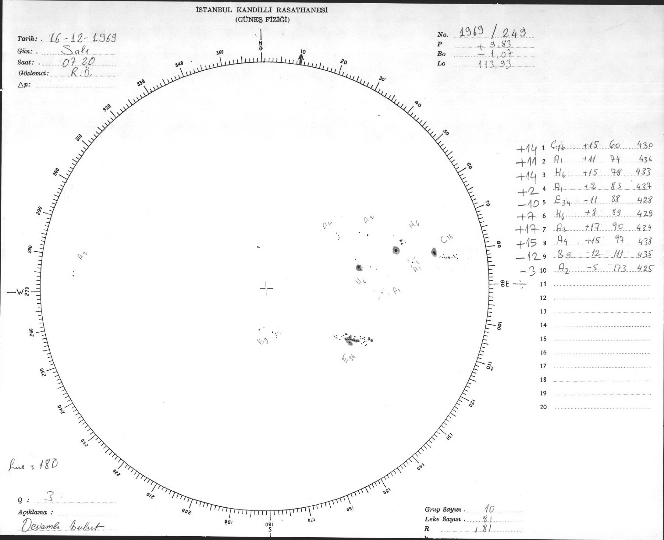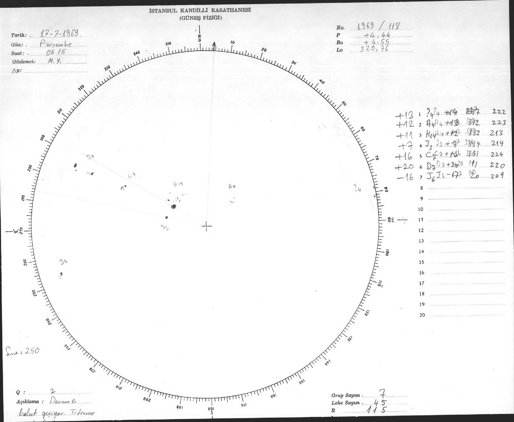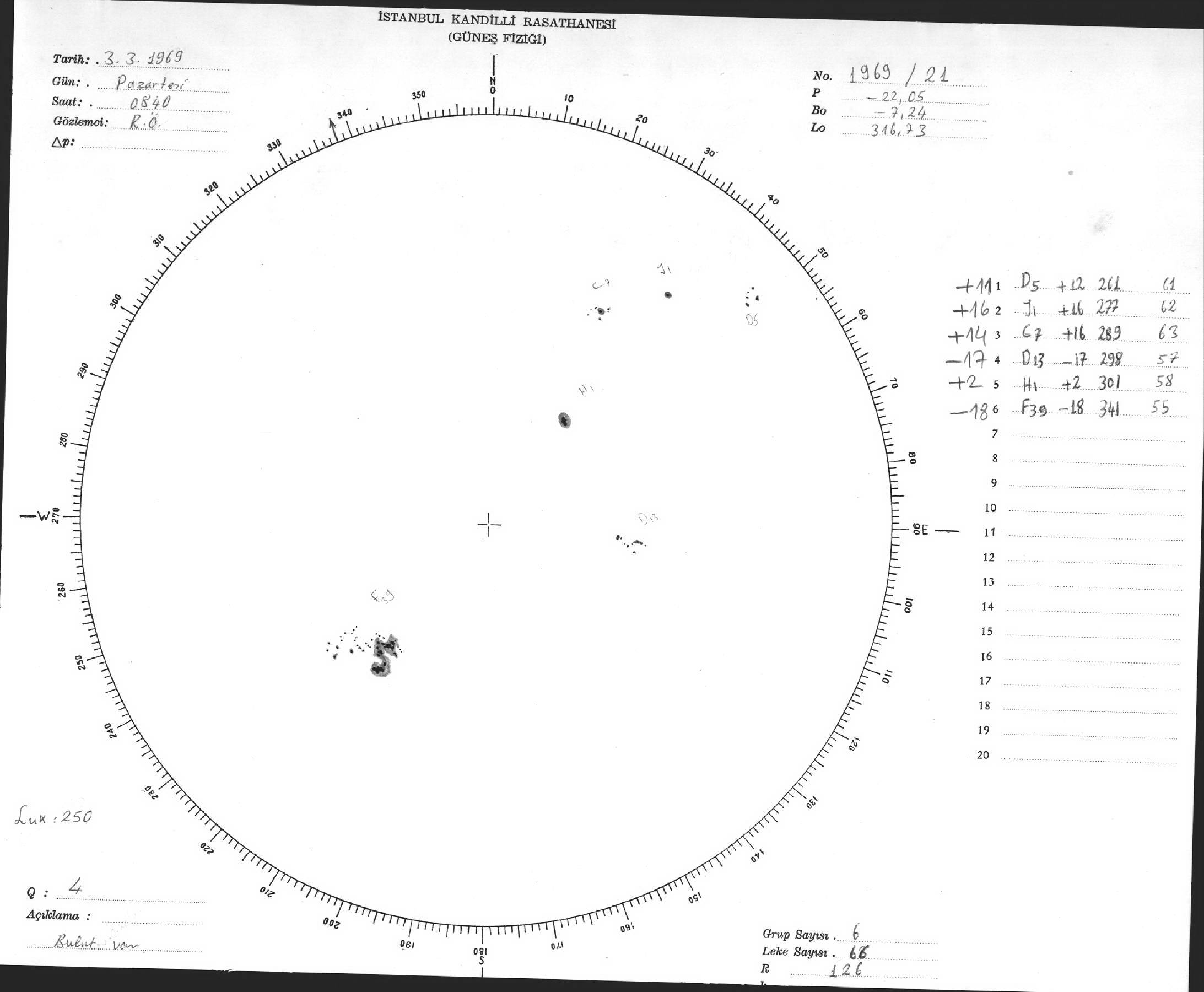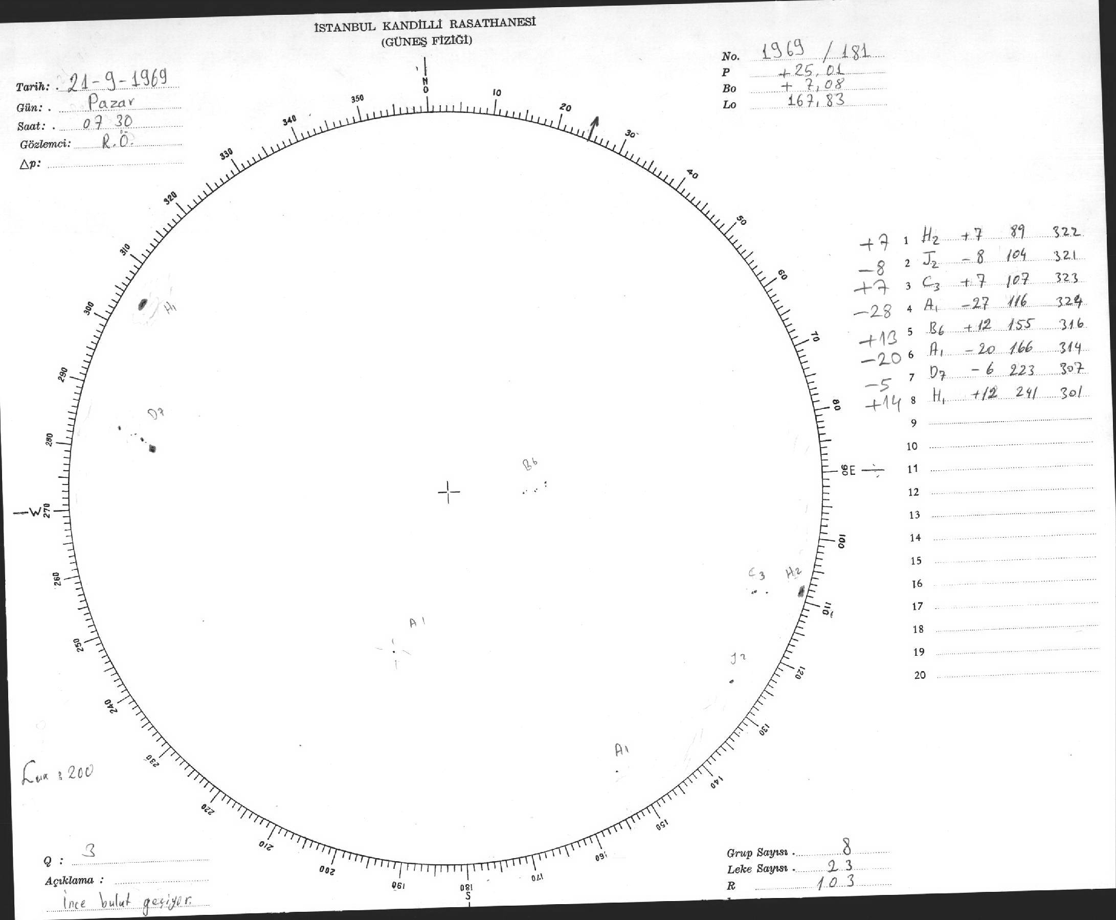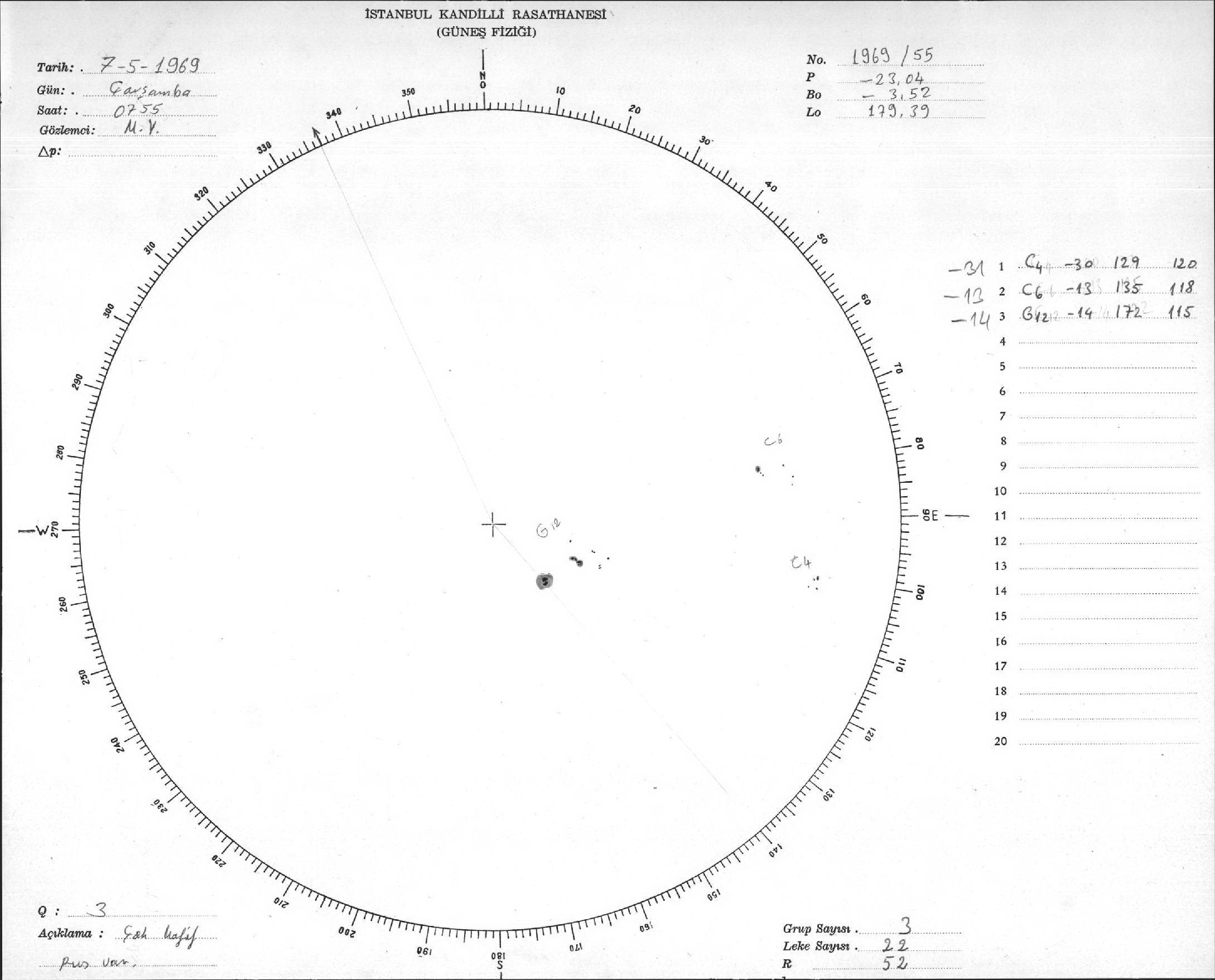 Güneş Lekesi Çizimleri / Kandilli Sunspot Drawings