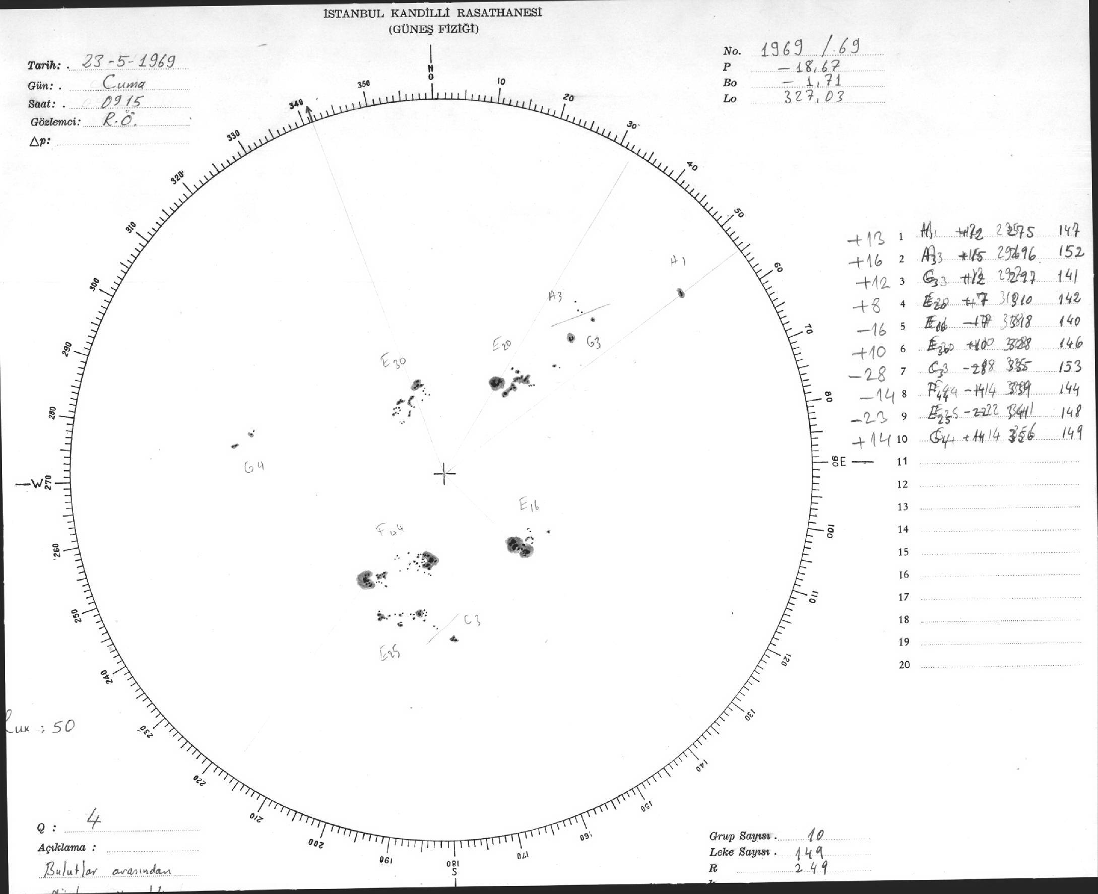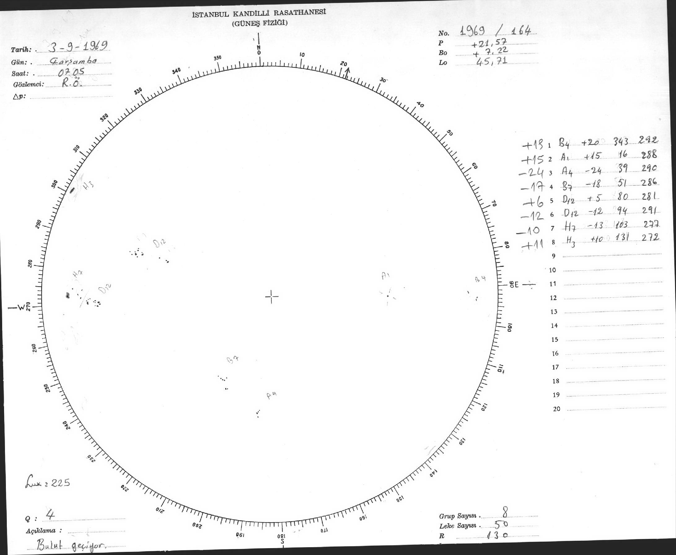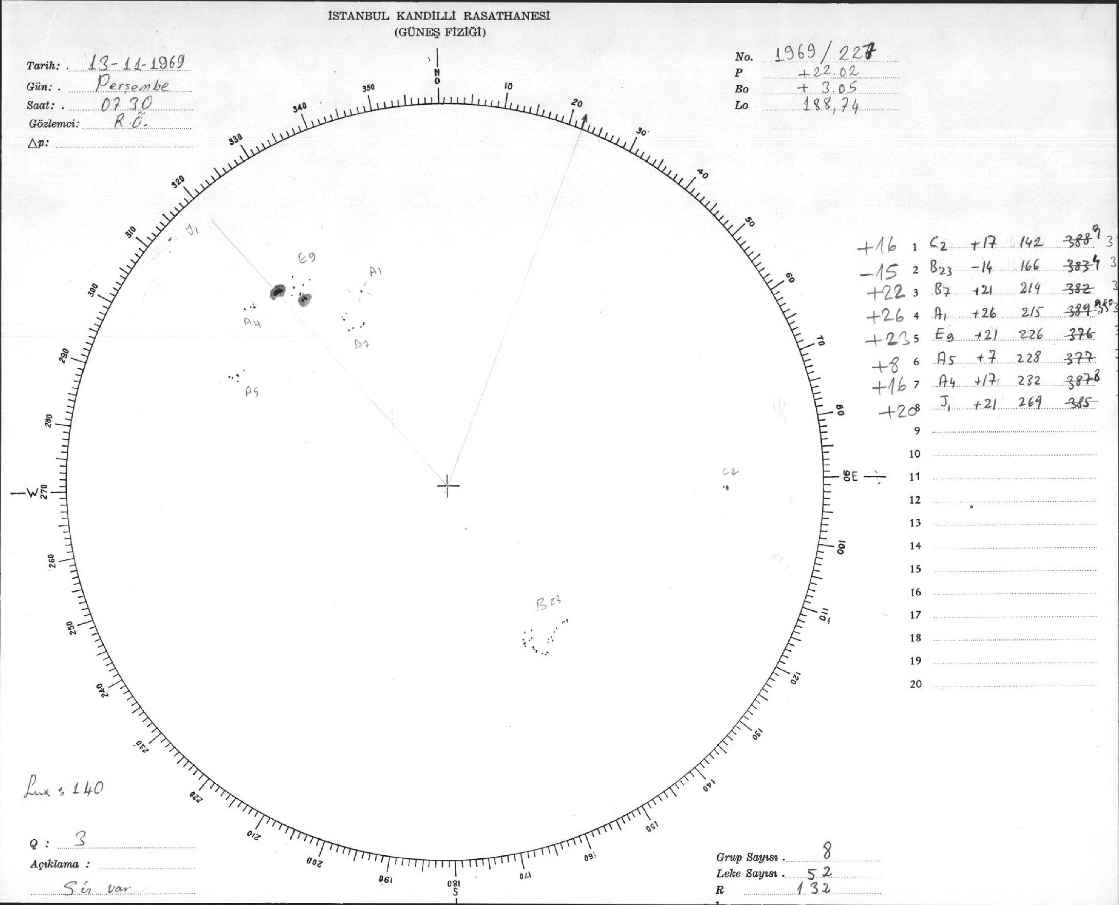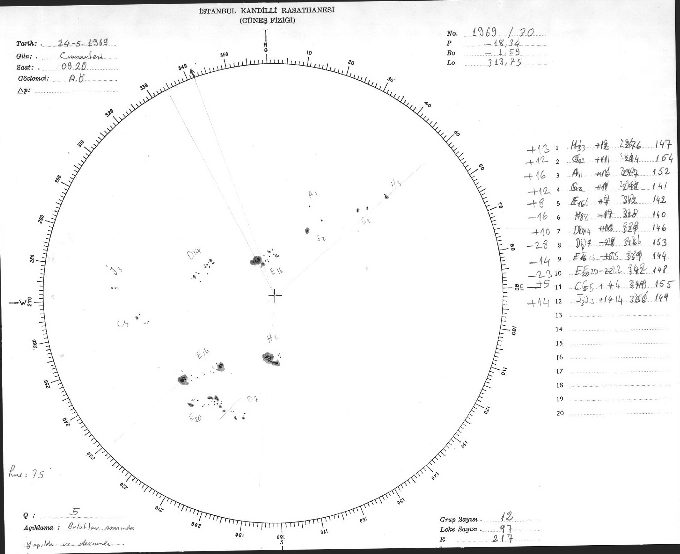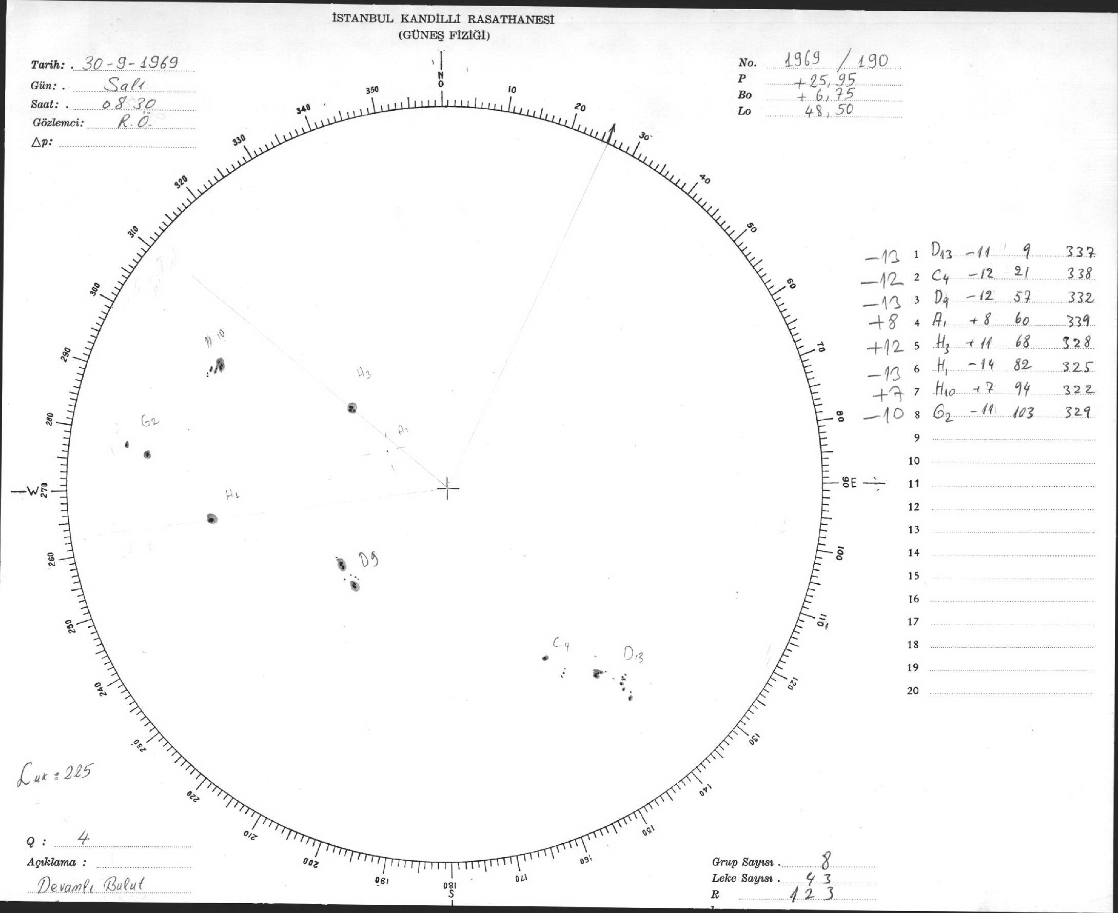 Güneş Lekesi Çizimleri / Kandilli Sunspot Drawings