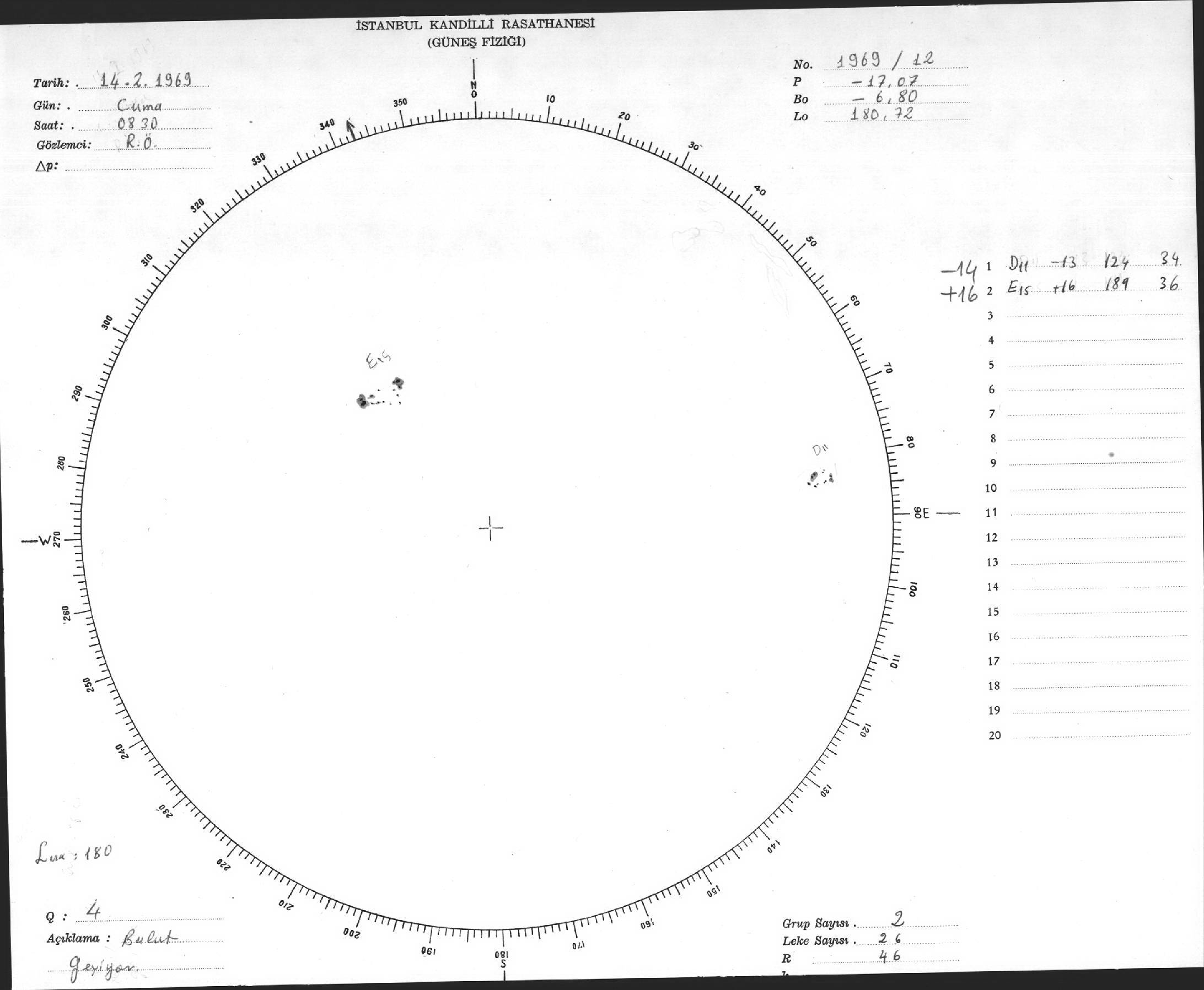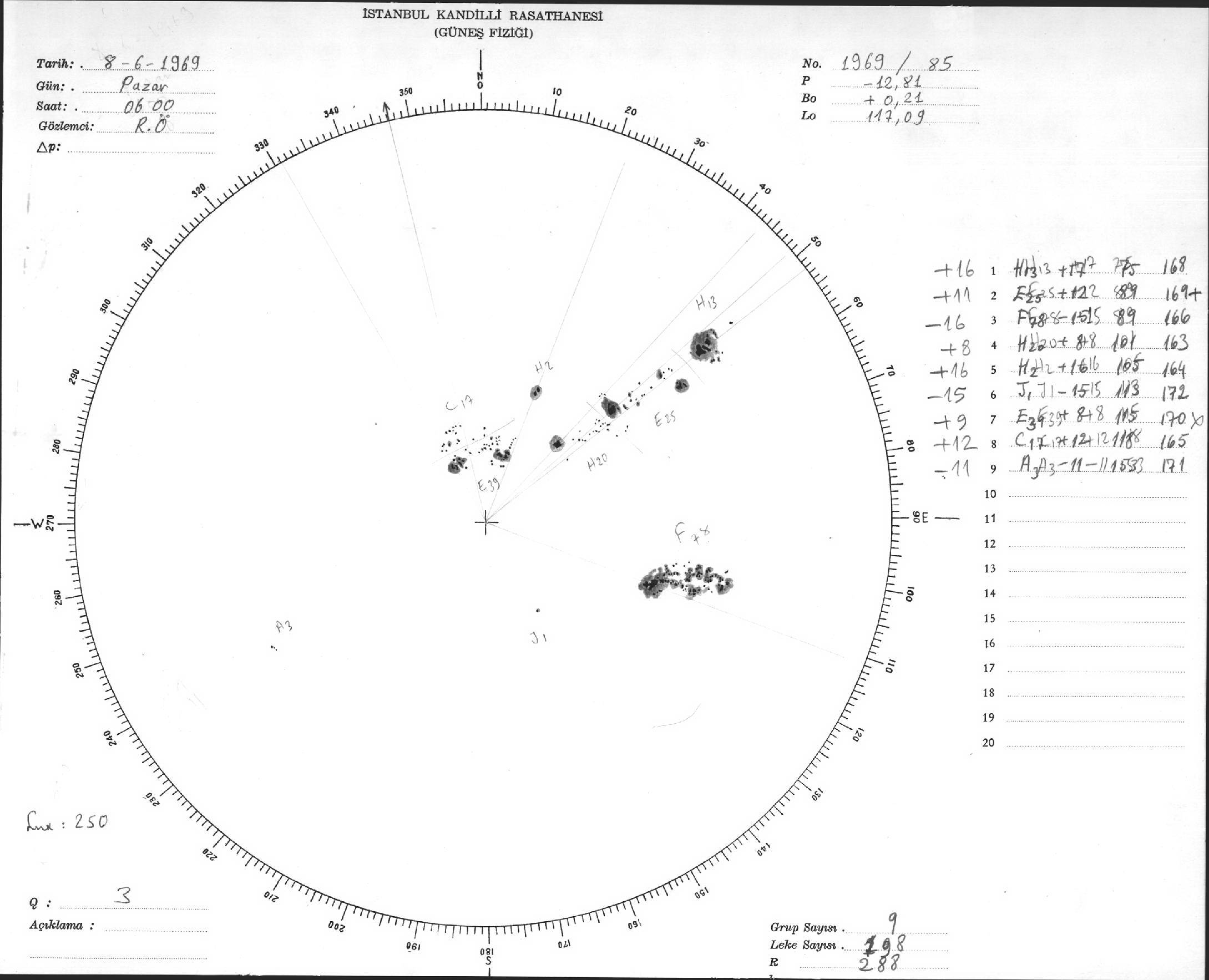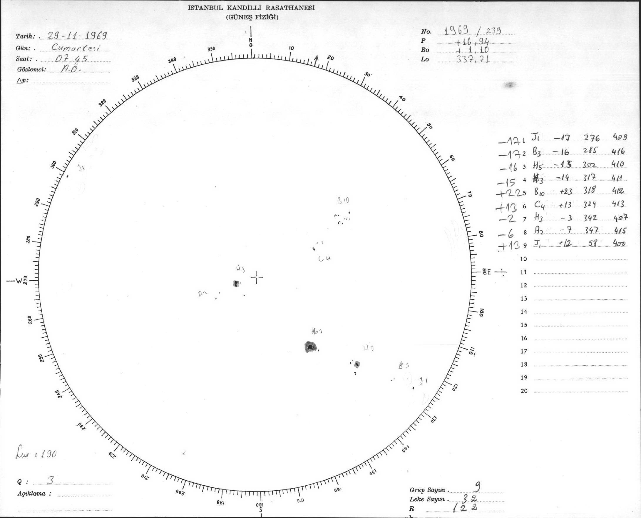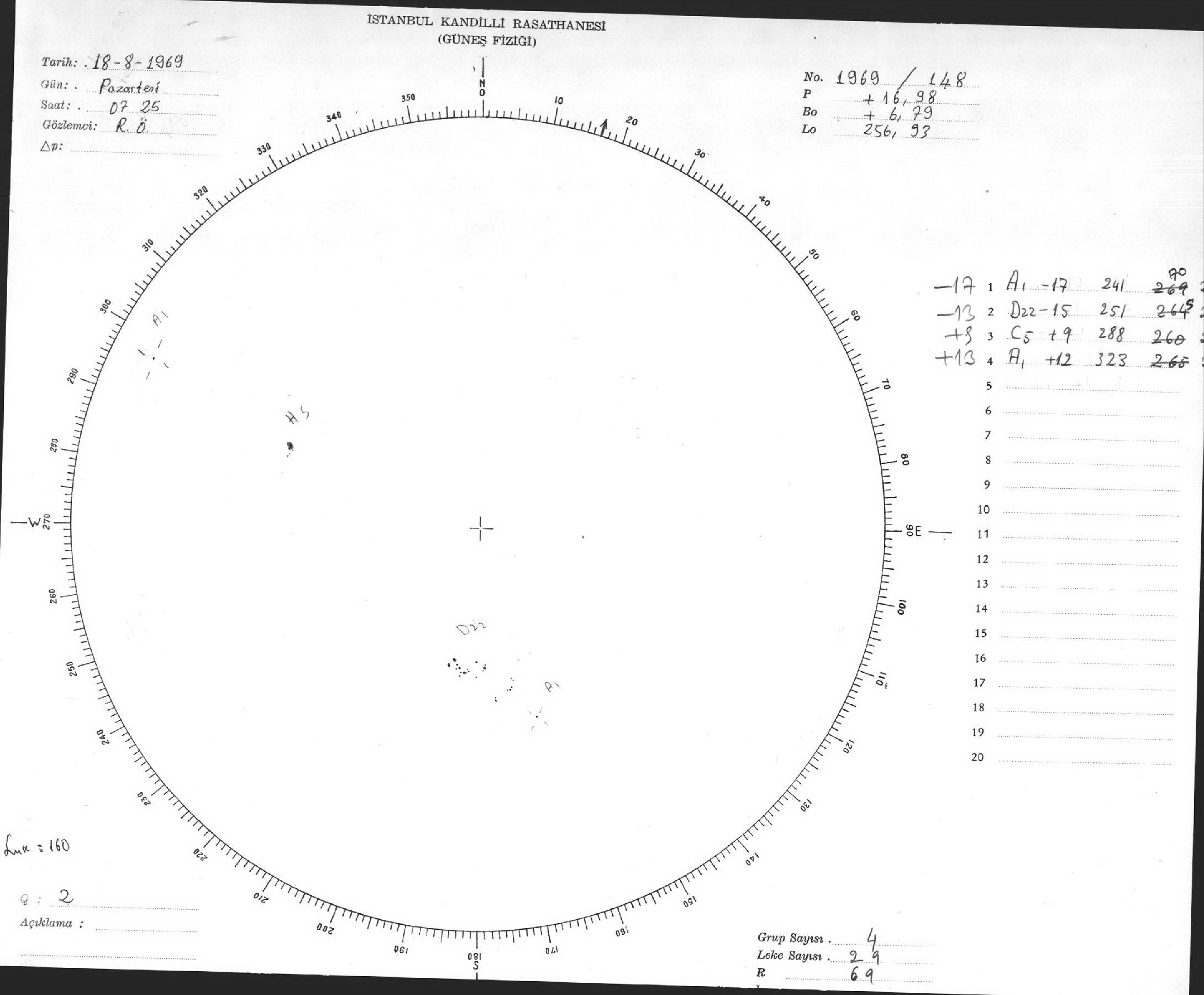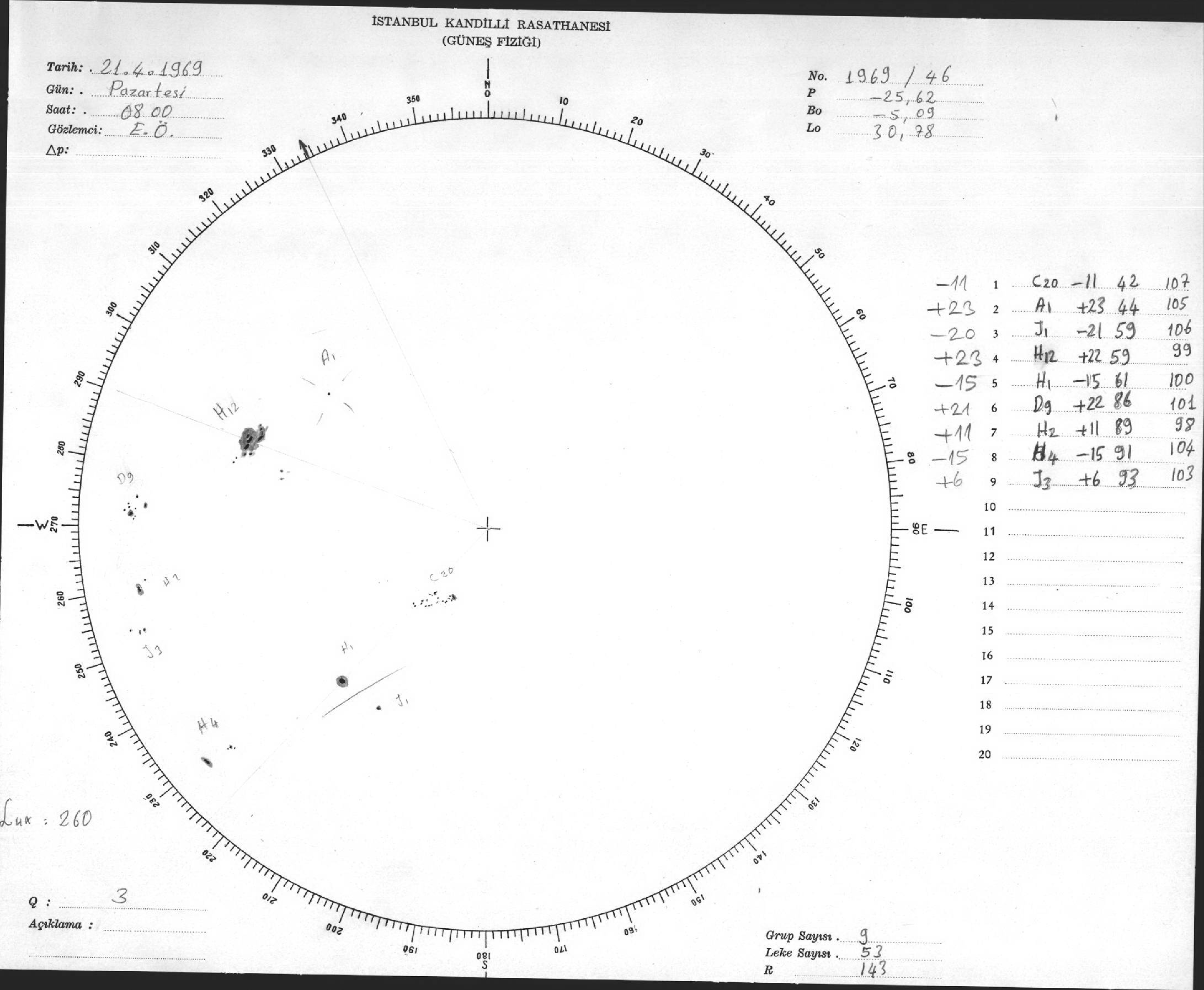 Güneş Lekesi Çizimleri / Kandilli Sunspot Drawings