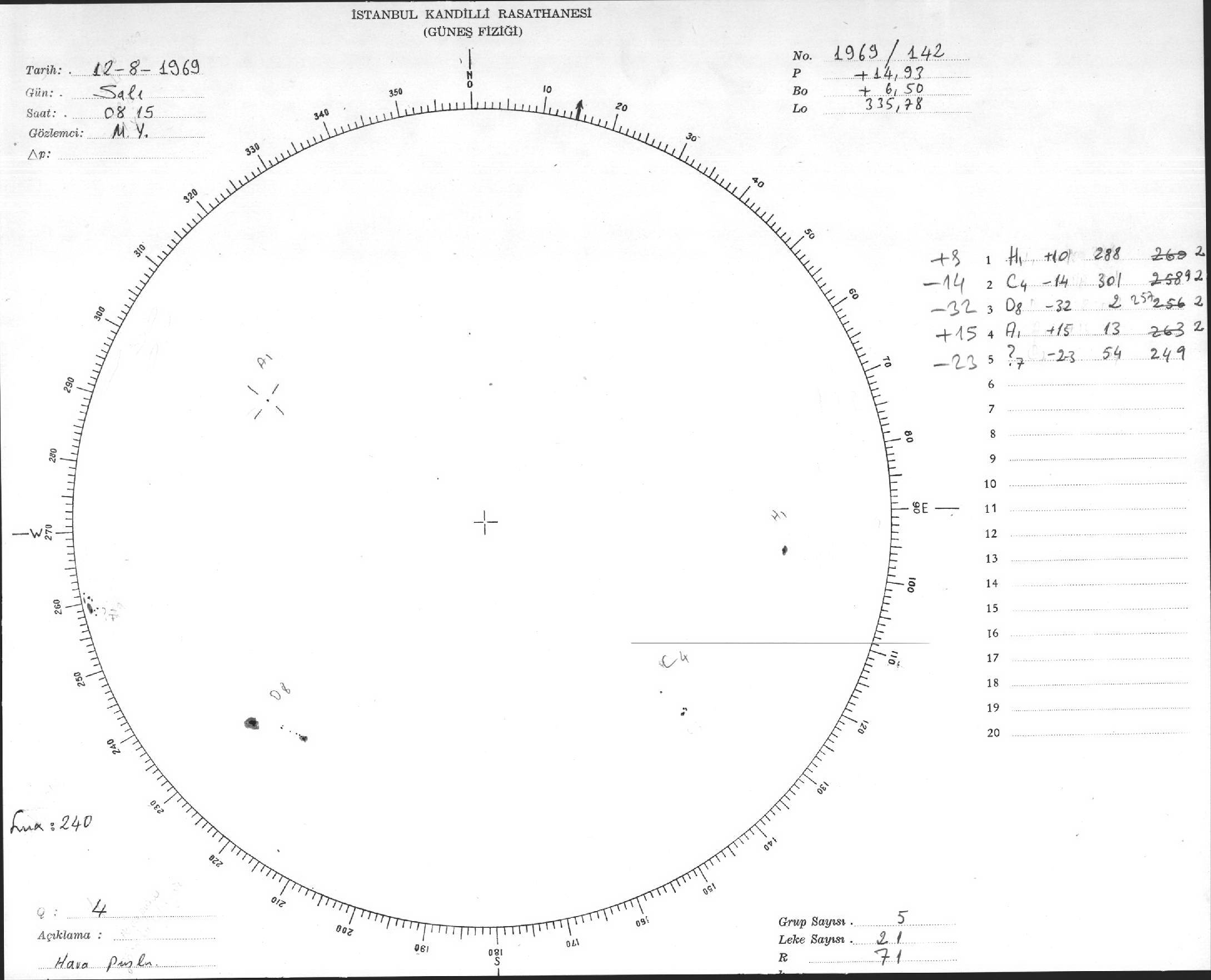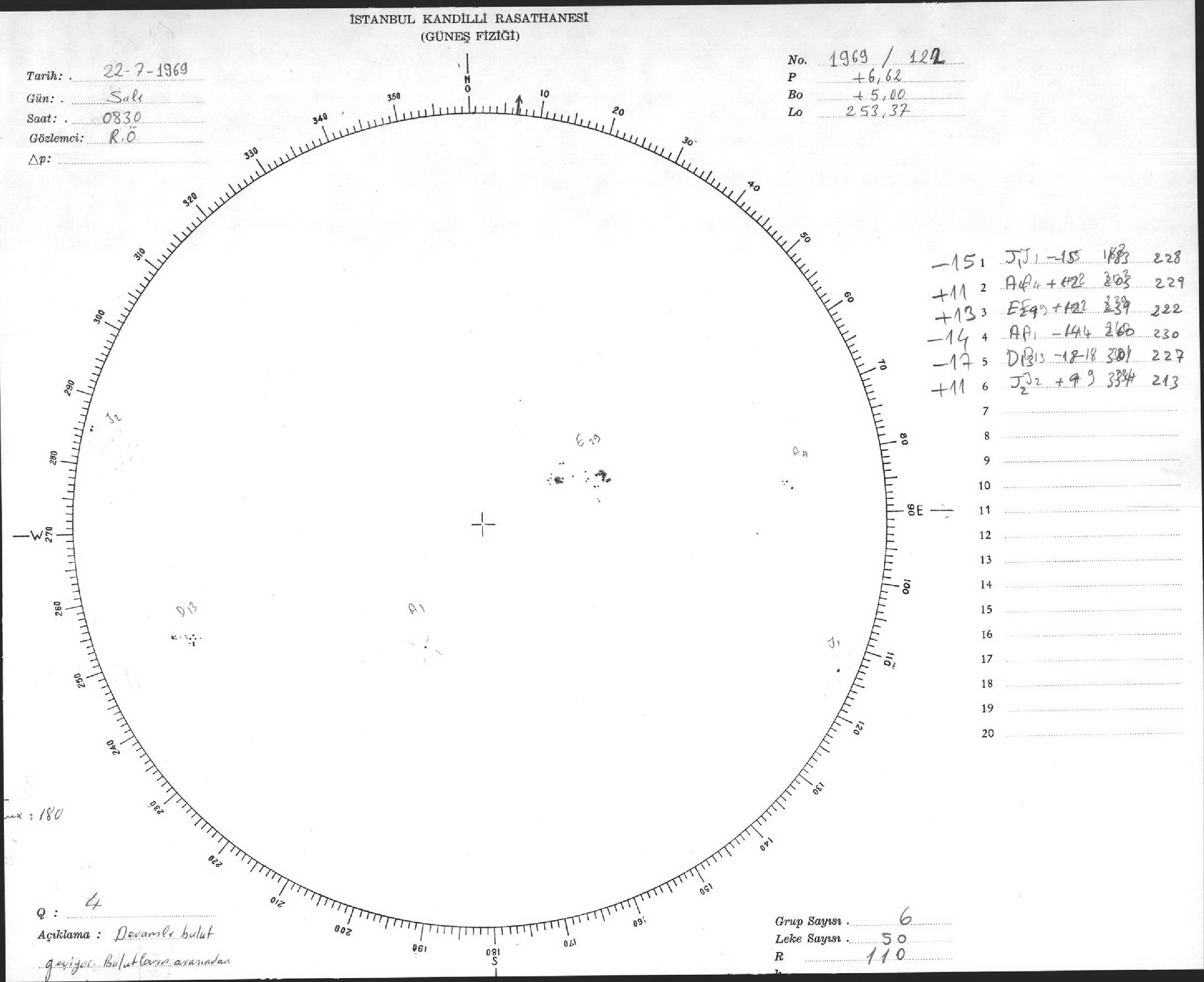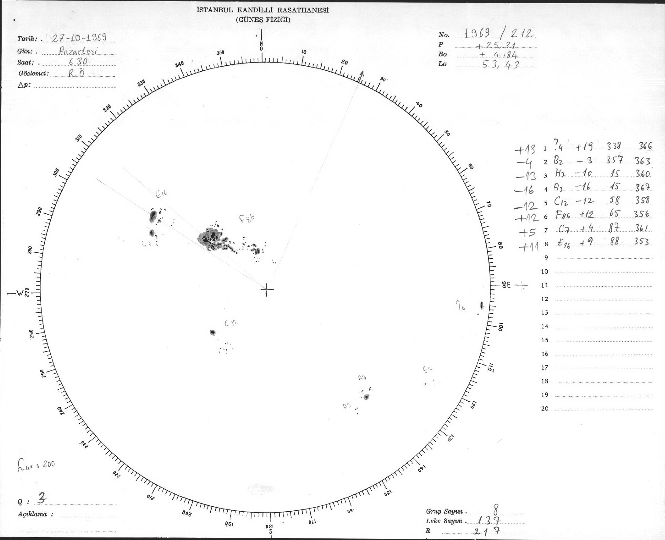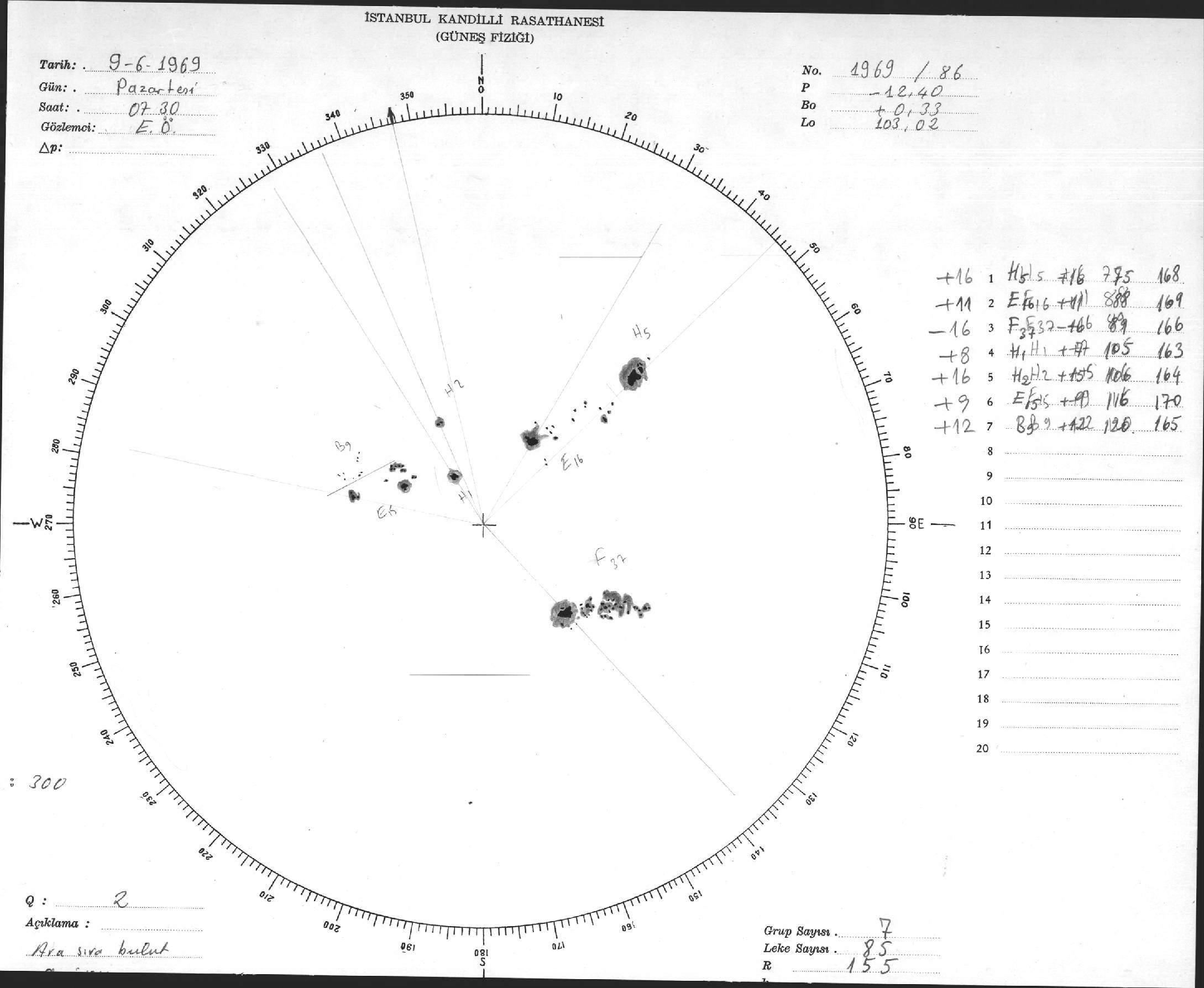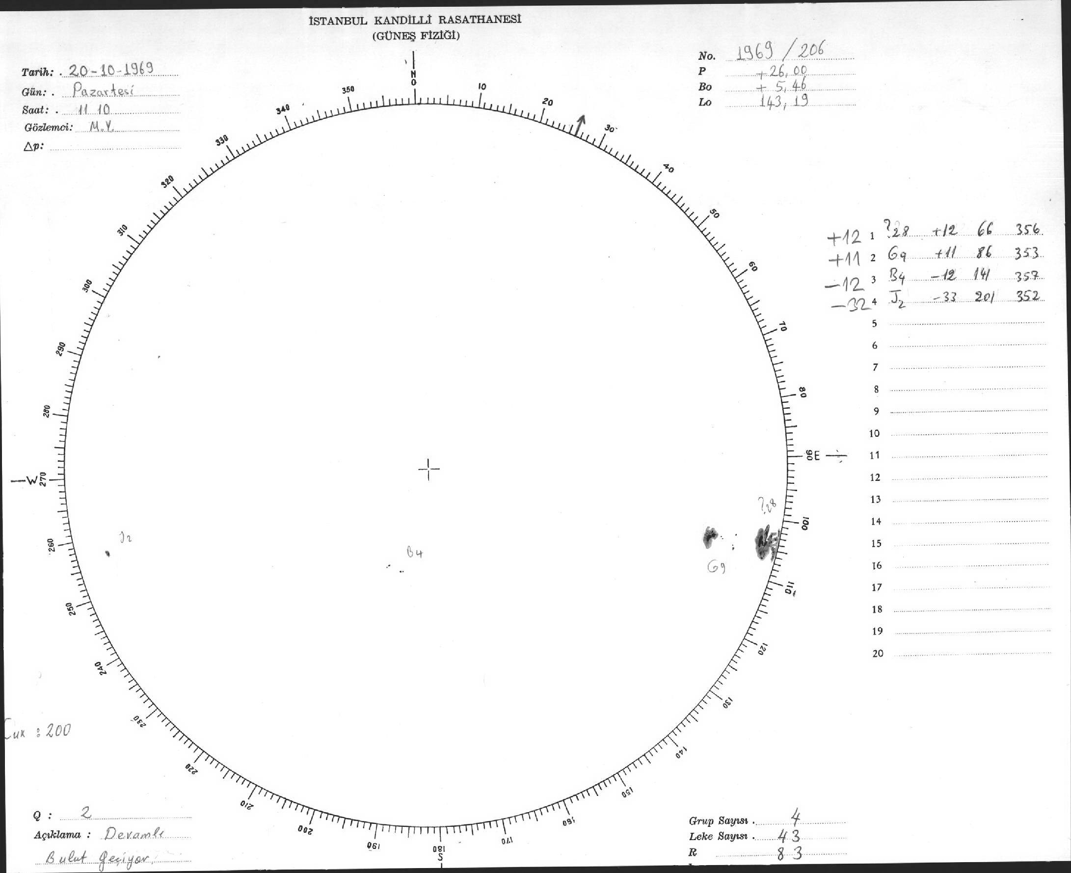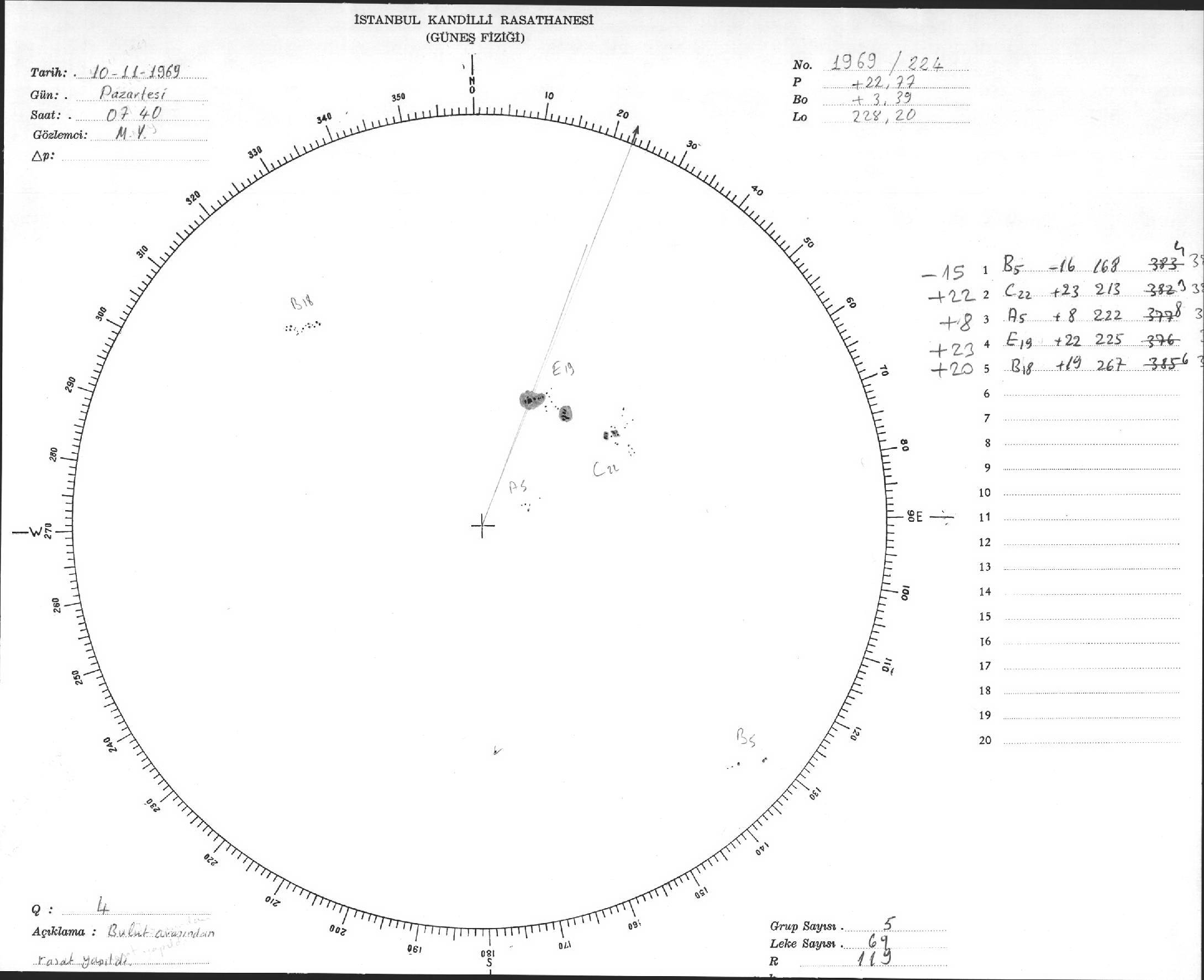 Güneş Lekesi Çizimleri / Kandilli Sunspot Drawings