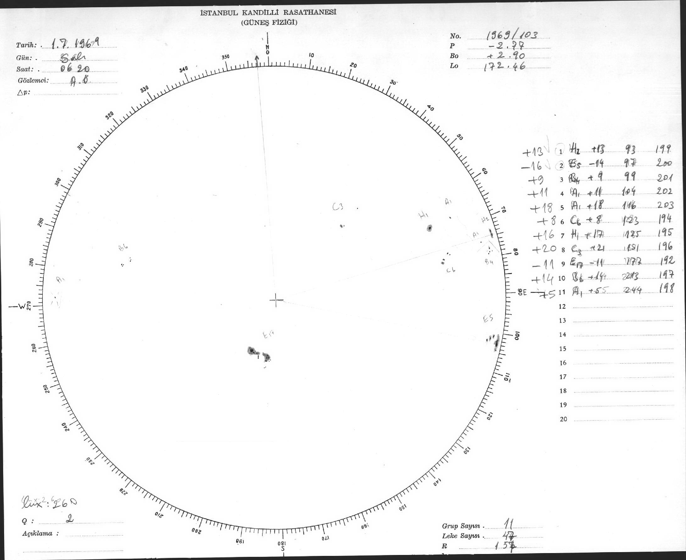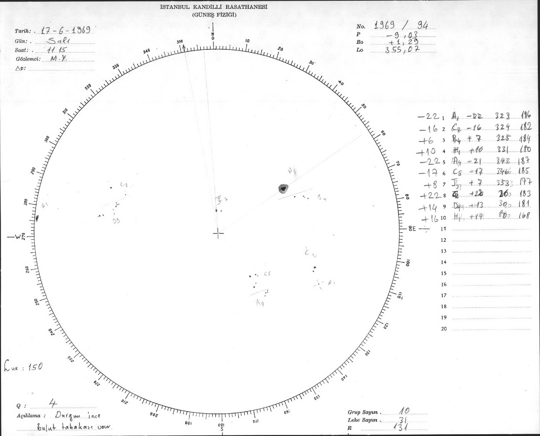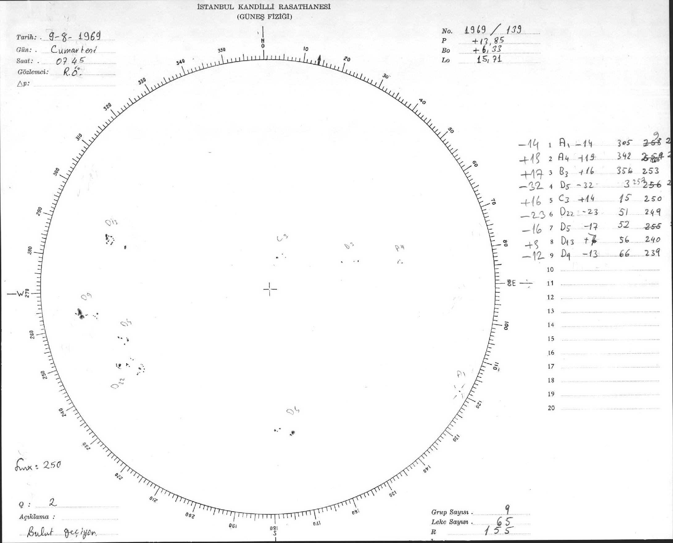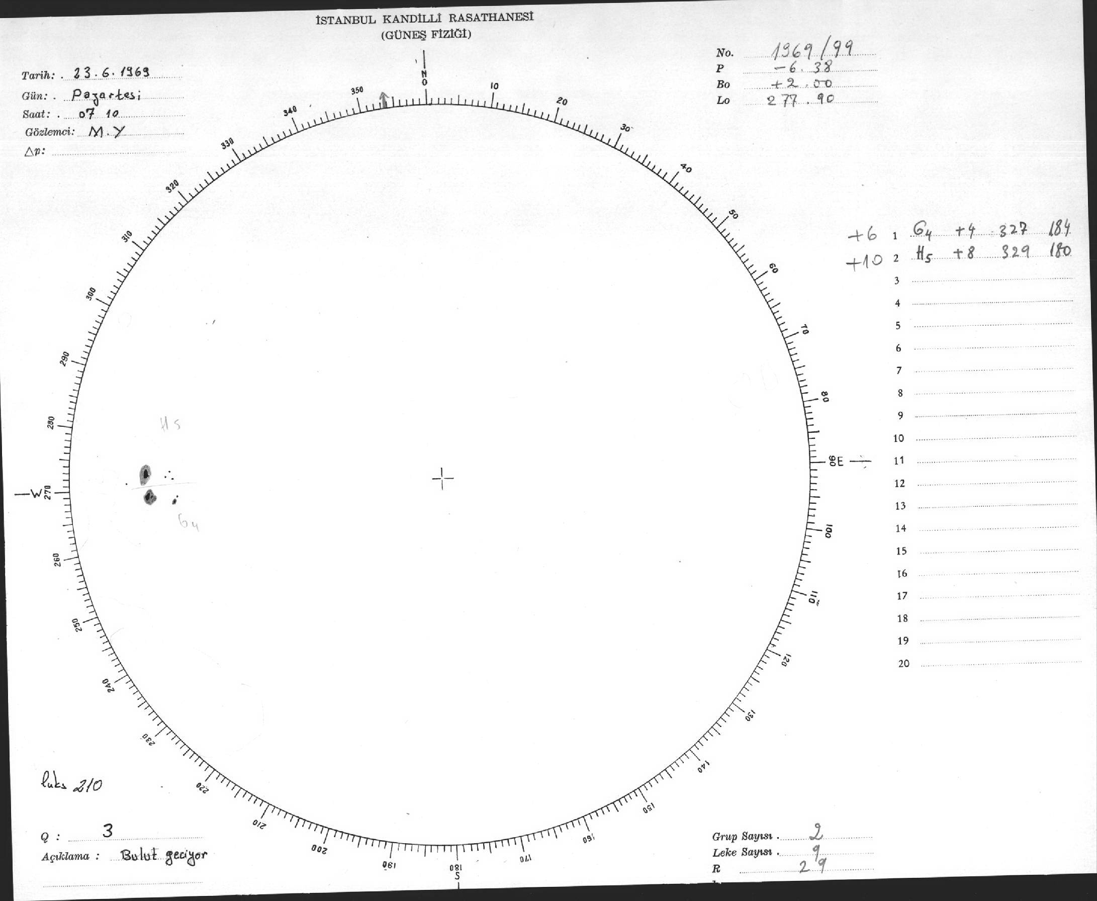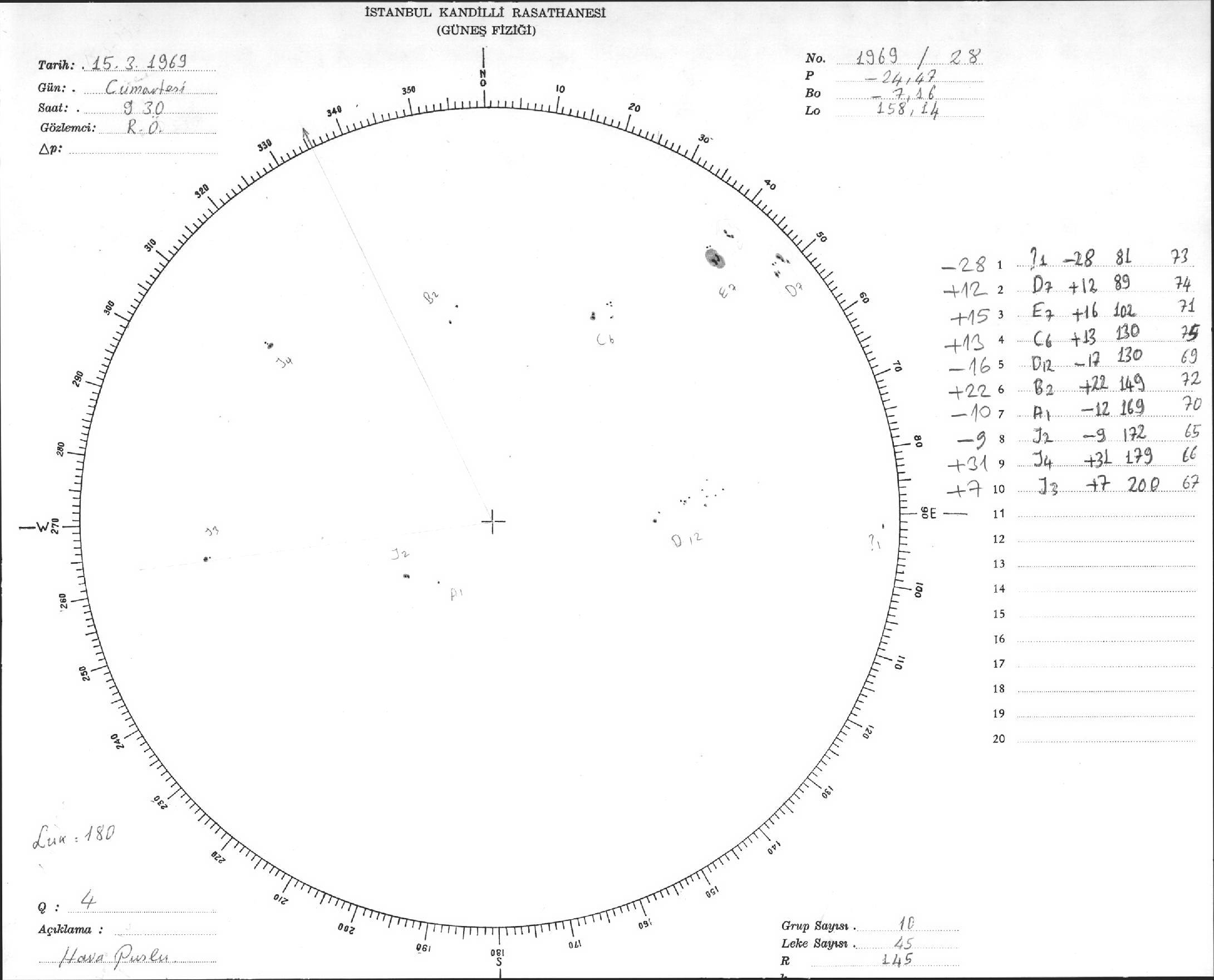 Güneş Lekesi Çizimleri / Kandilli Sunspot Drawings