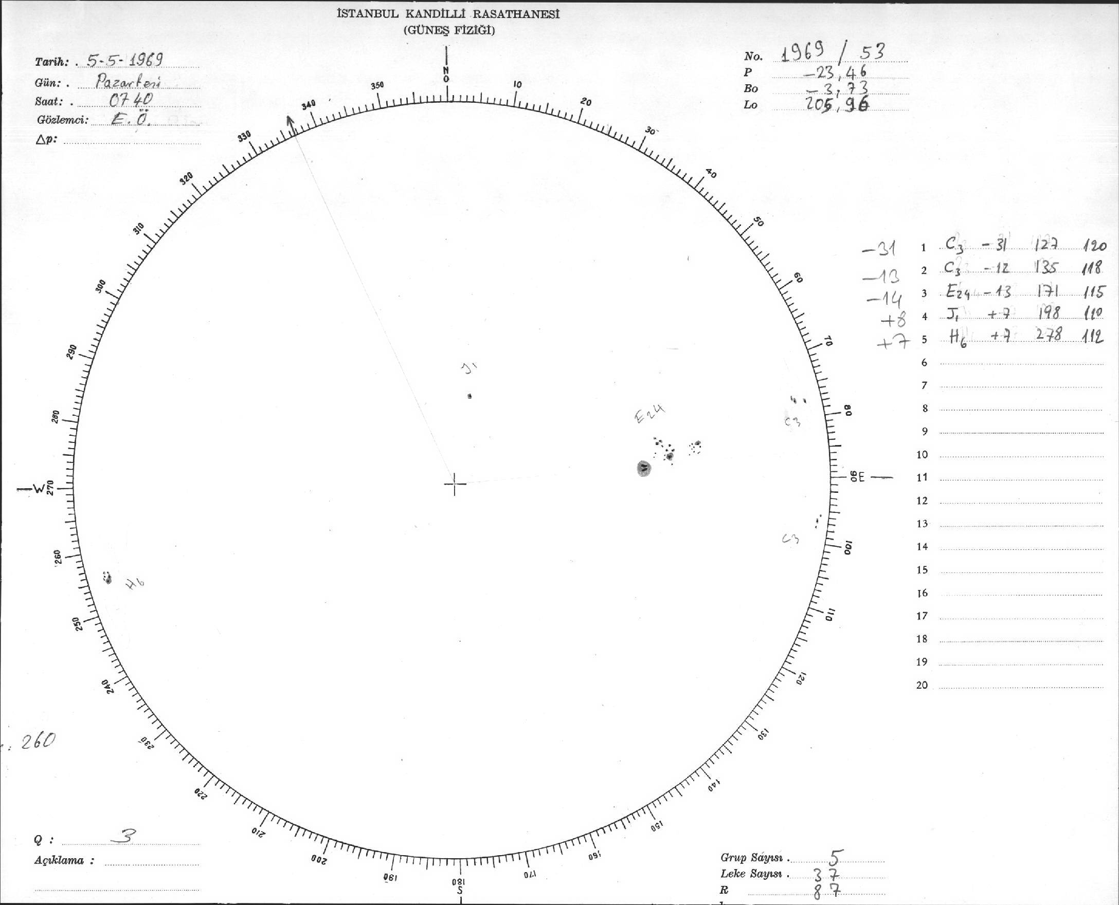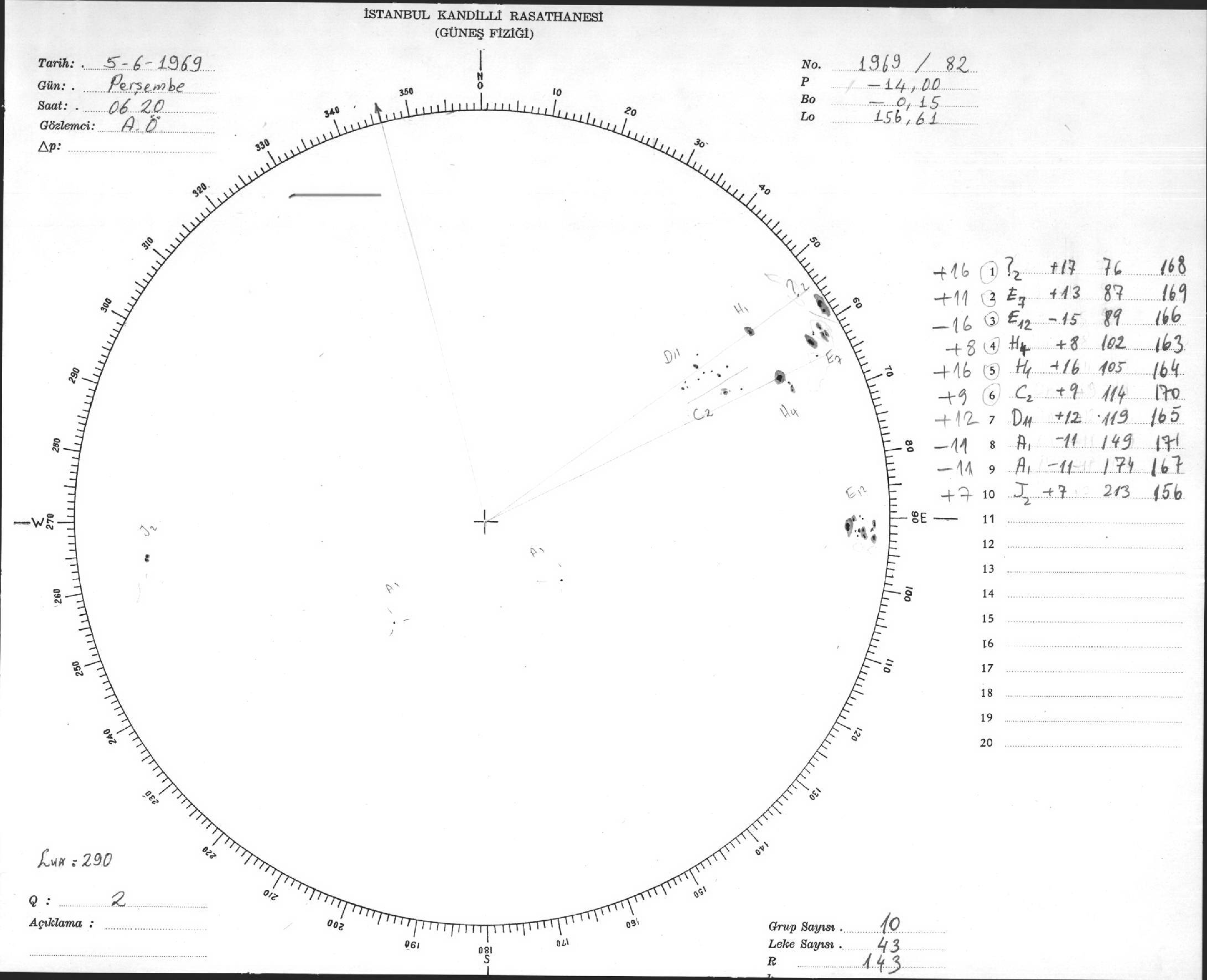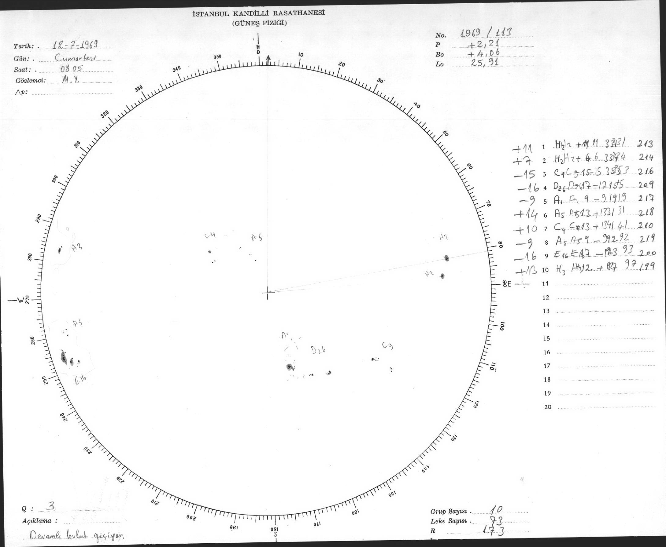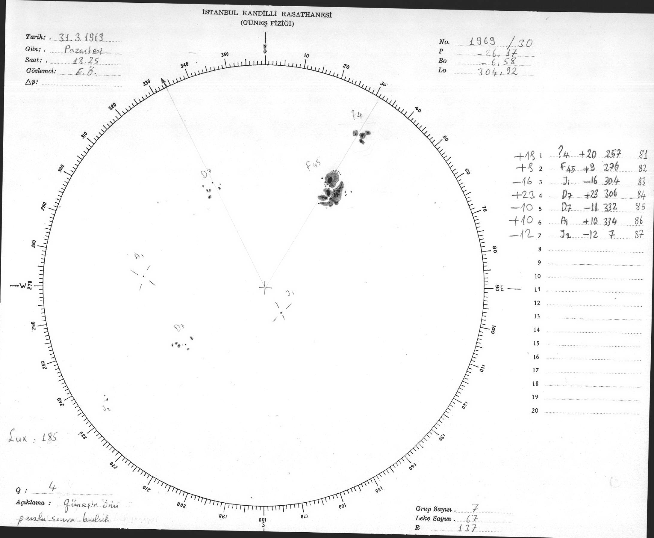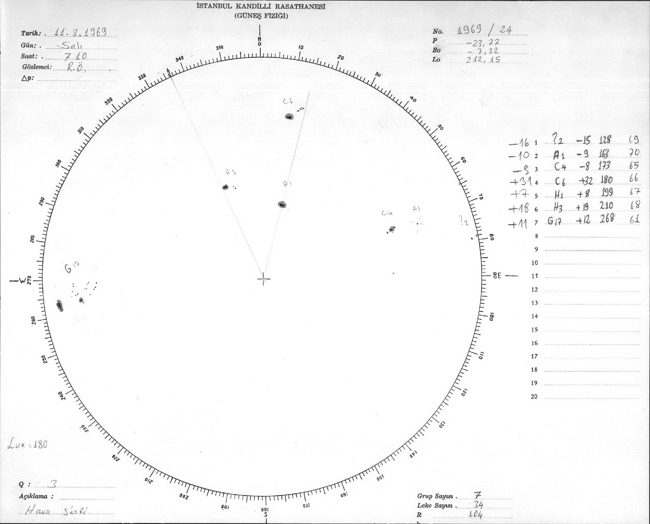 Güneş Lekesi Çizimleri / Kandilli Sunspot Drawings