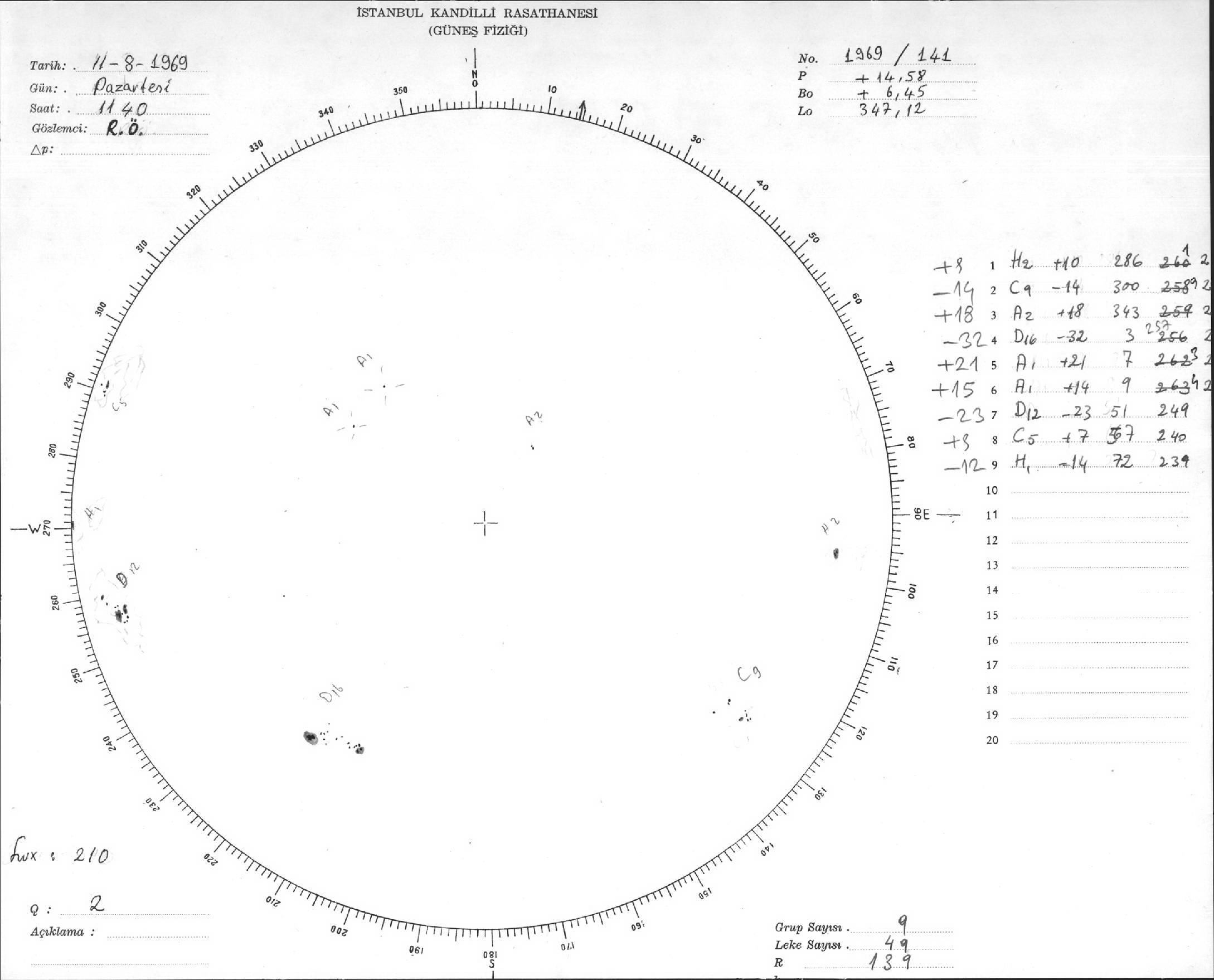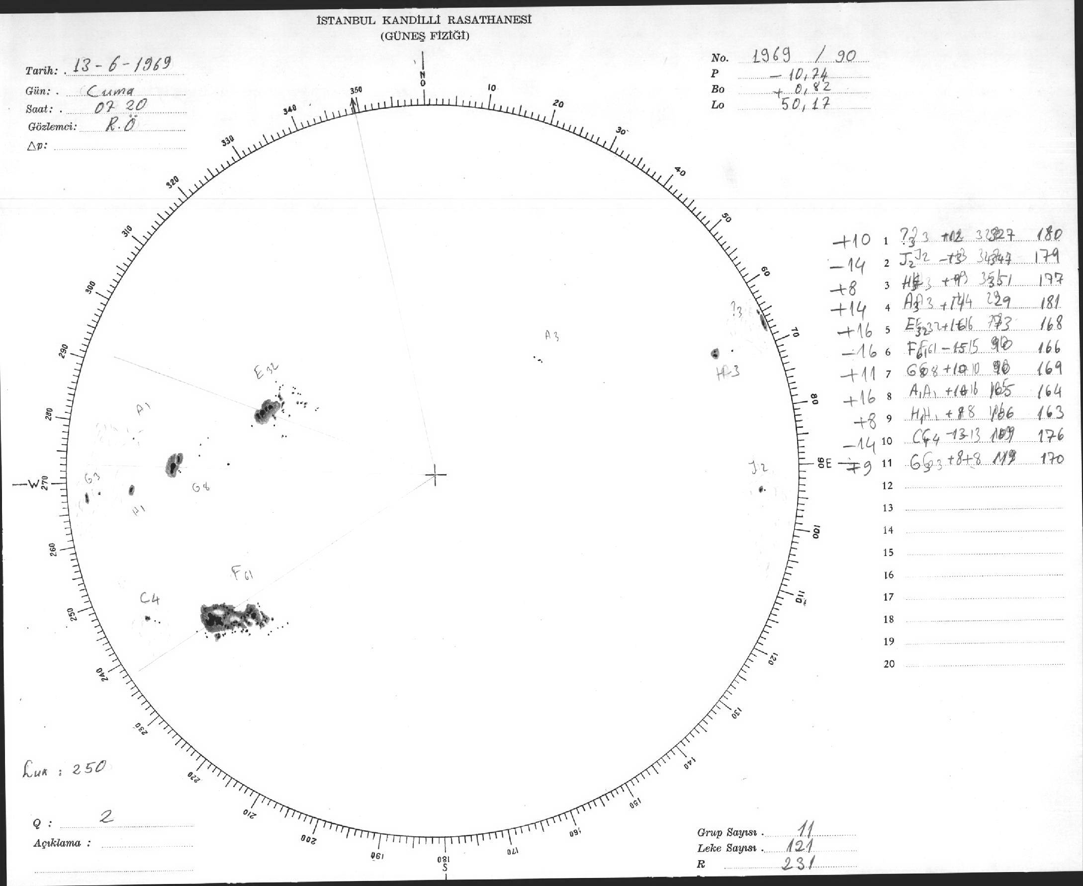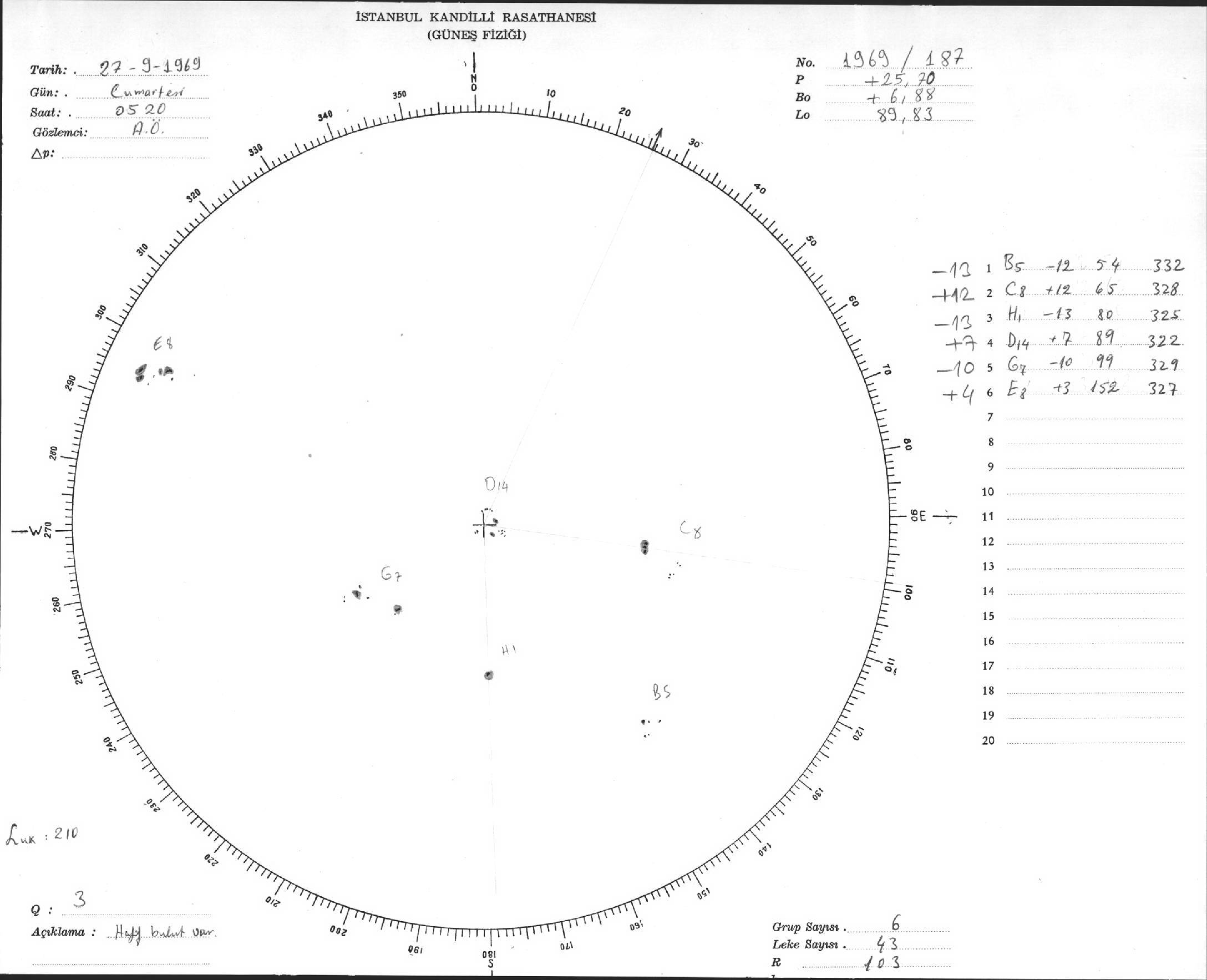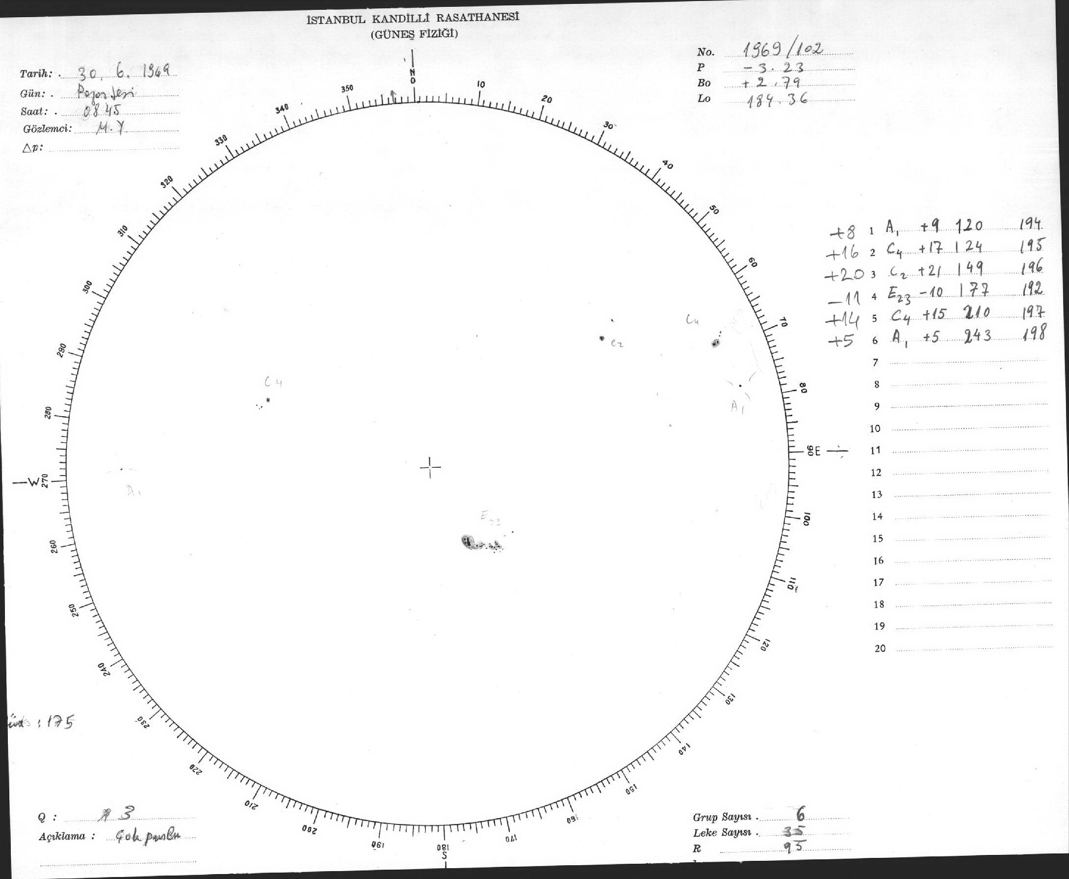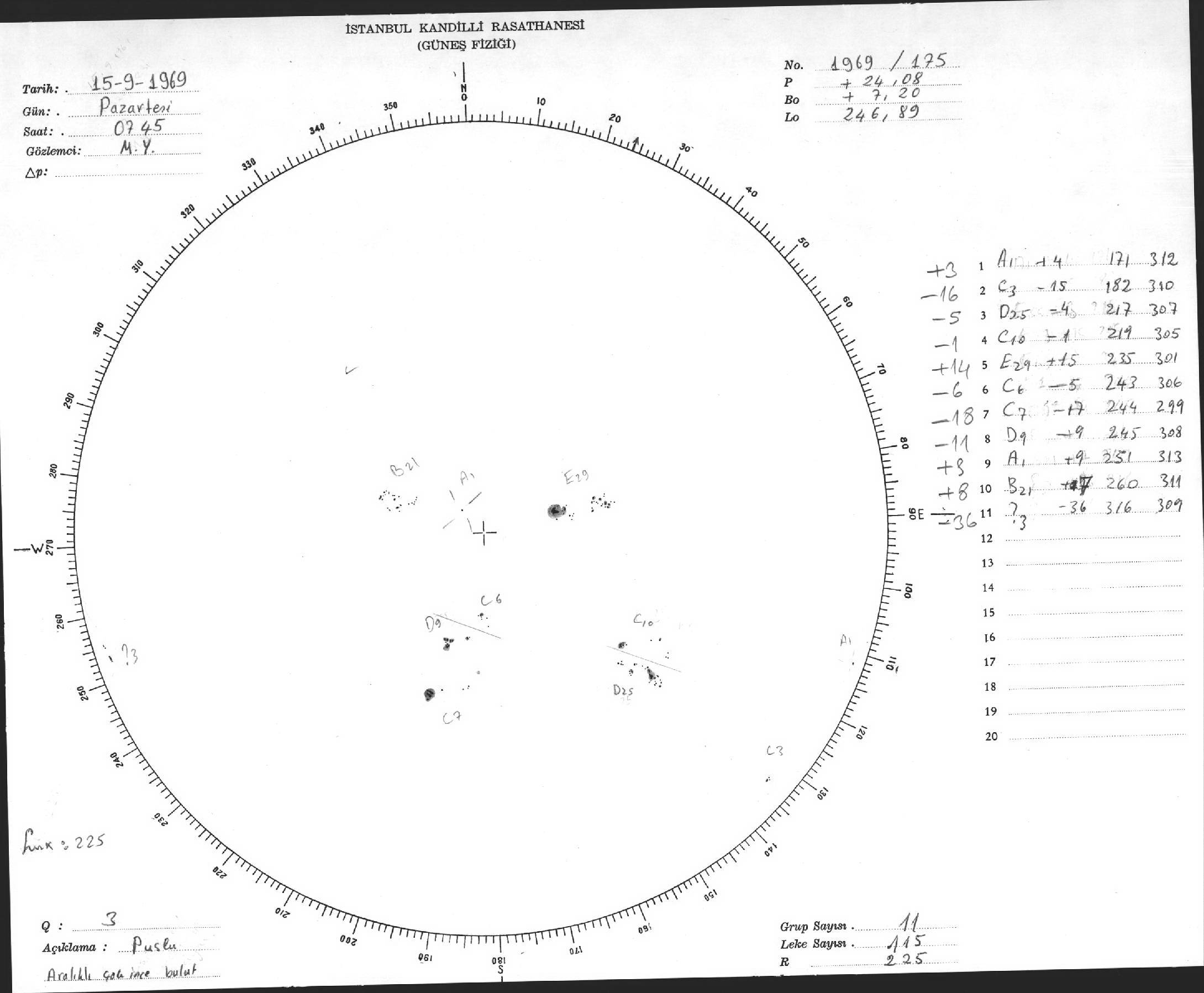 Güneş Lekesi Çizimleri / Kandilli Sunspot Drawings