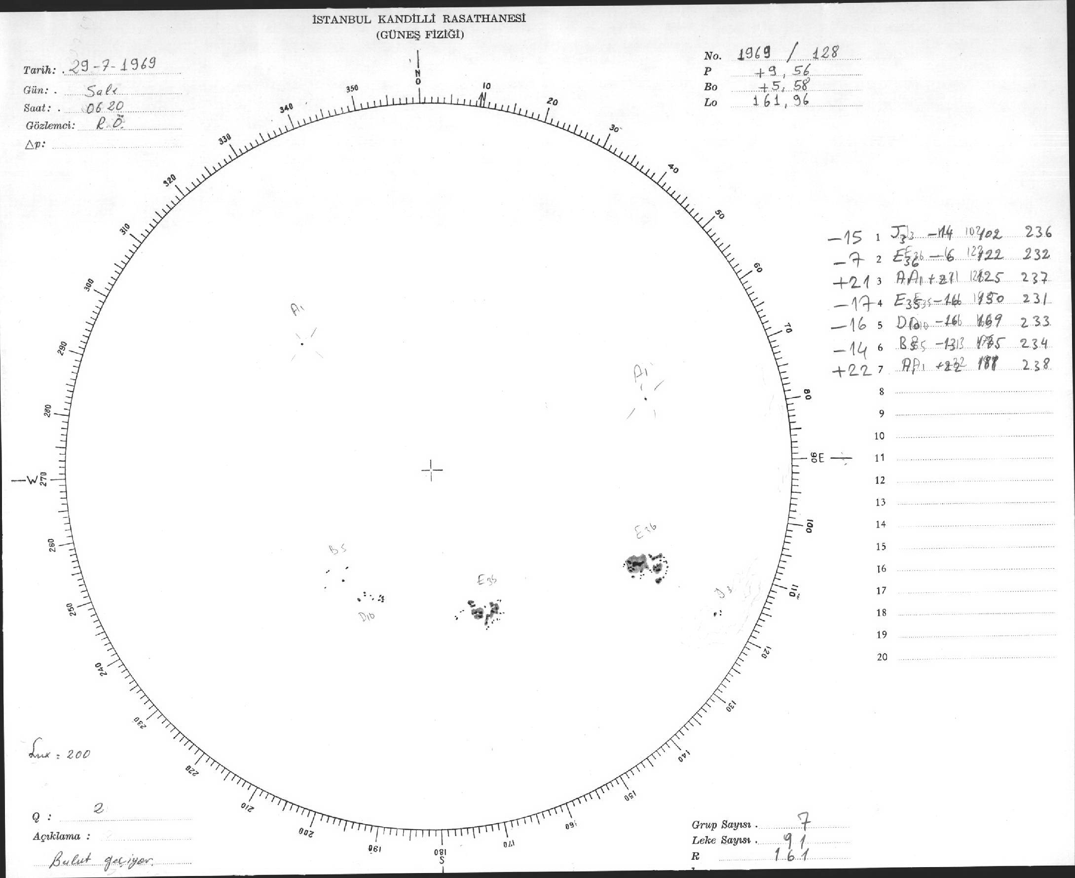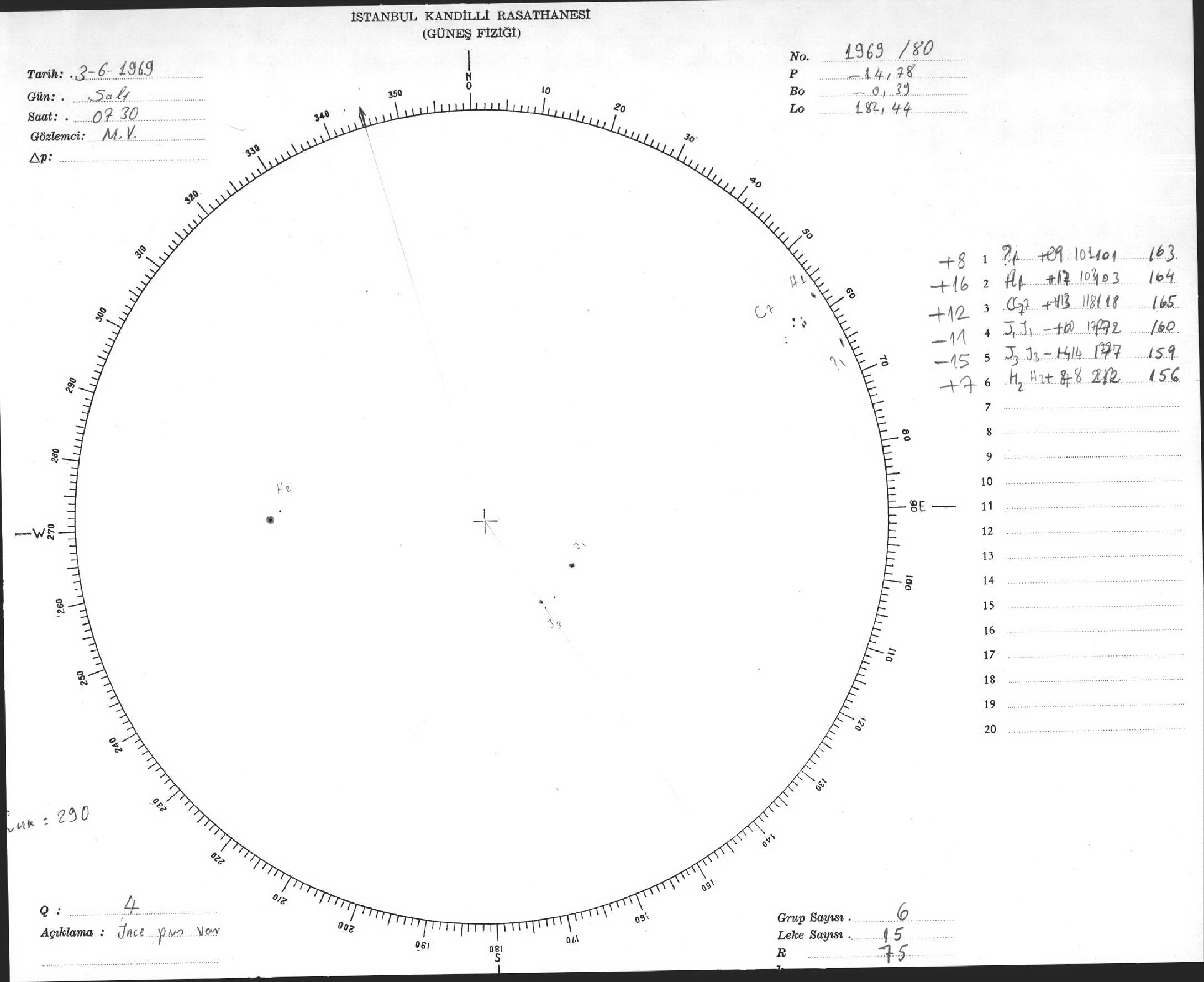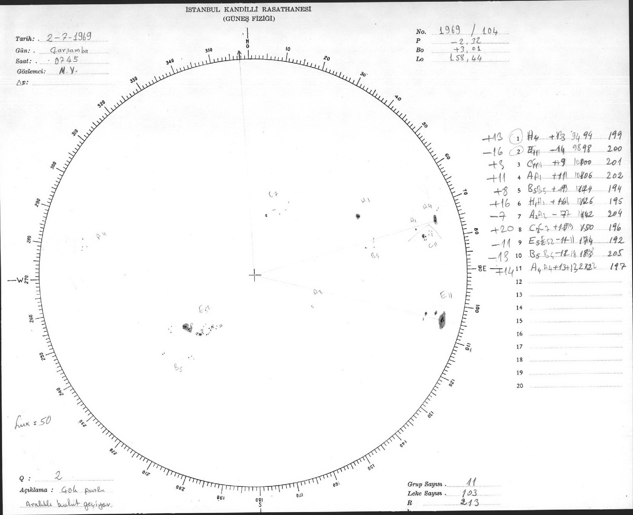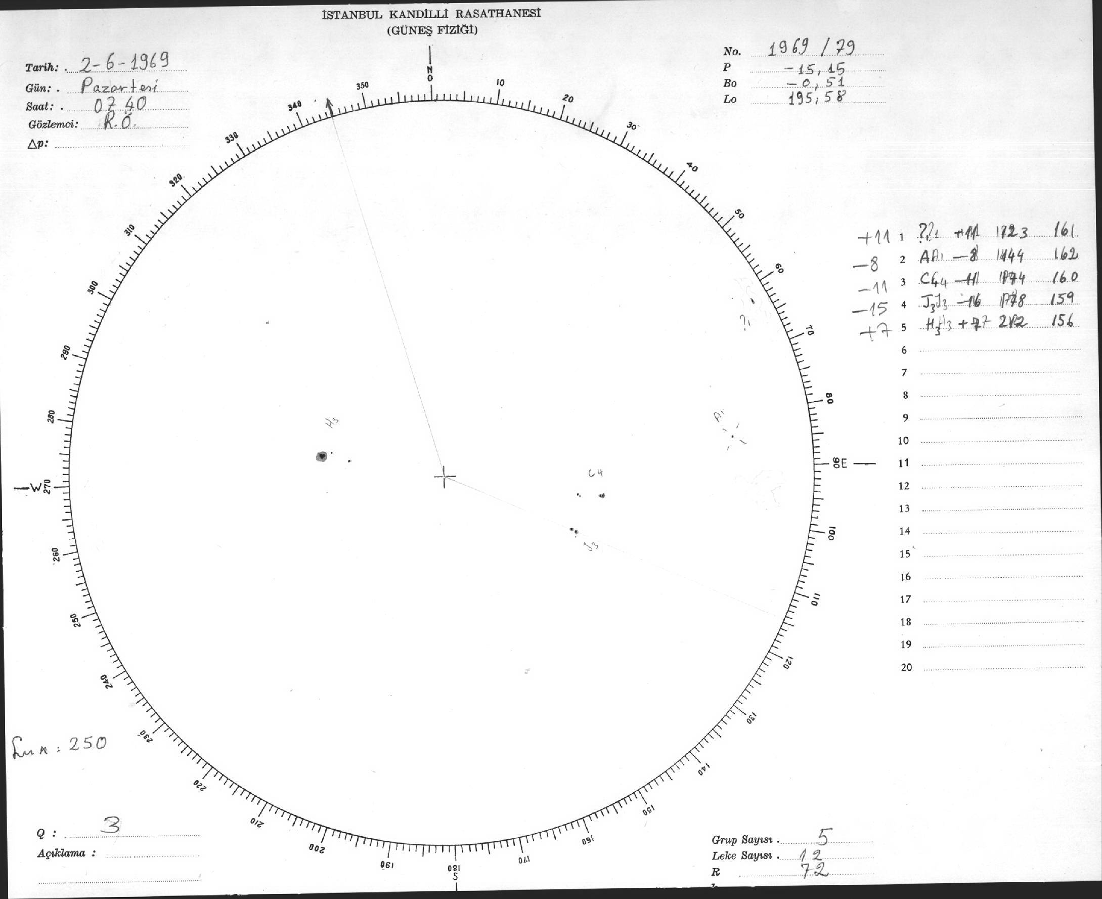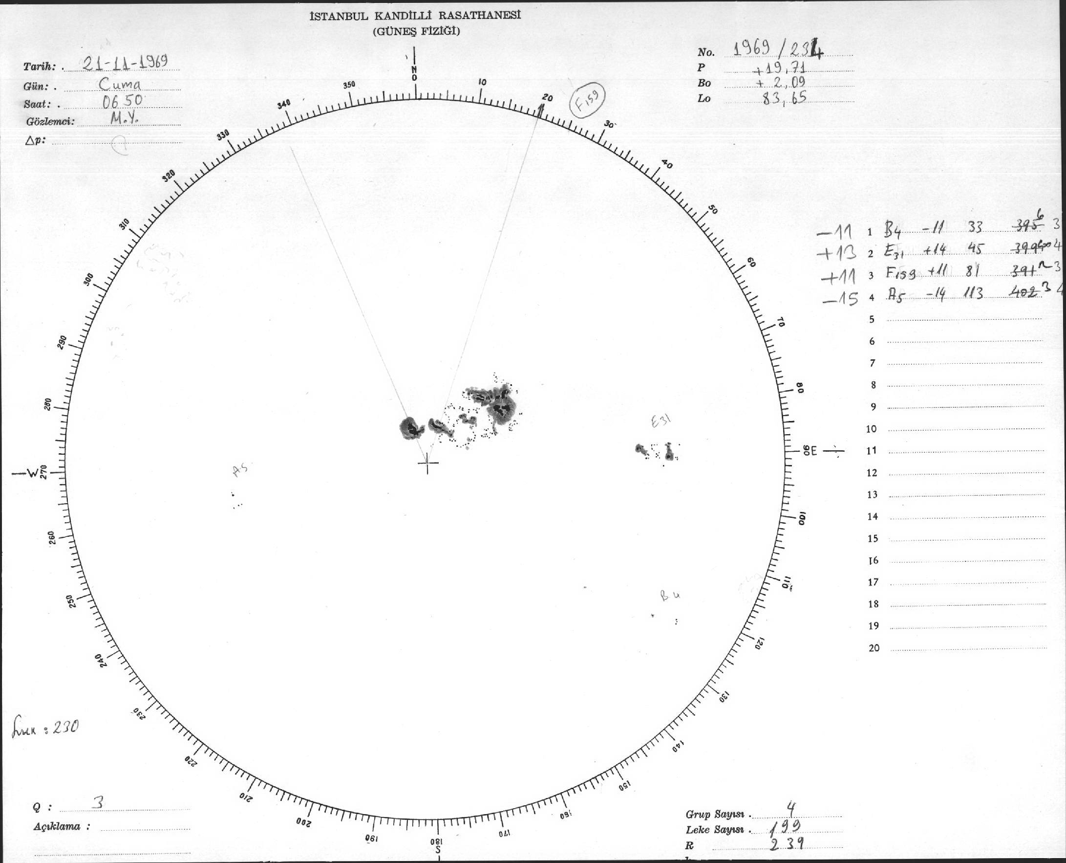 Güneş Lekesi Çizimleri / Kandilli Sunspot Drawings