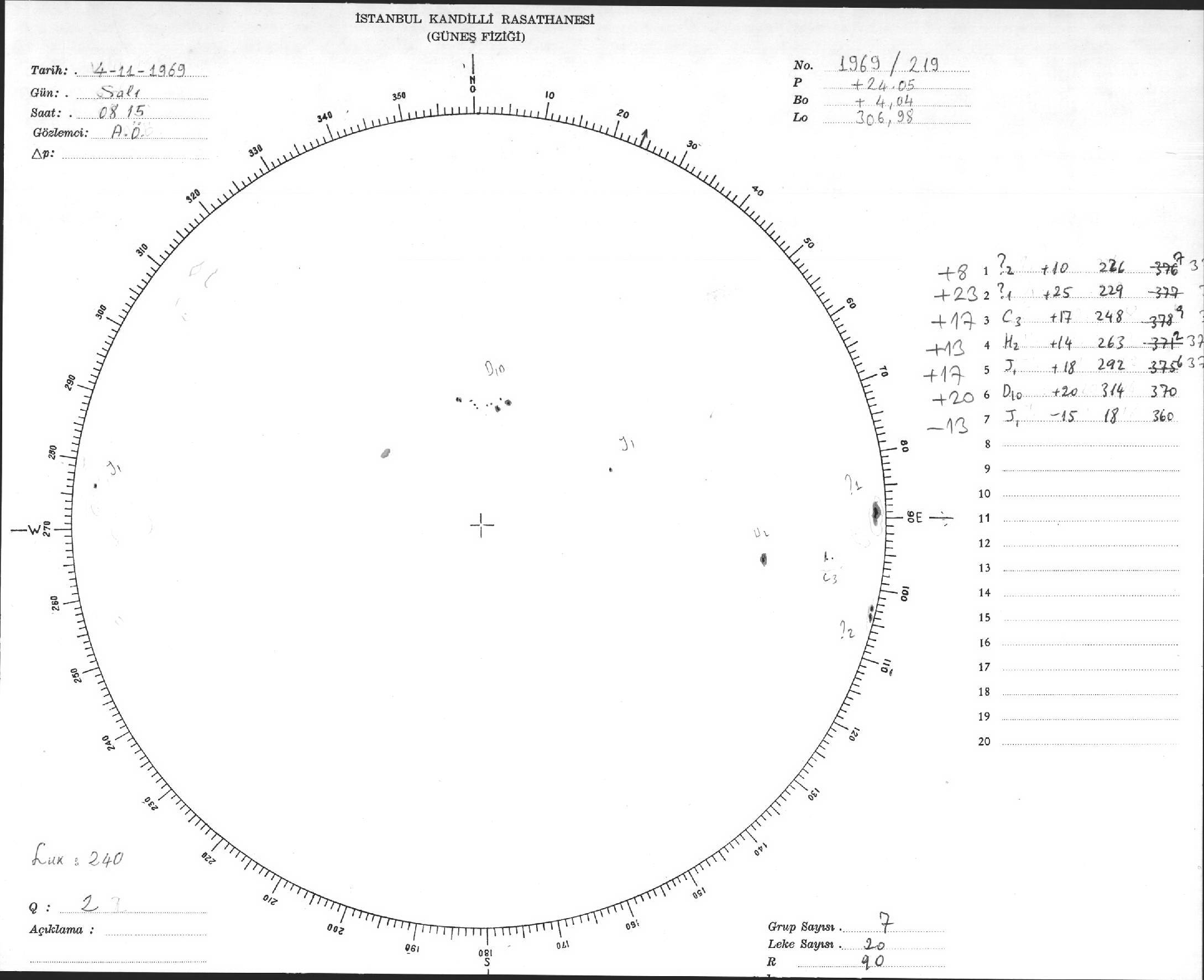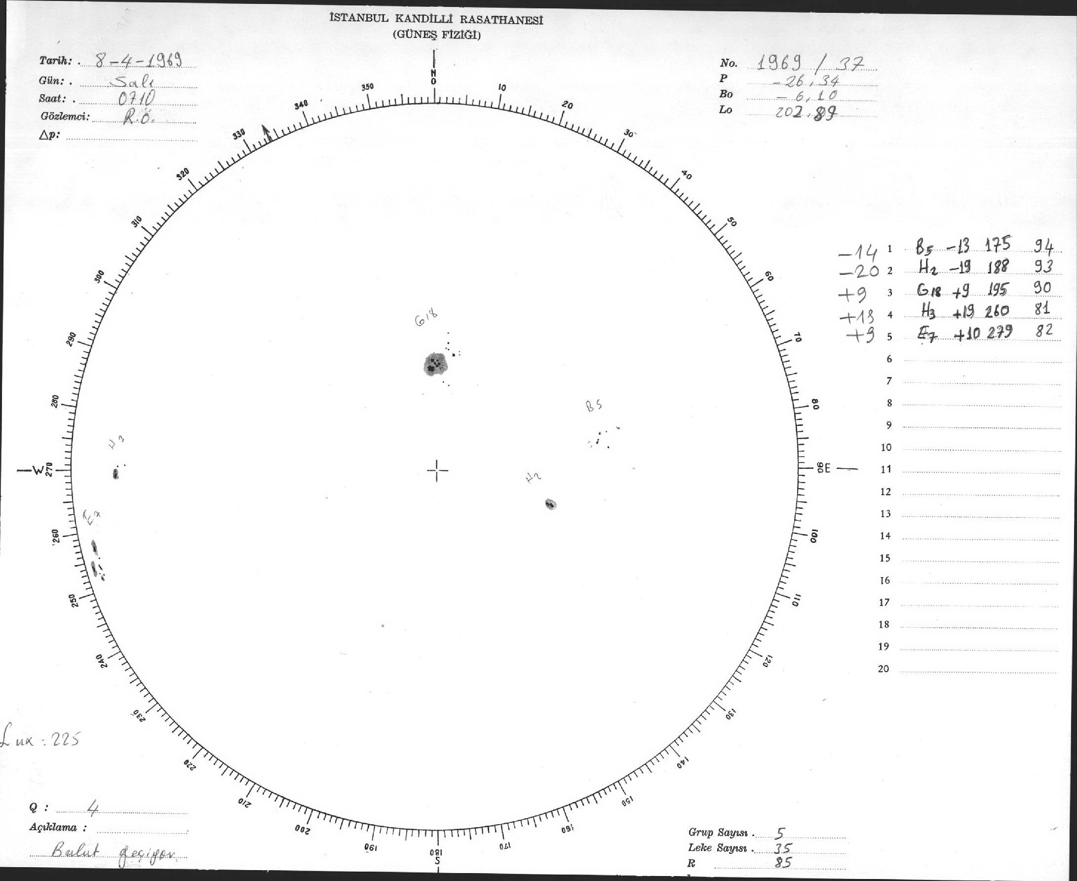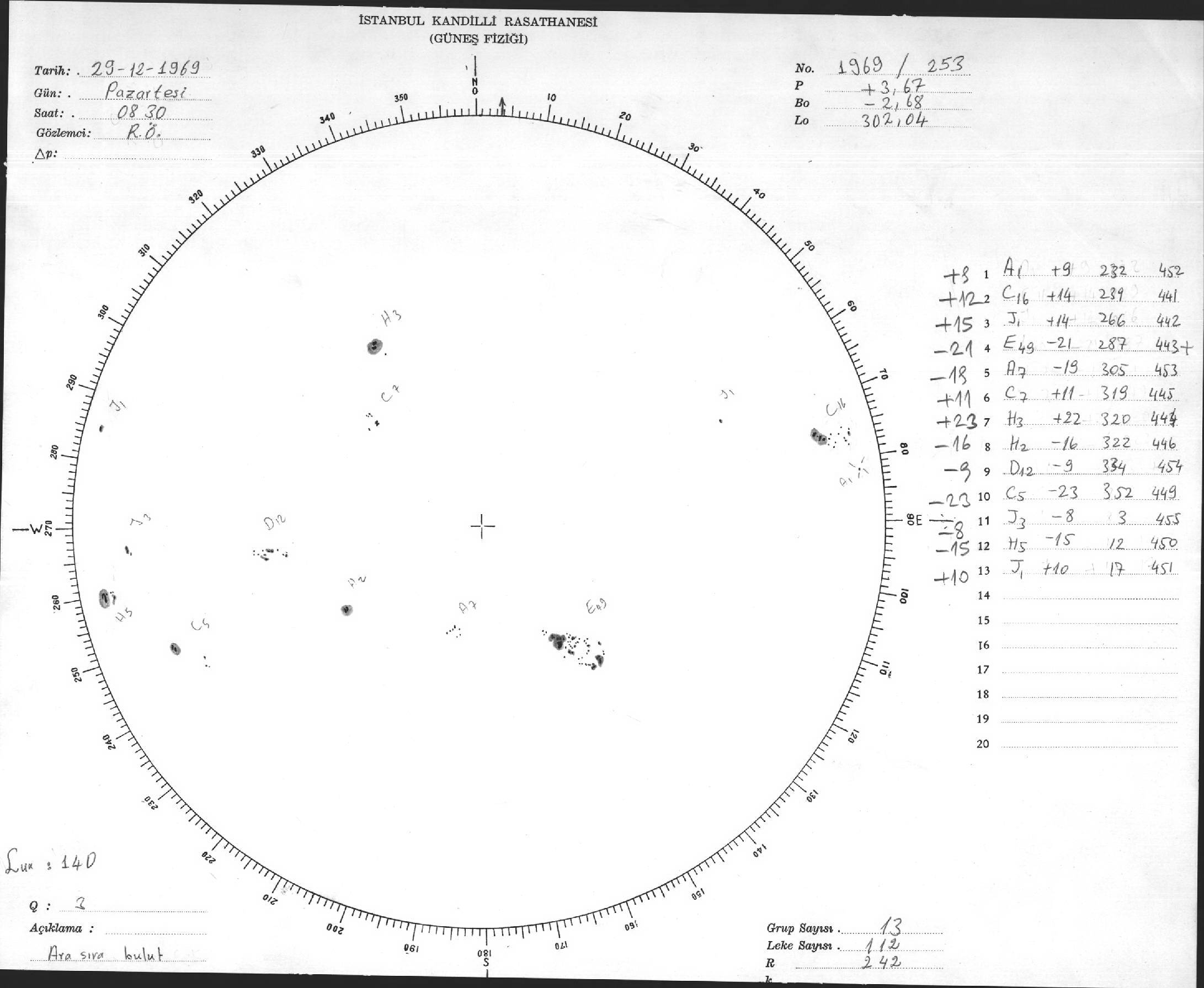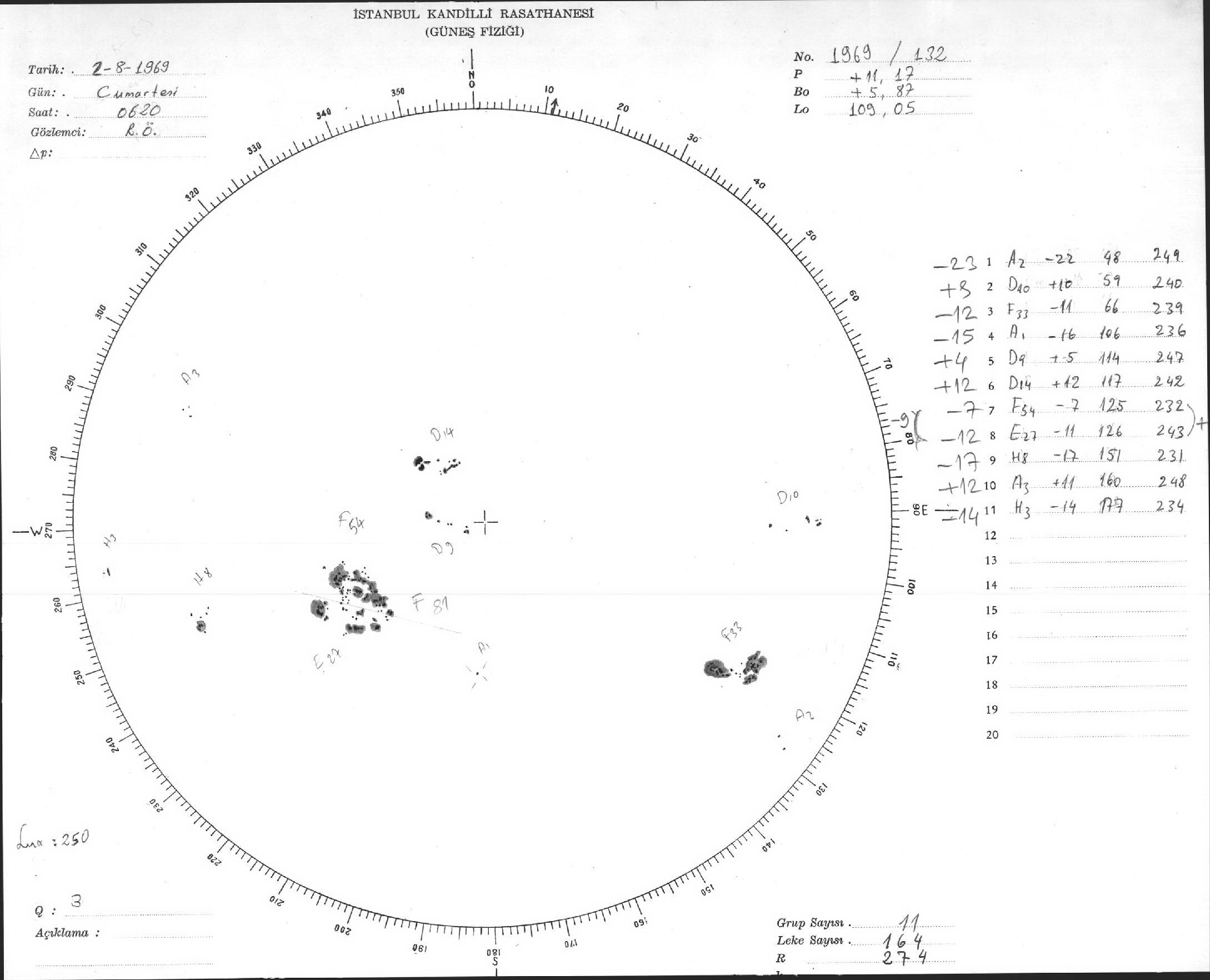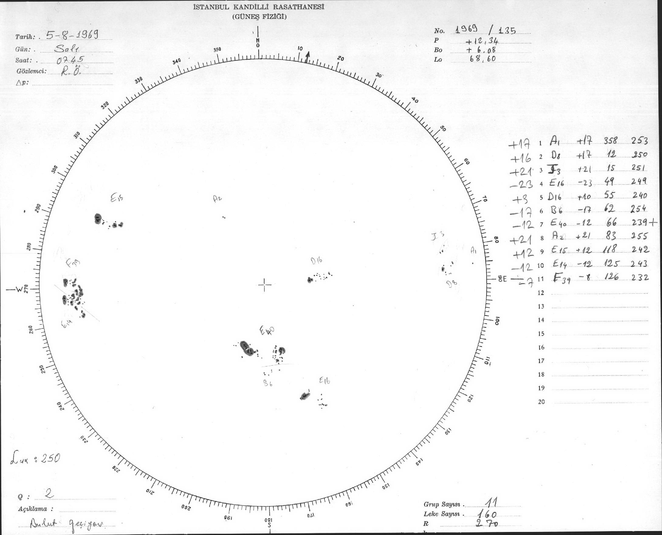 Güneş Lekesi Çizimleri / Kandilli Sunspot Drawings