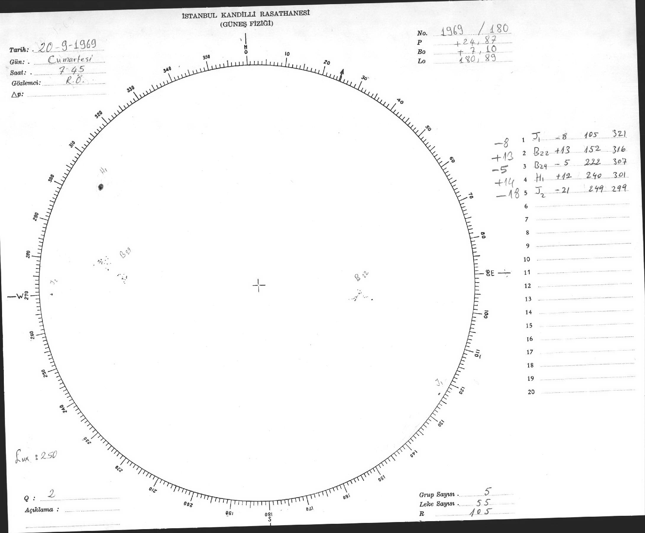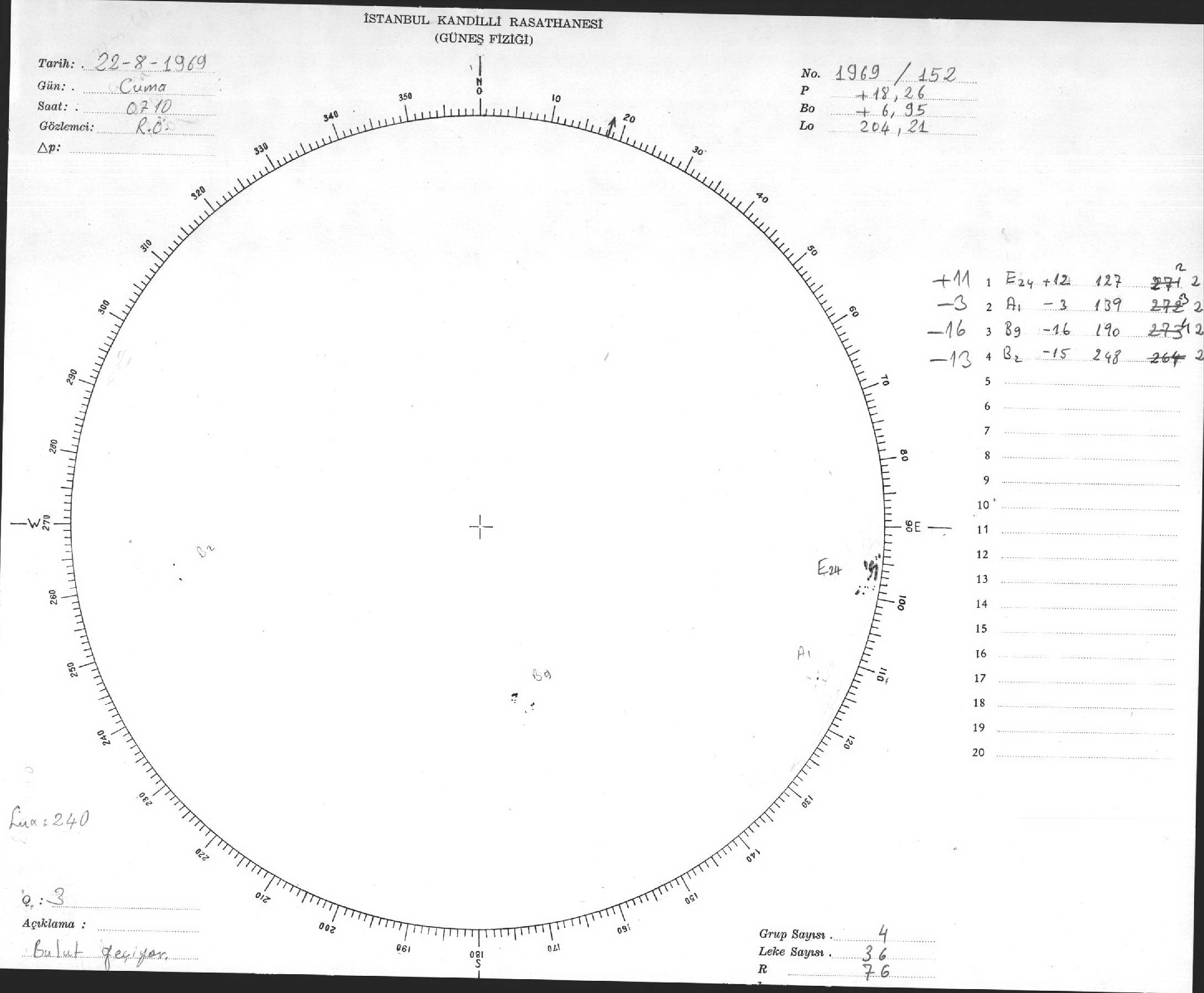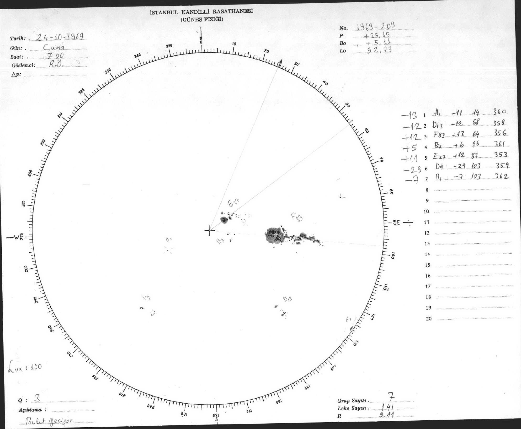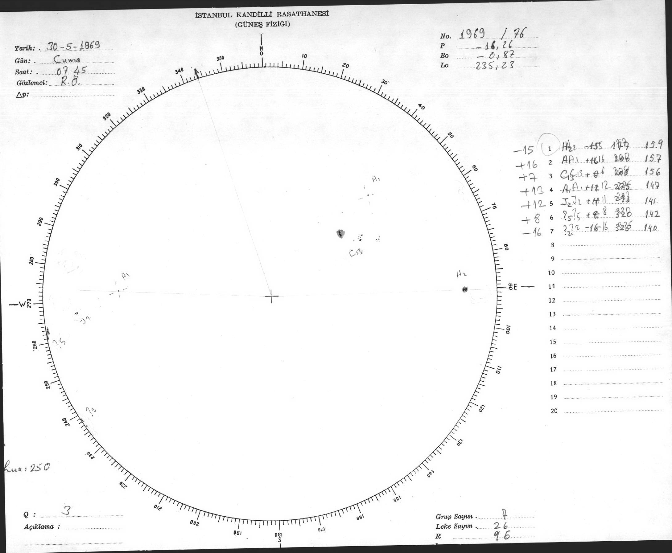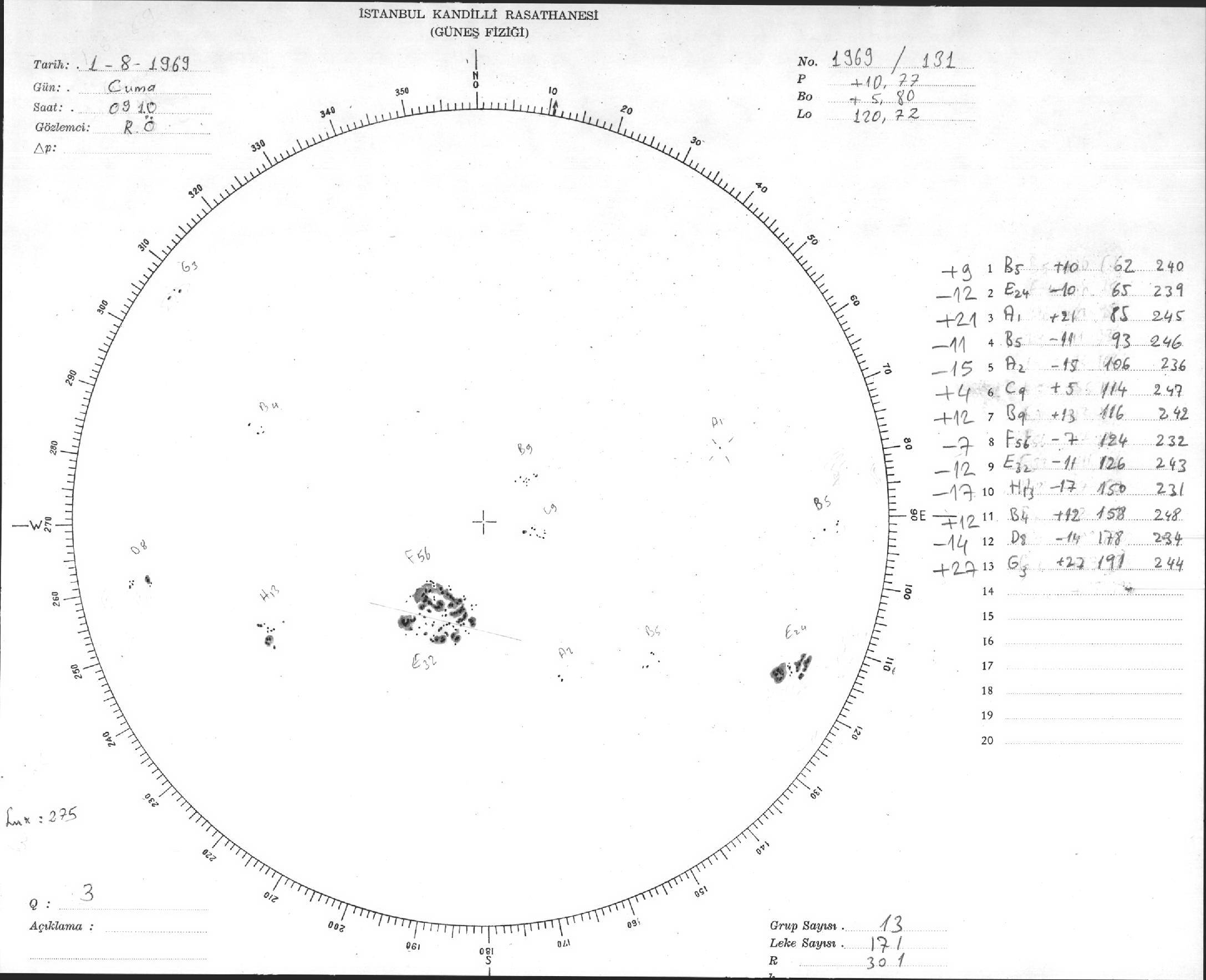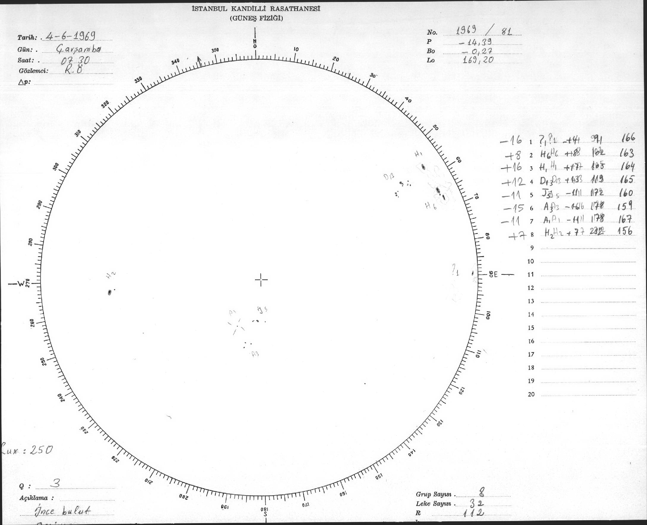 Güneş Lekesi Çizimleri / Kandilli Sunspot Drawings