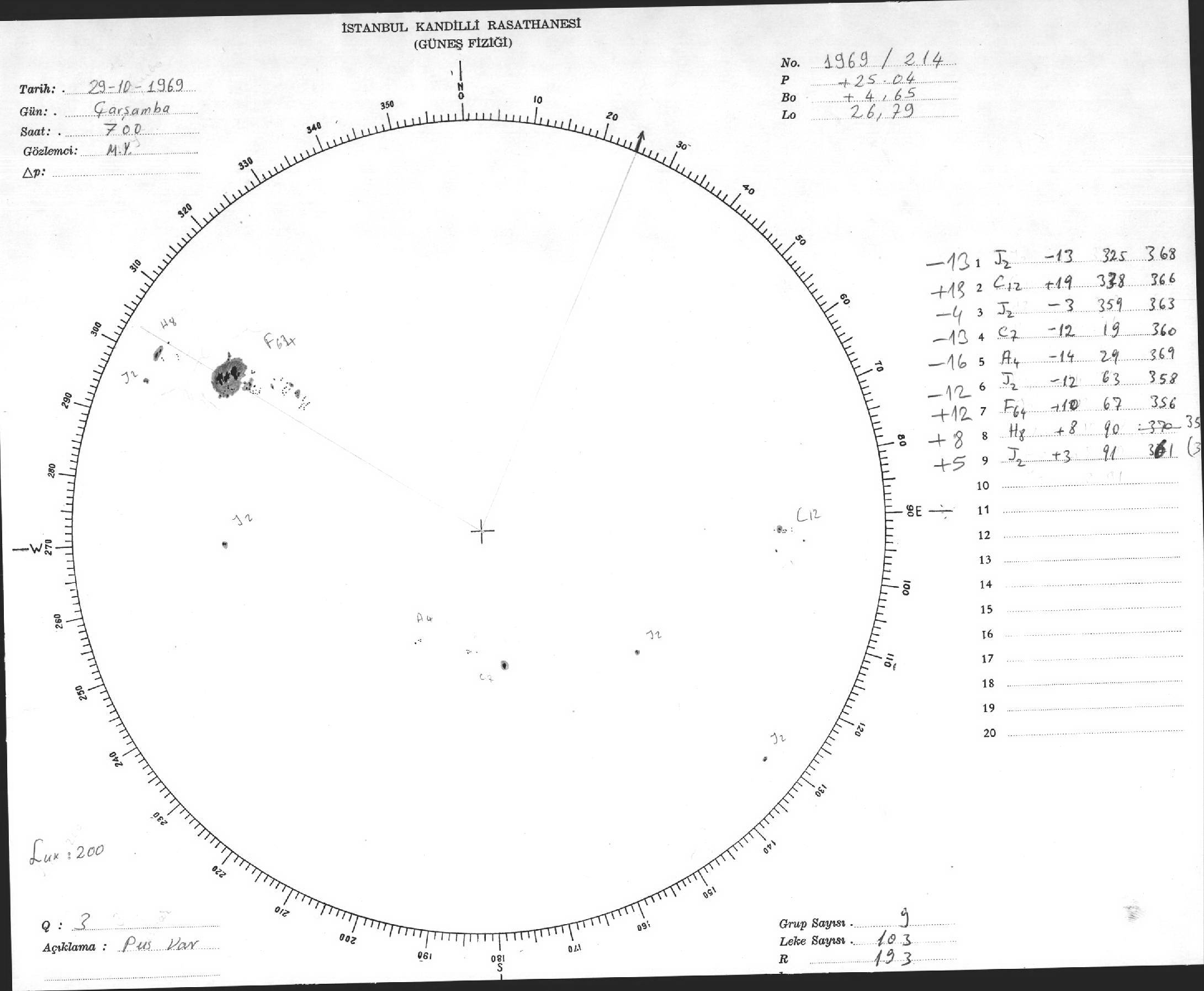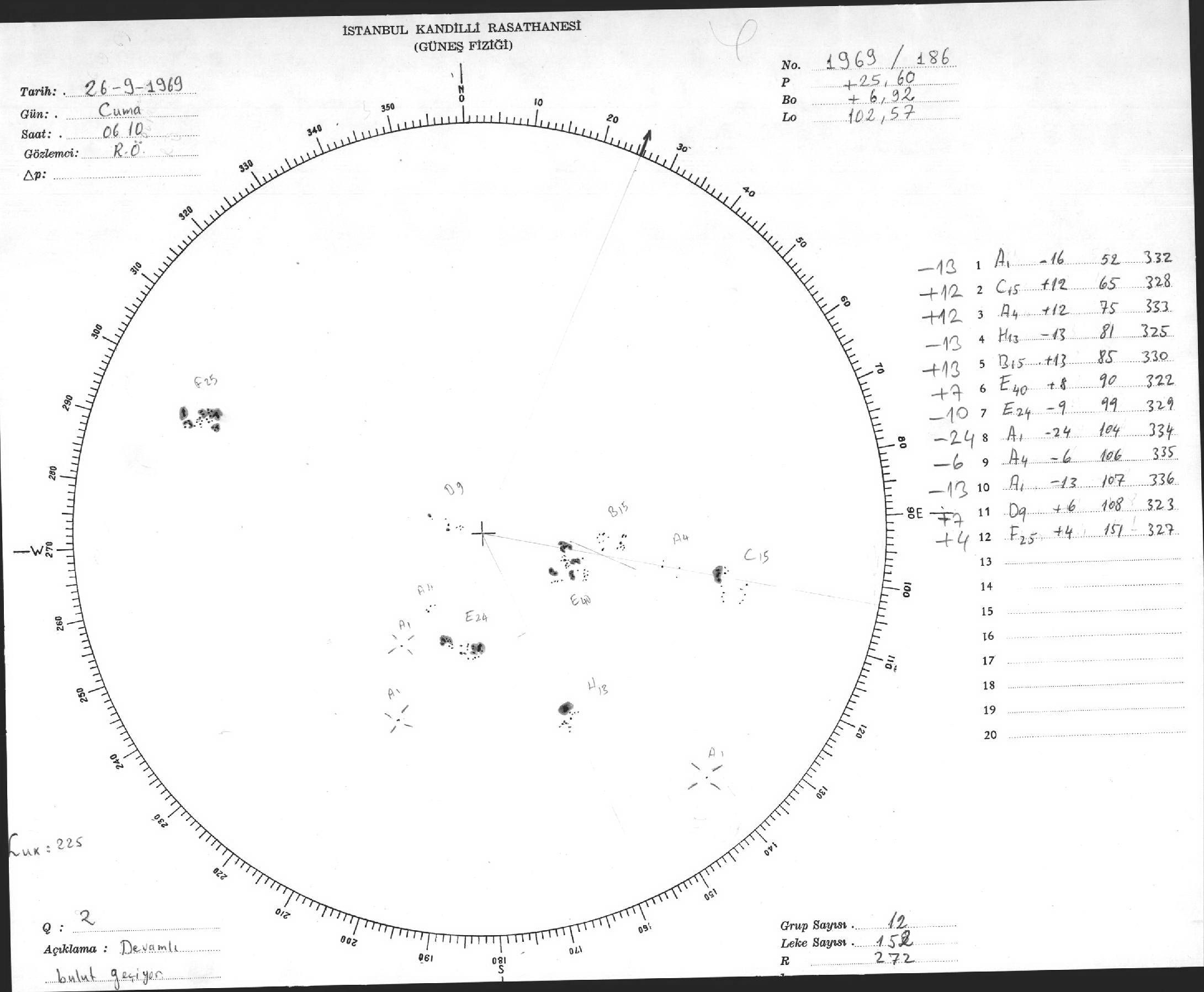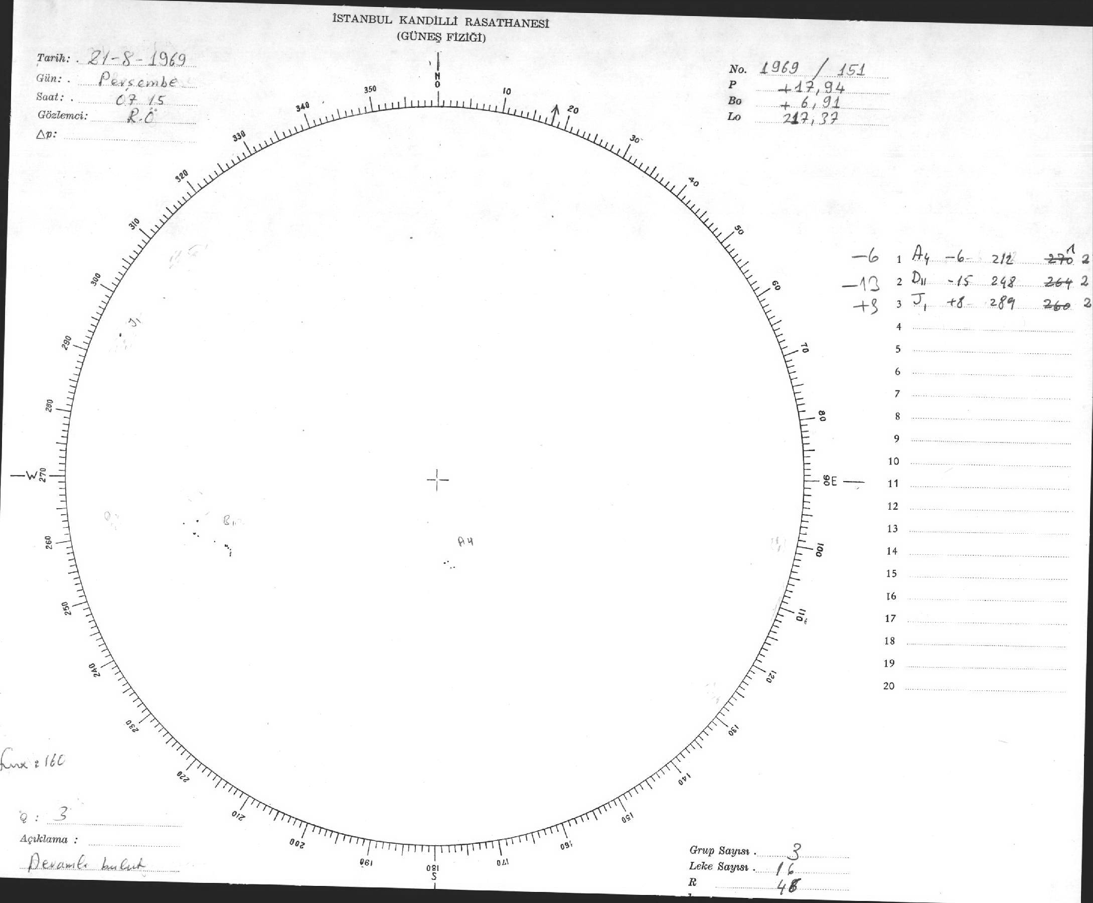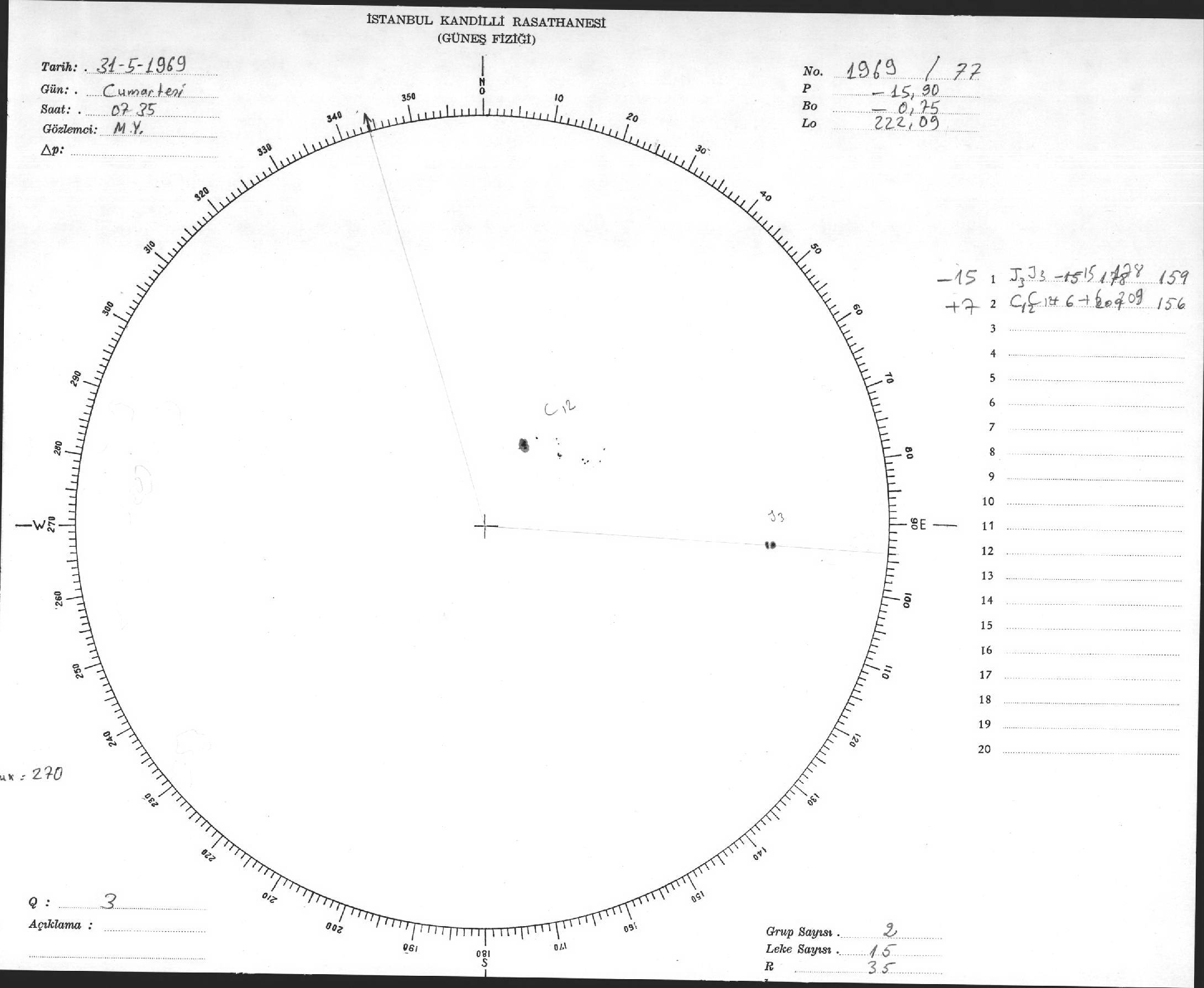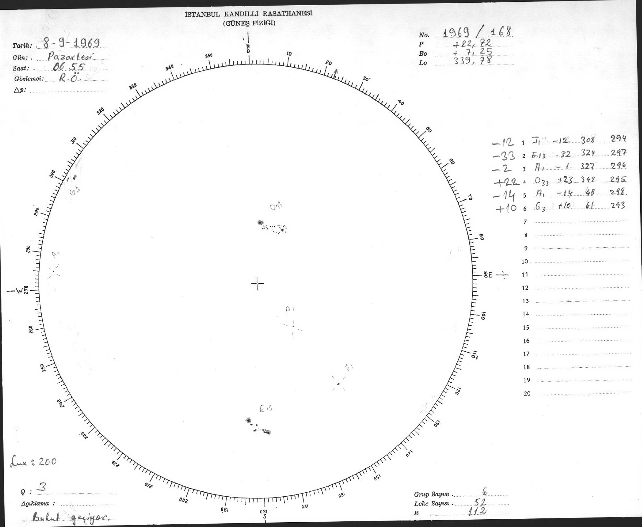 Güneş Lekesi Çizimleri / Kandilli Sunspot Drawings