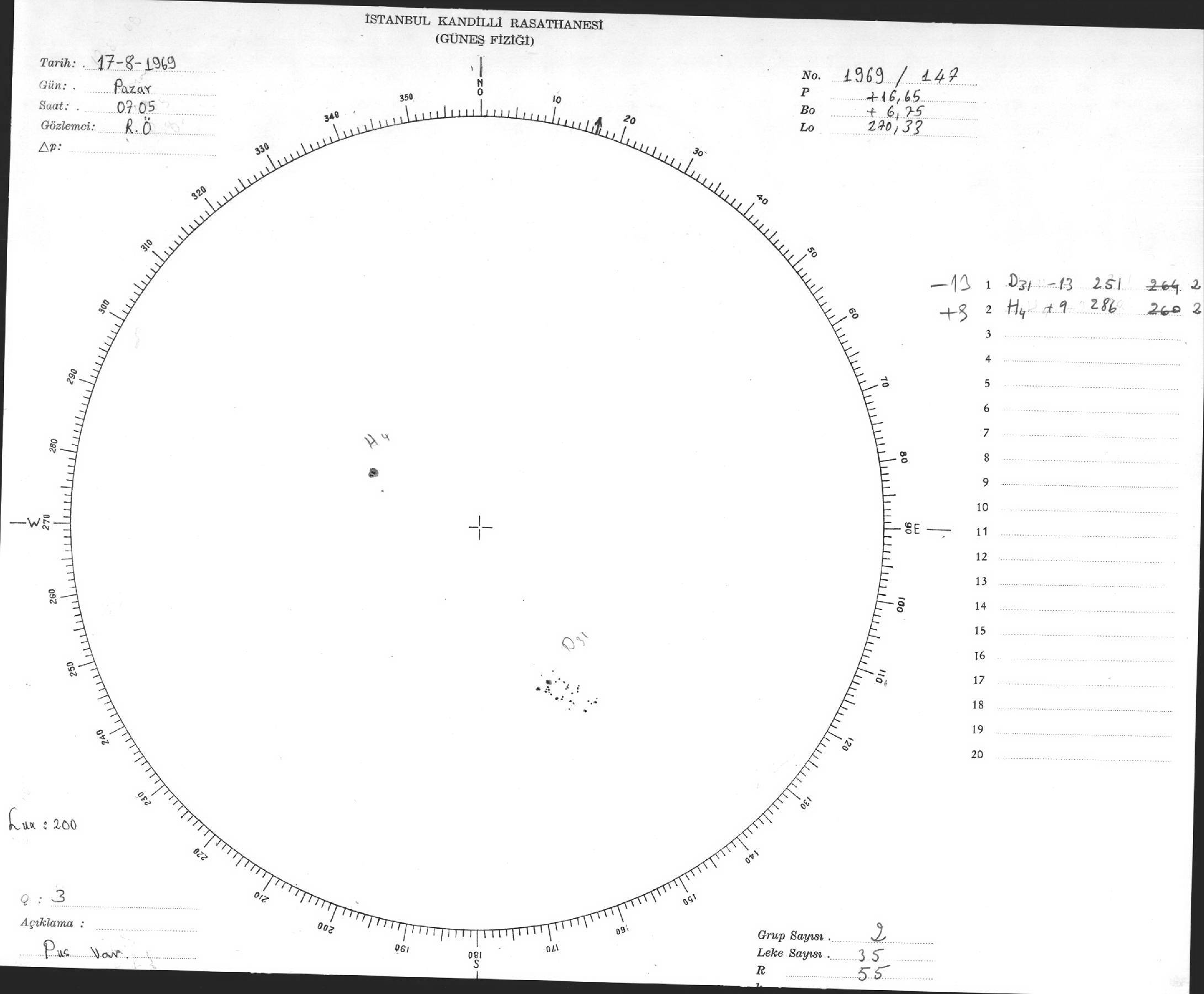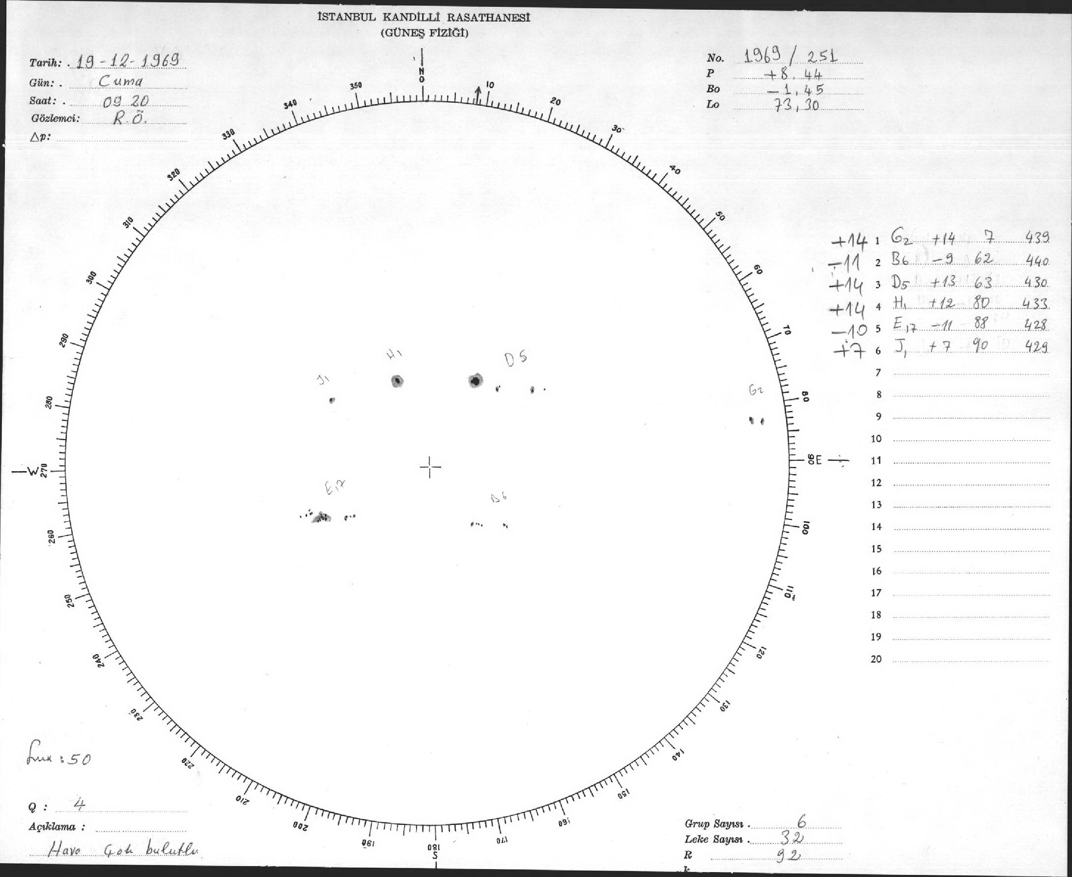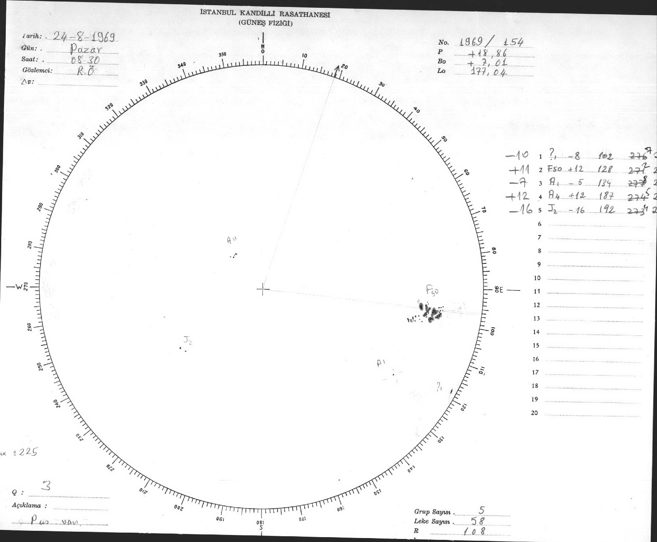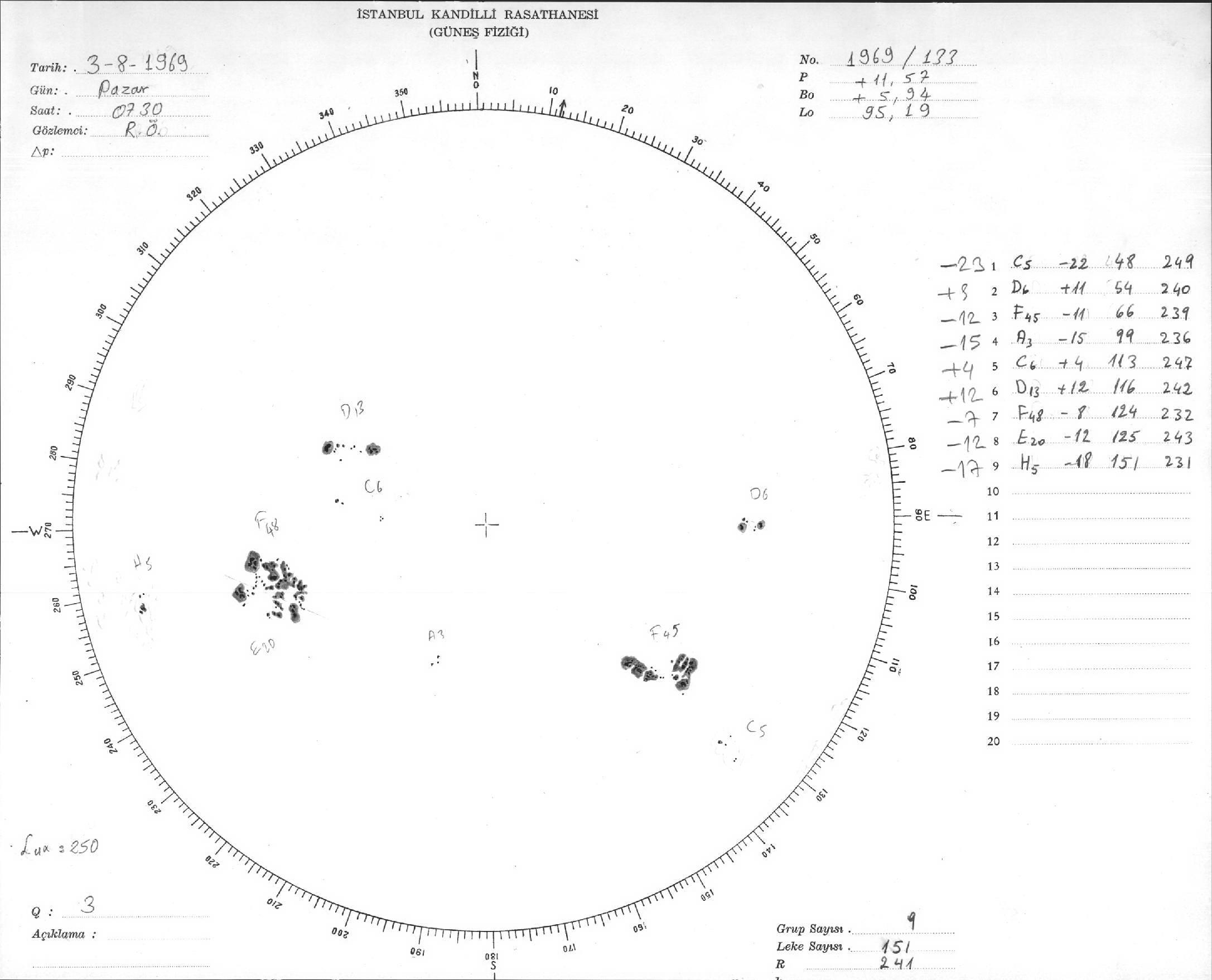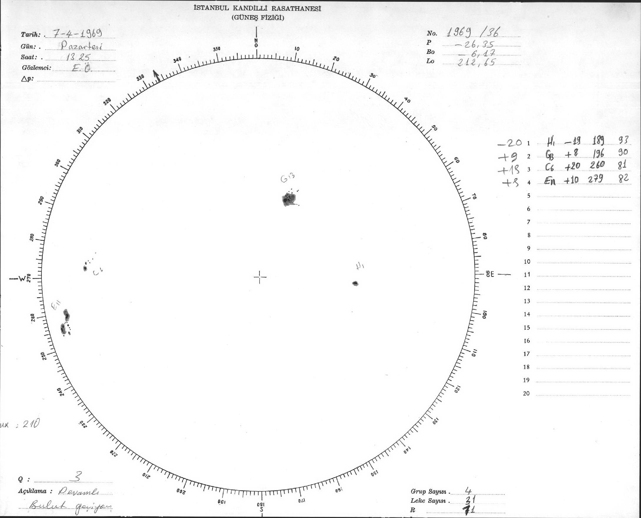Güneş Lekesi Çizimleri / Kandilli Sunspot Drawings