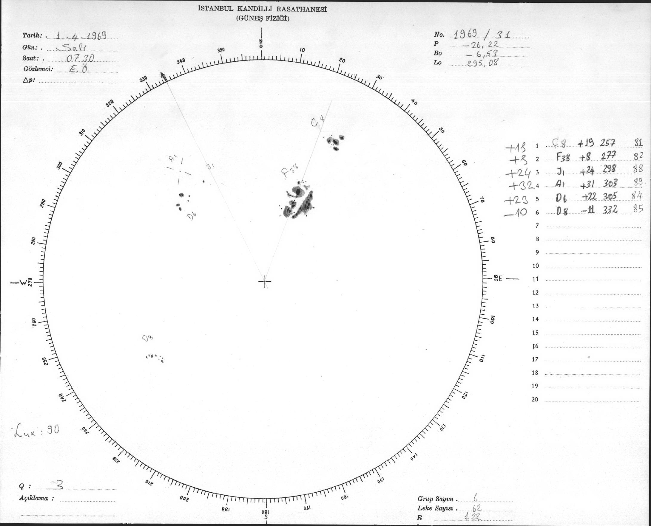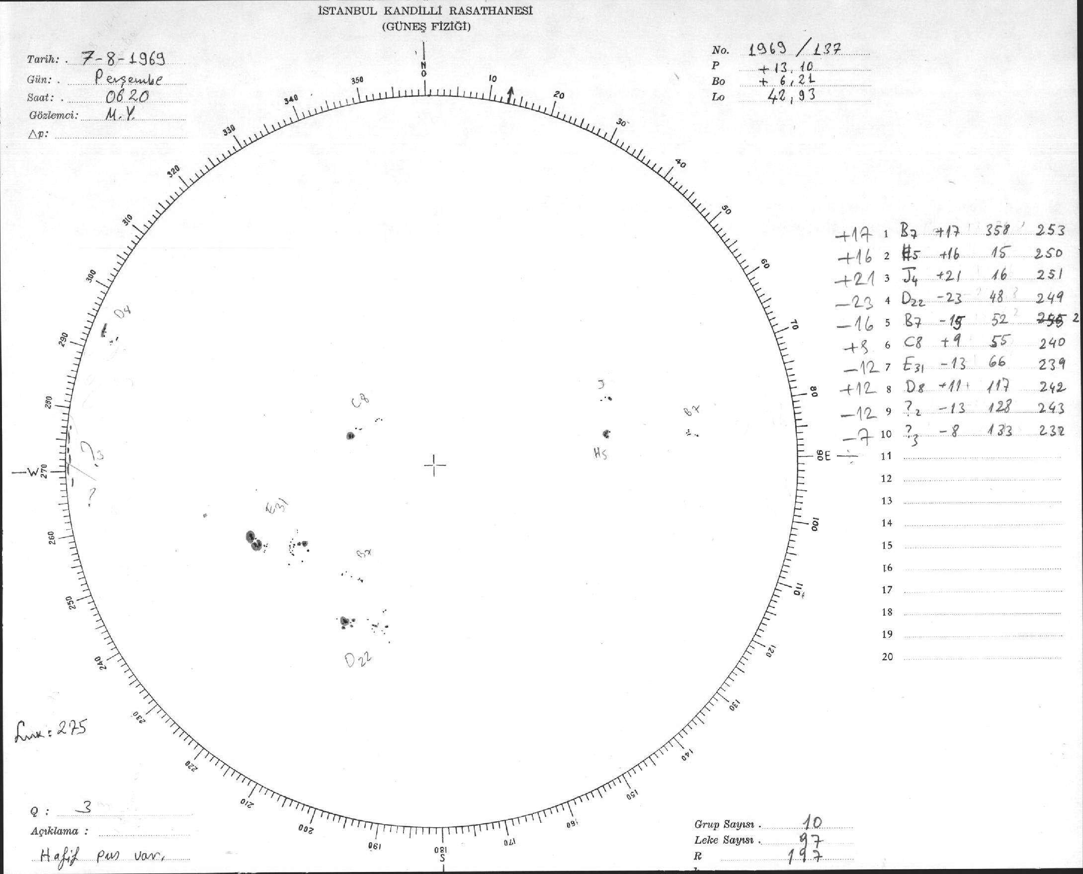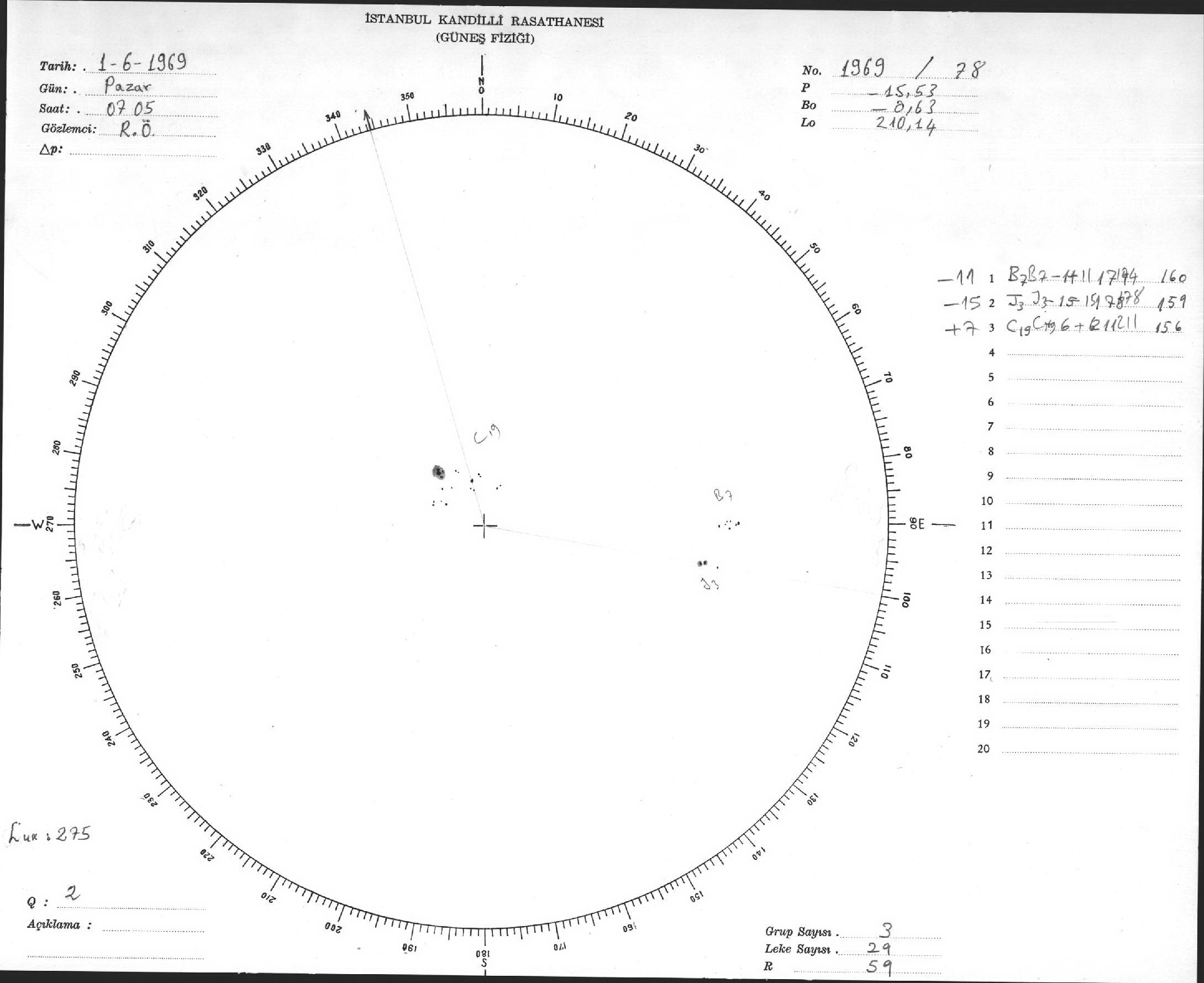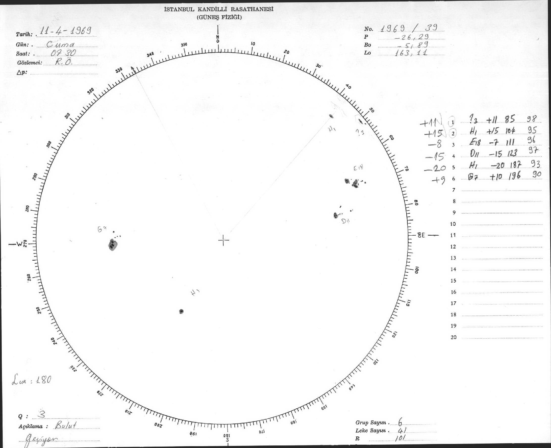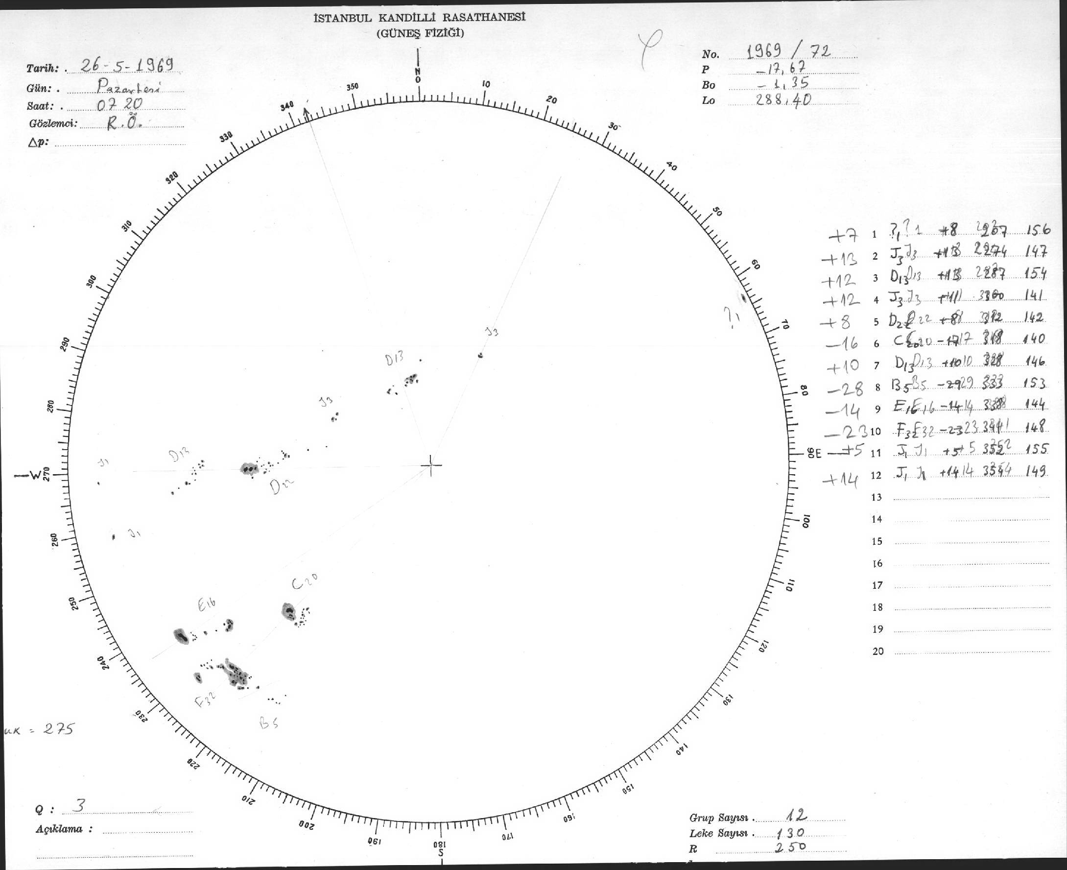 Güneş Lekesi Çizimleri / Kandilli Sunspot Drawings