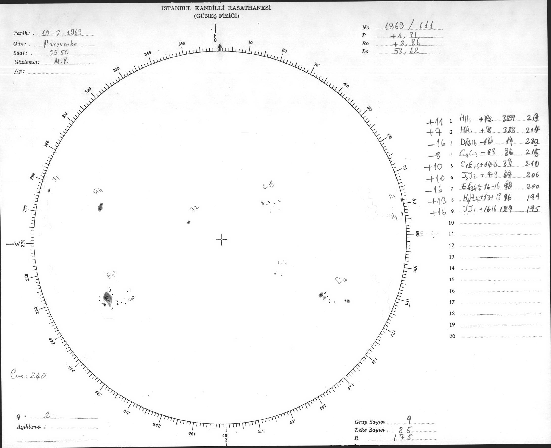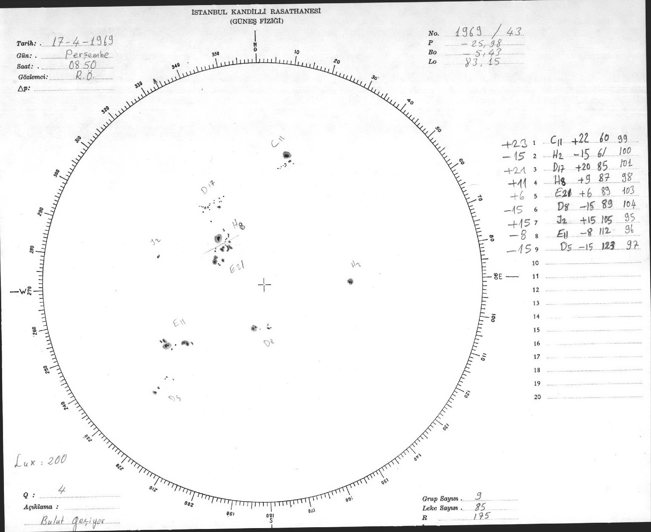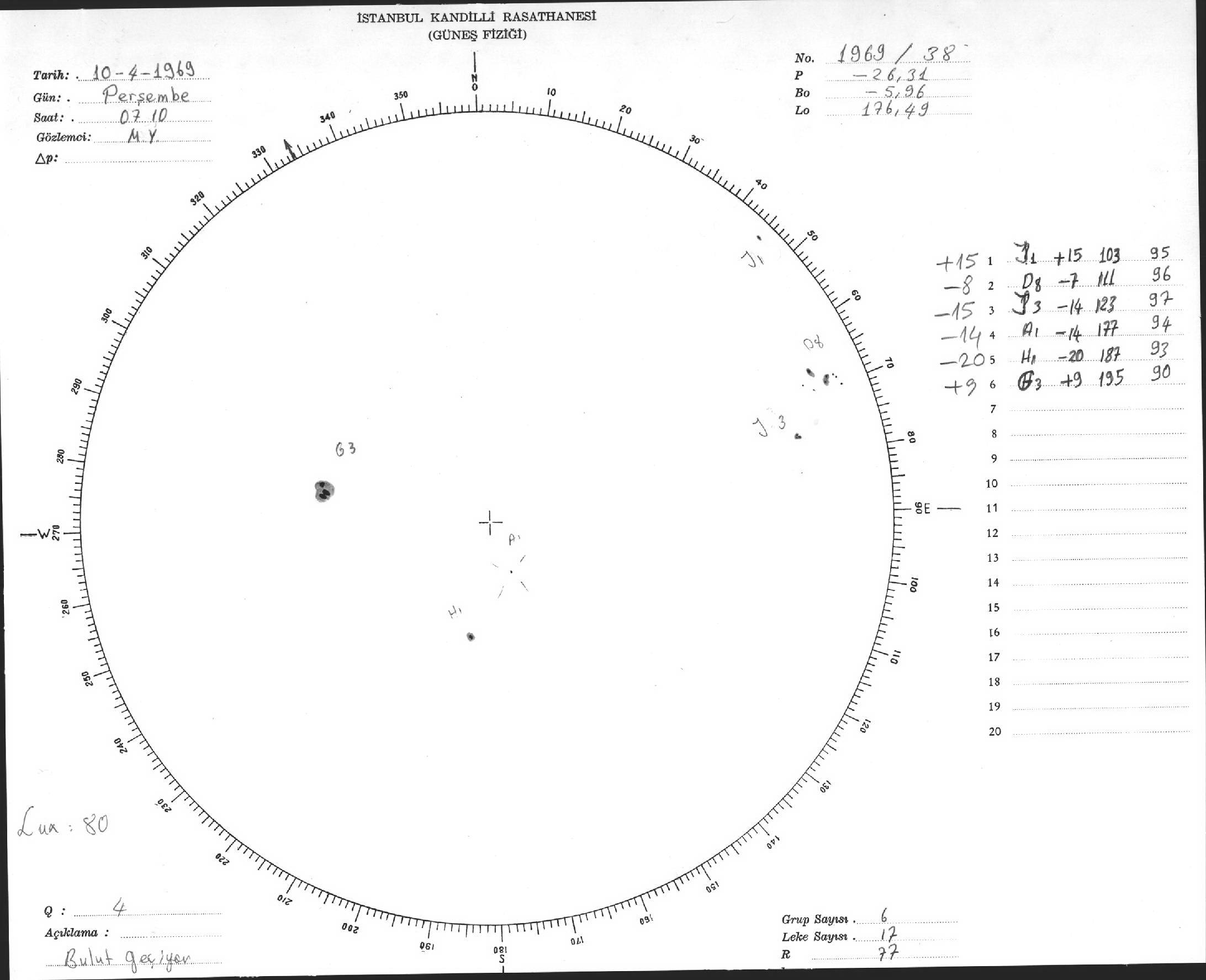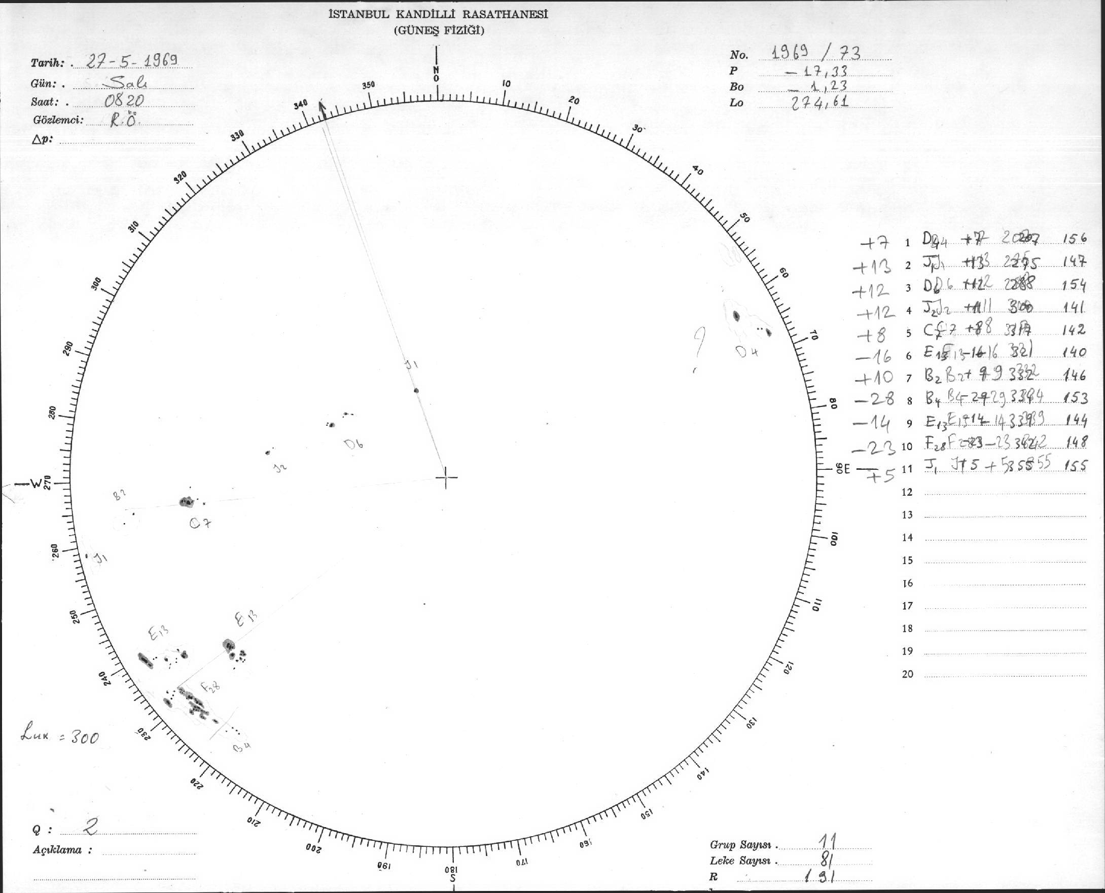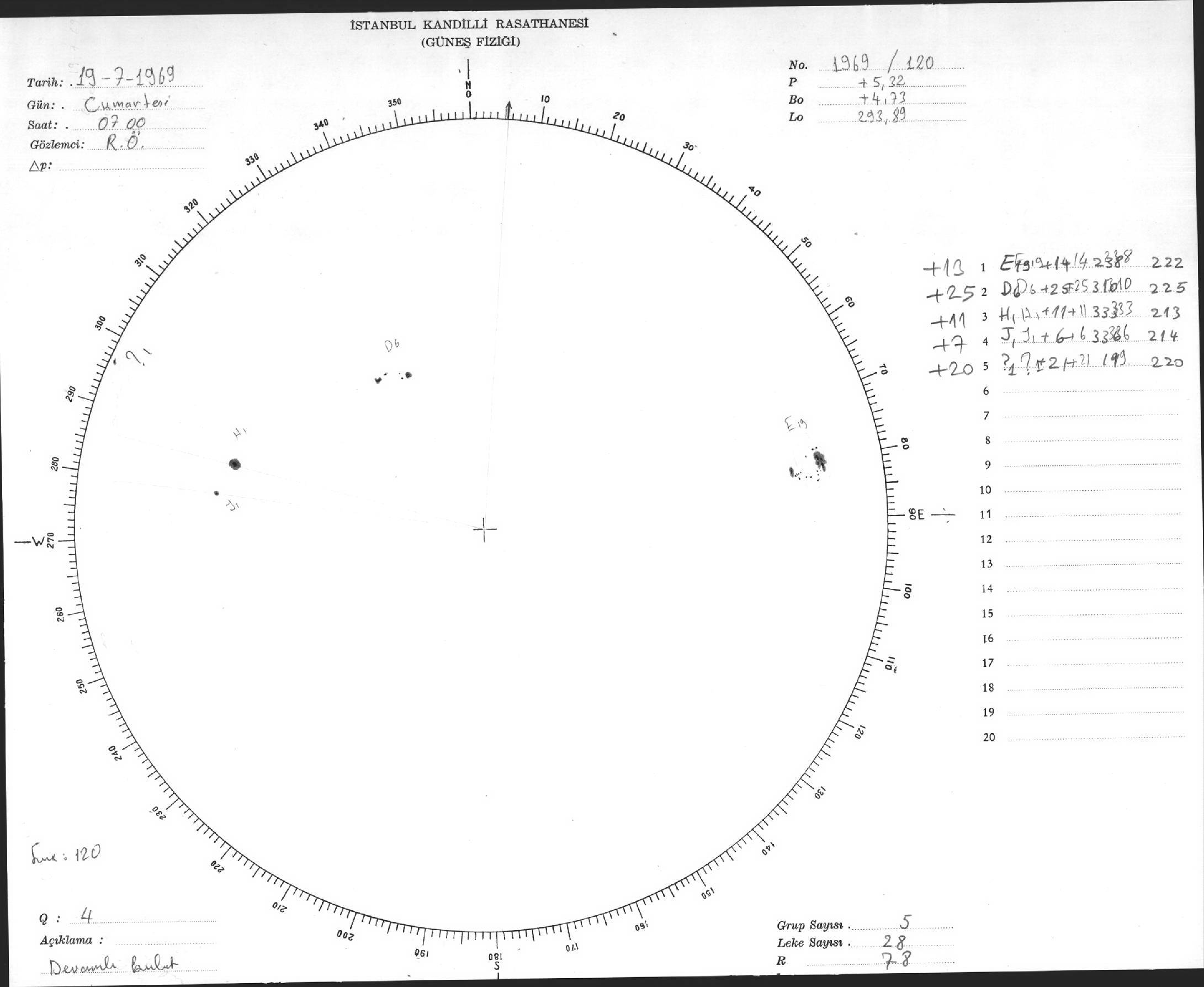 Güneş Lekesi Çizimleri / Kandilli Sunspot Drawings