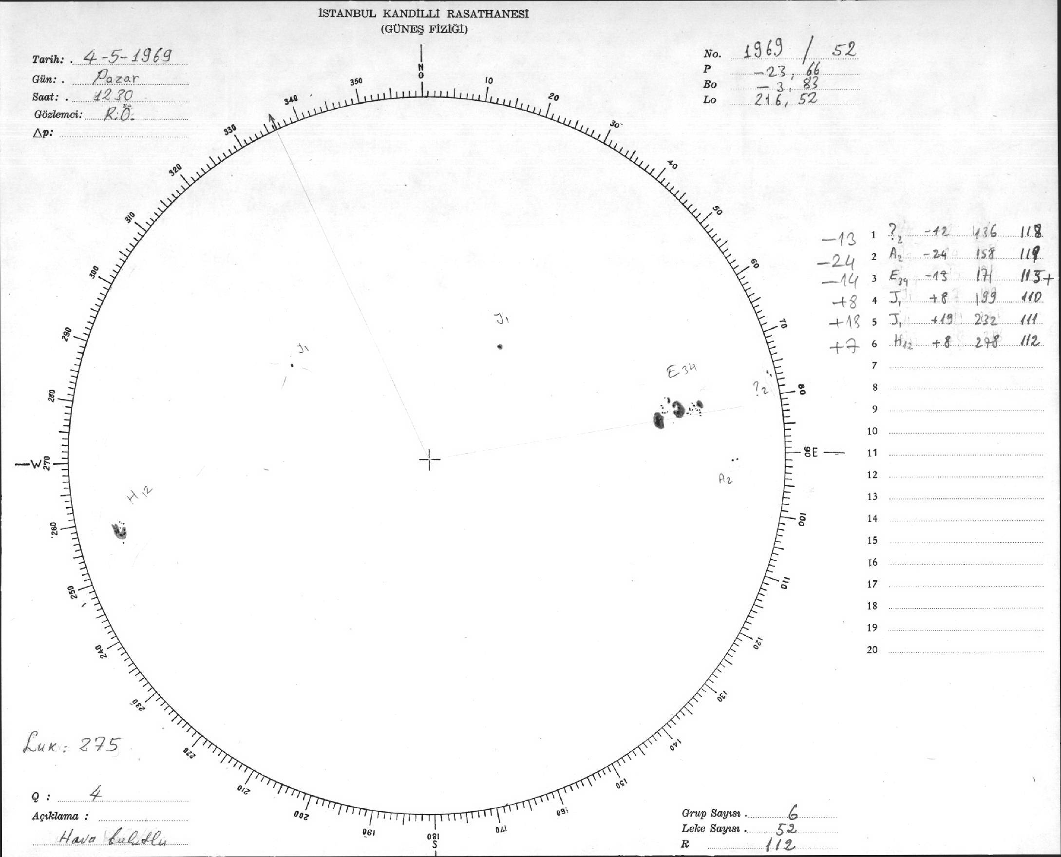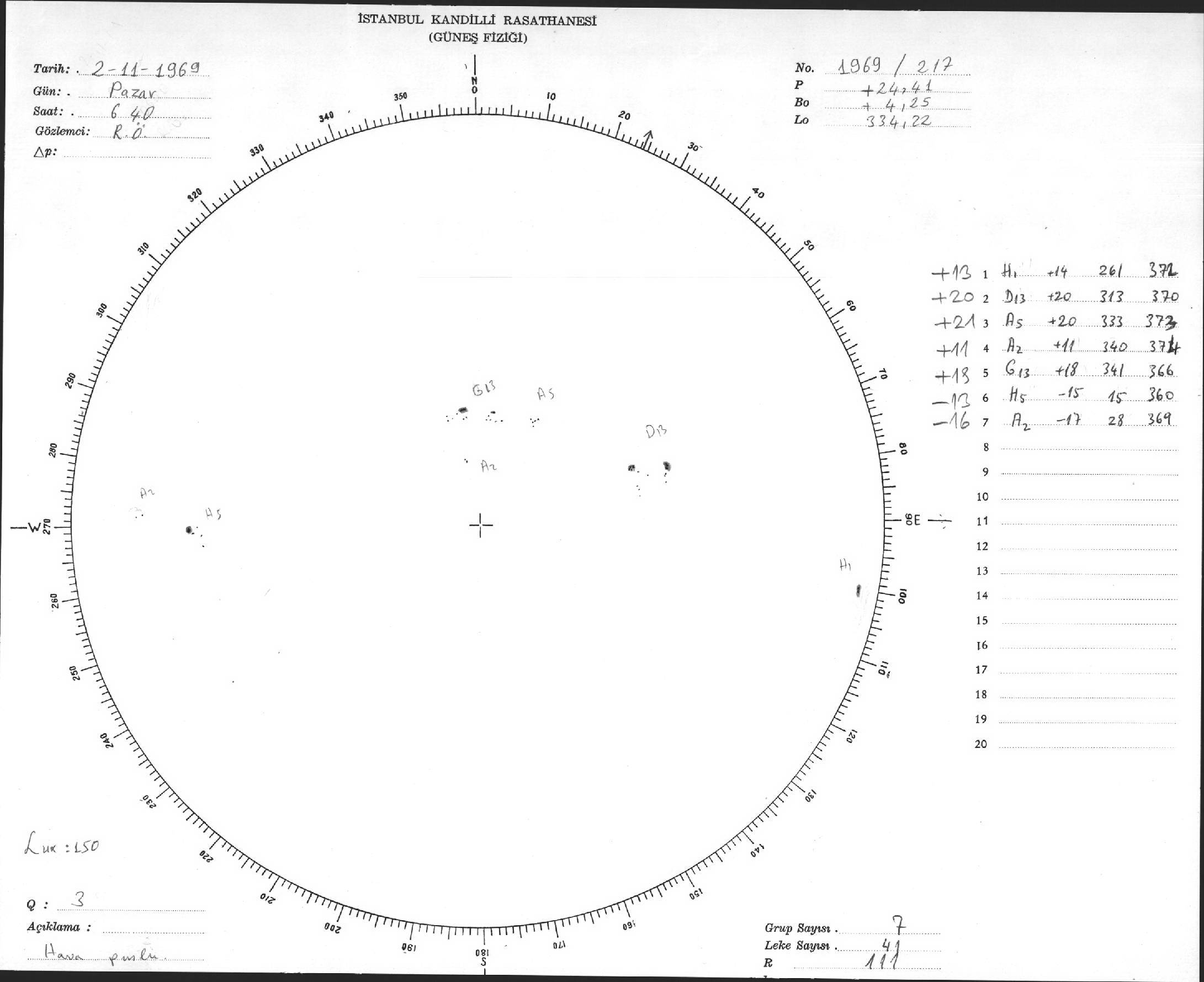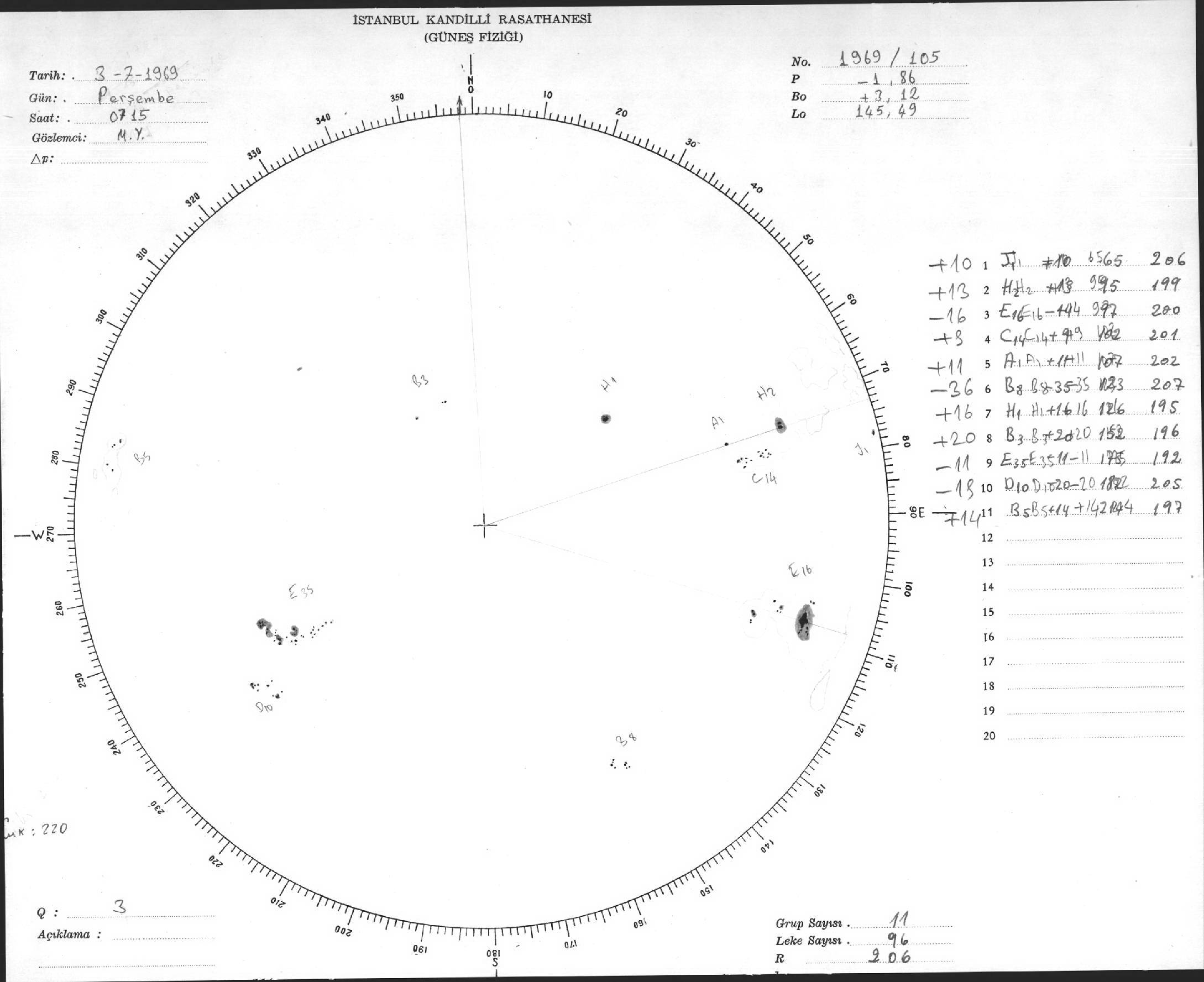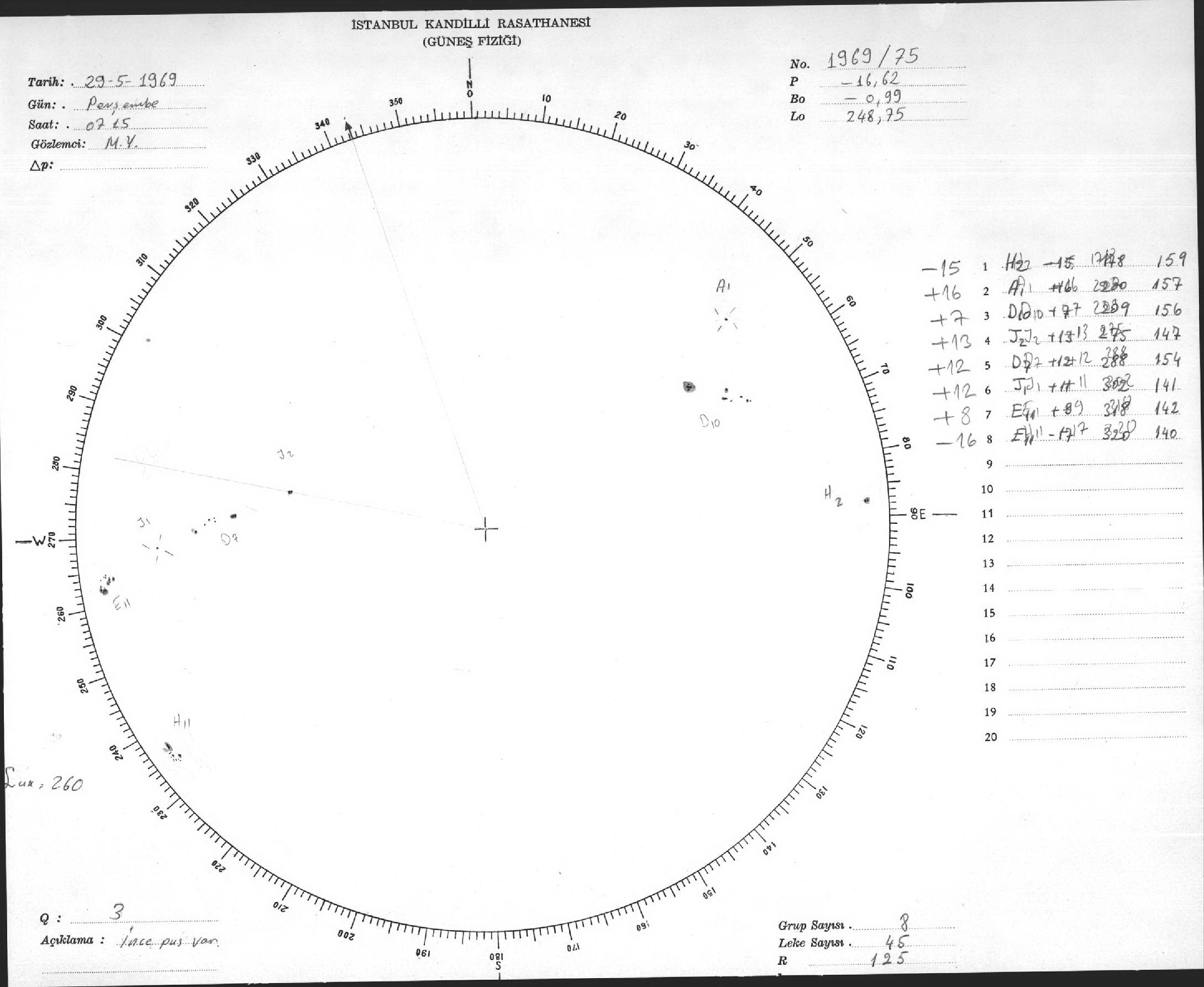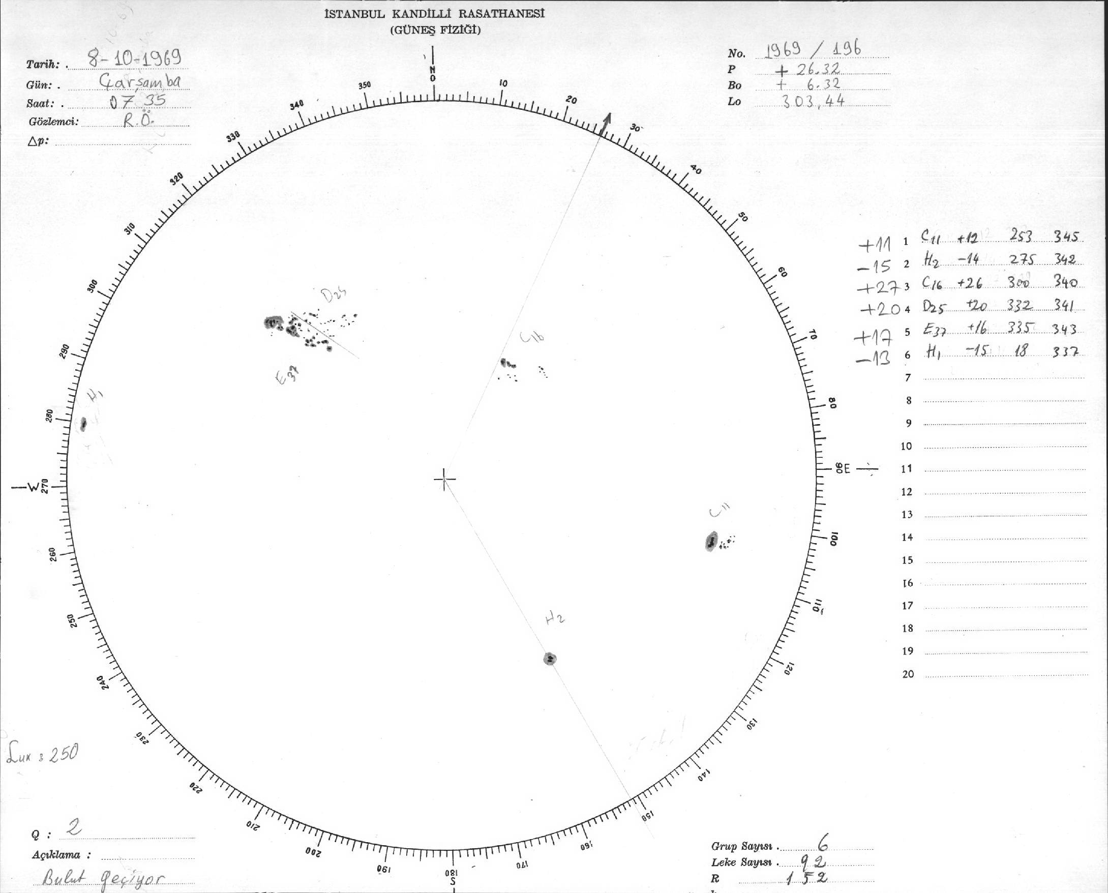 Güneş Lekesi Çizimleri / Kandilli Sunspot Drawings