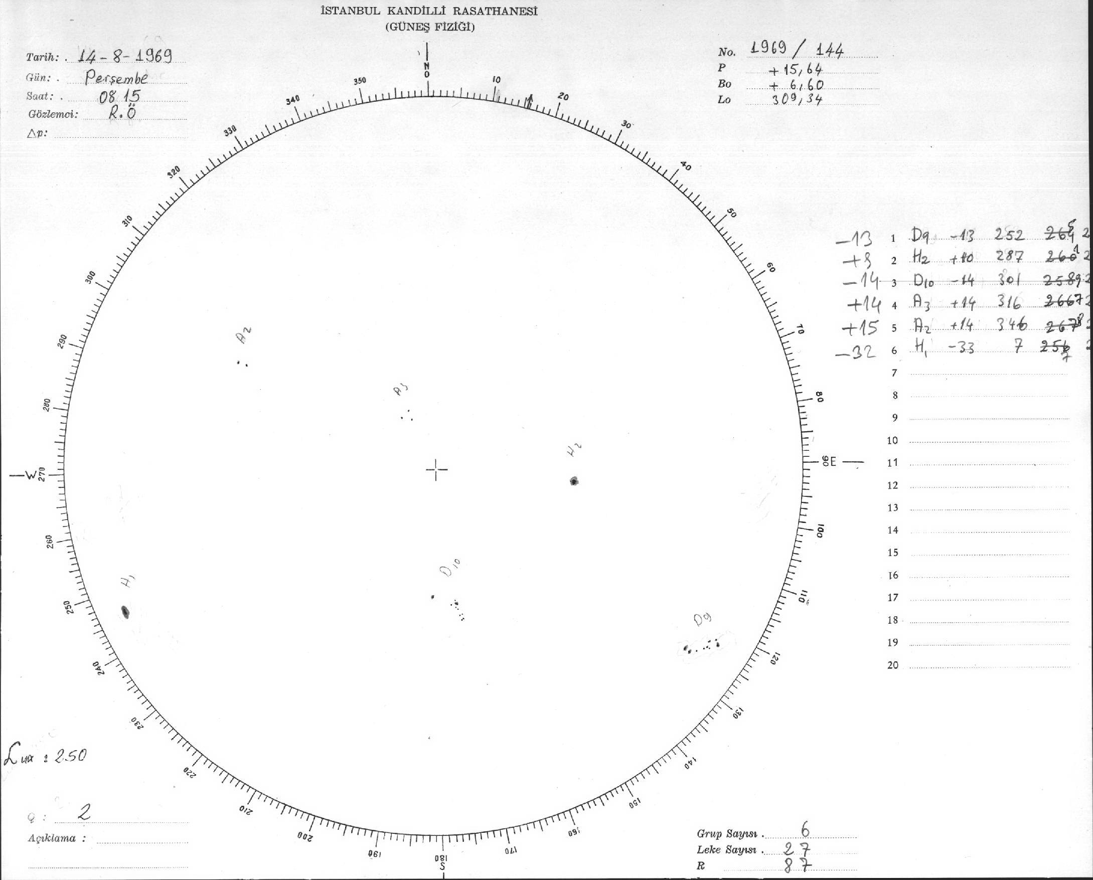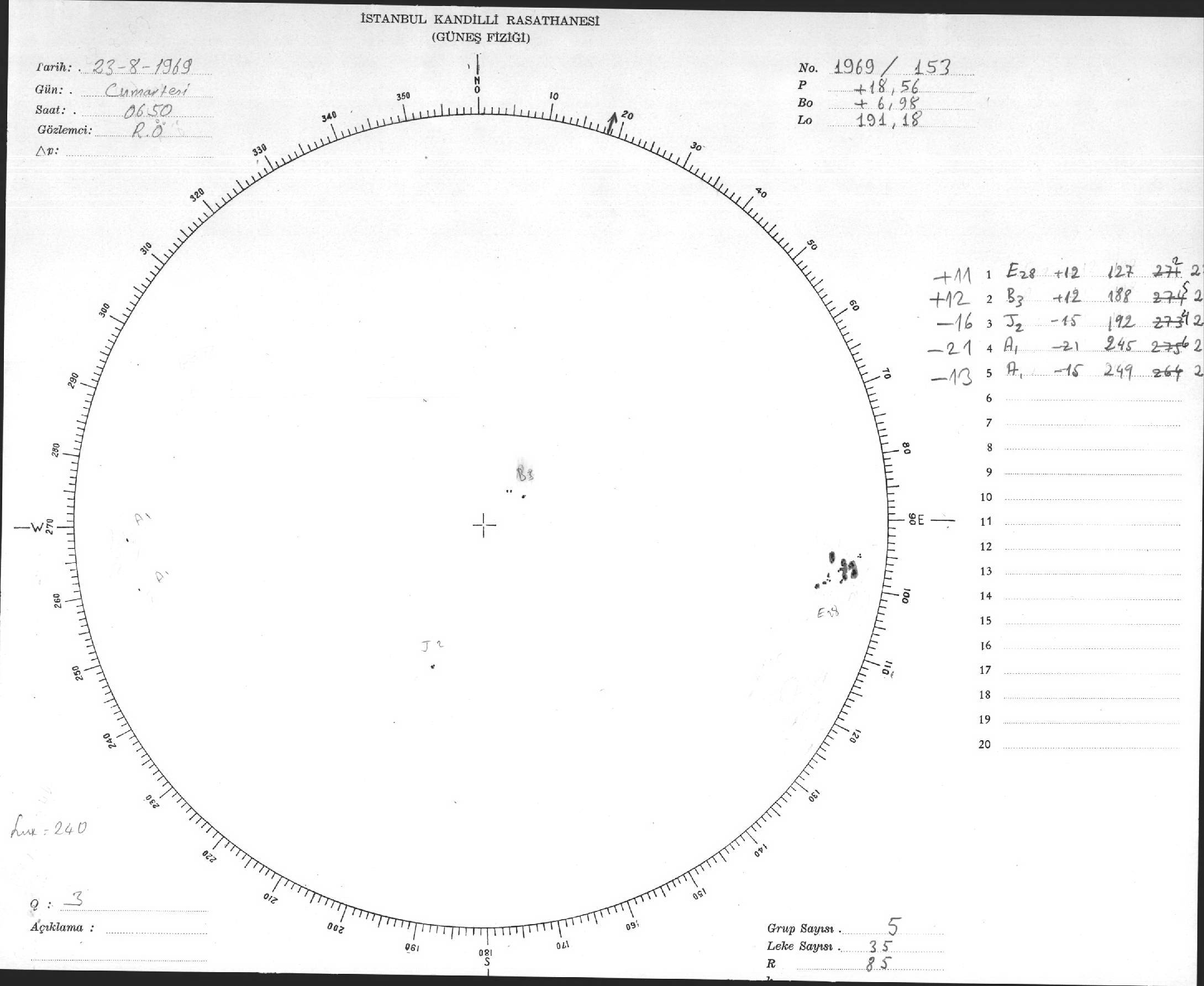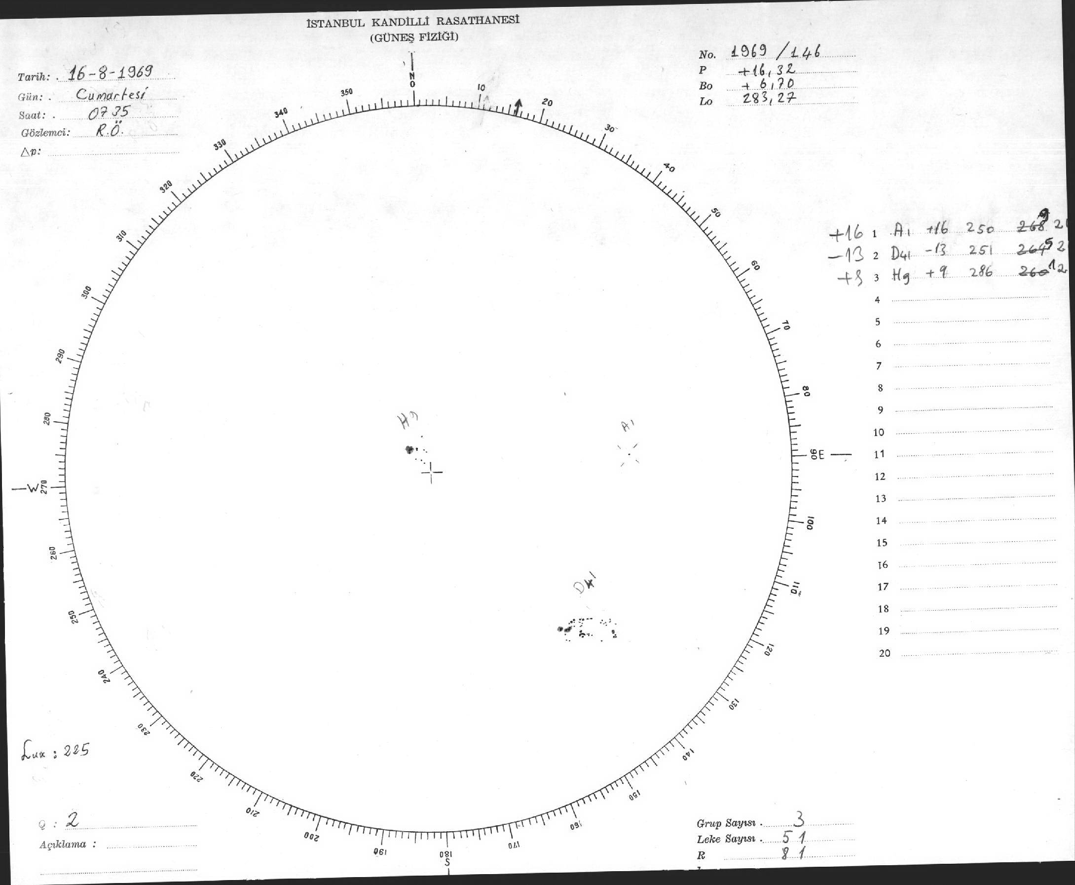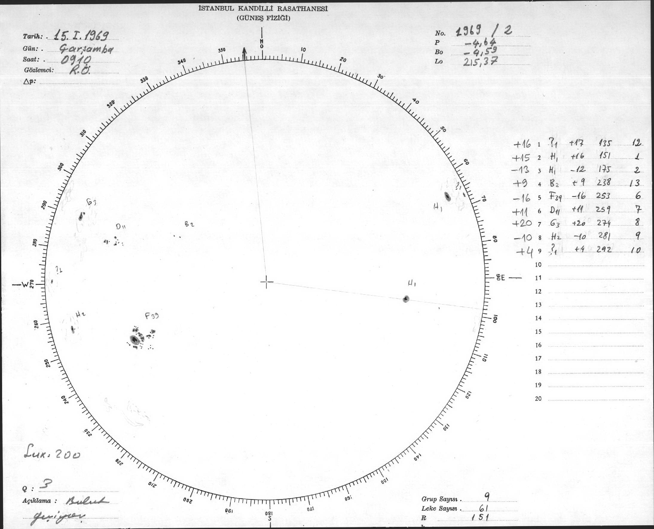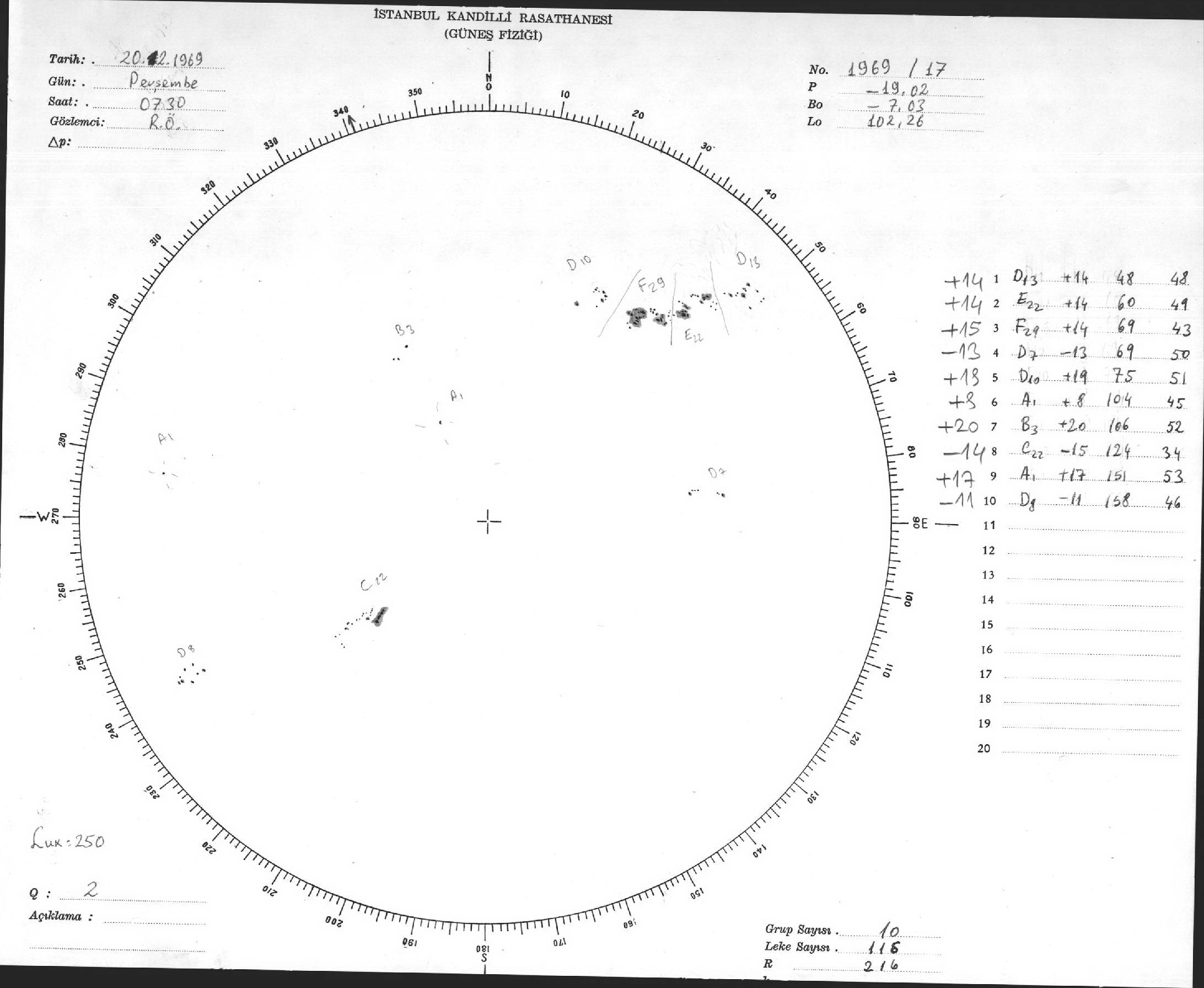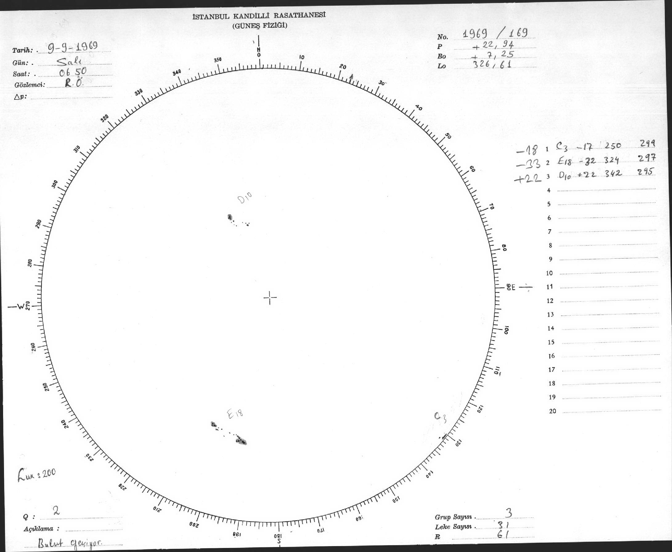 Güneş Lekesi Çizimleri / Kandilli Sunspot Drawings