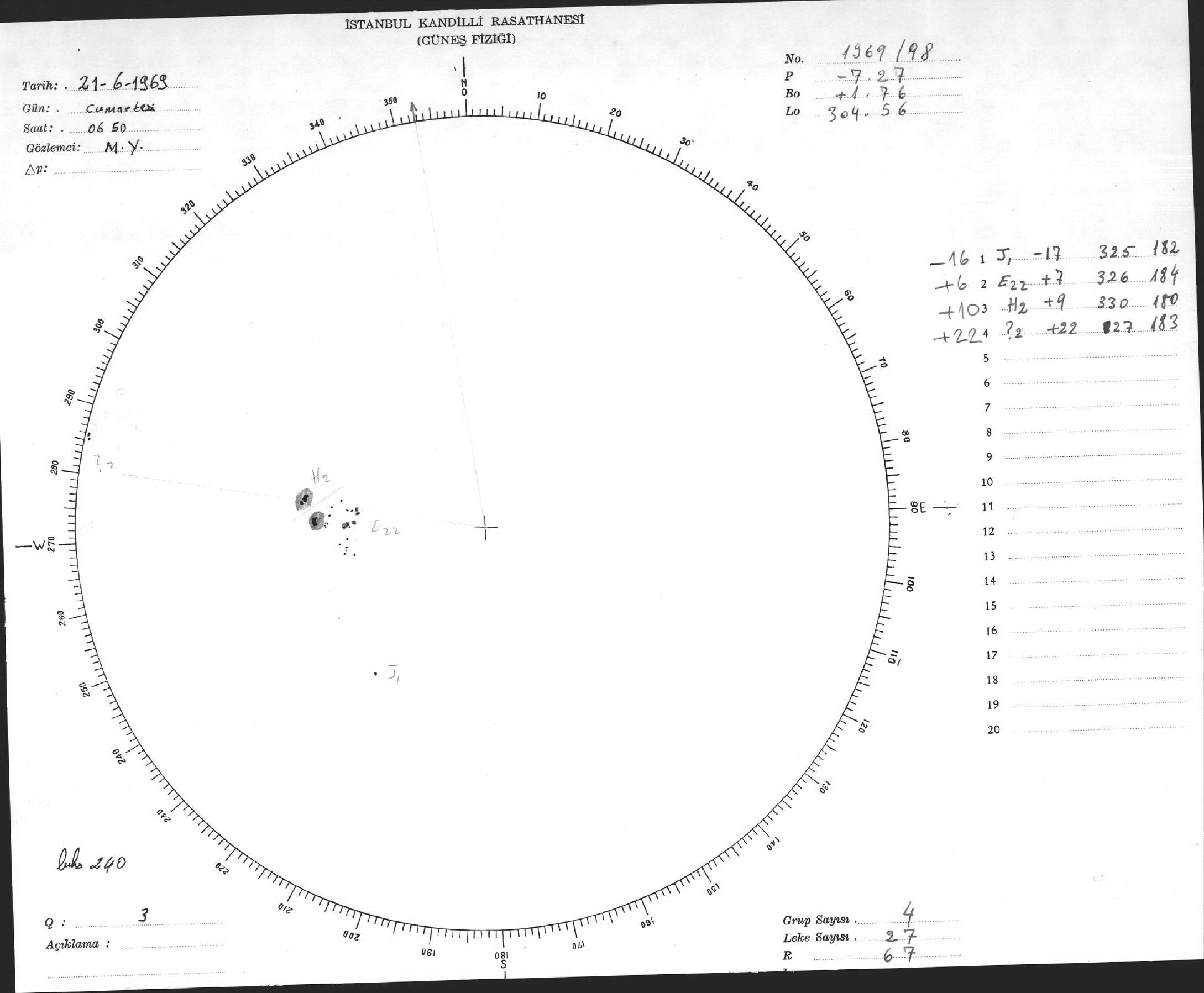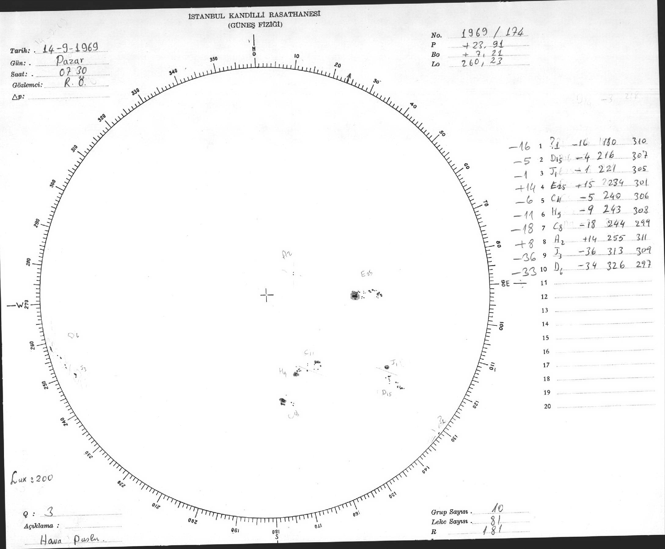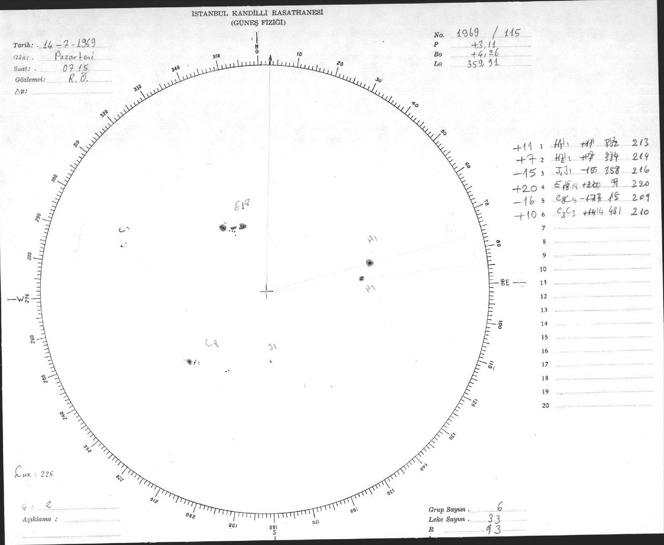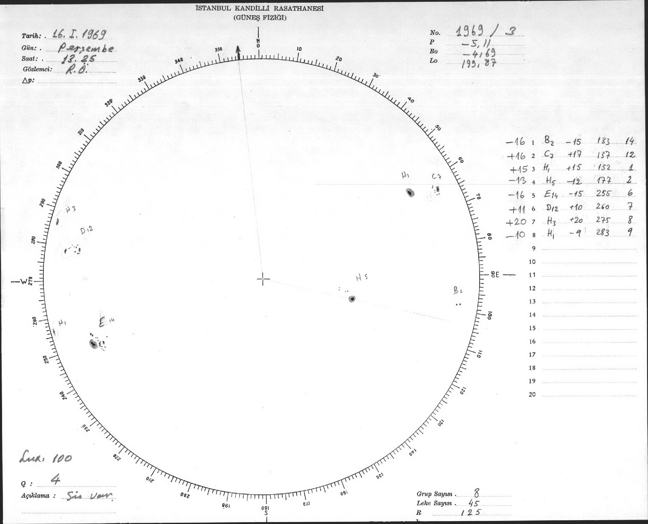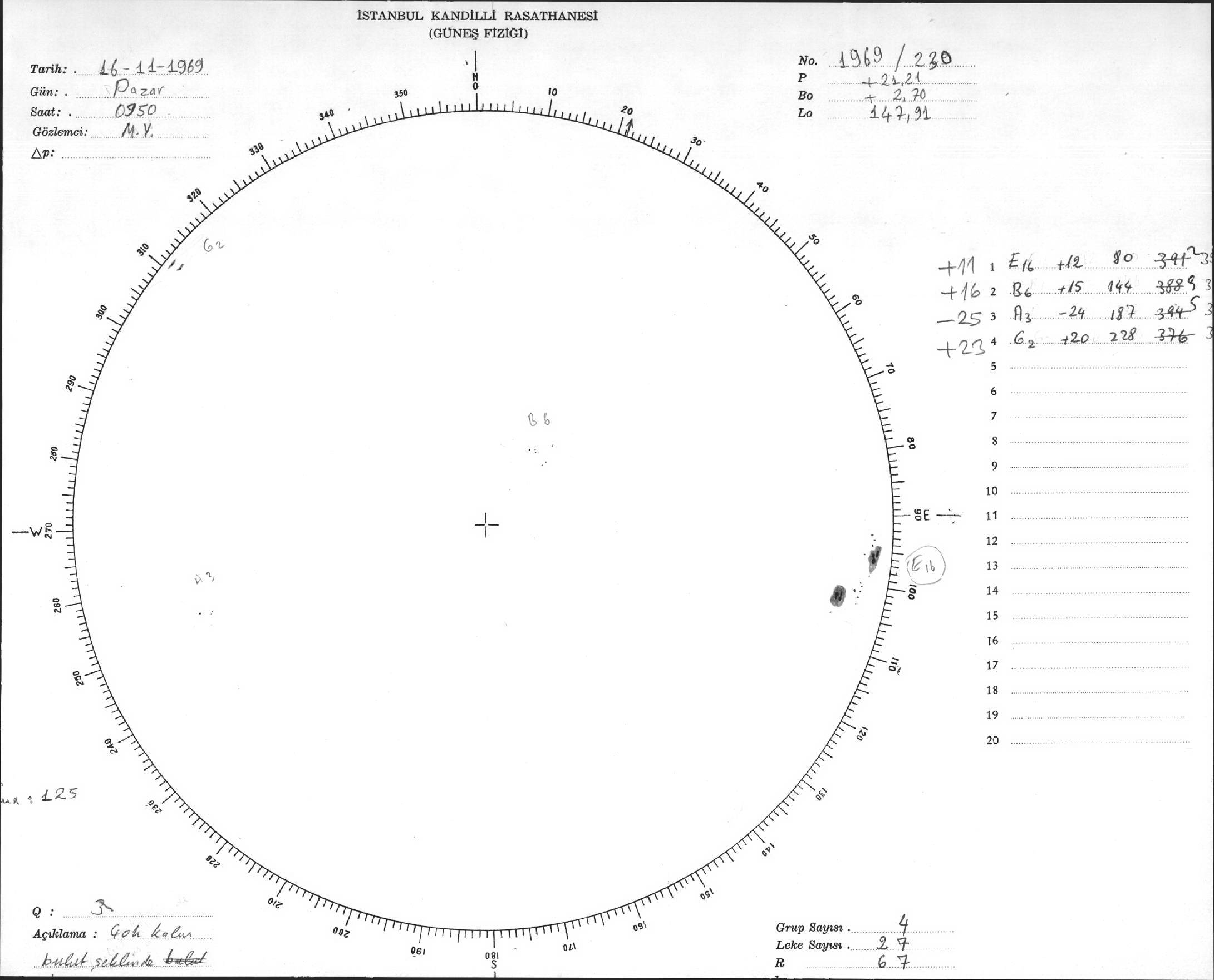 Güneş Lekesi Çizimleri / Kandilli Sunspot Drawings