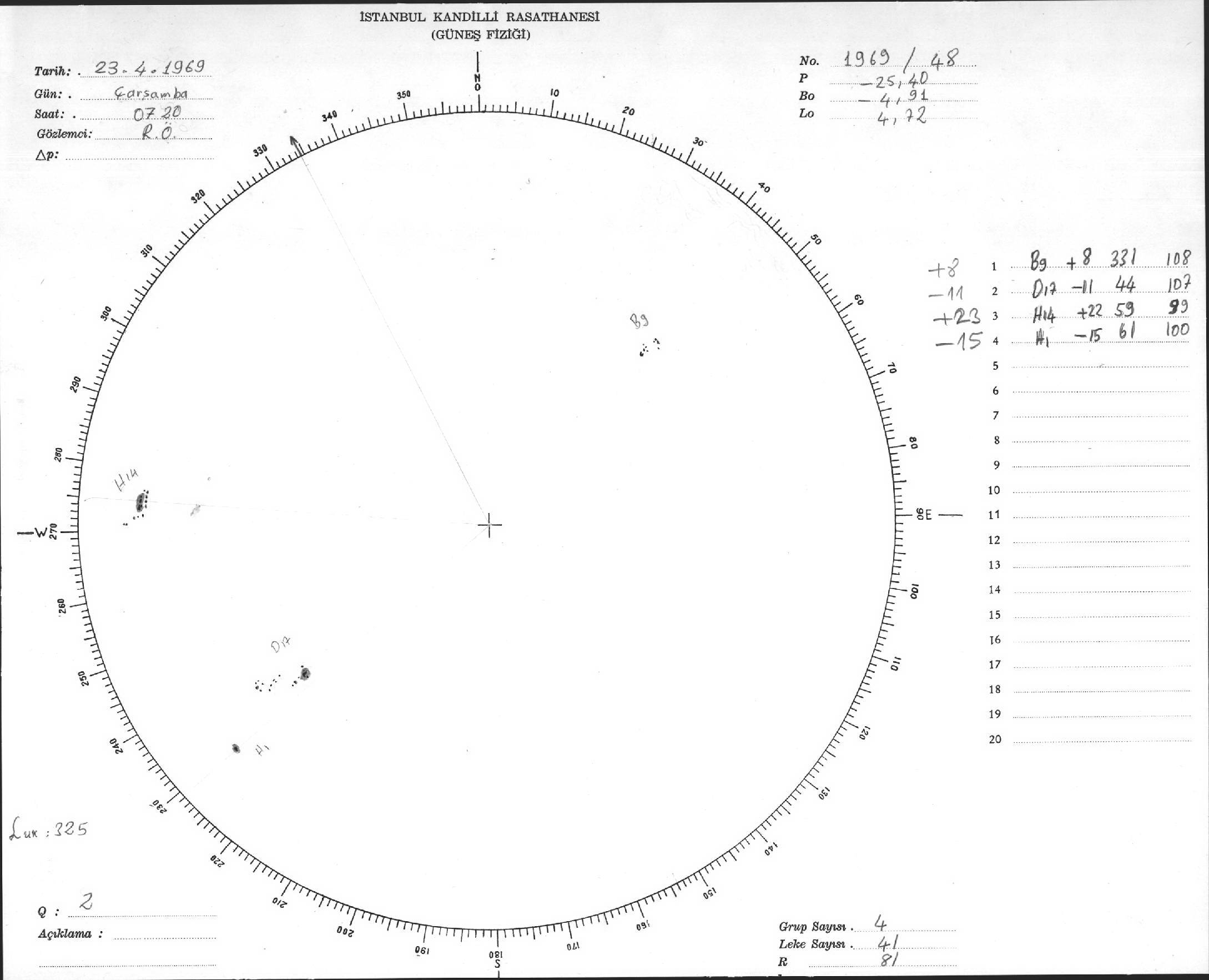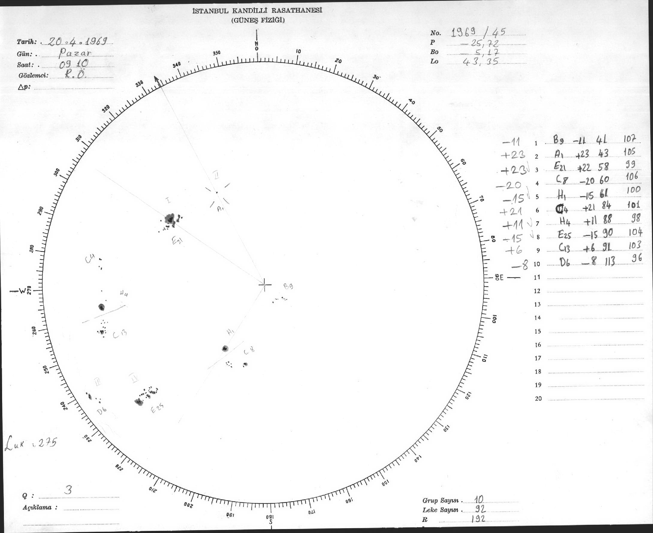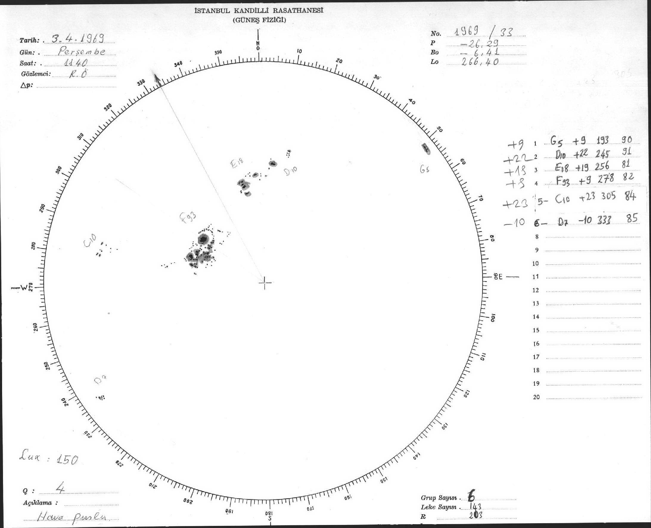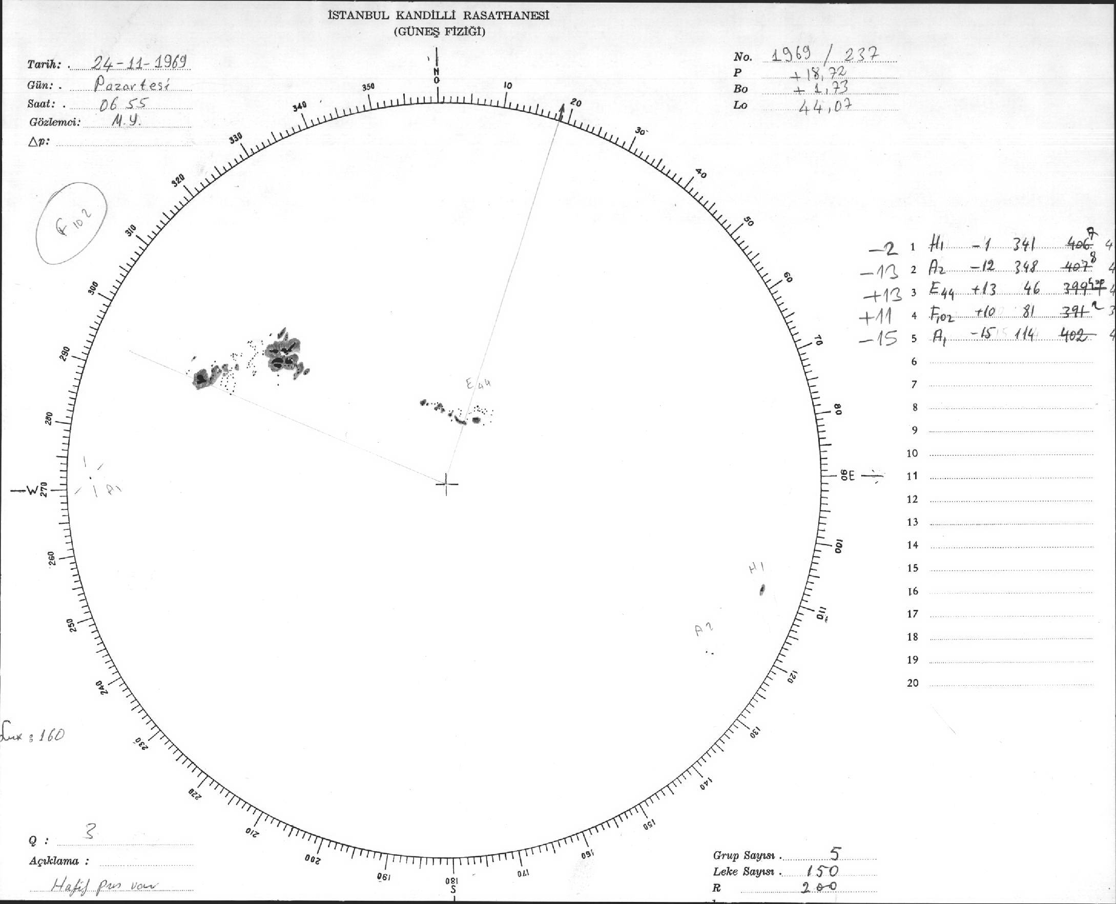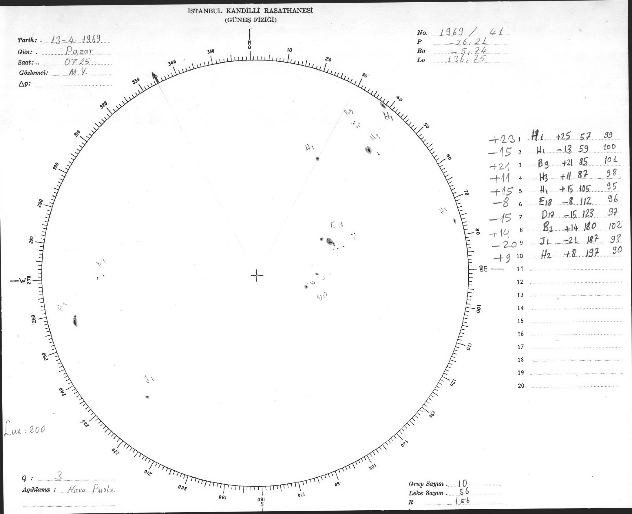 Güneş Lekesi Çizimleri / Kandilli Sunspot Drawings