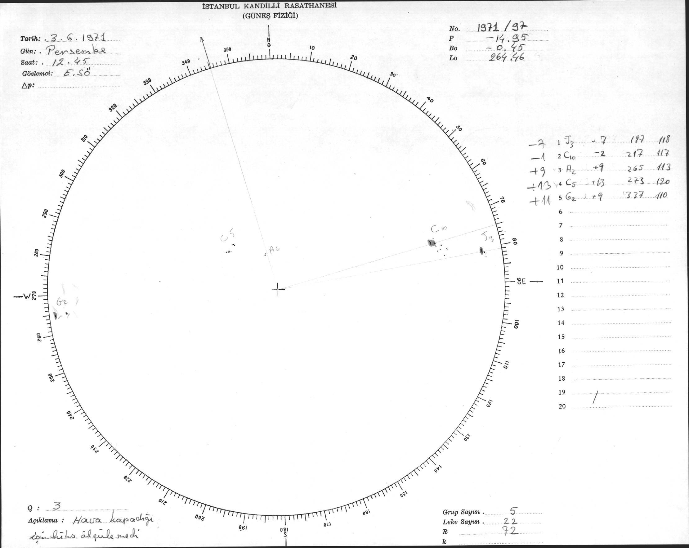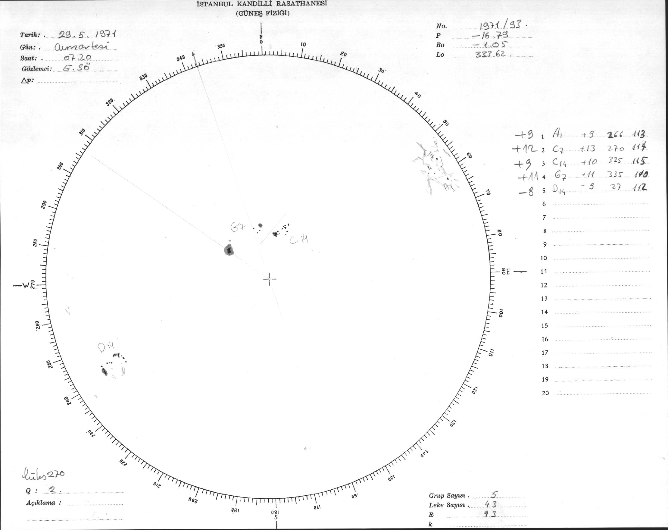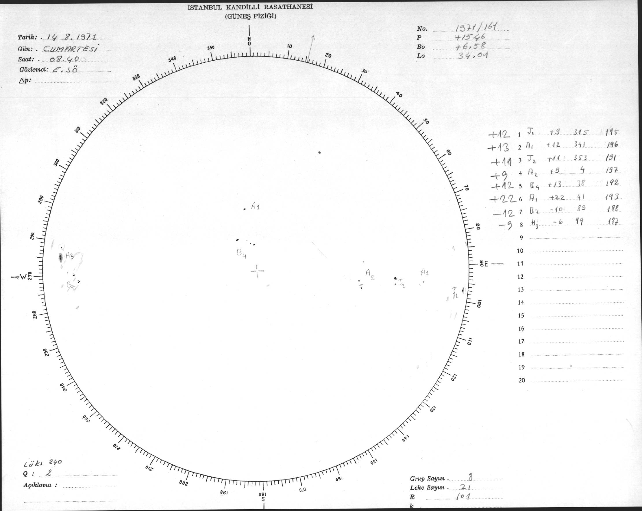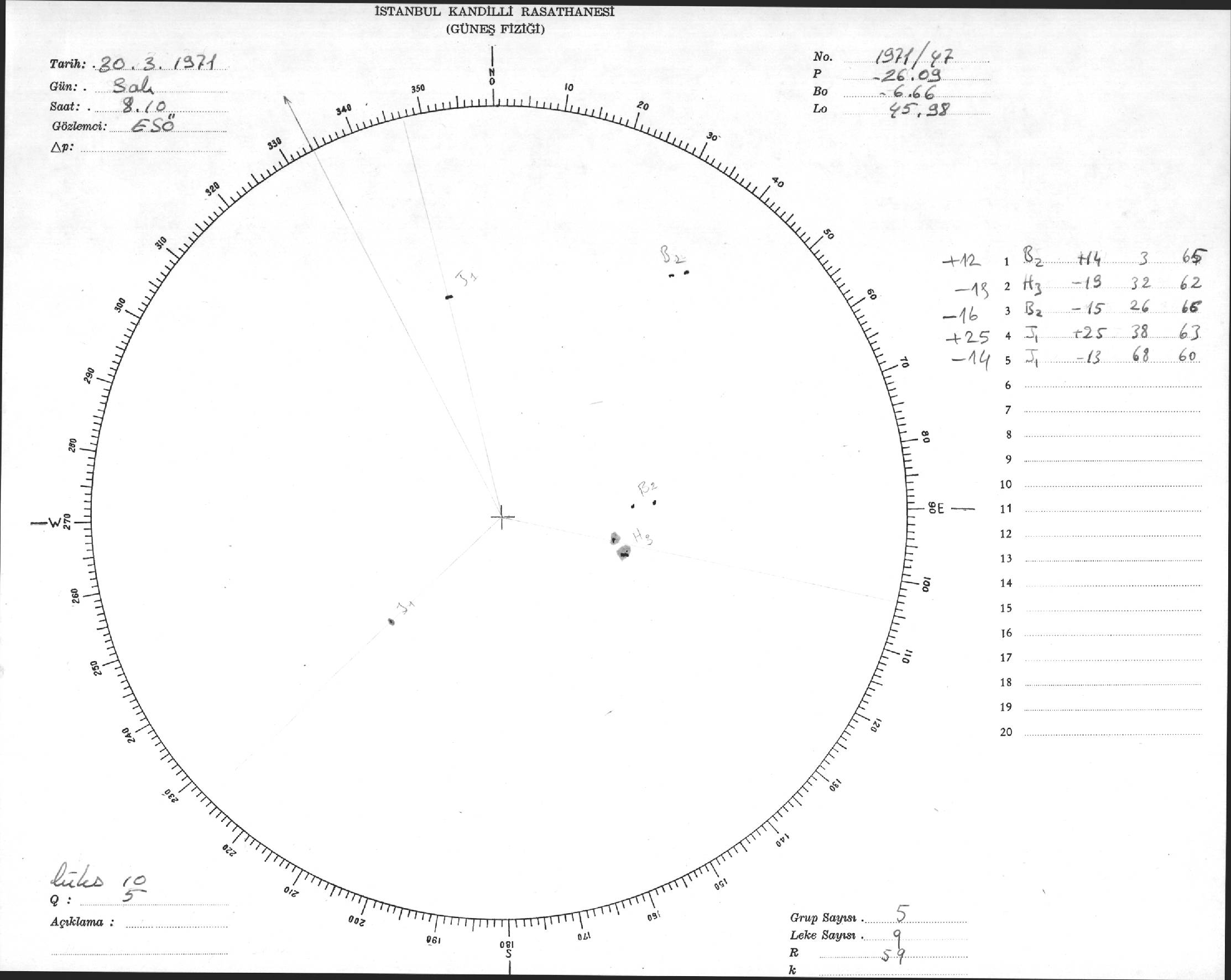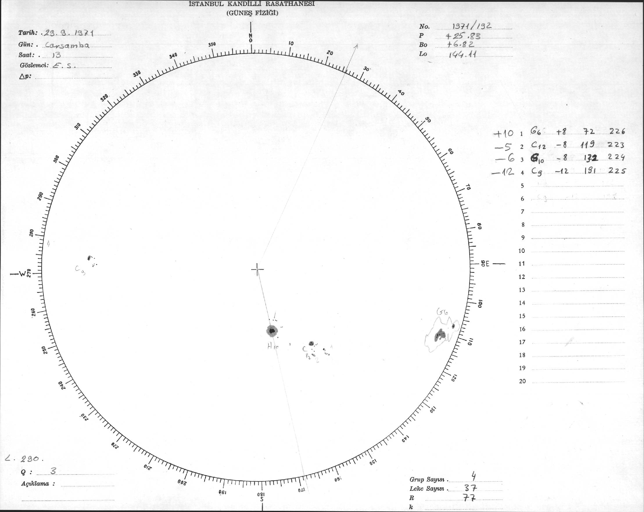Güneş Lekesi Çizimleri / Kandilli Sunspot Drawings