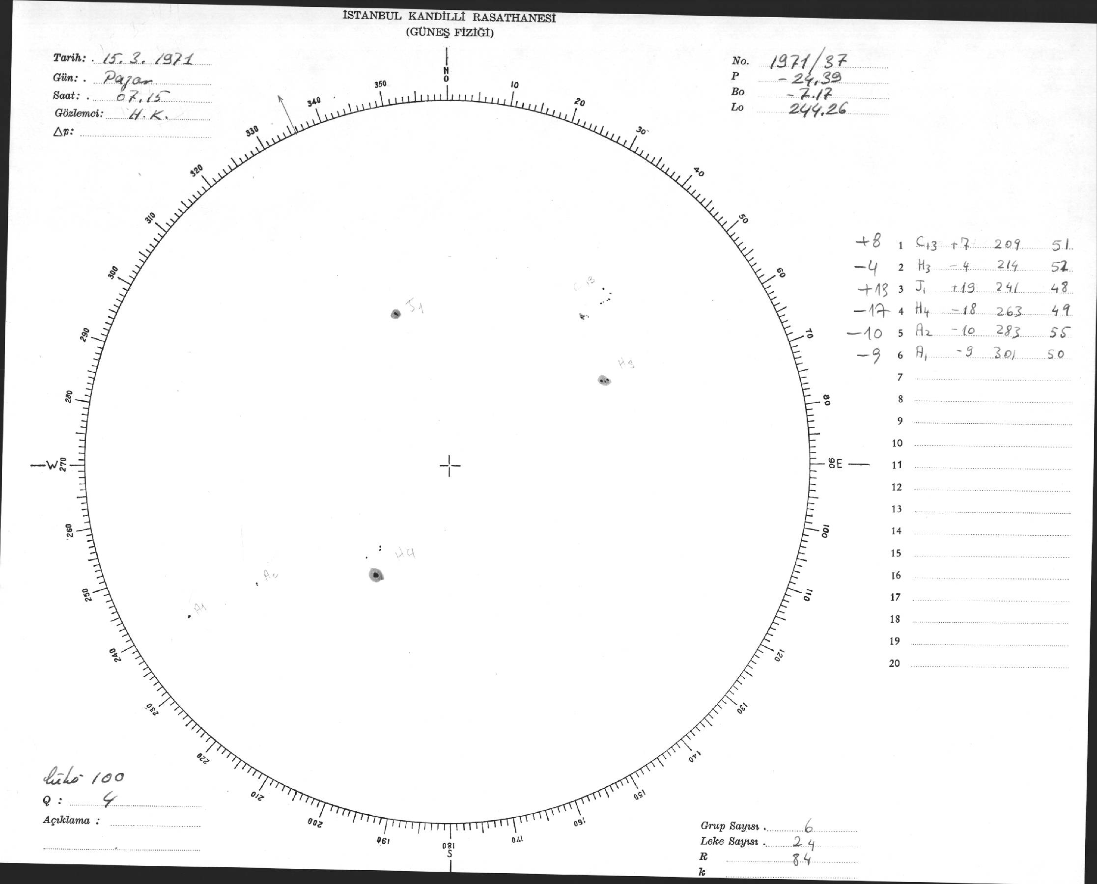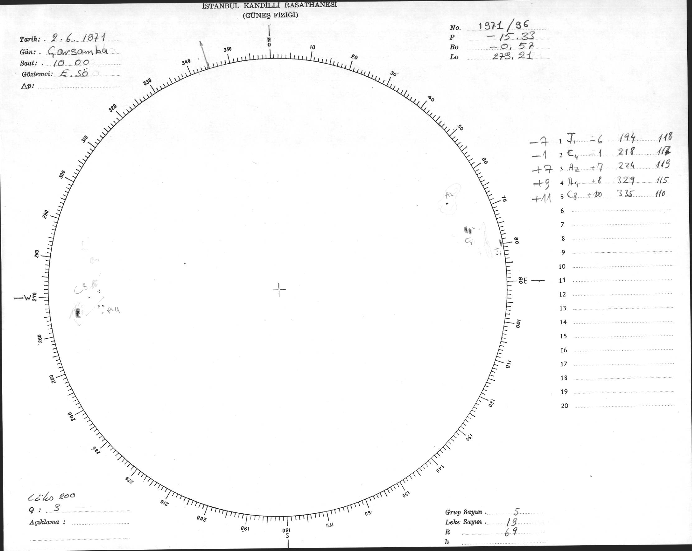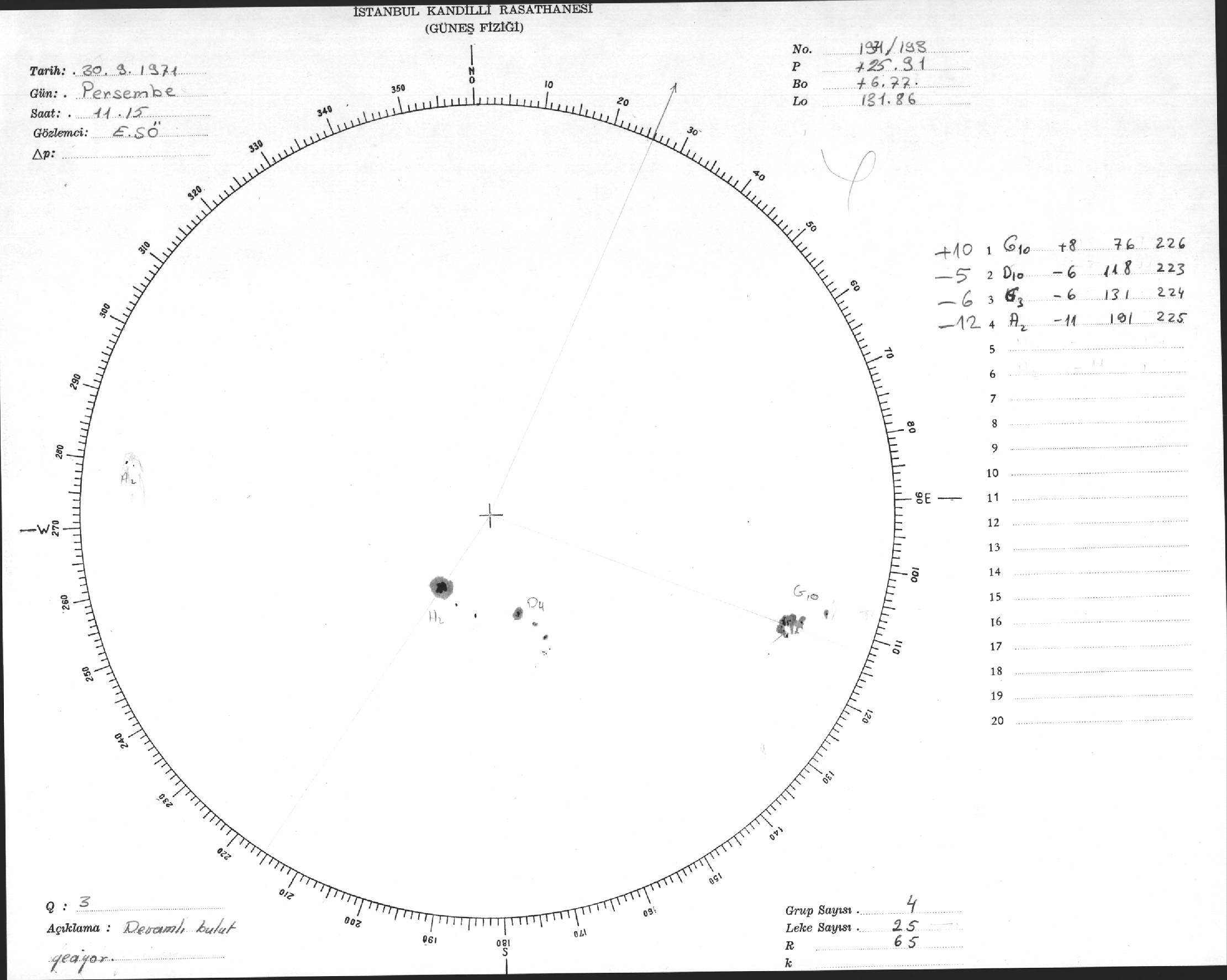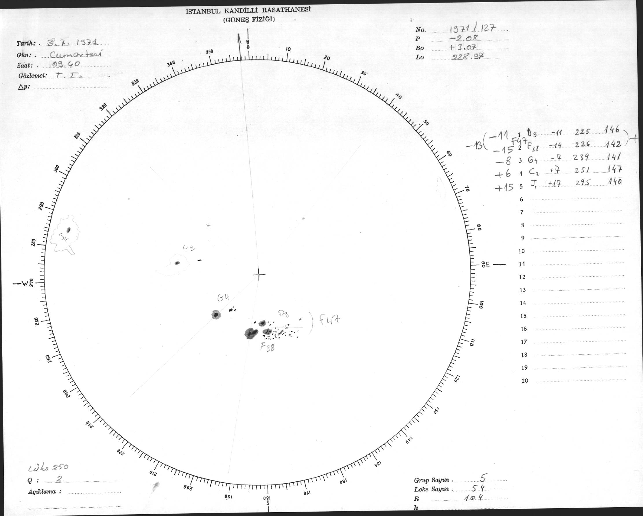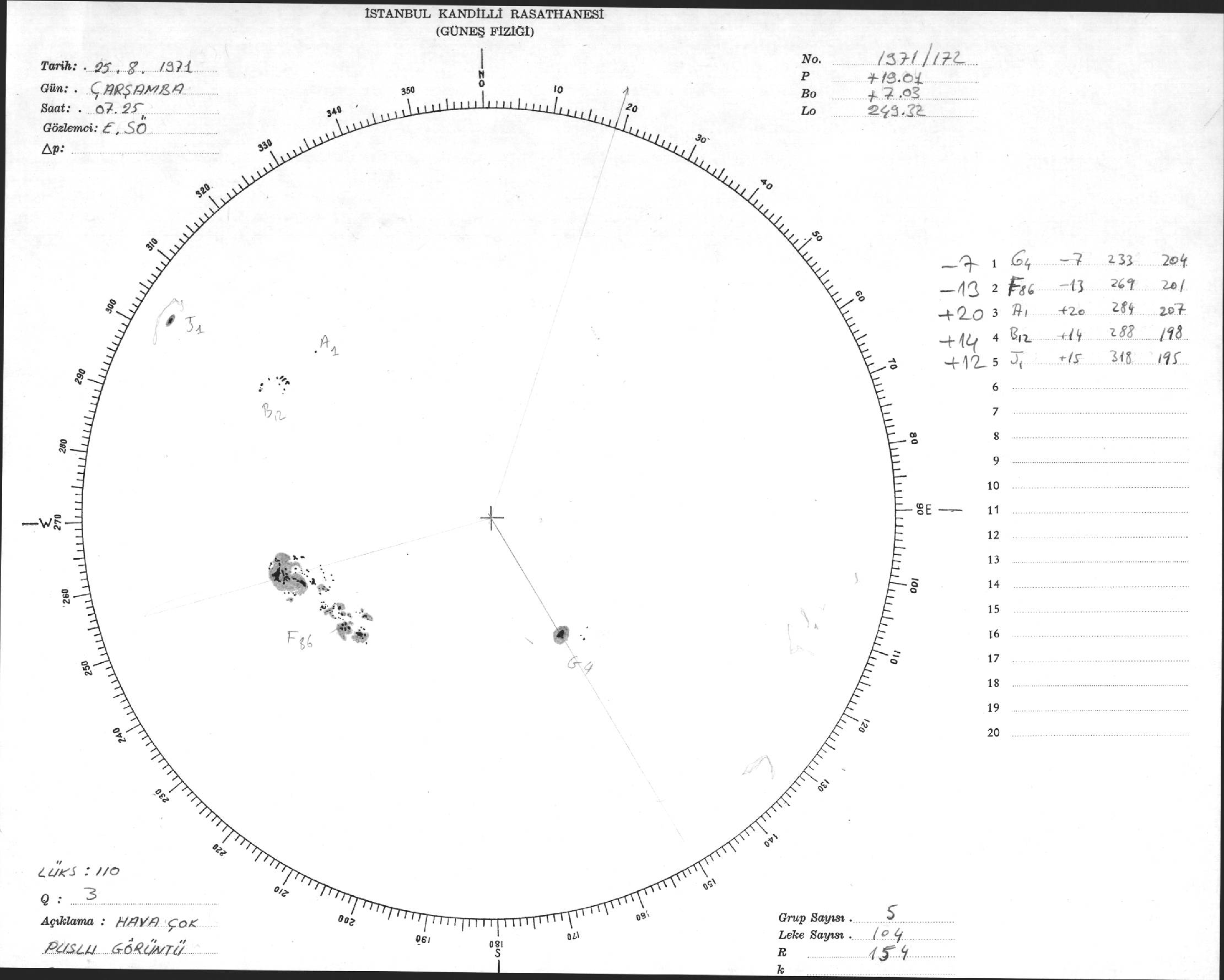 Güneş Lekesi Çizimleri / Kandilli Sunspot Drawings