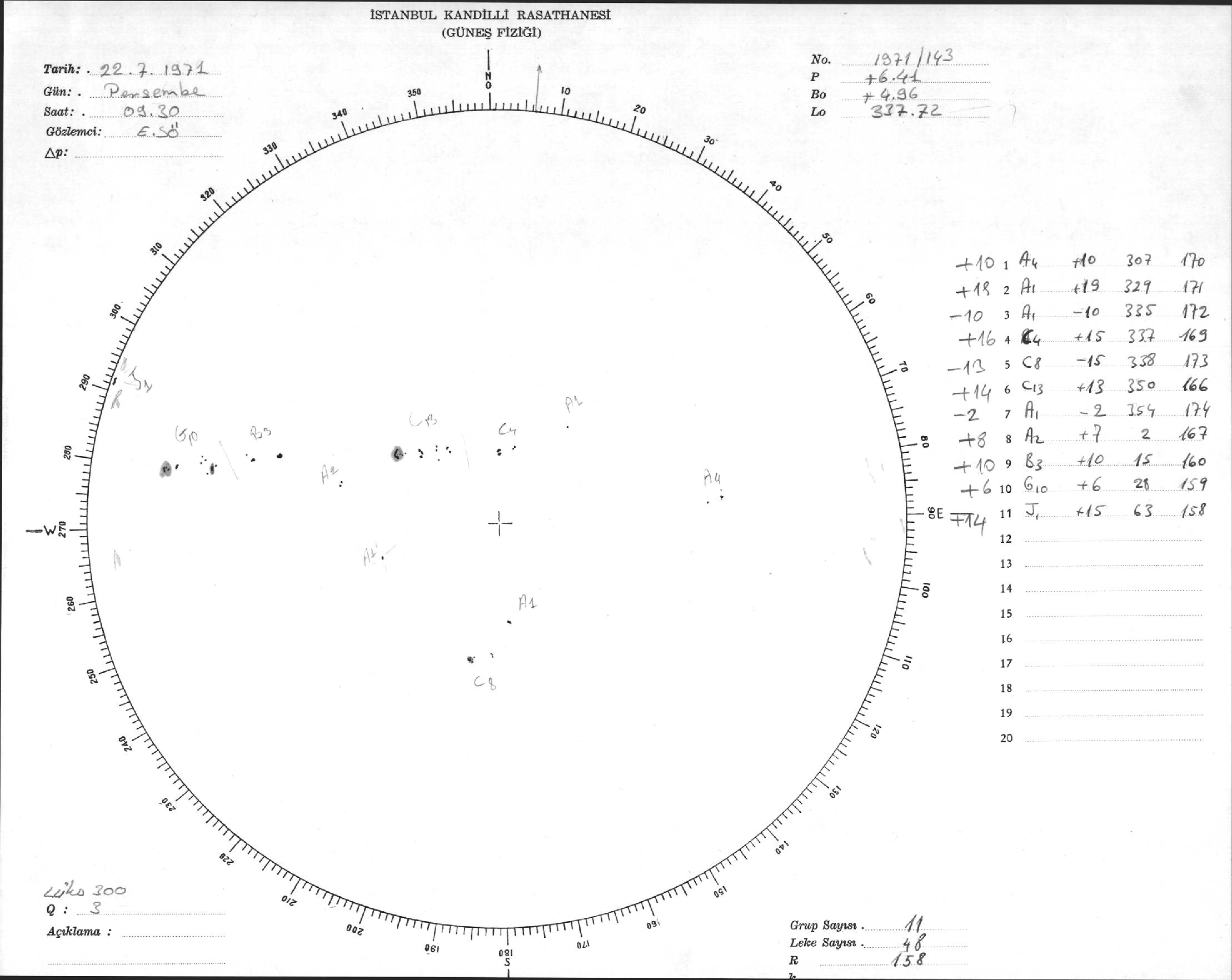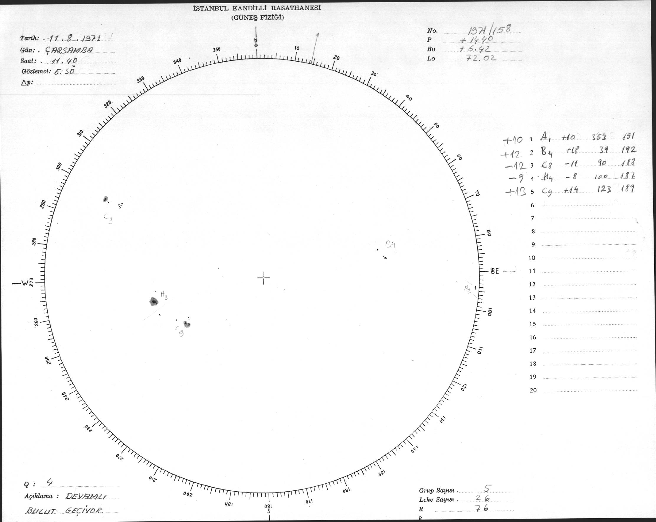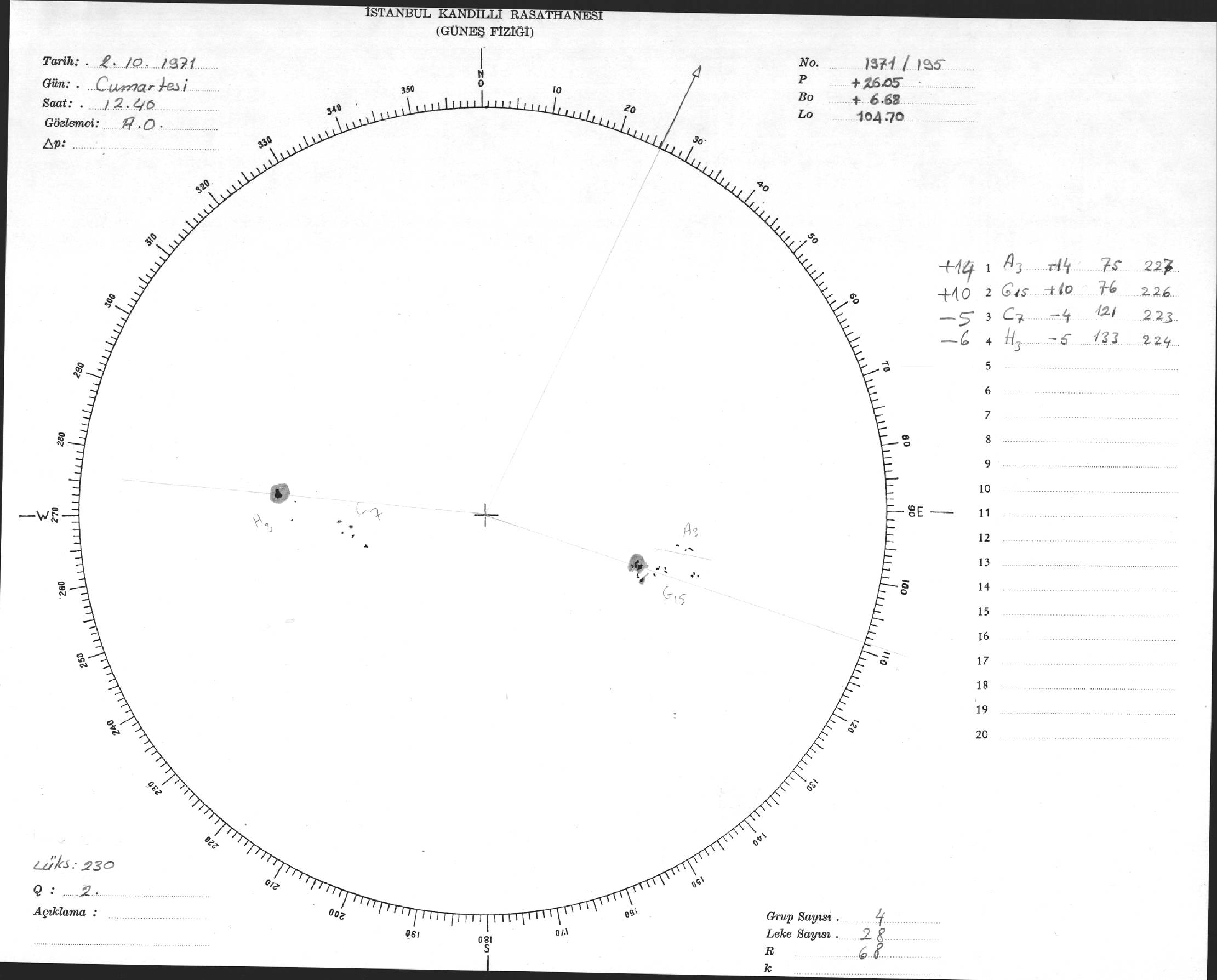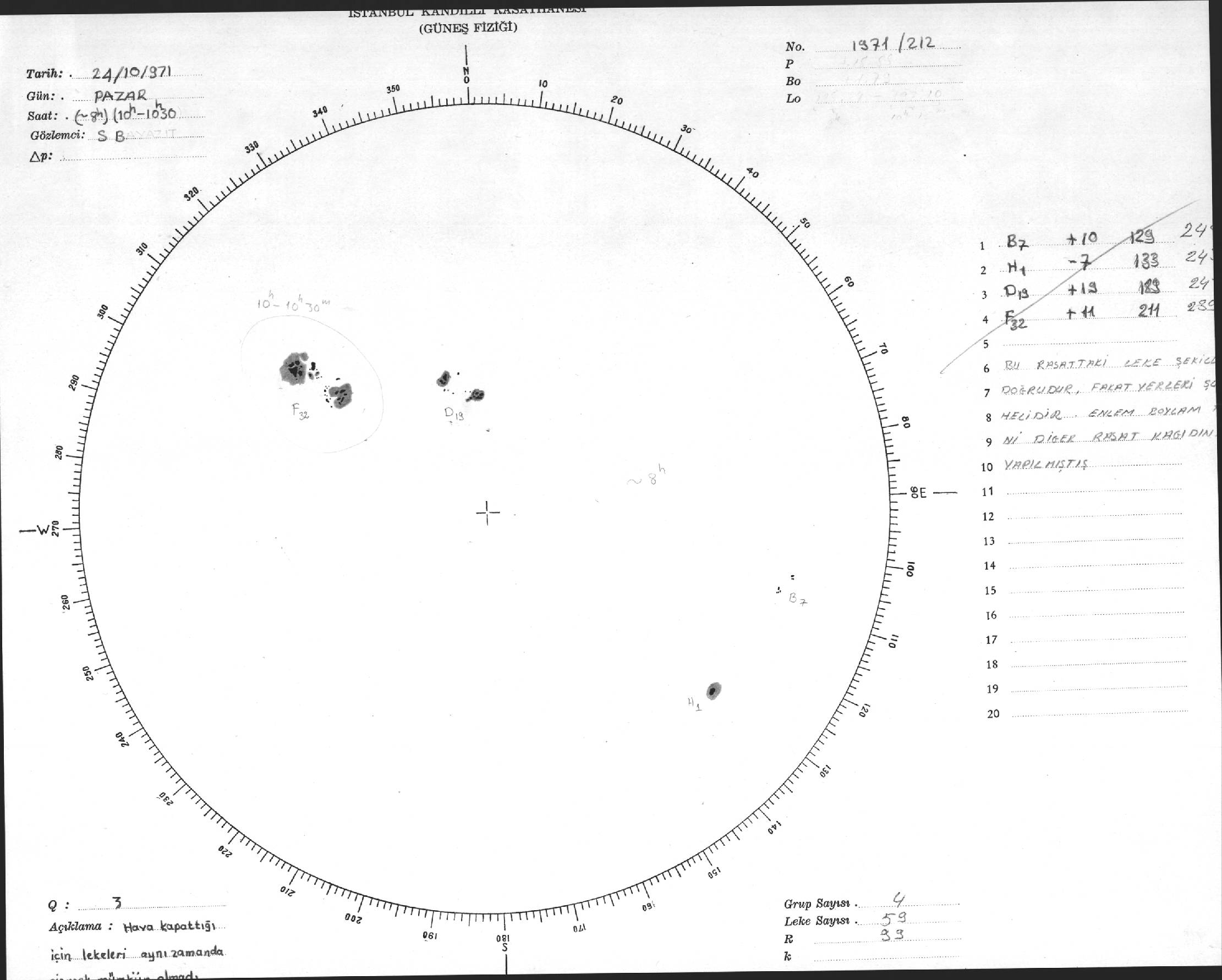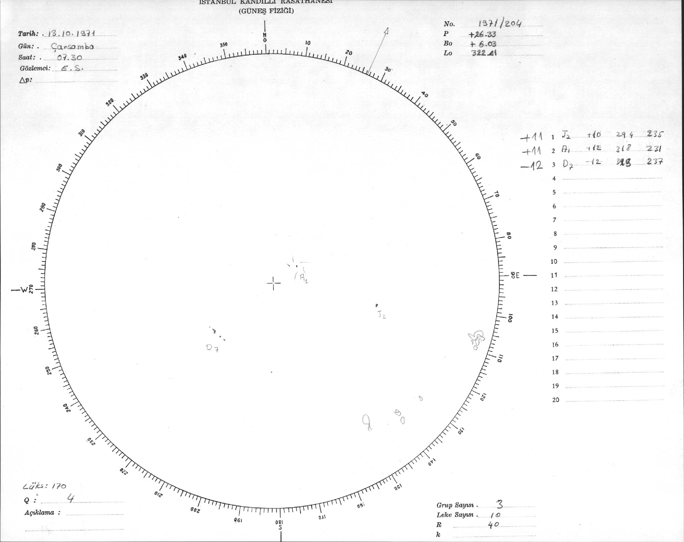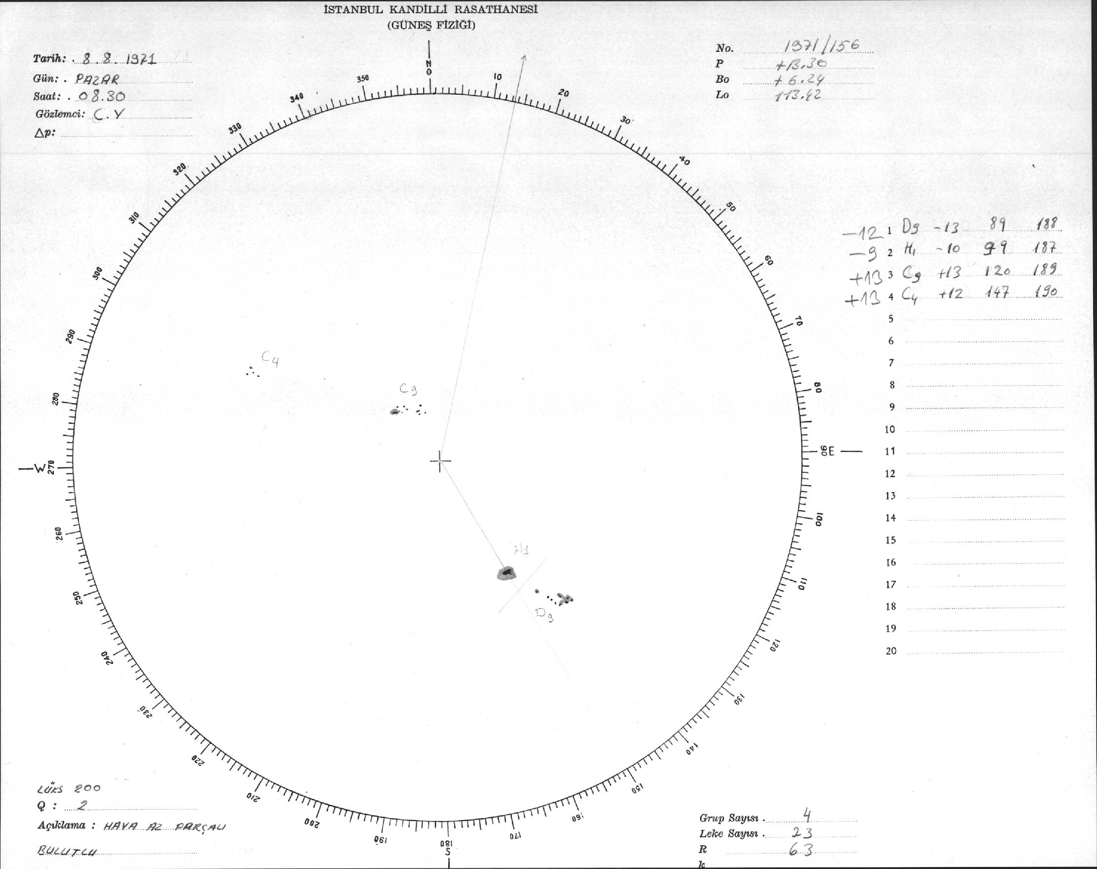 Güneş Lekesi Çizimleri / Kandilli Sunspot Drawings