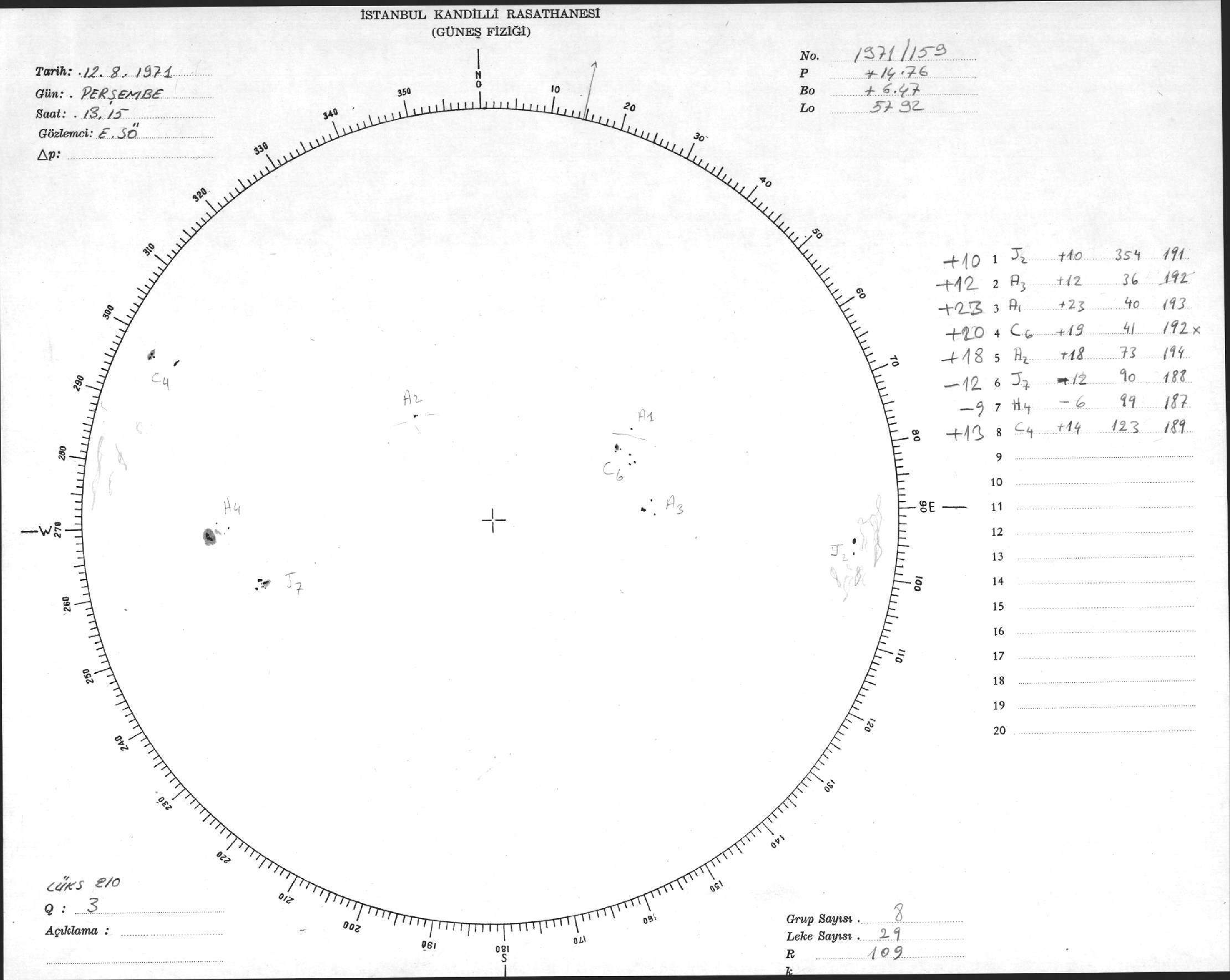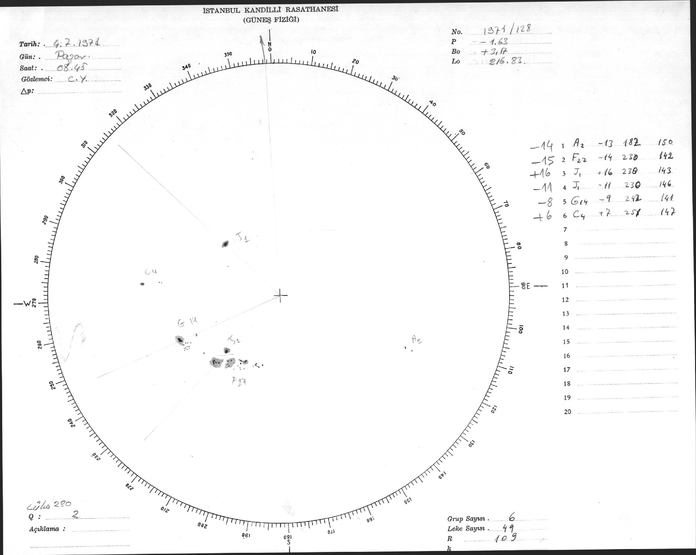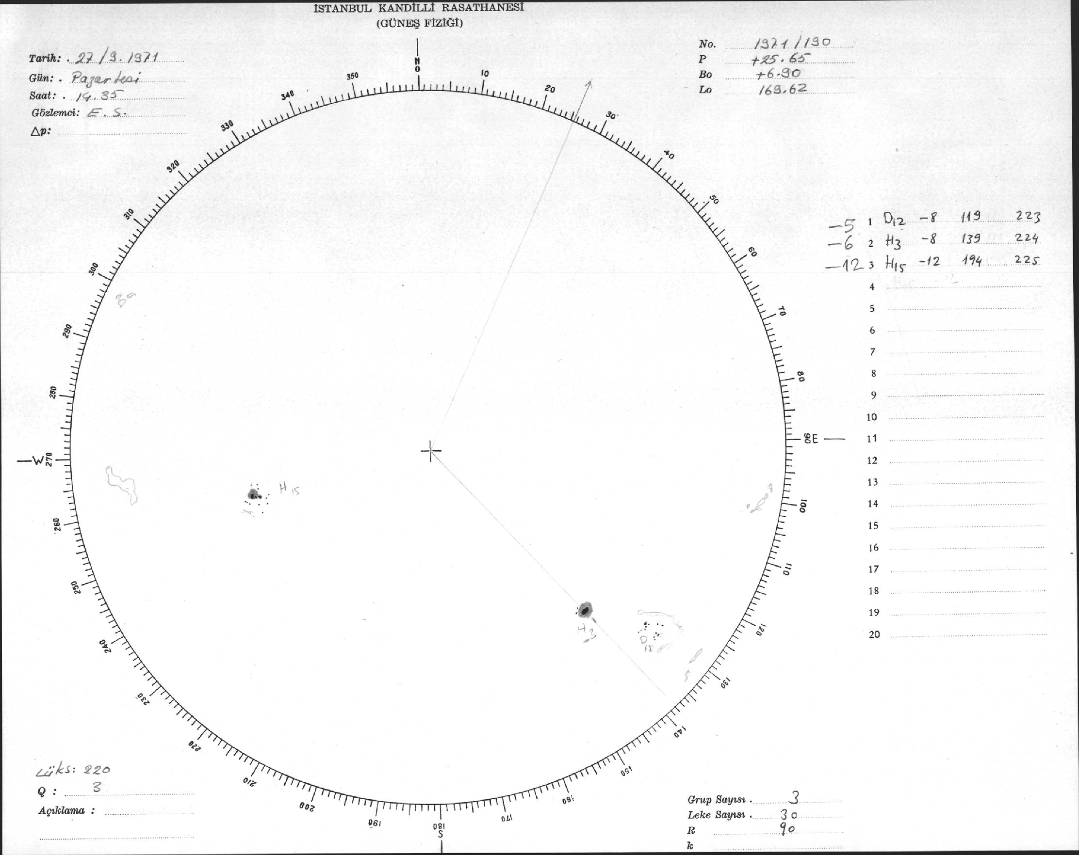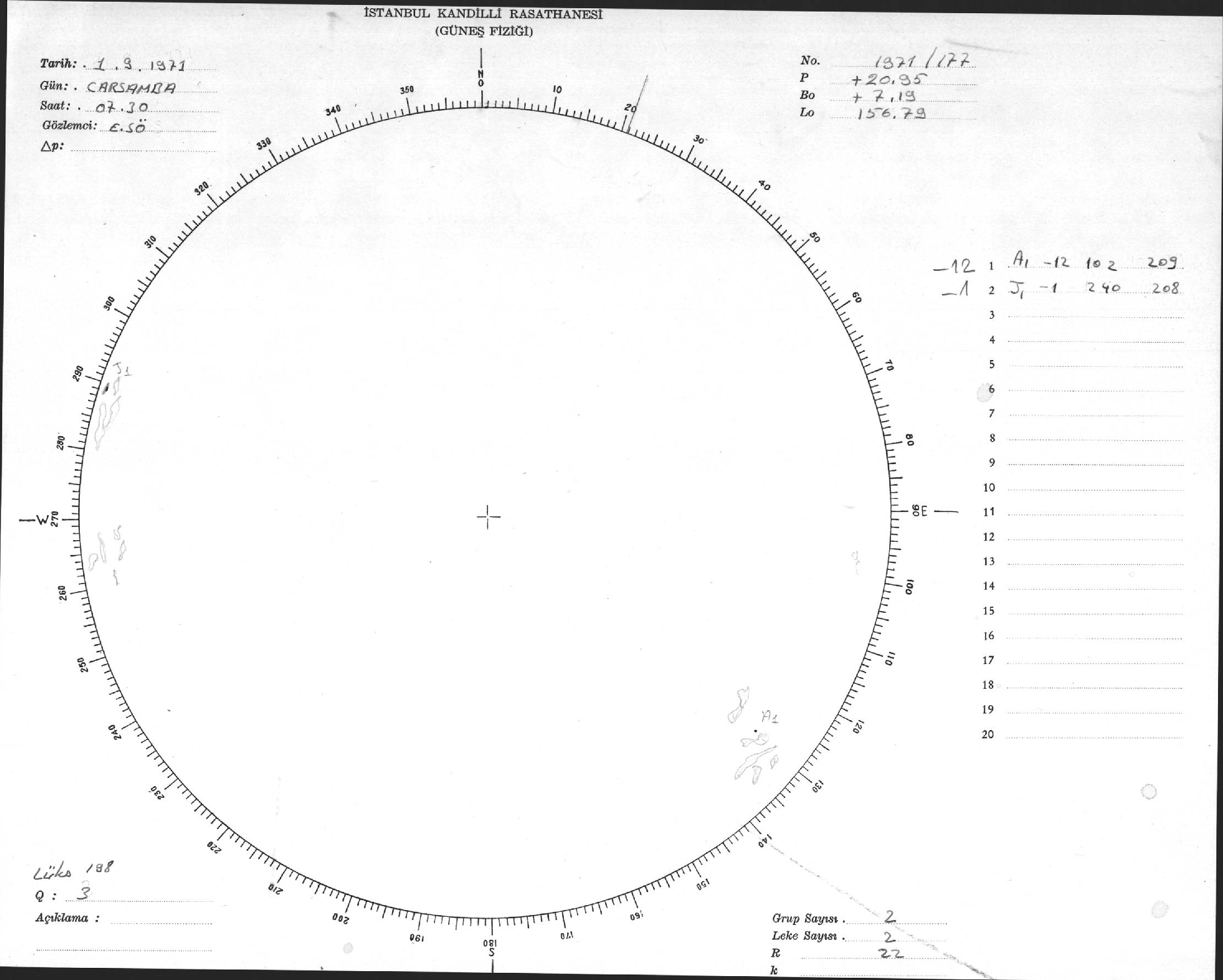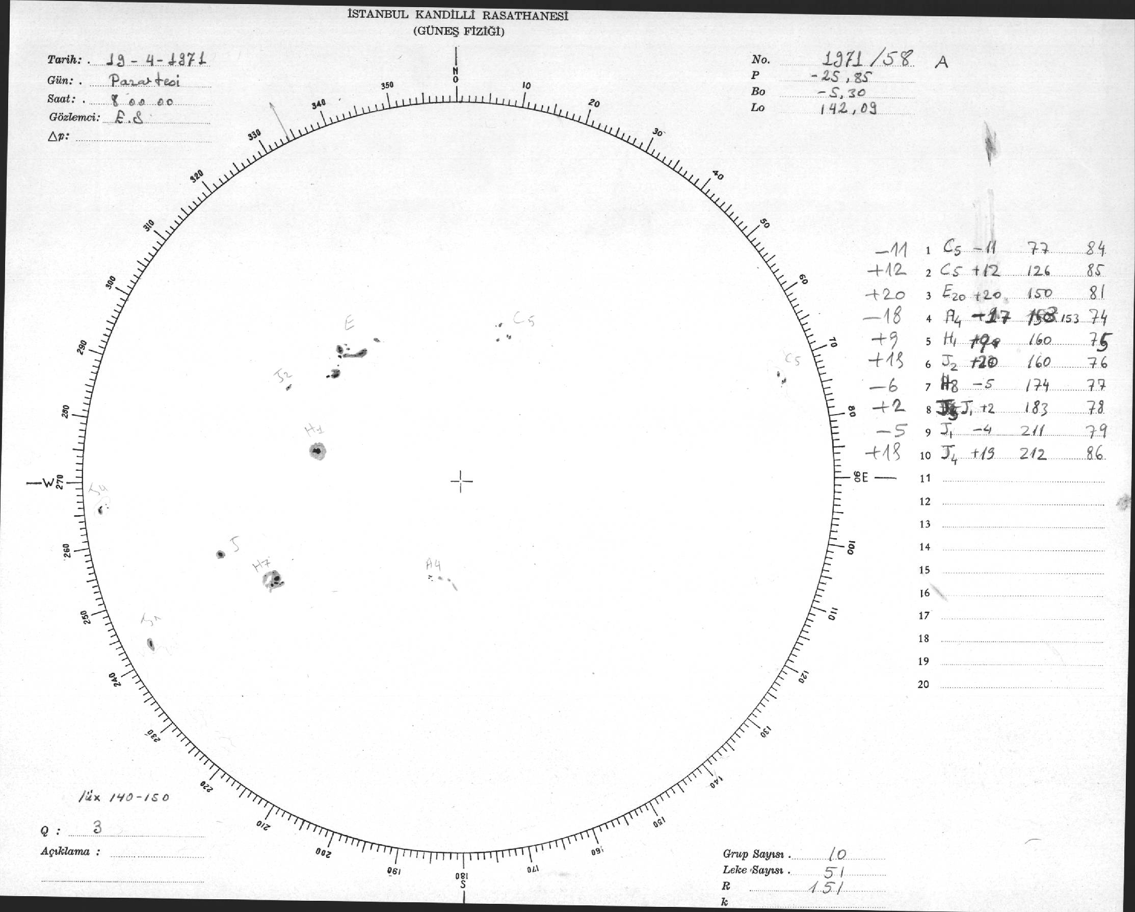 Güneş Lekesi Çizimleri / Kandilli Sunspot Drawings