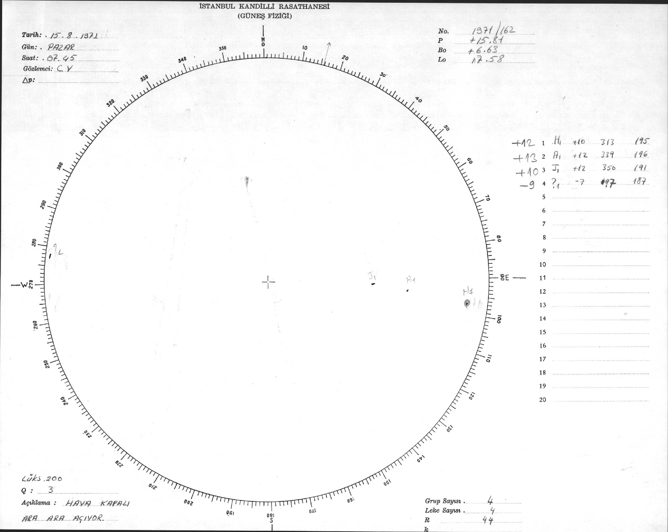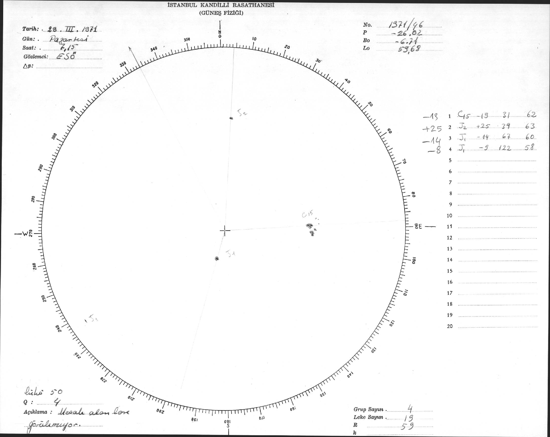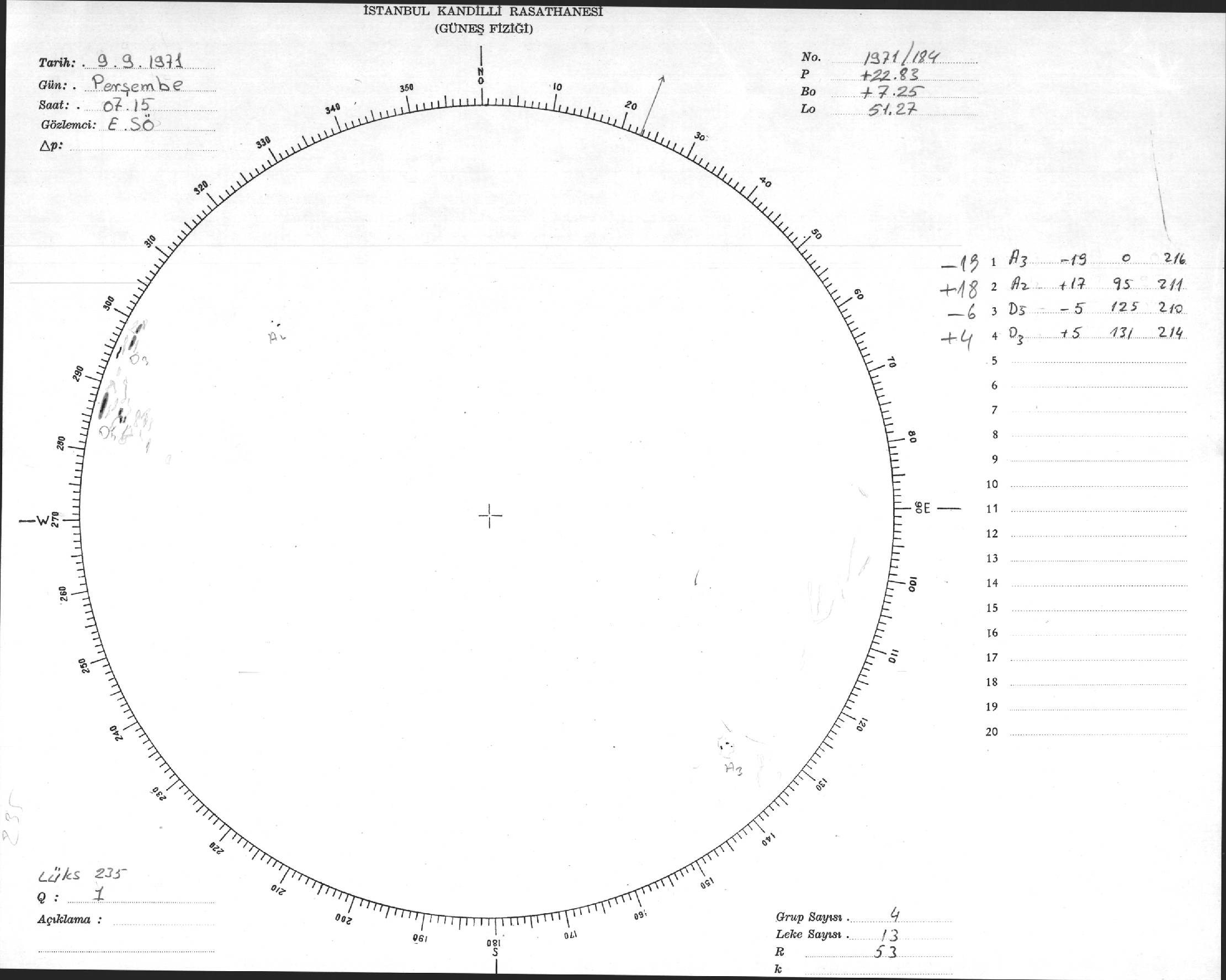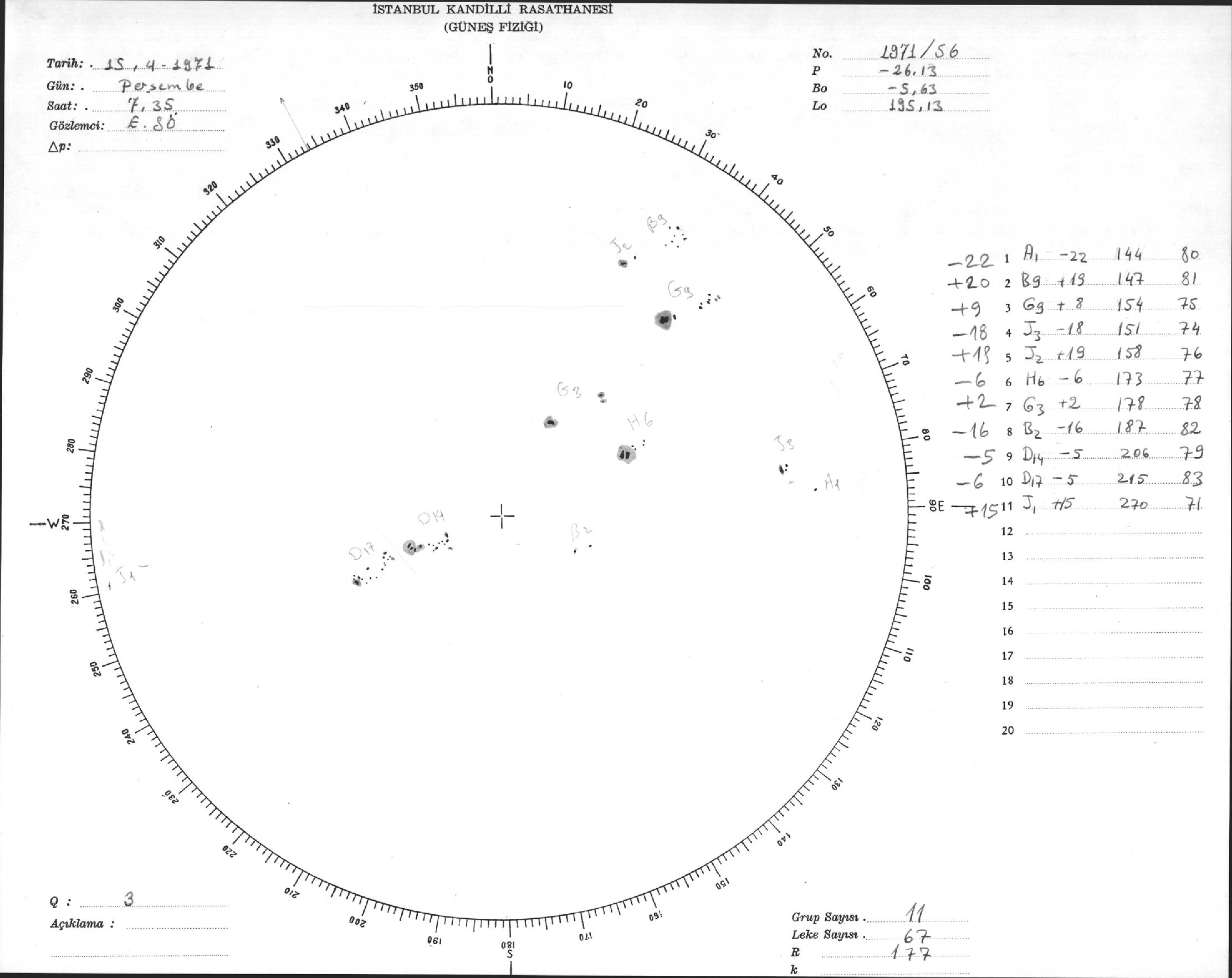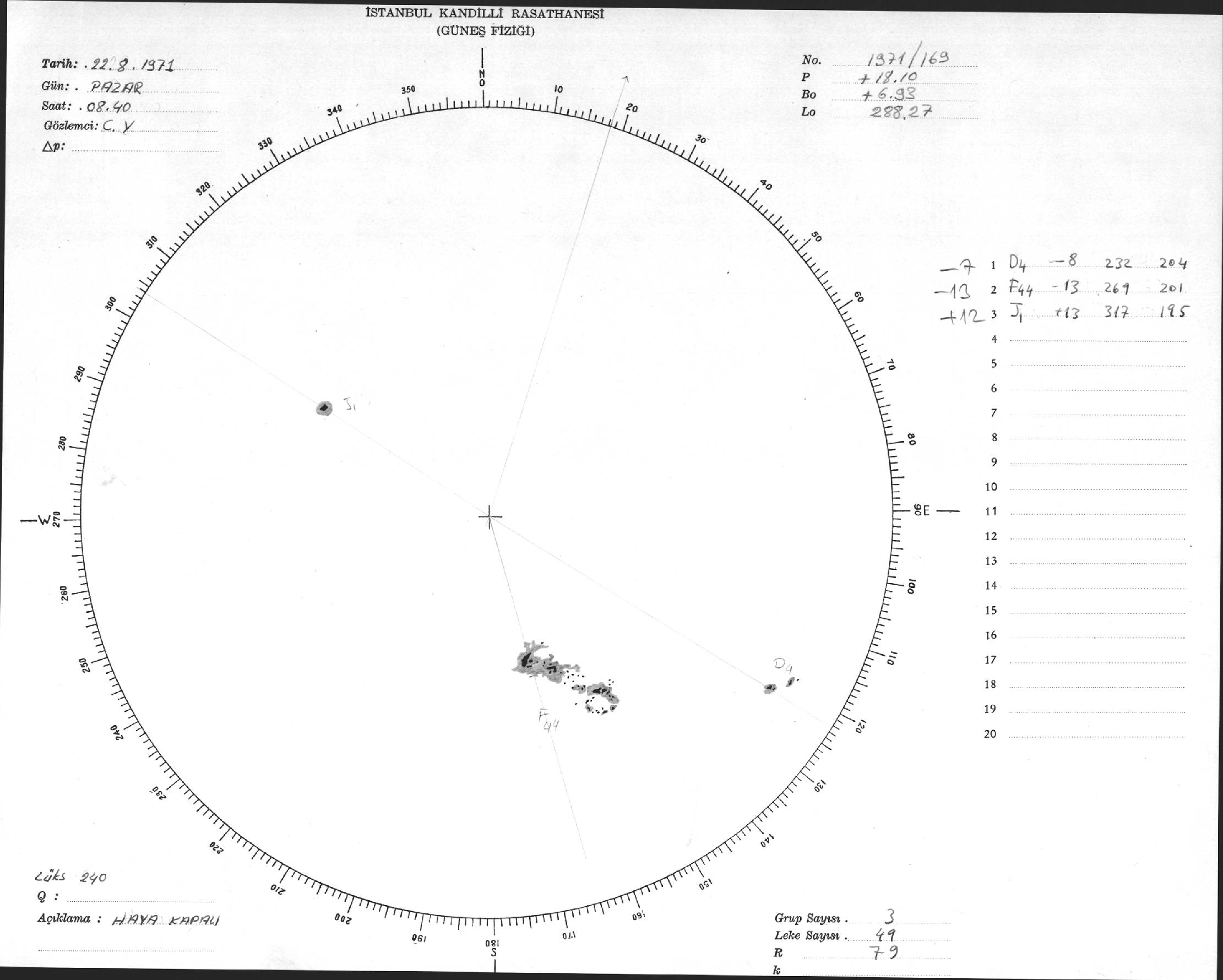 Güneş Lekesi Çizimleri / Kandilli Sunspot Drawings