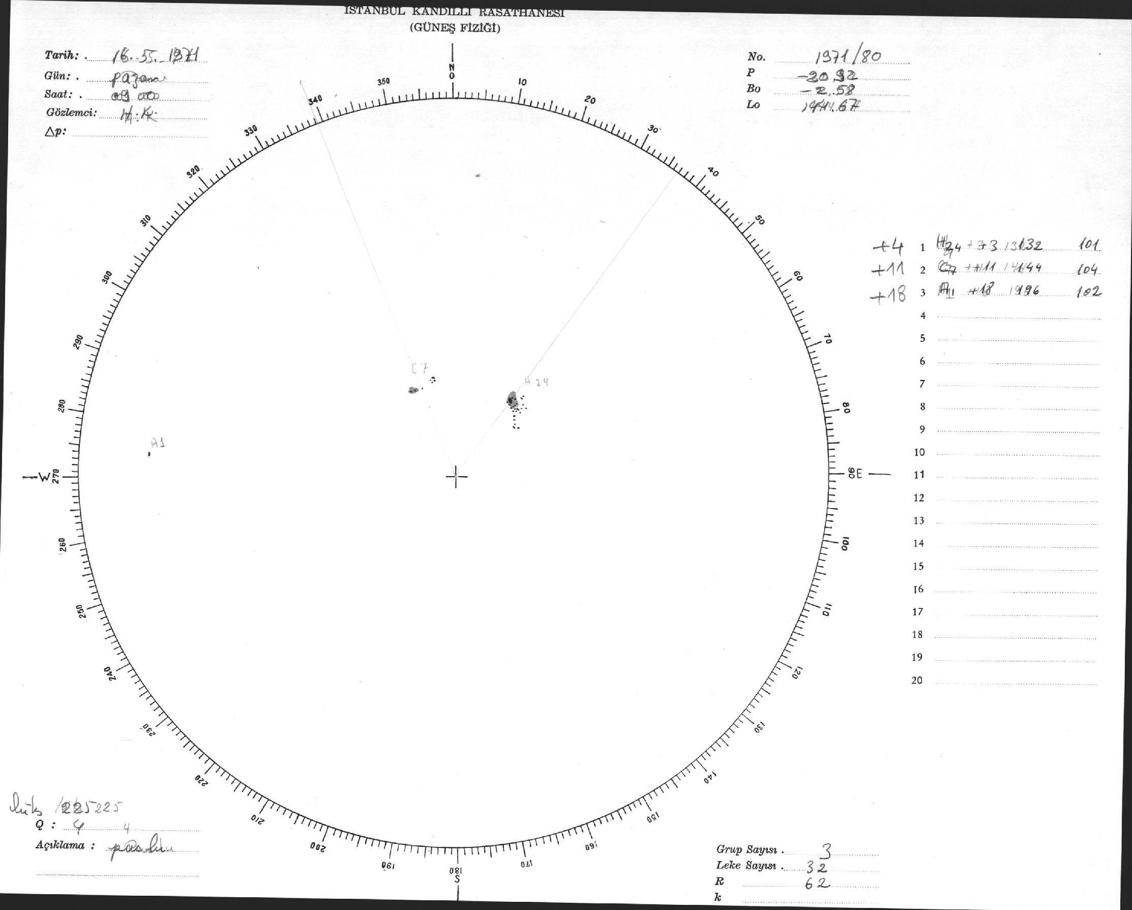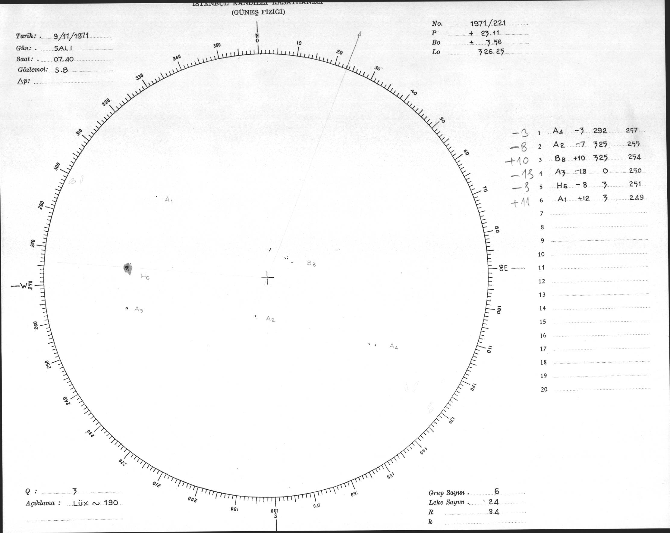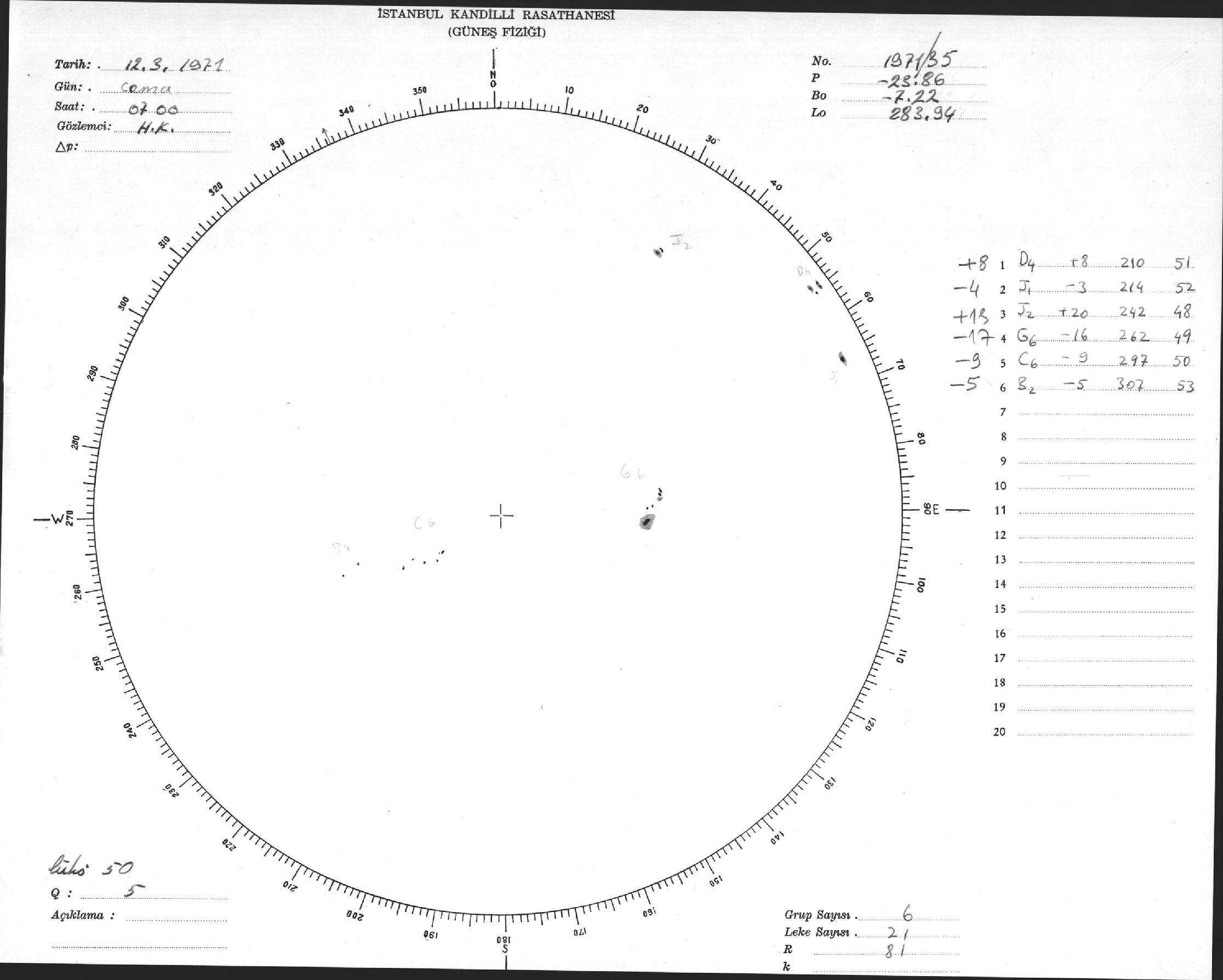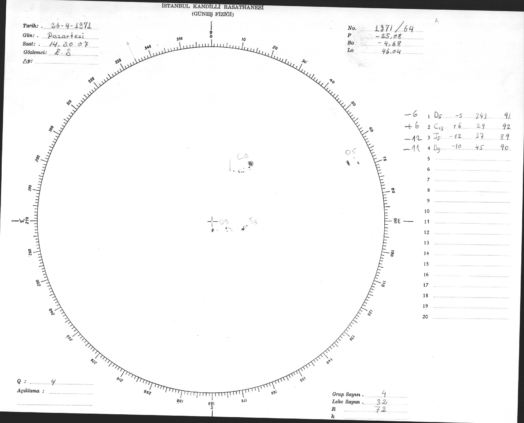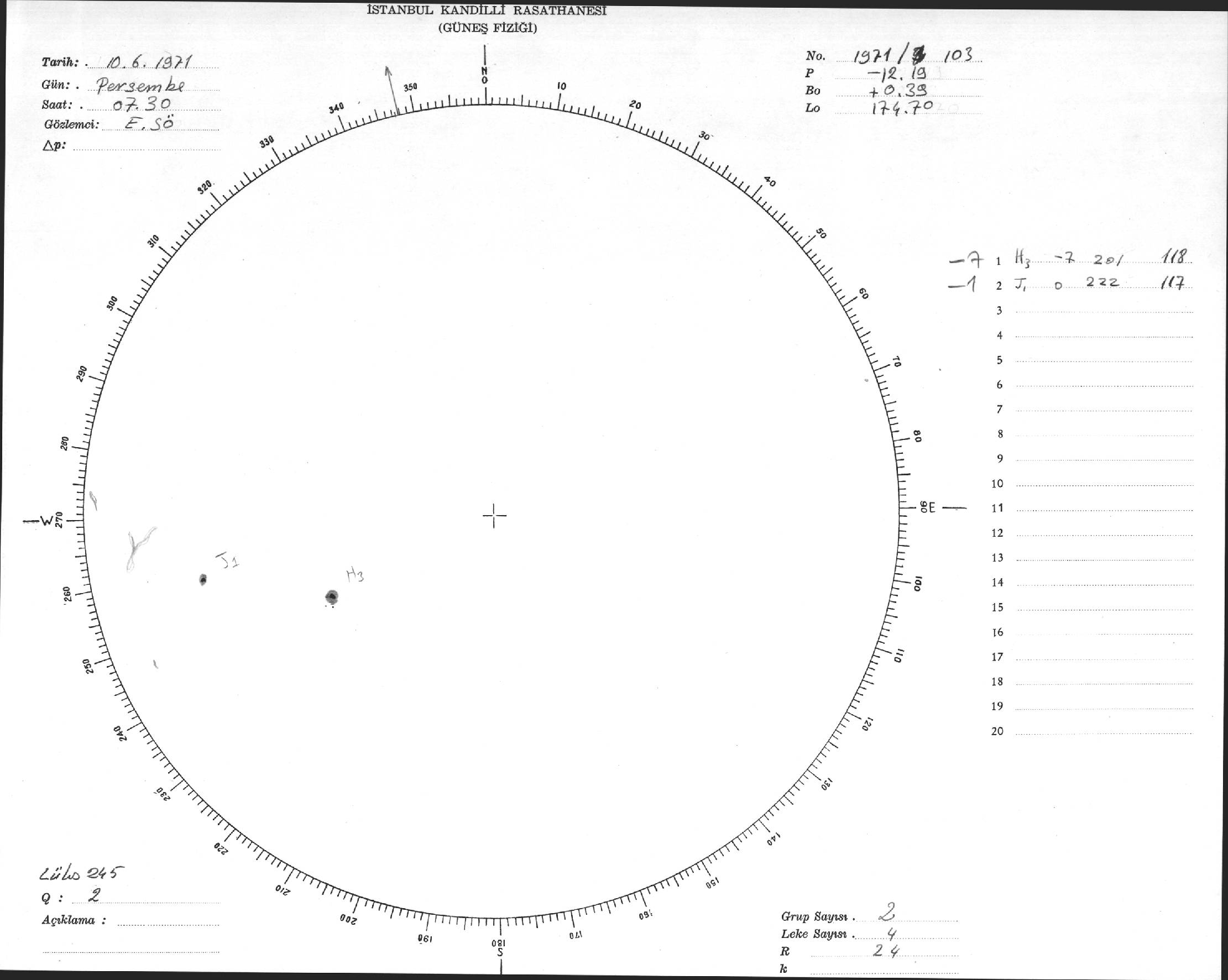 Güneş Lekesi Çizimleri / Kandilli Sunspot Drawings