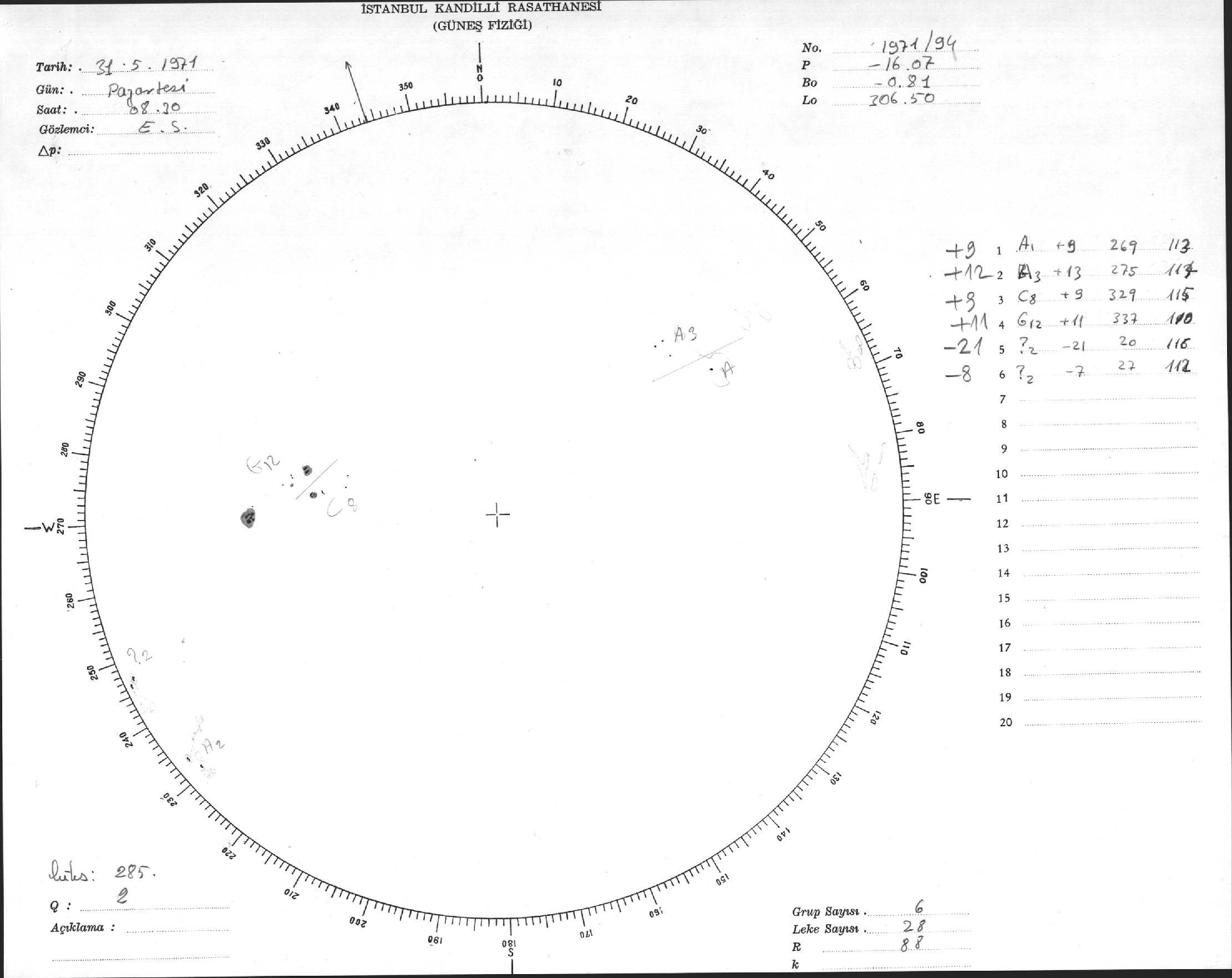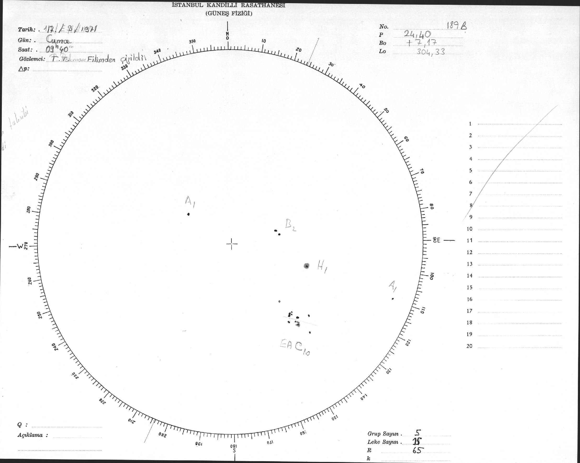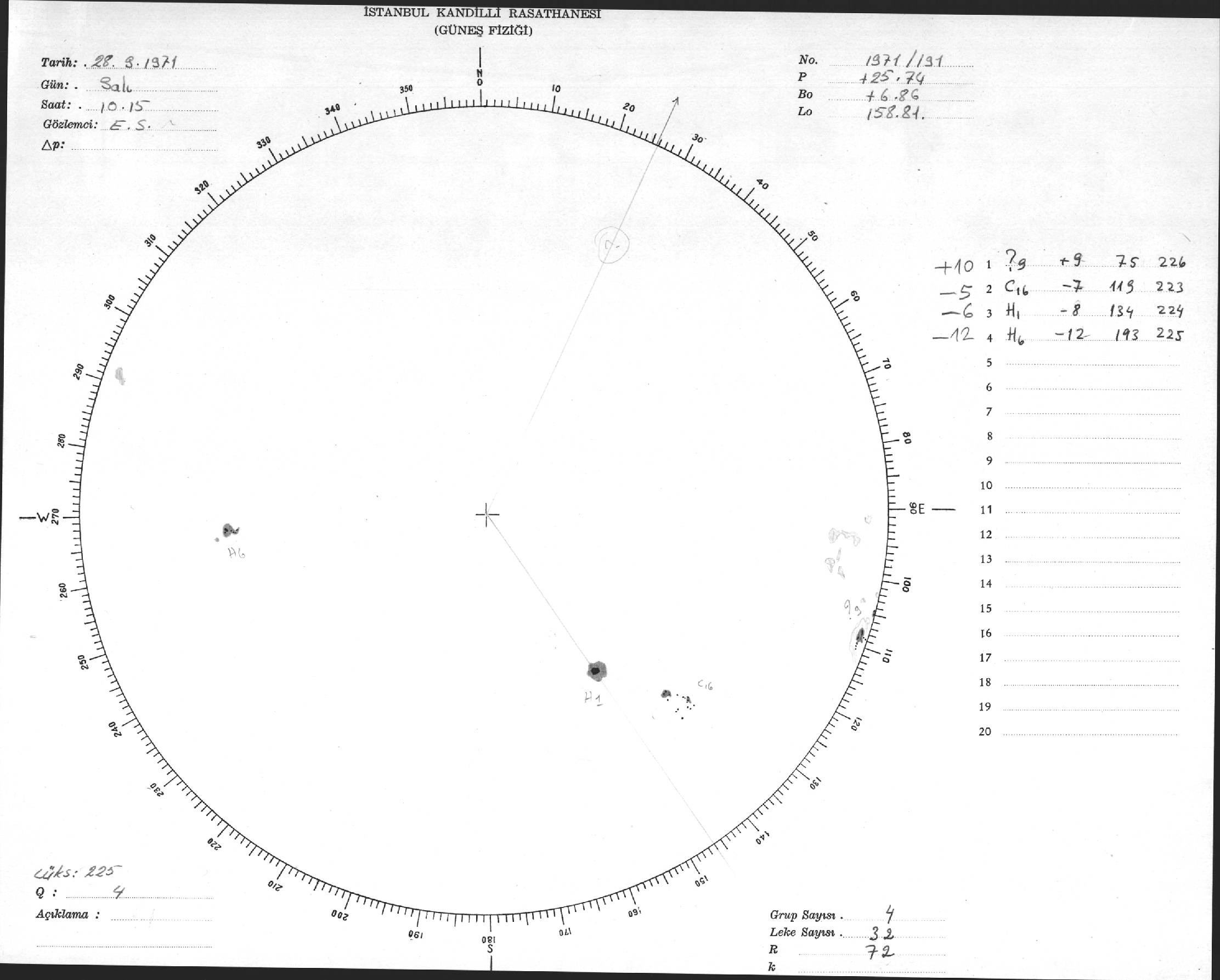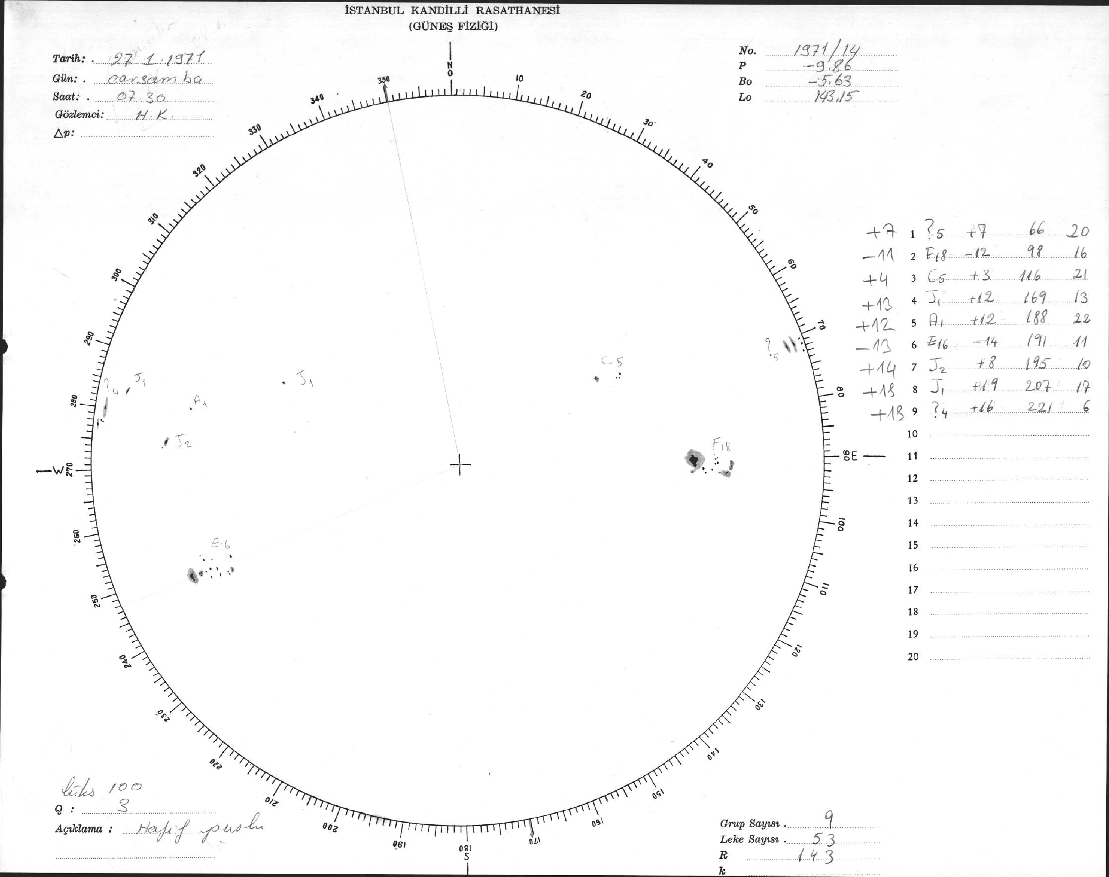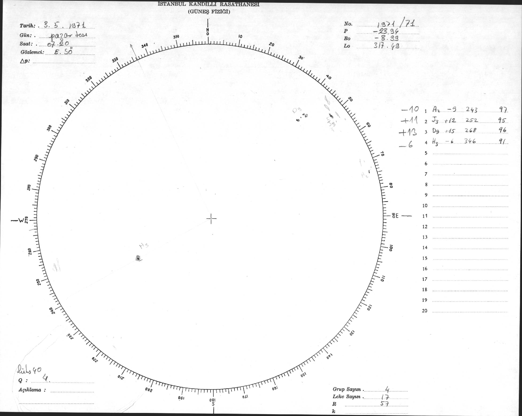 Güneş Lekesi Çizimleri / Kandilli Sunspot Drawings