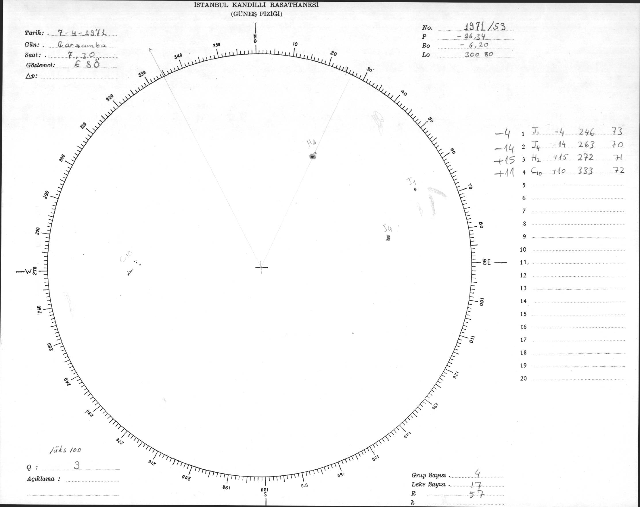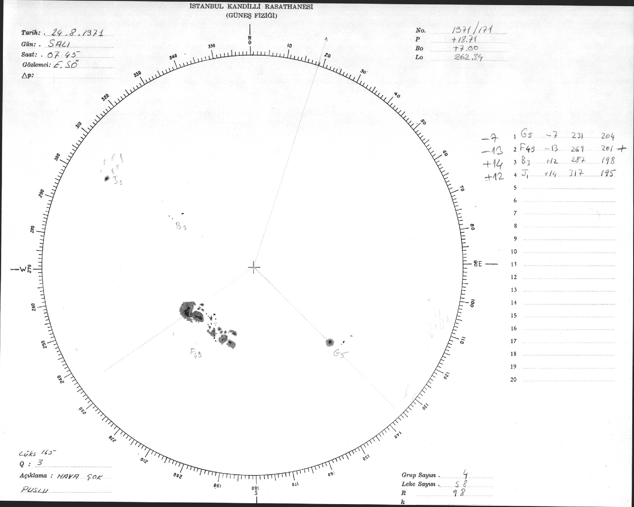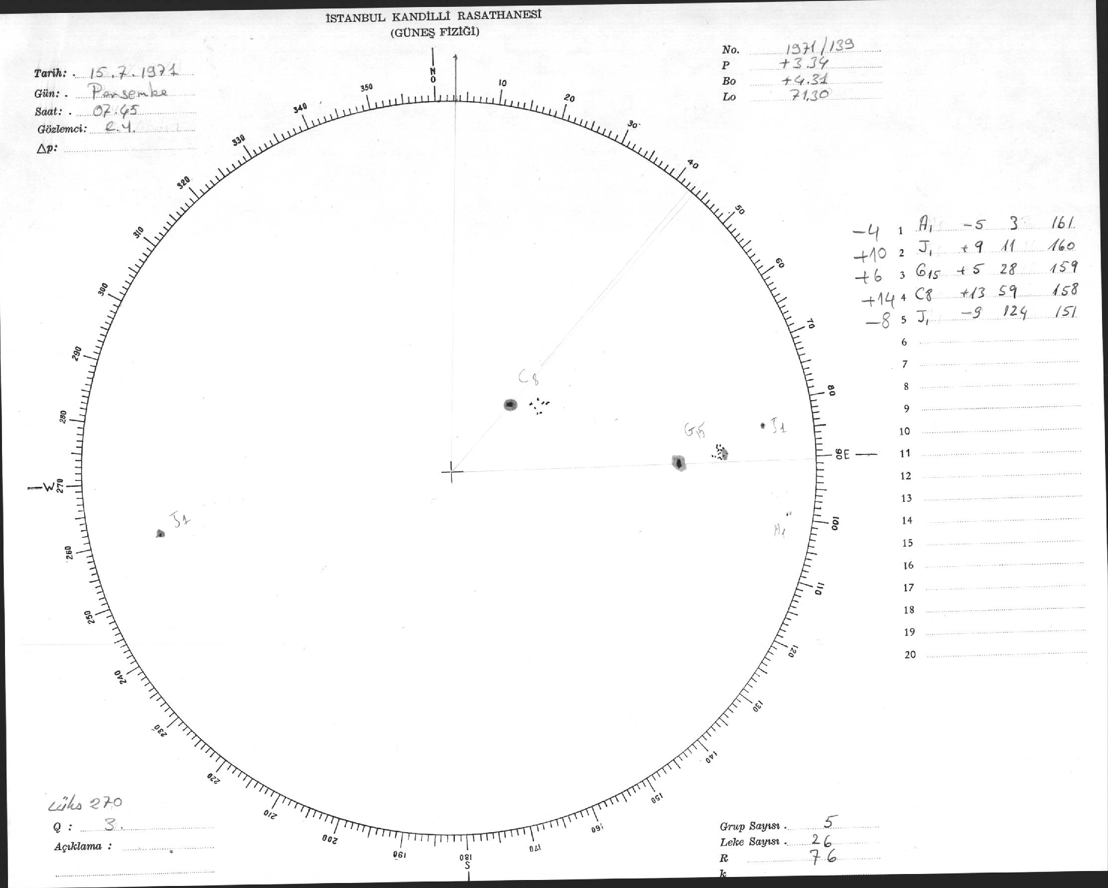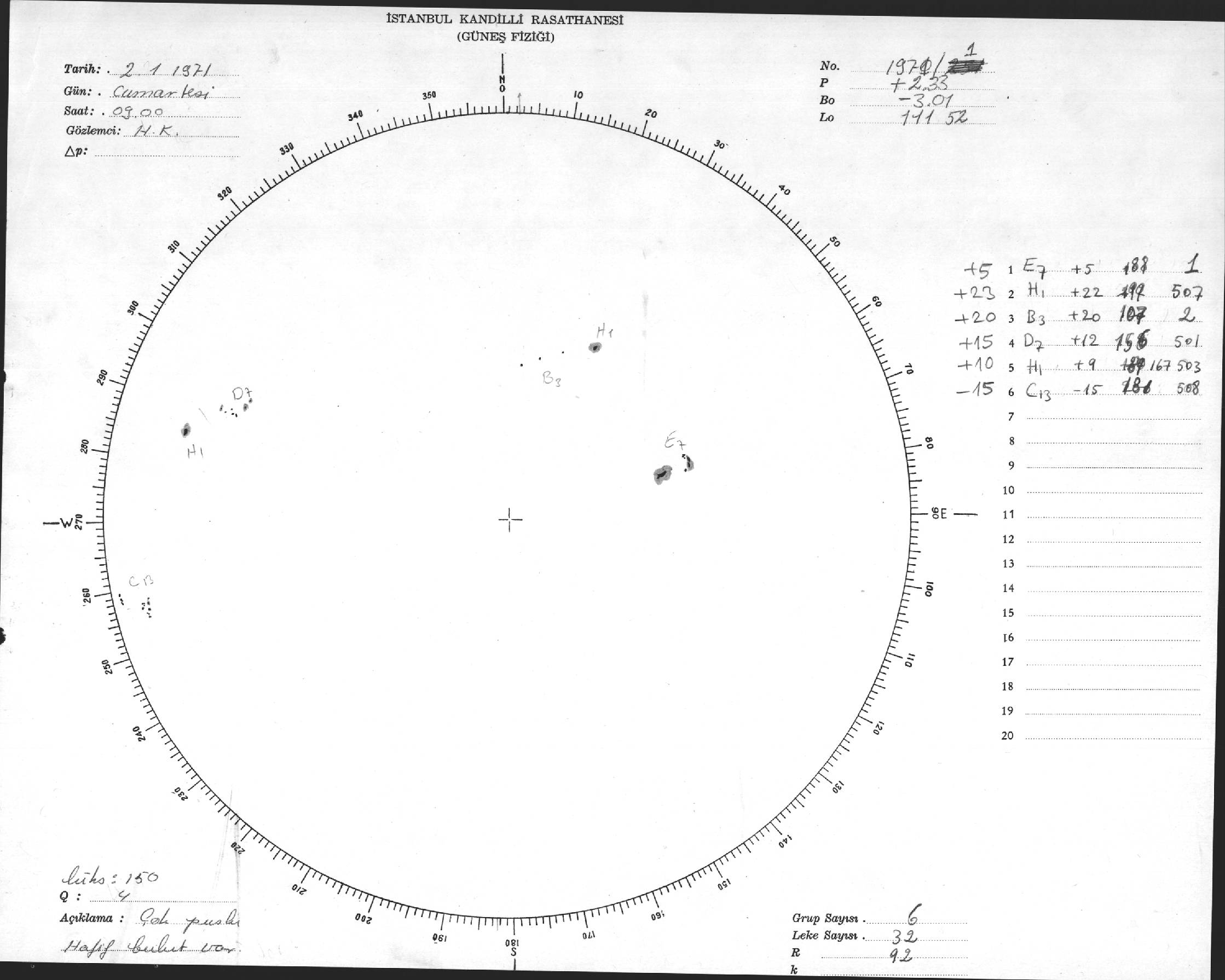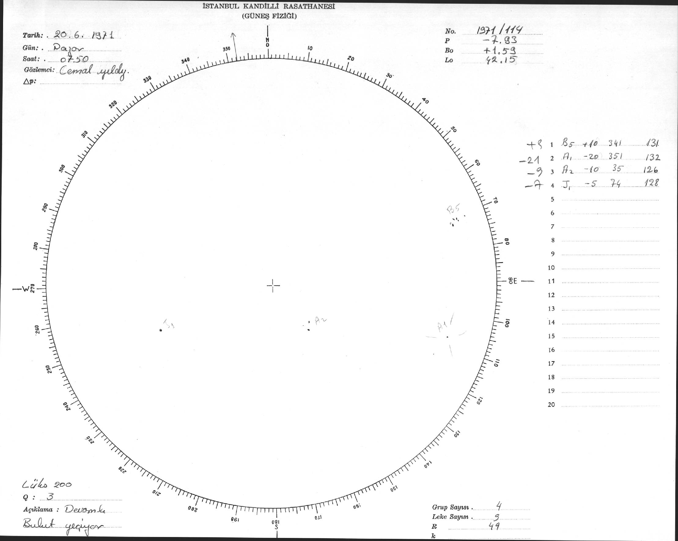 Güneş Lekesi Çizimleri / Kandilli Sunspot Drawings
