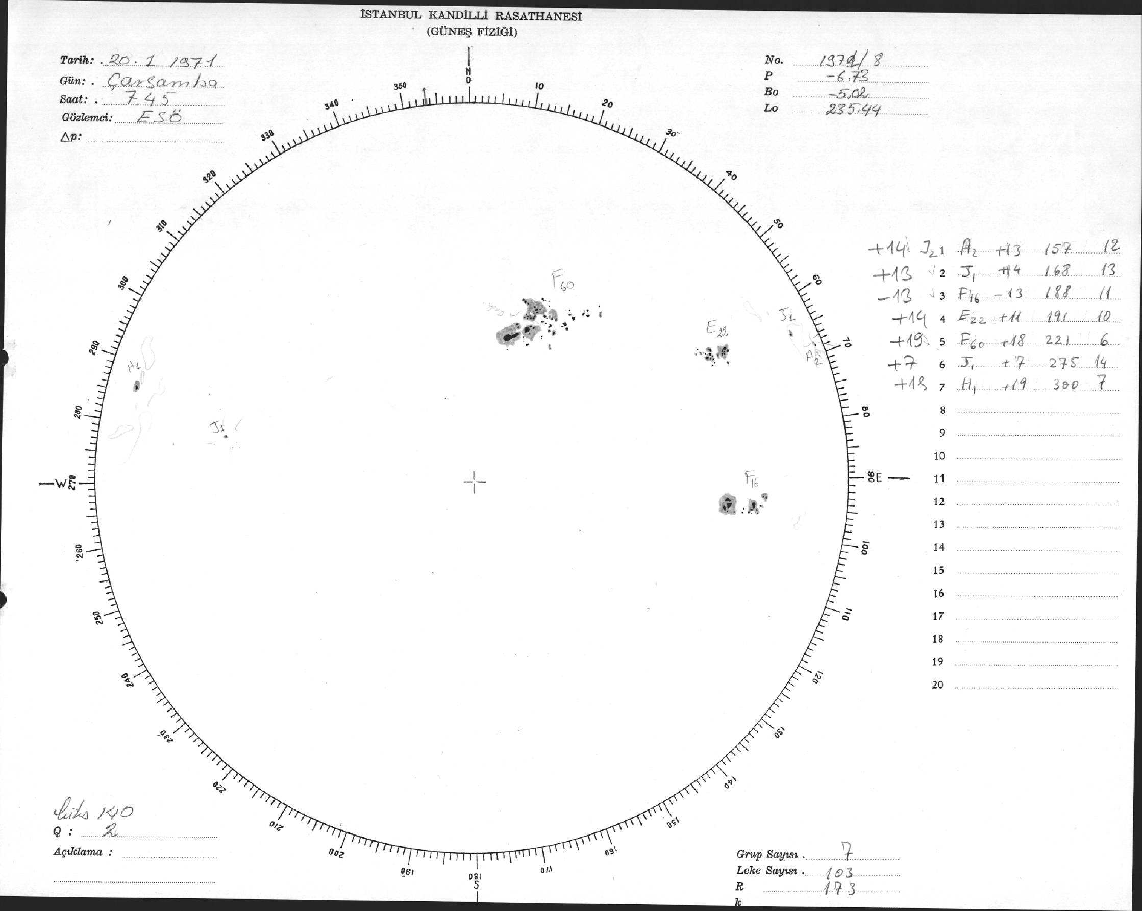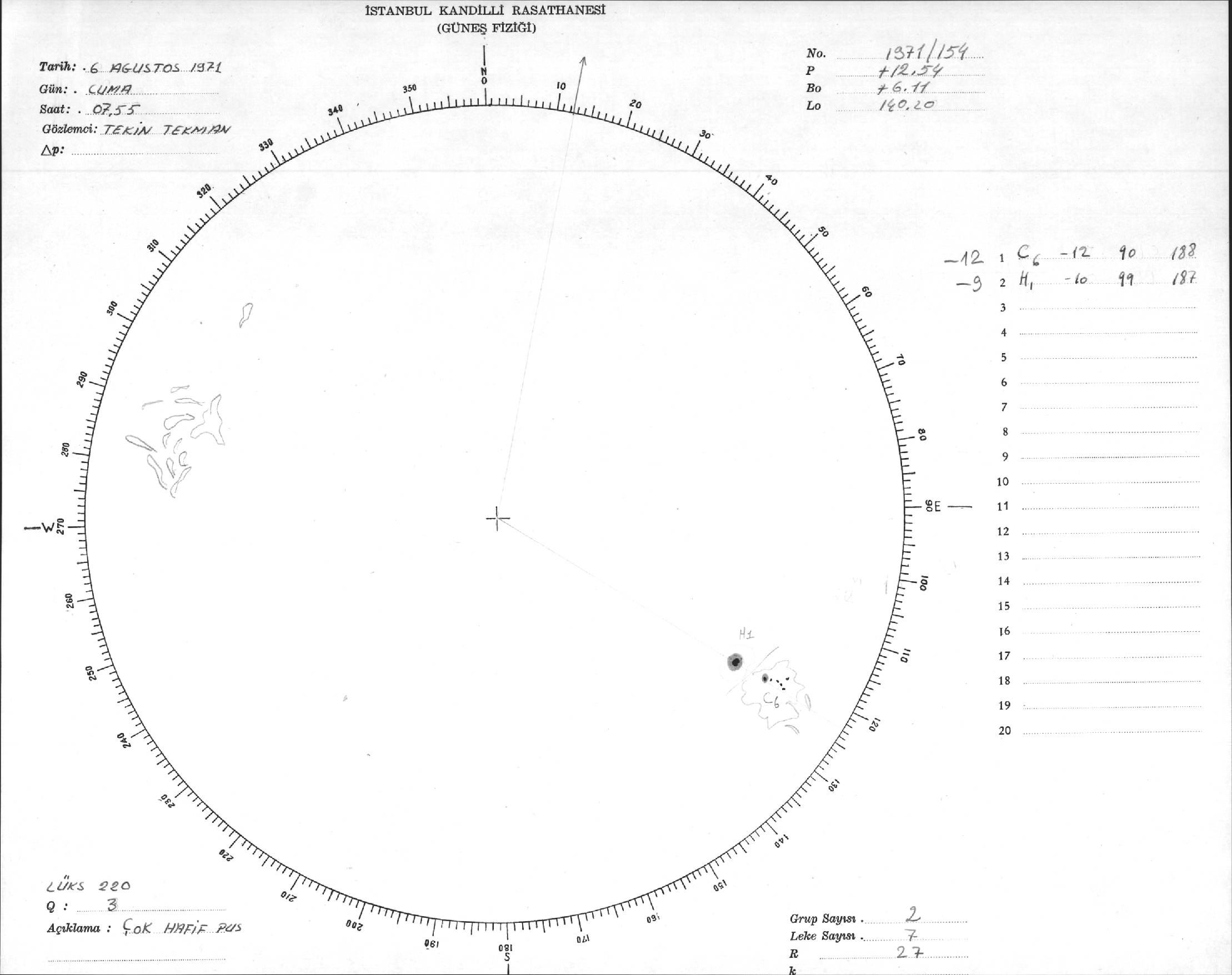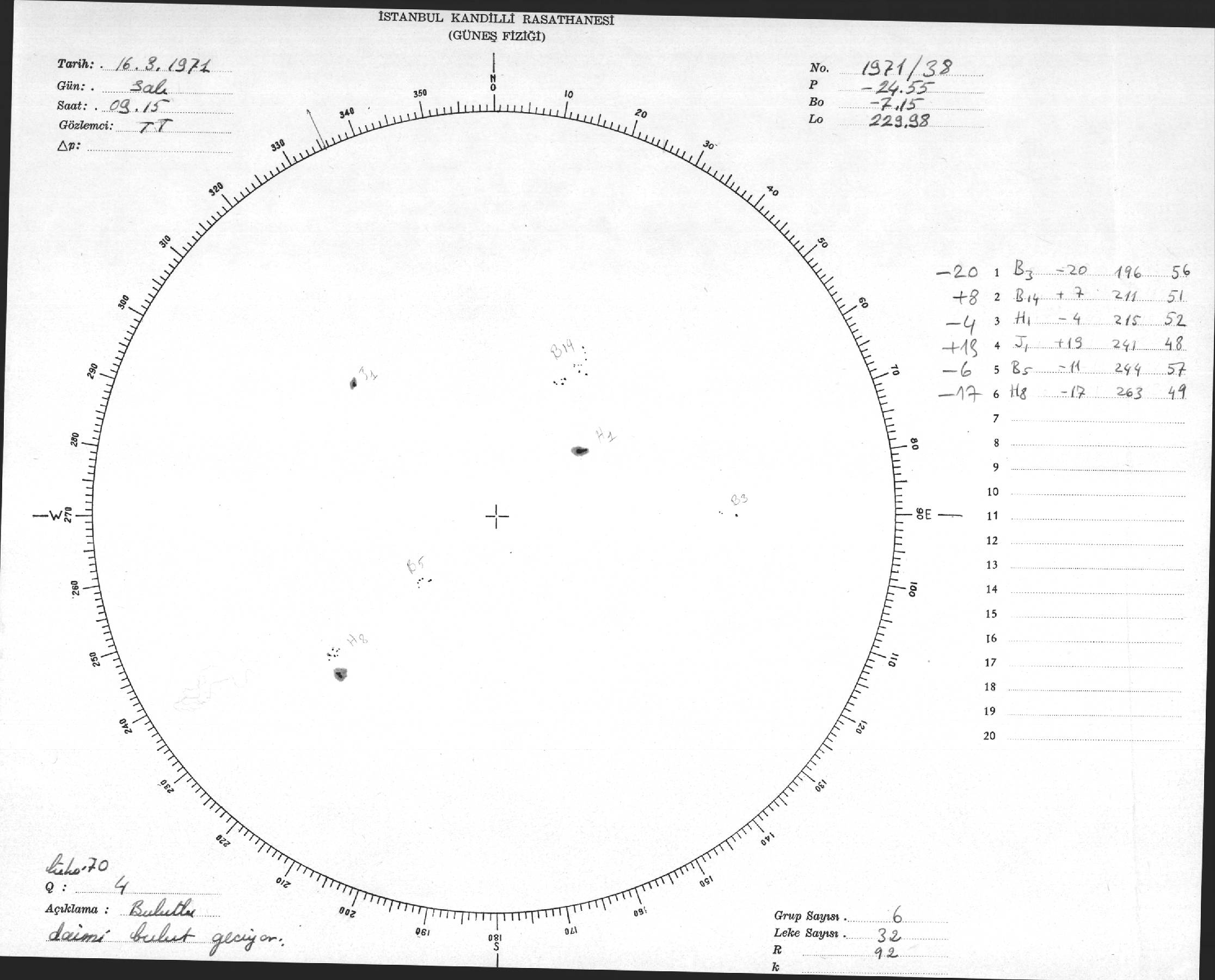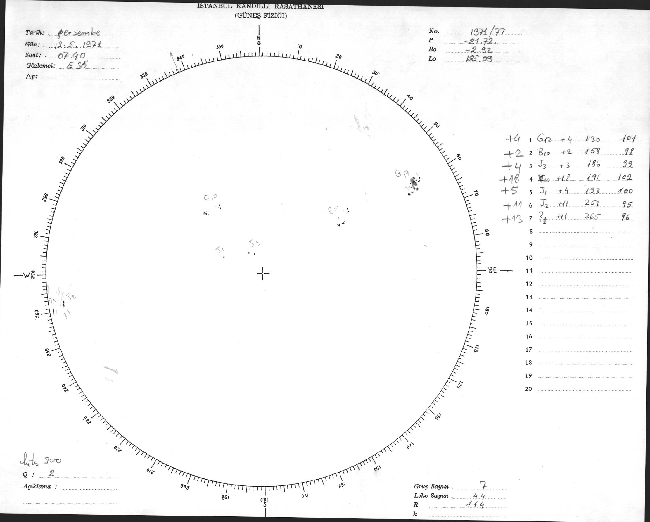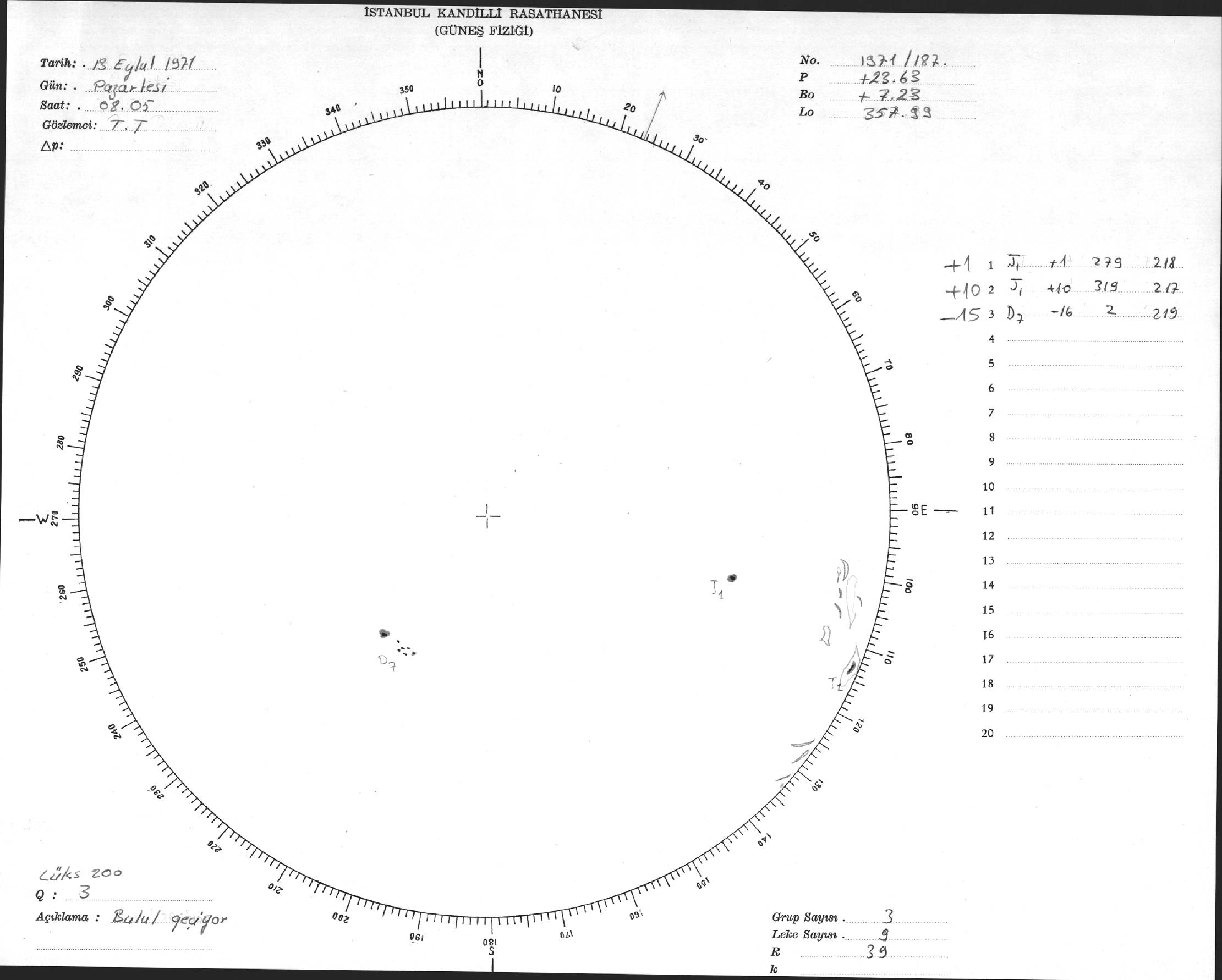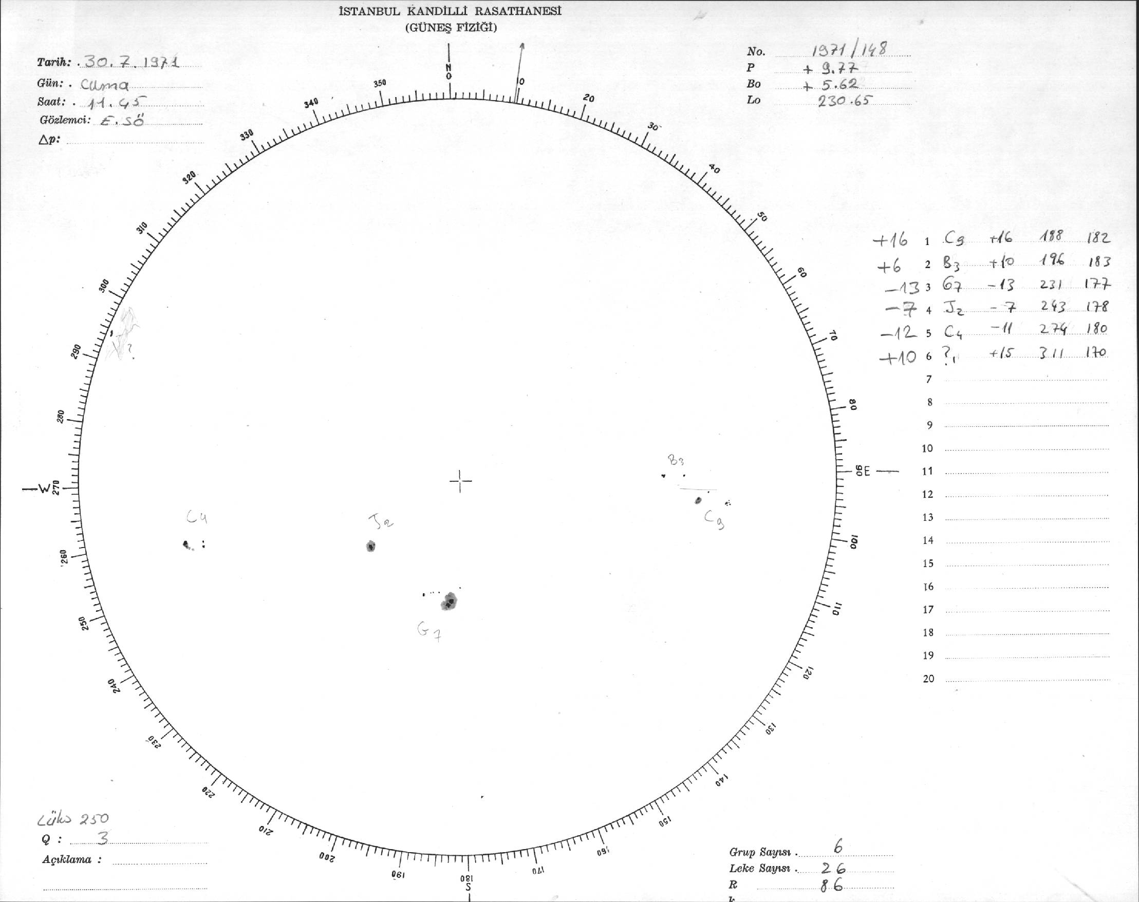Güneş Lekesi Çizimleri / Kandilli Sunspot Drawings