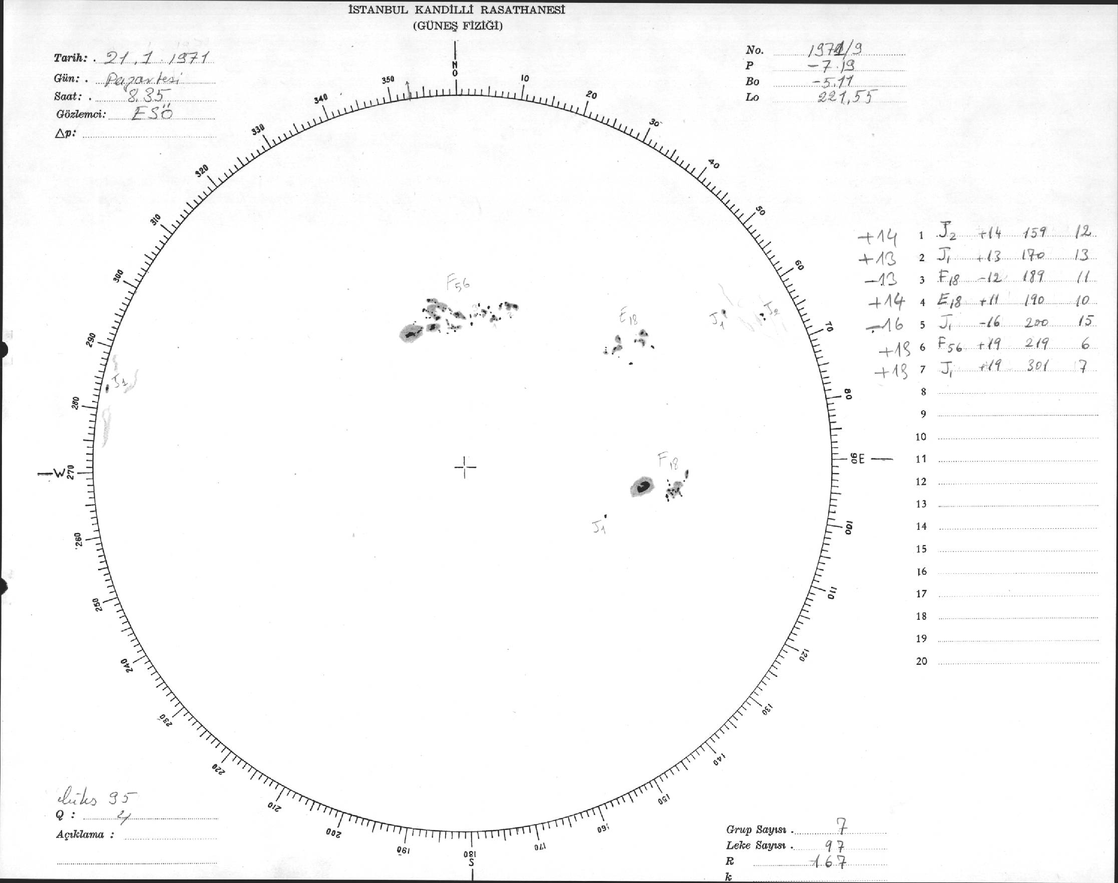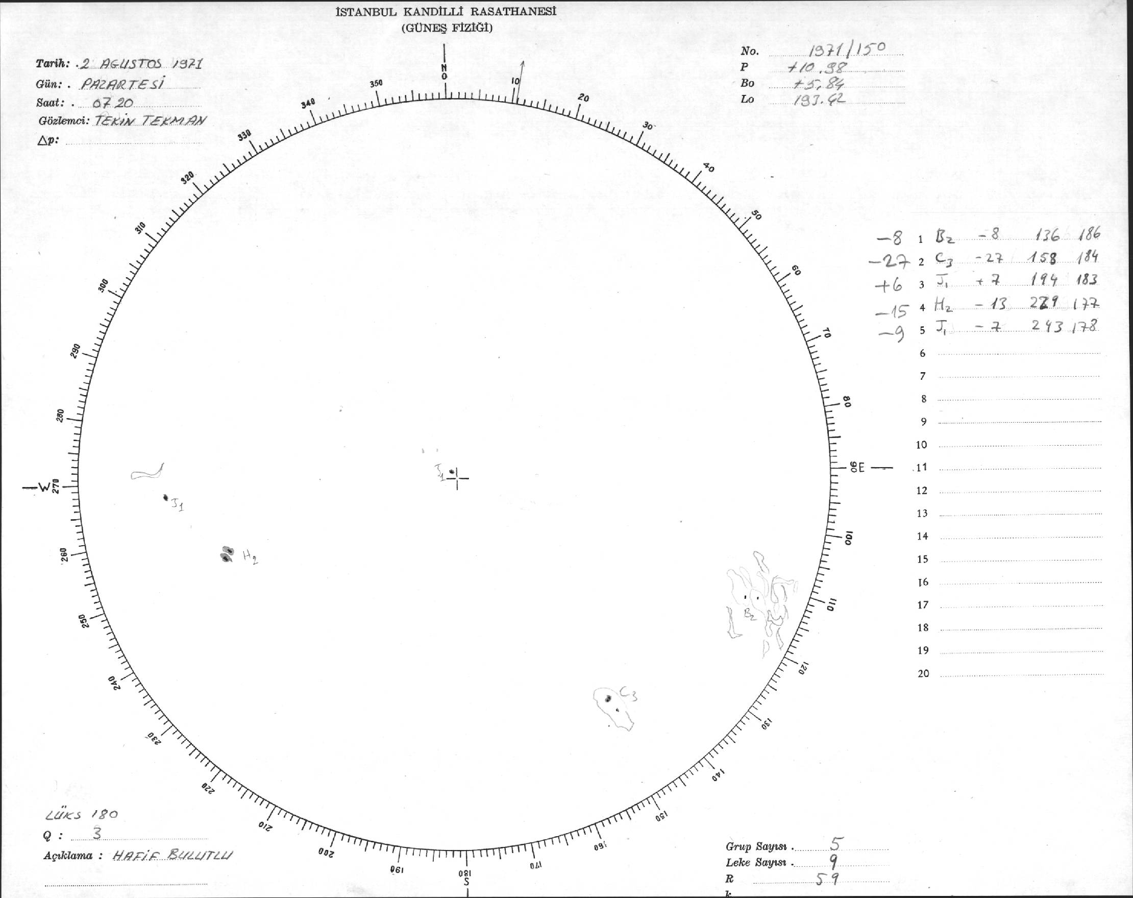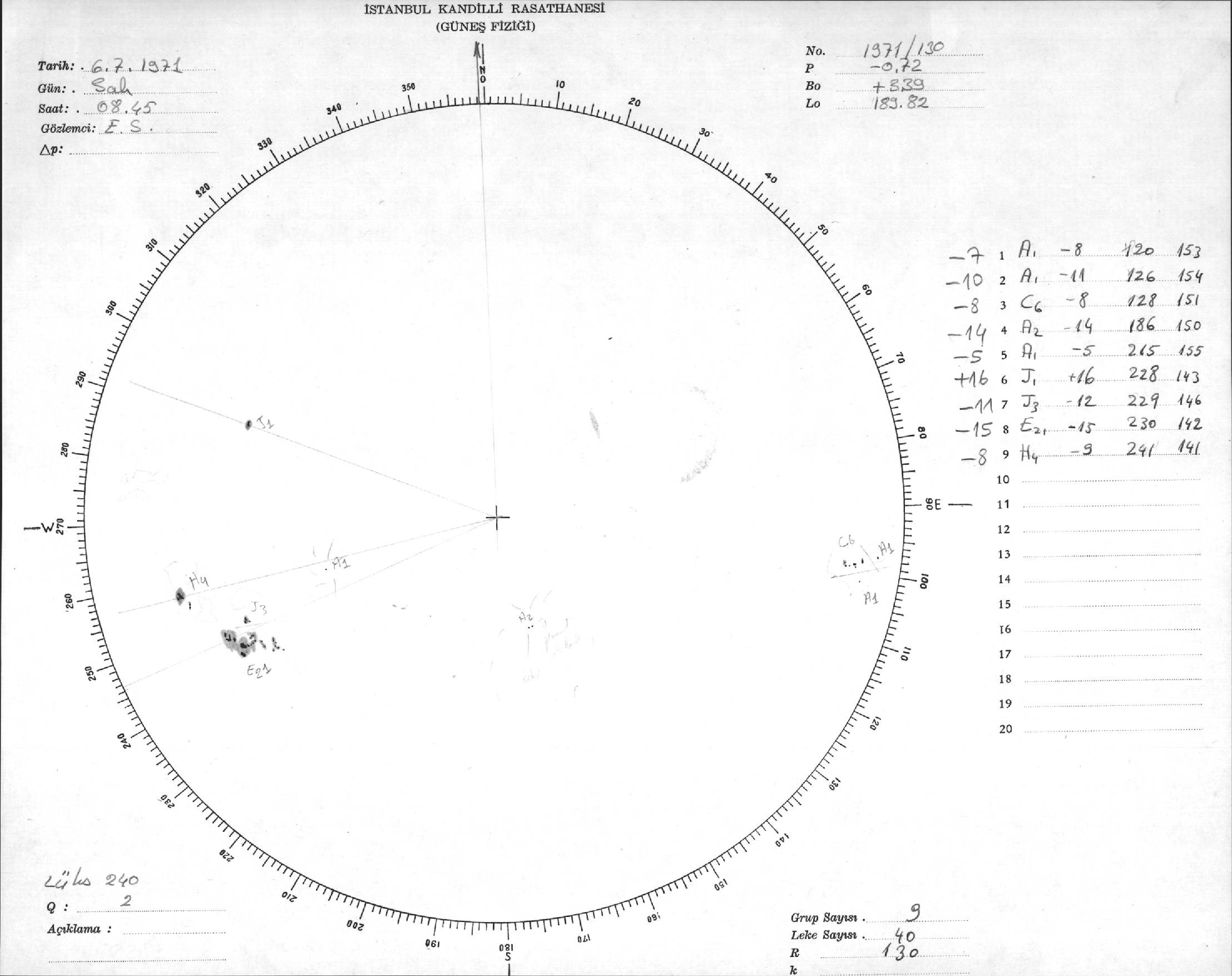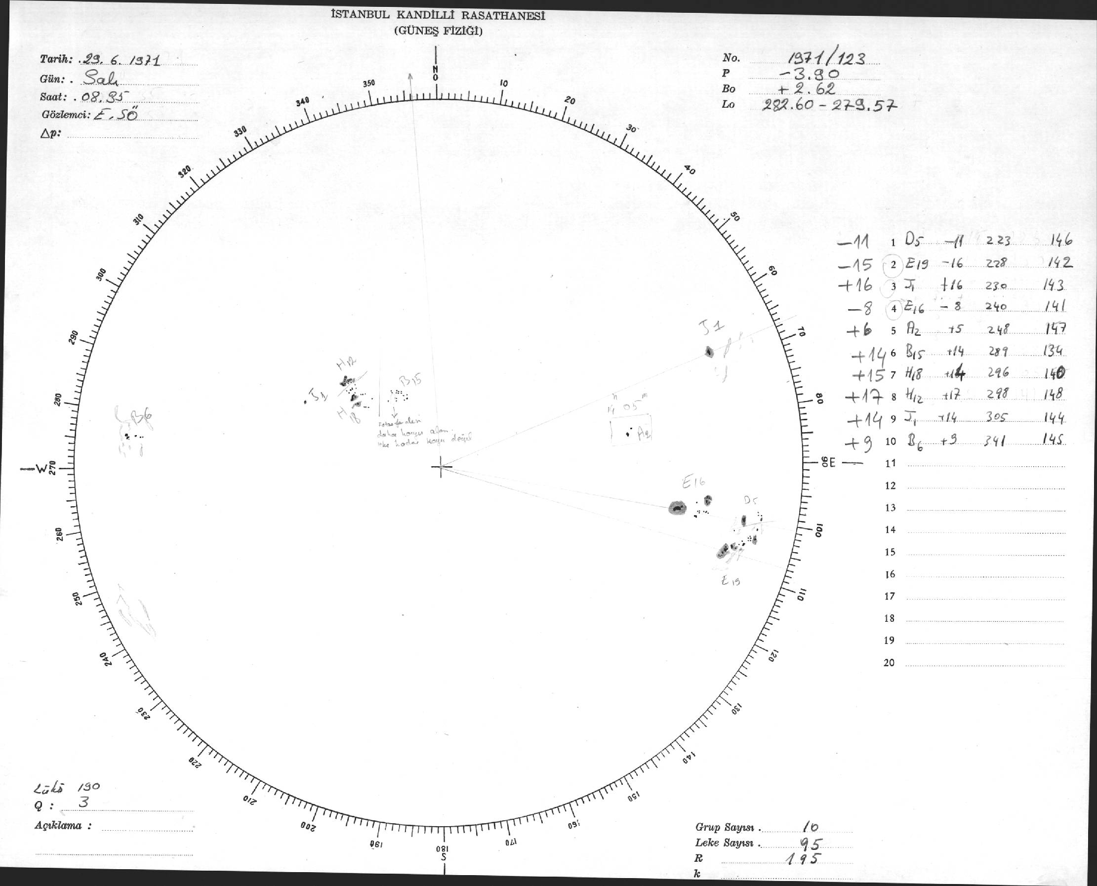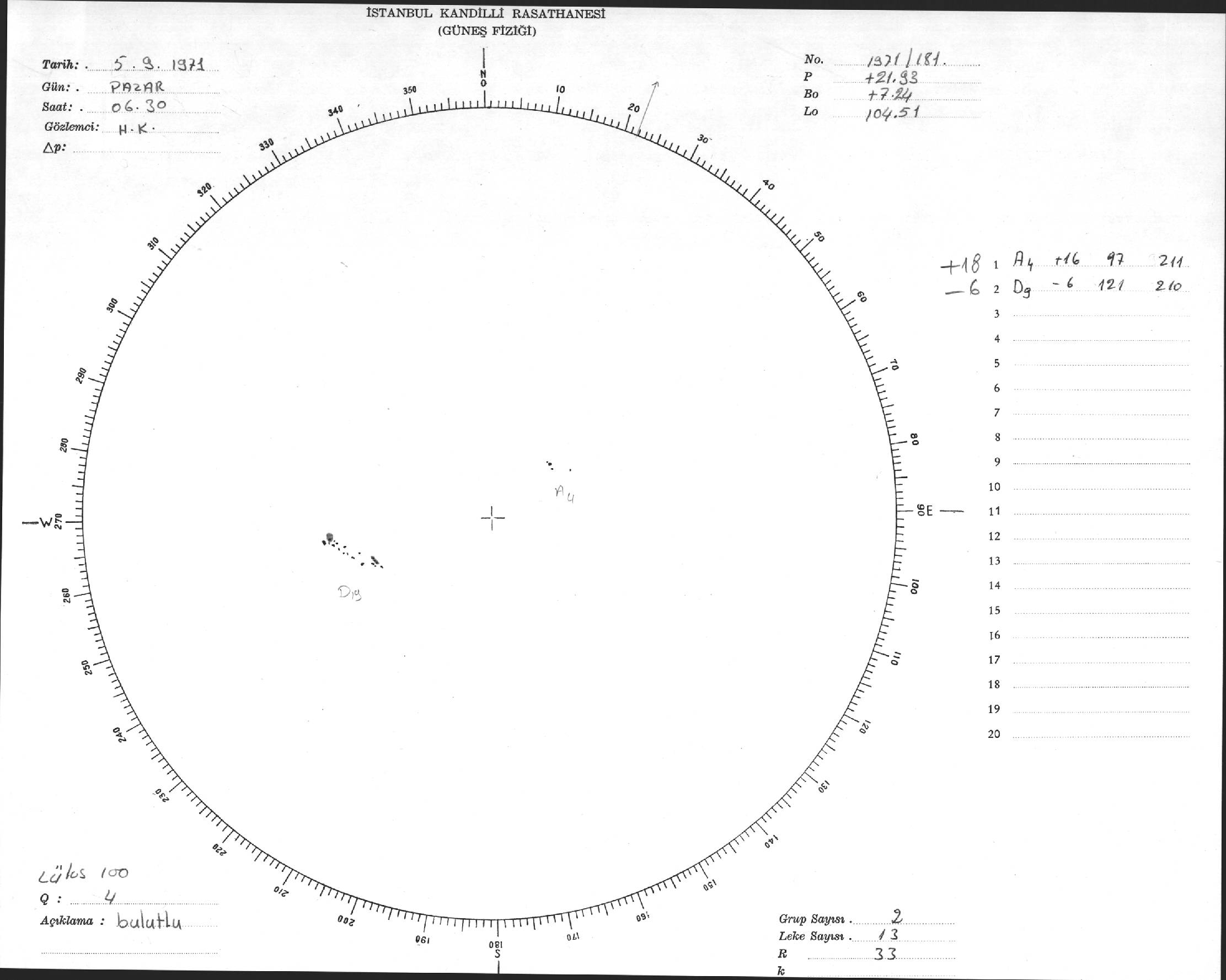 Güneş Lekesi Çizimleri / Kandilli Sunspot Drawings