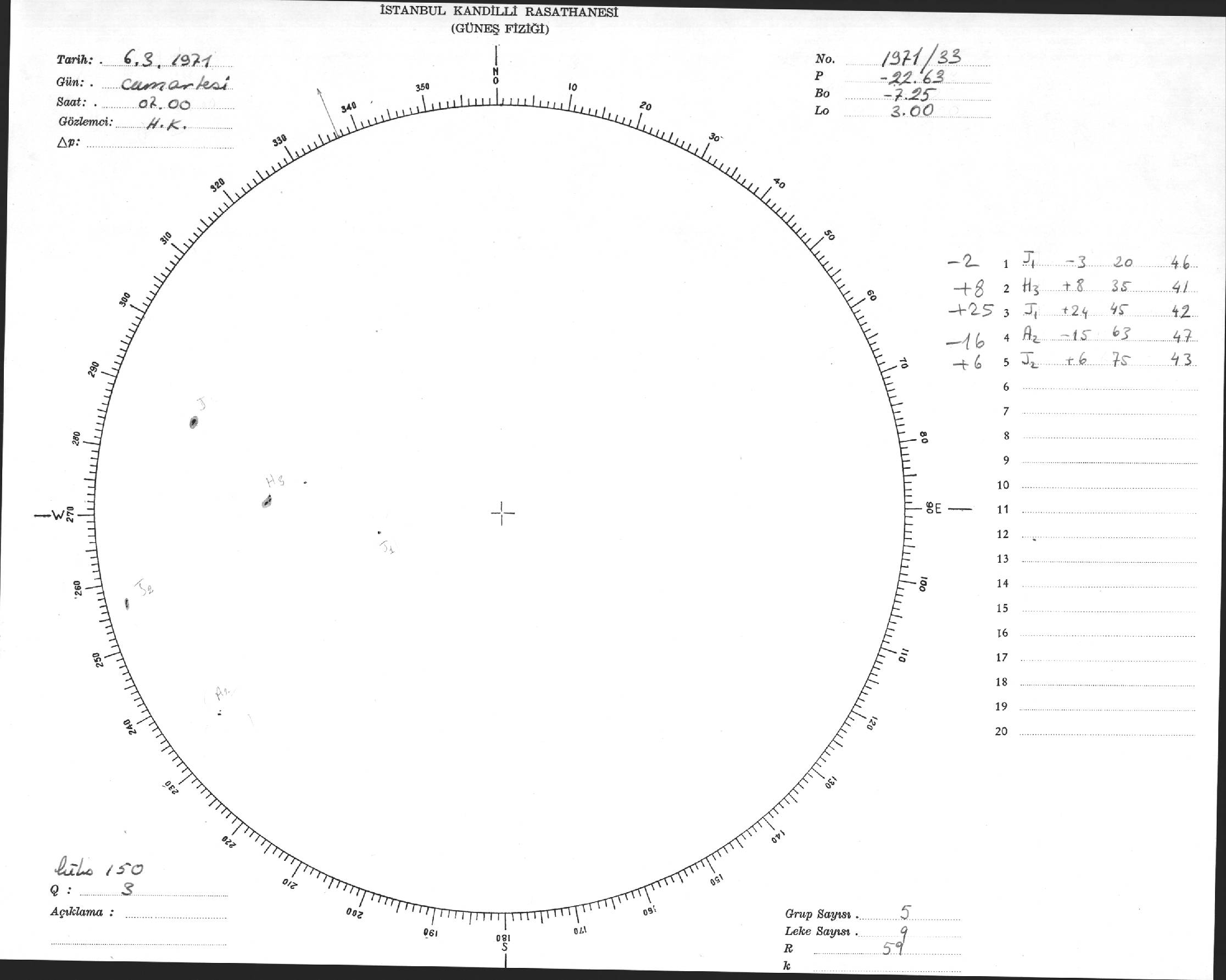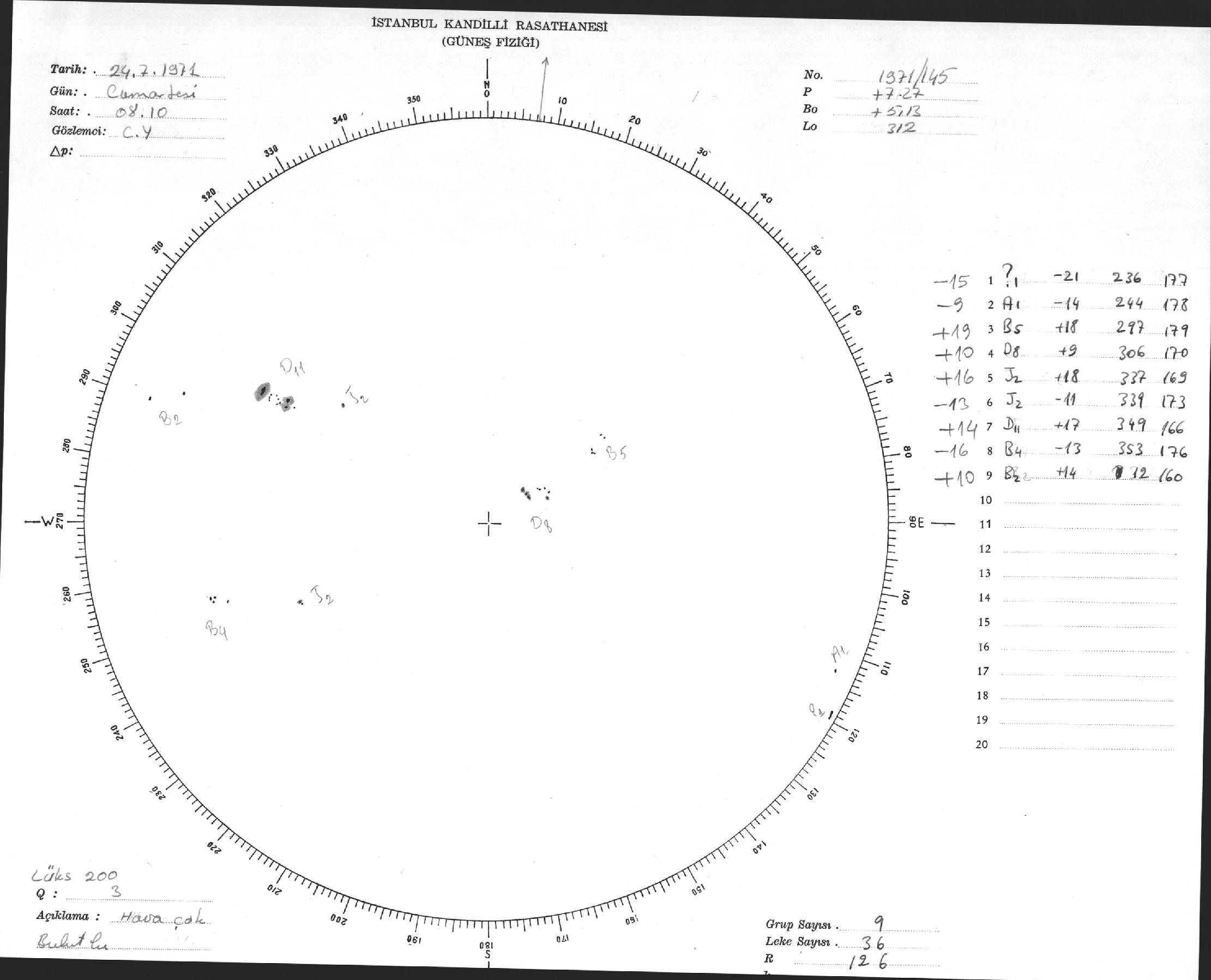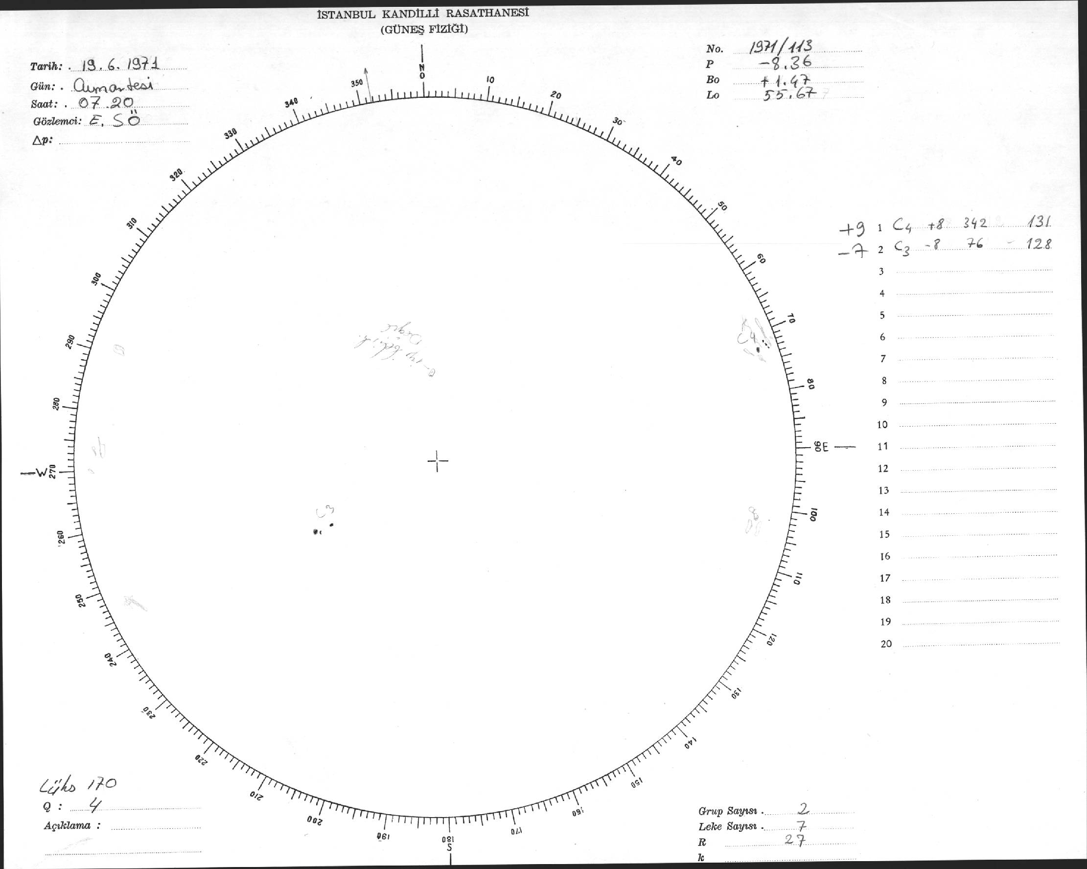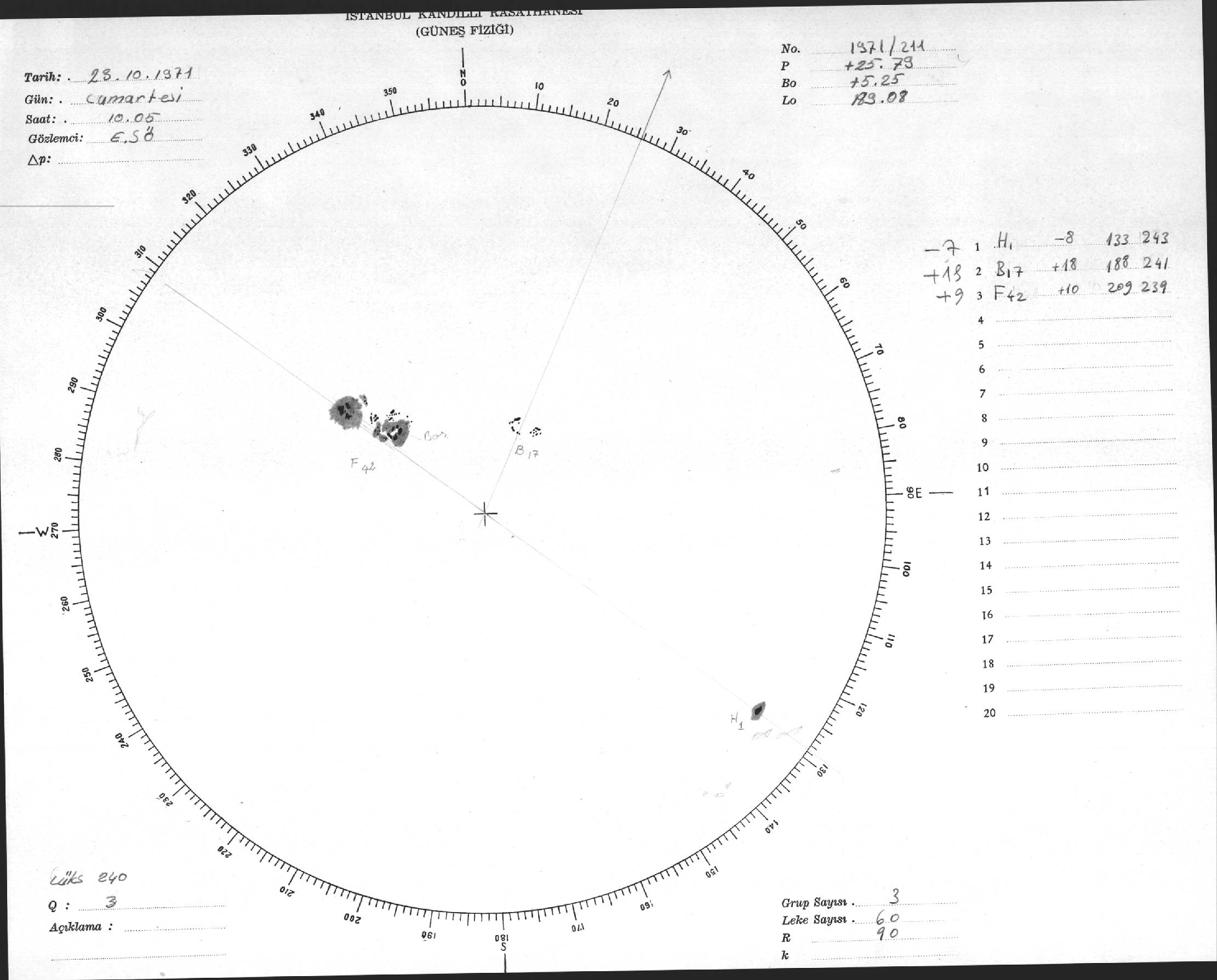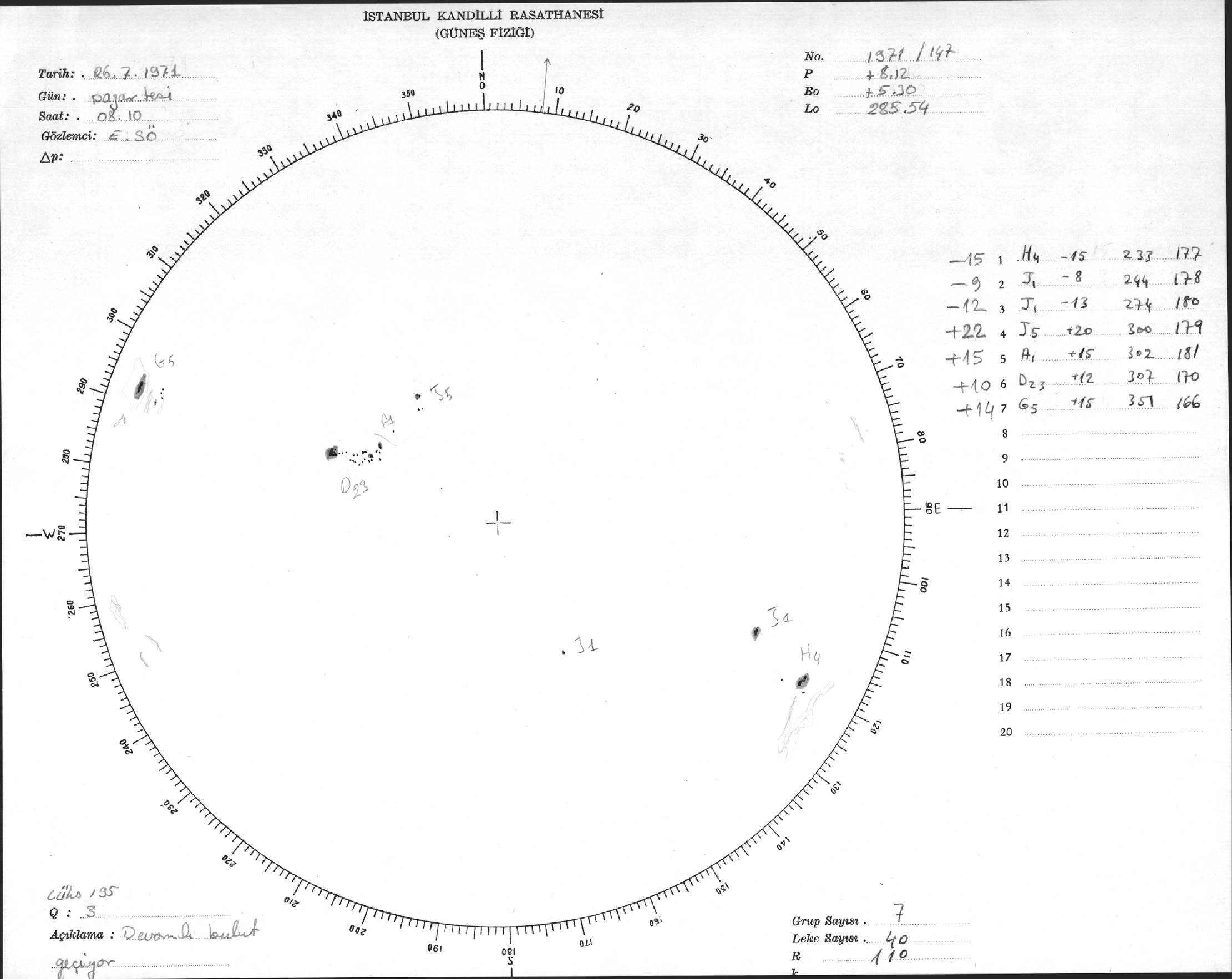 Güneş Lekesi Çizimleri / Kandilli Sunspot Drawings