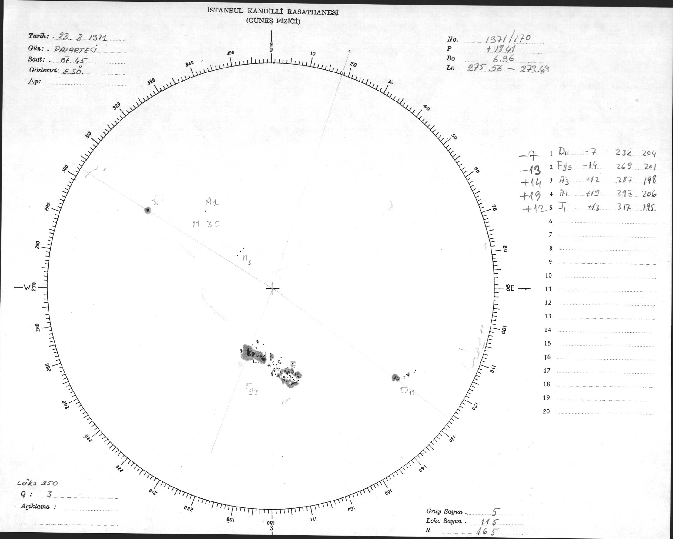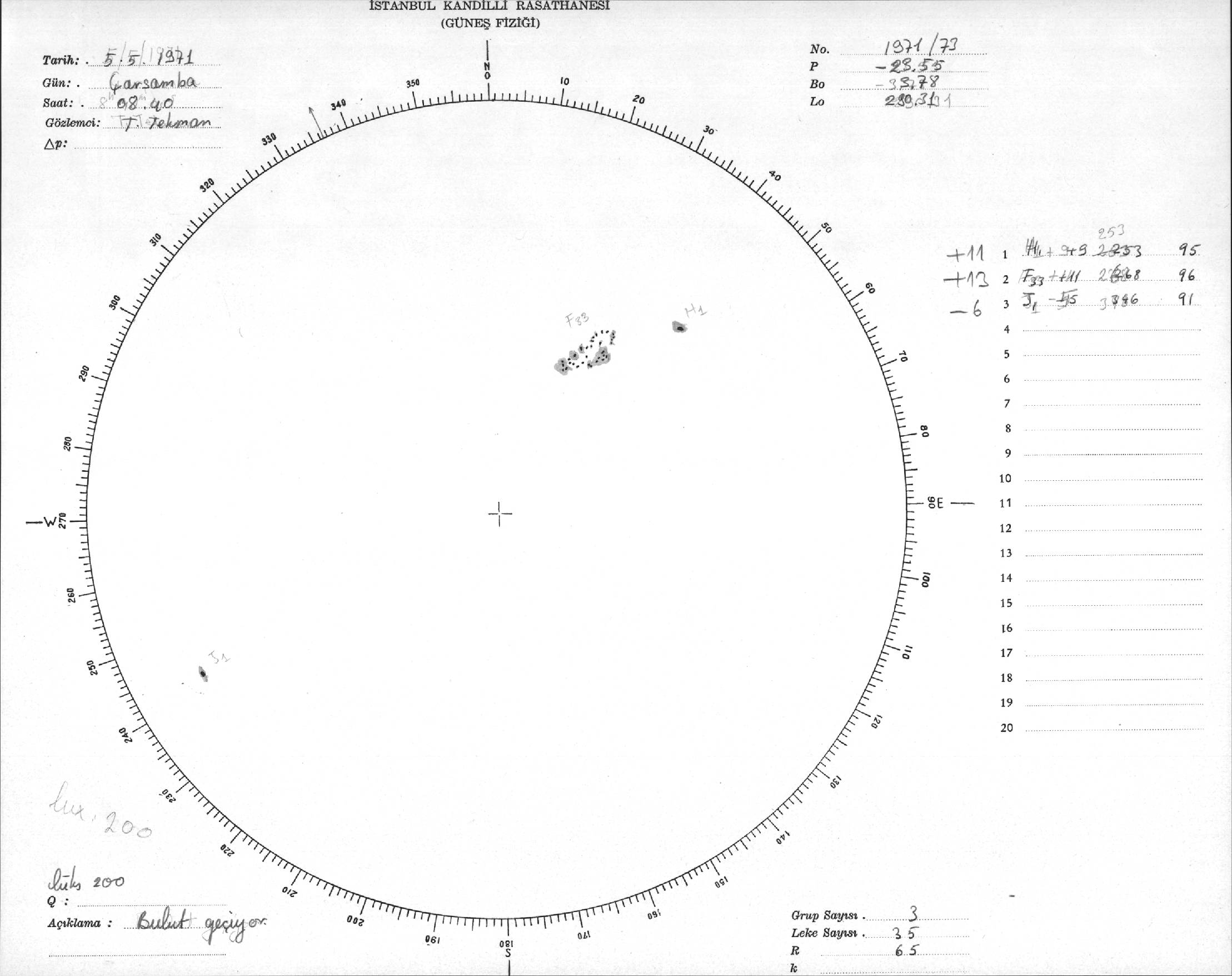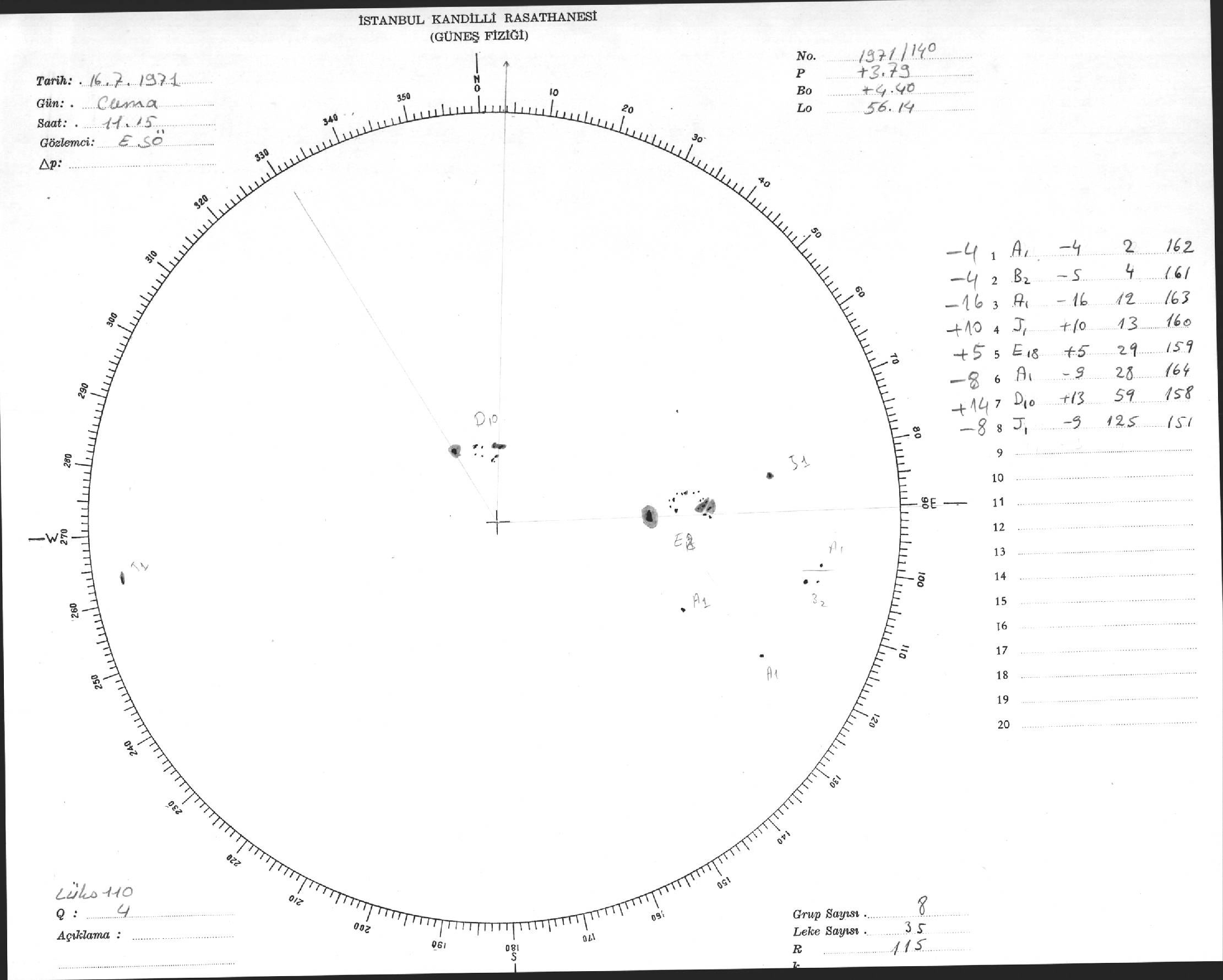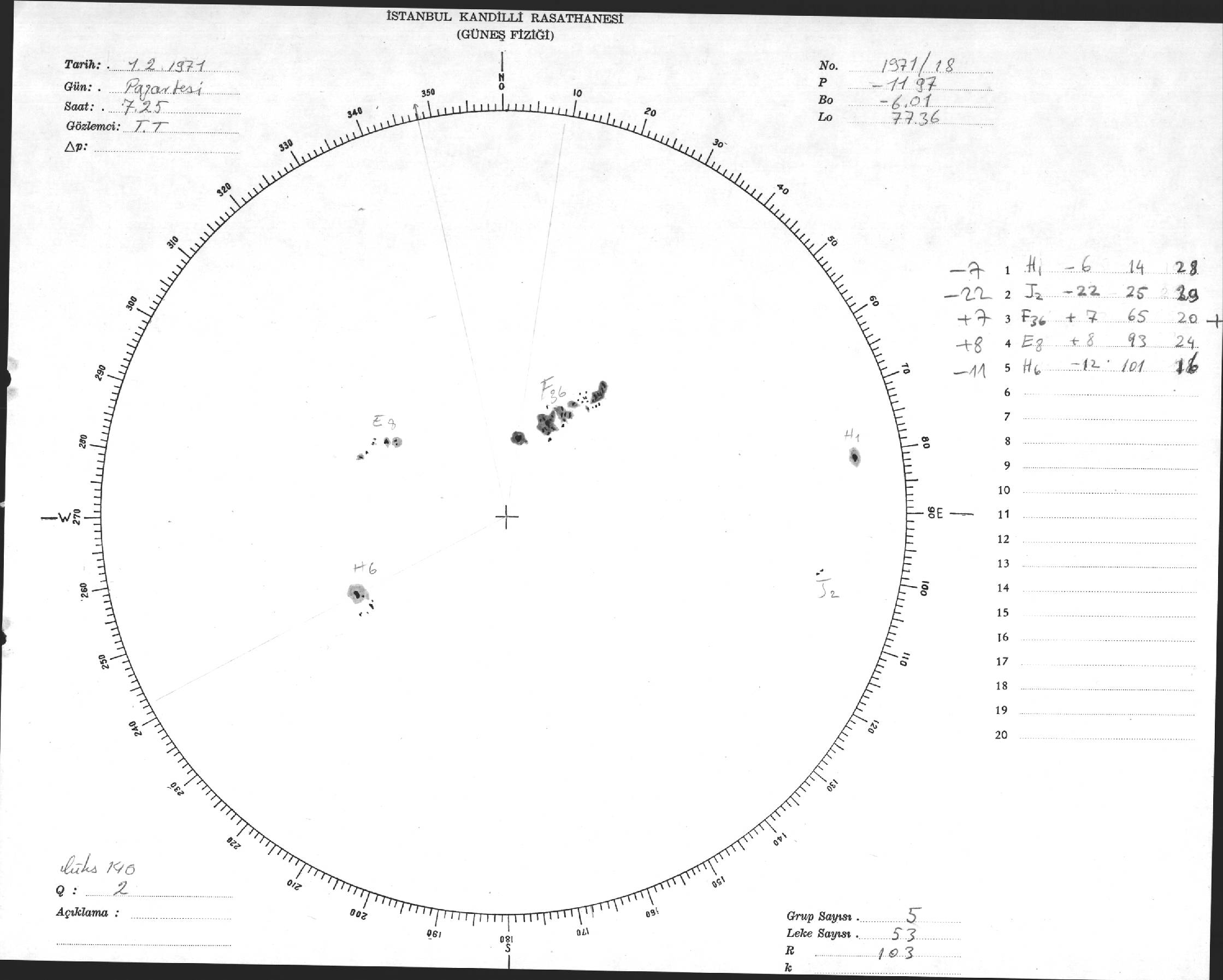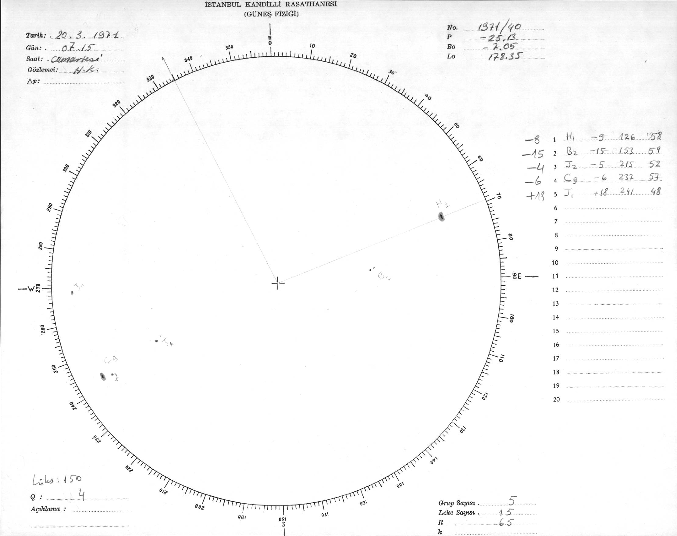 Güneş Lekesi Çizimleri / Kandilli Sunspot Drawings