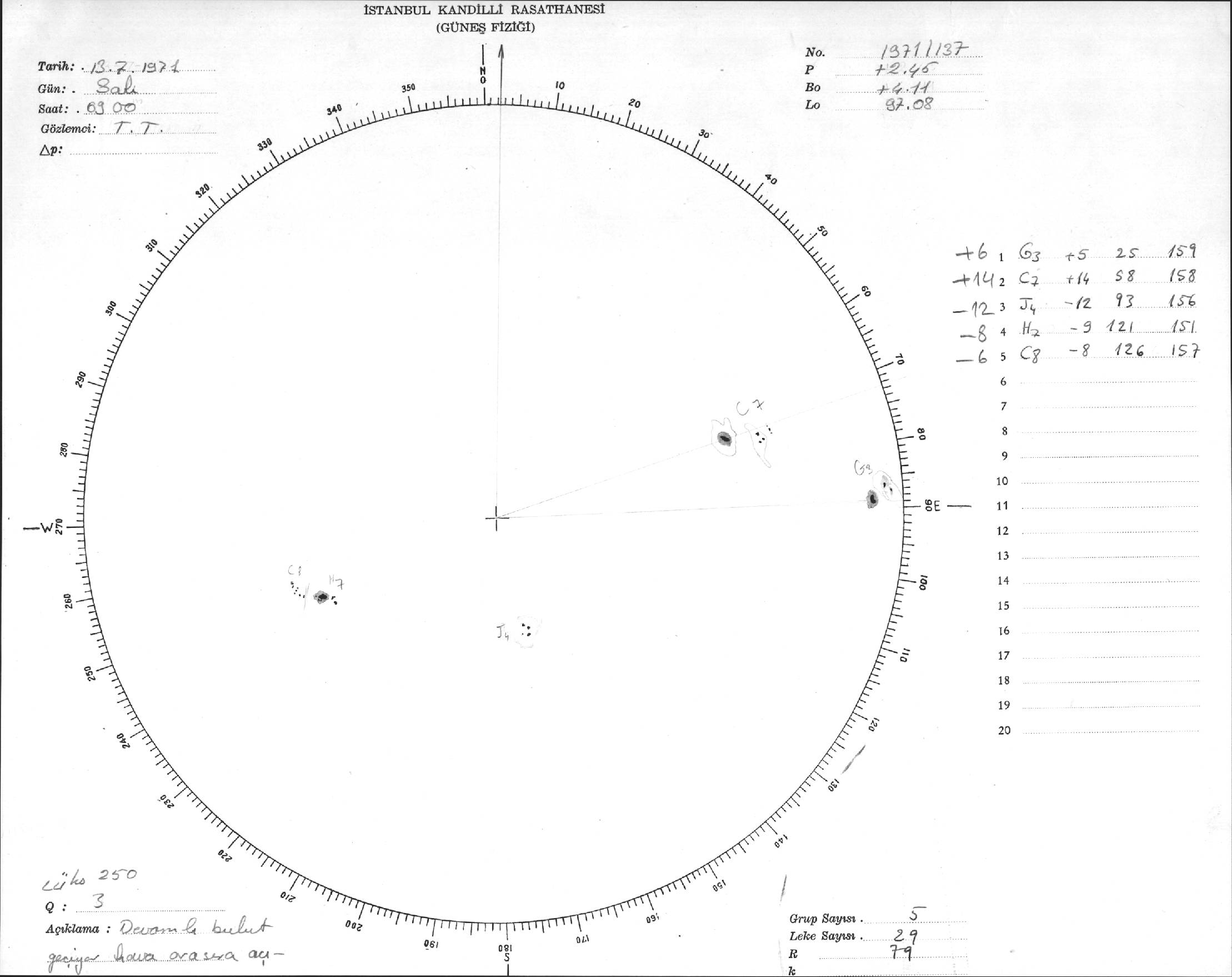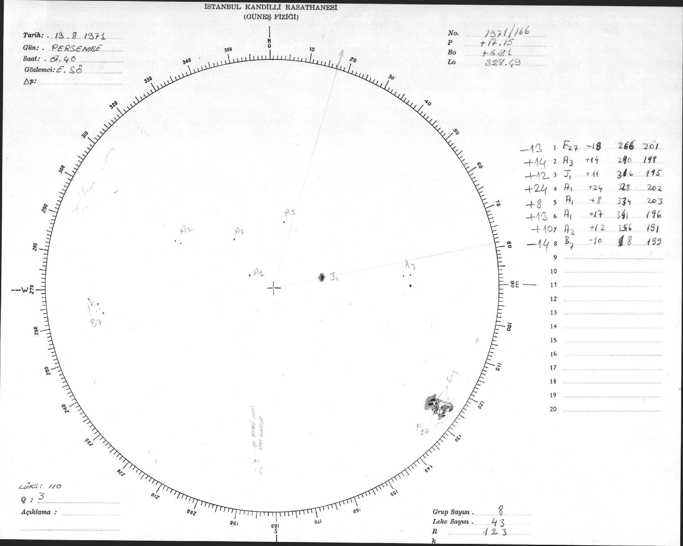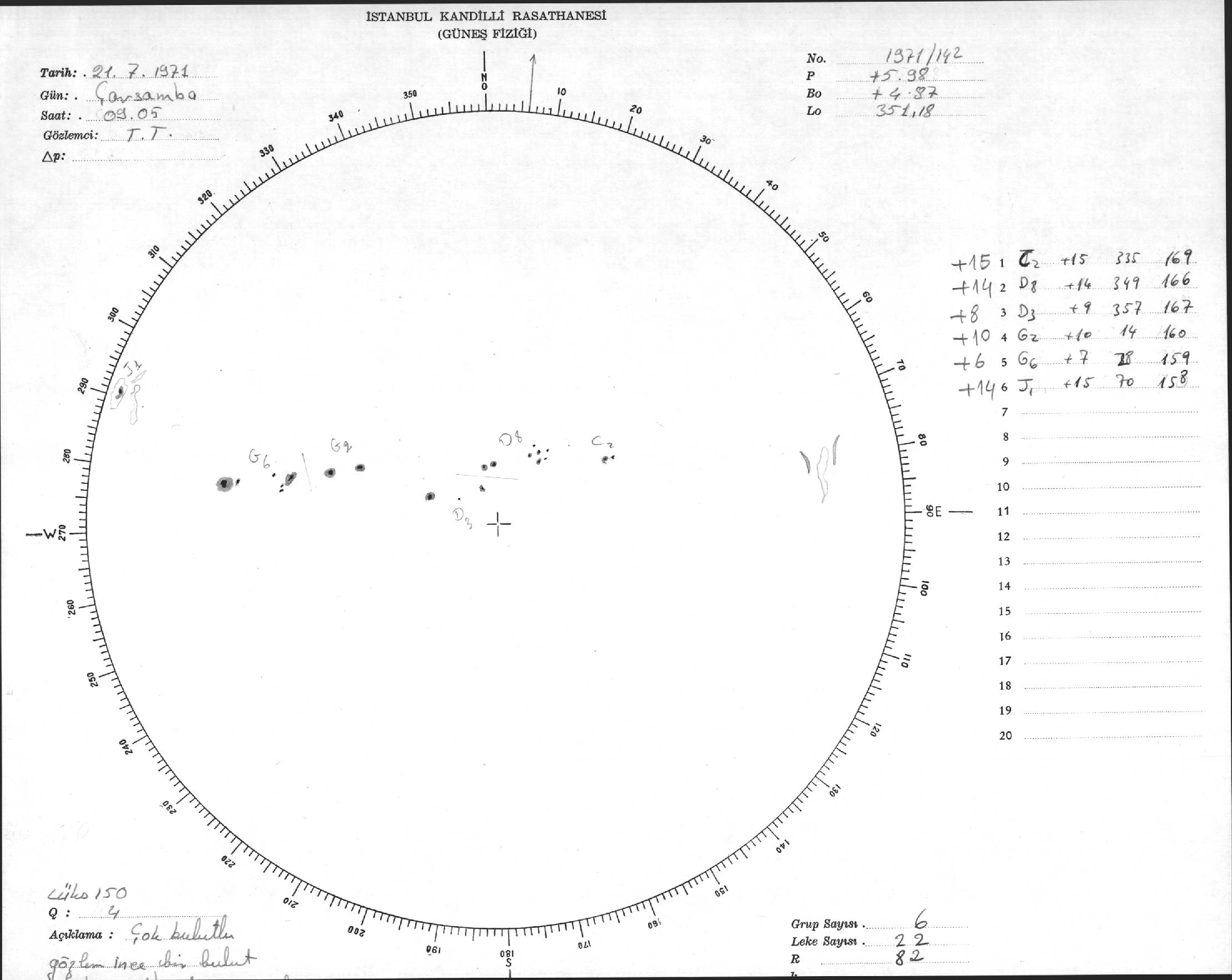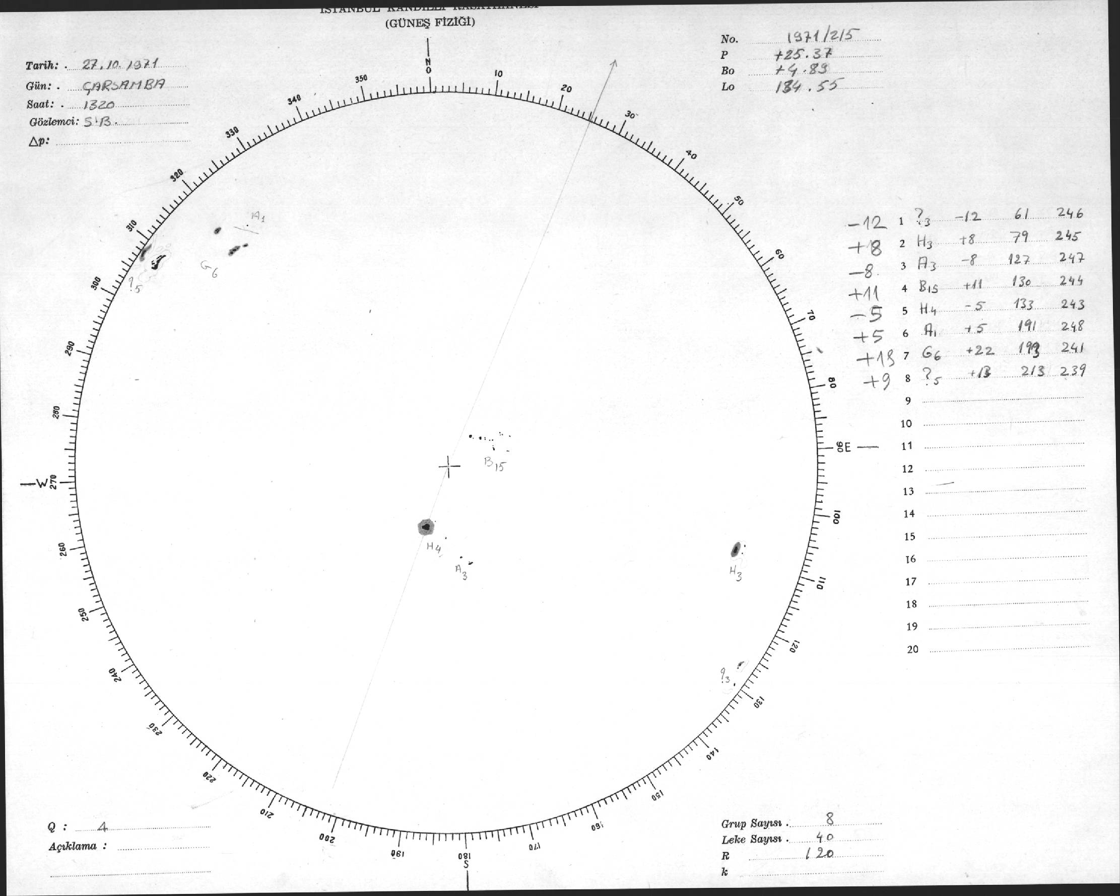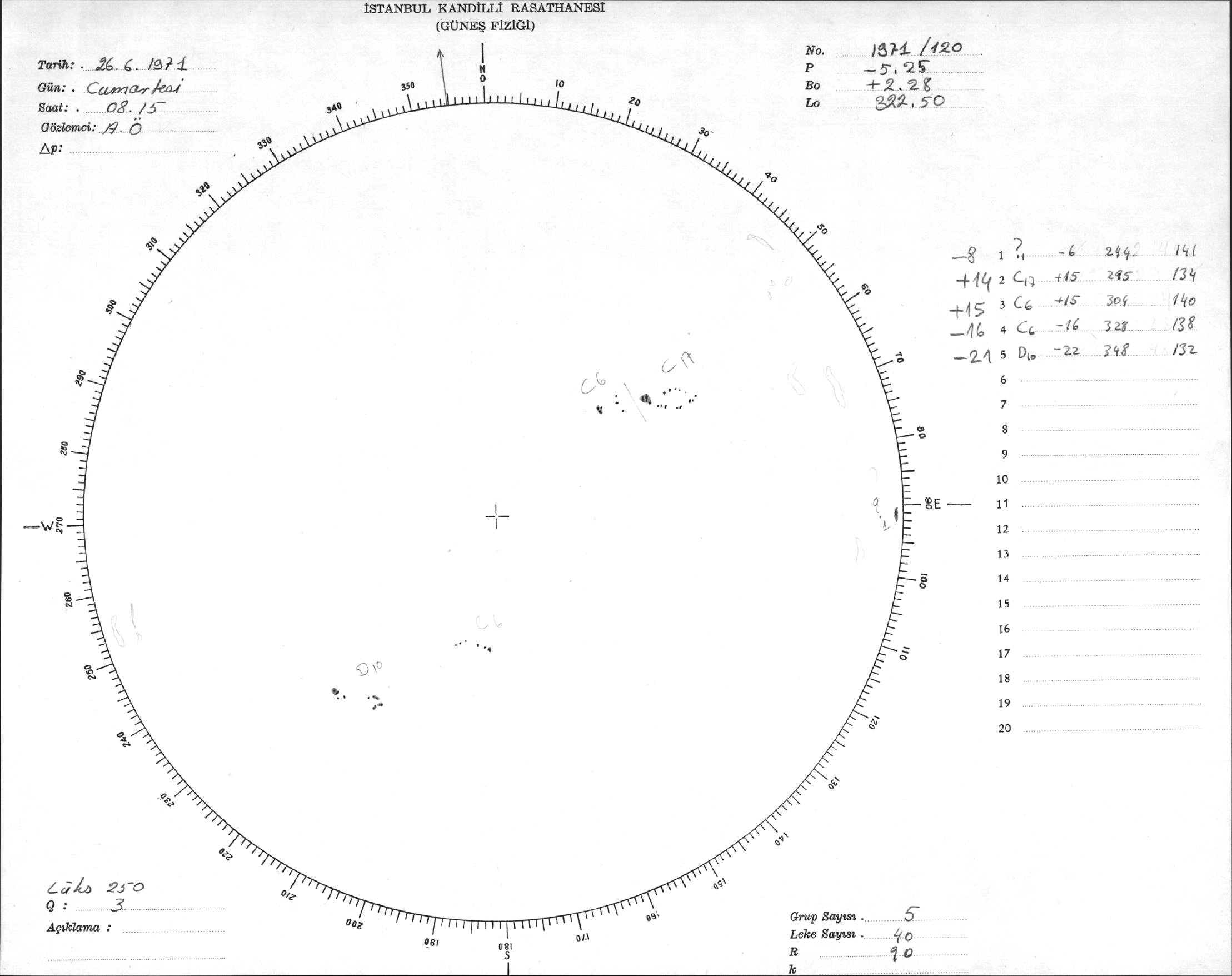 Güneş Lekesi Çizimleri / Kandilli Sunspot Drawings