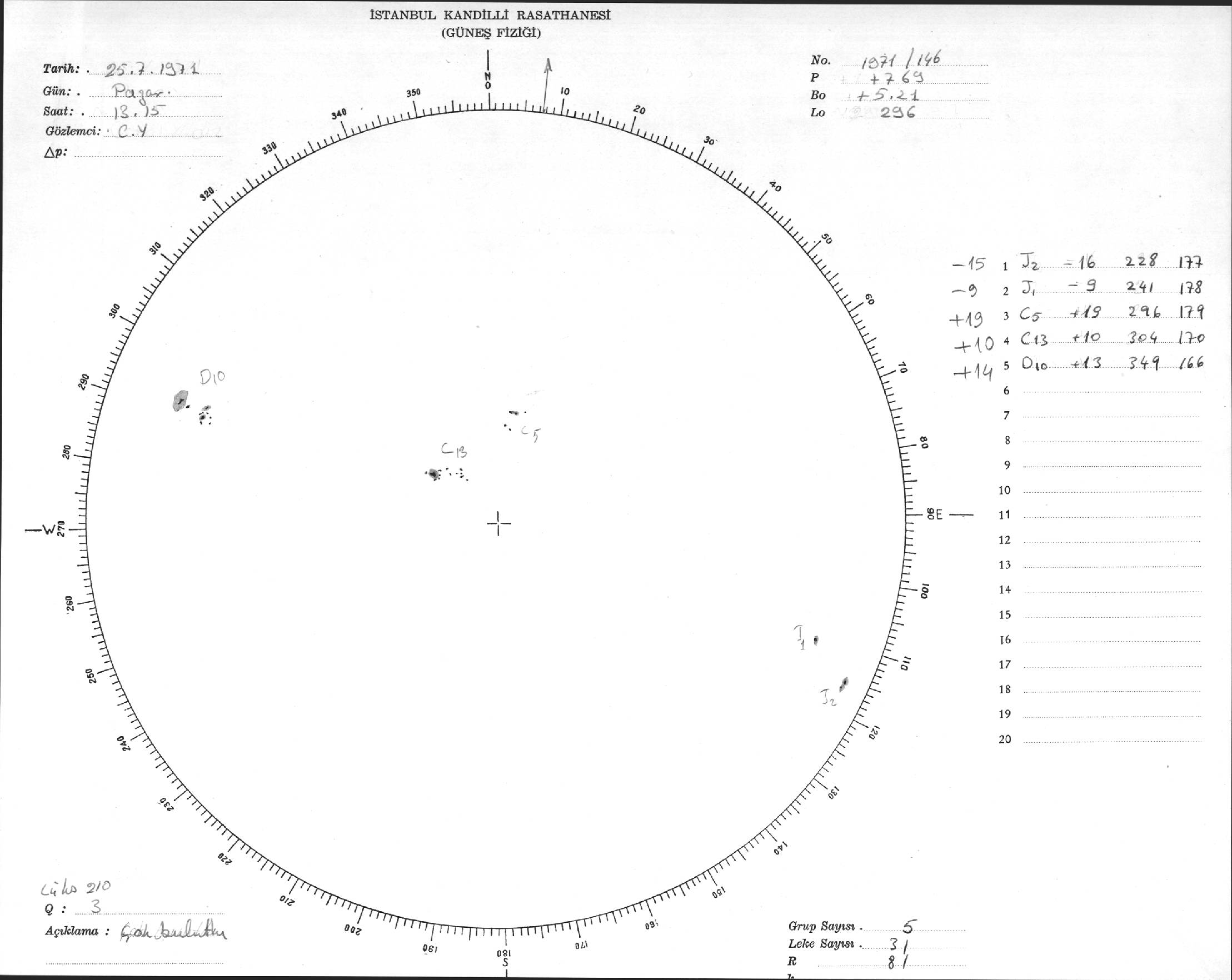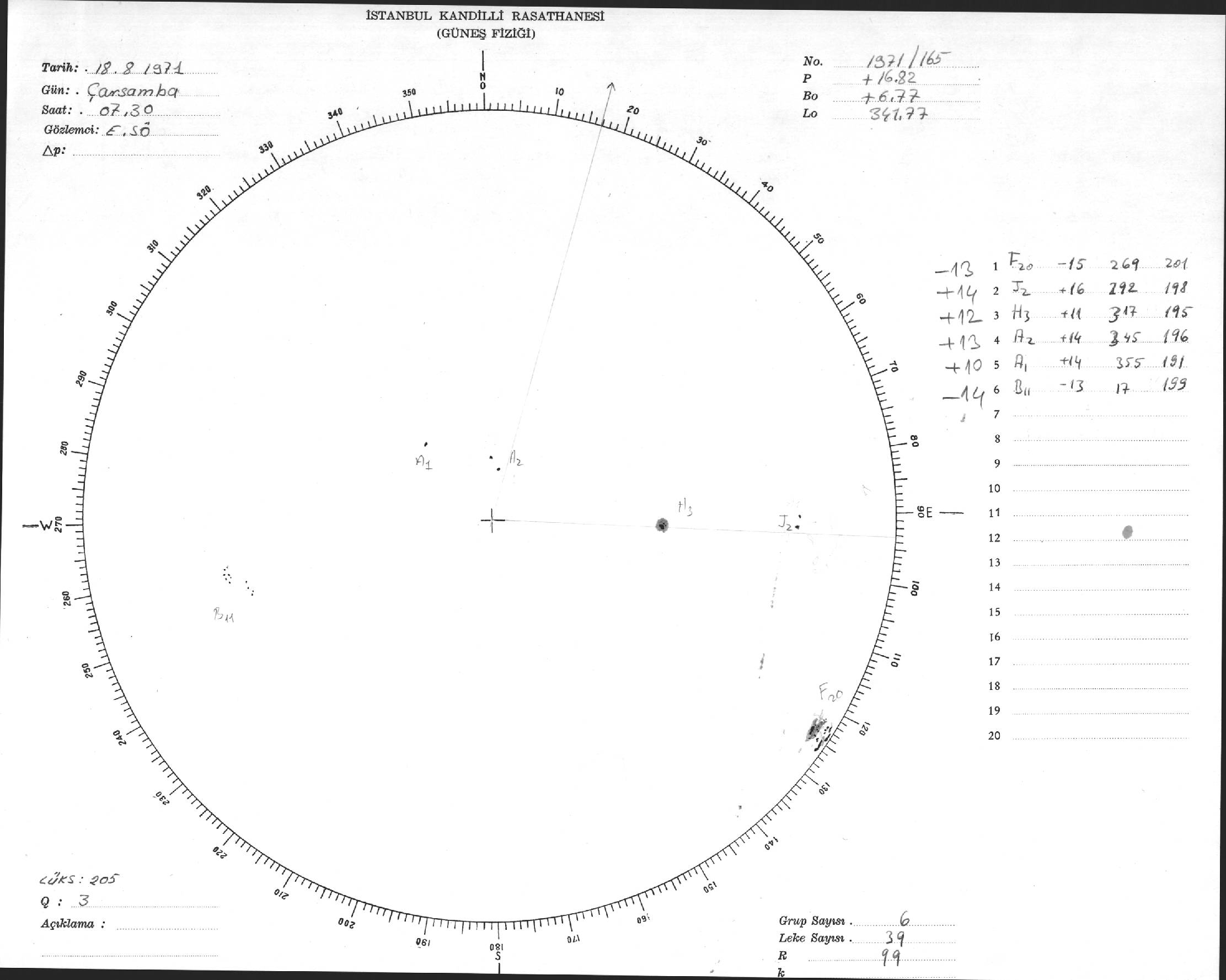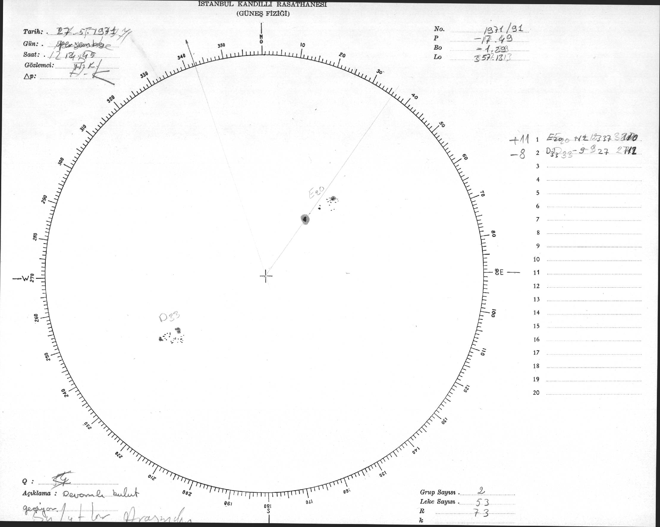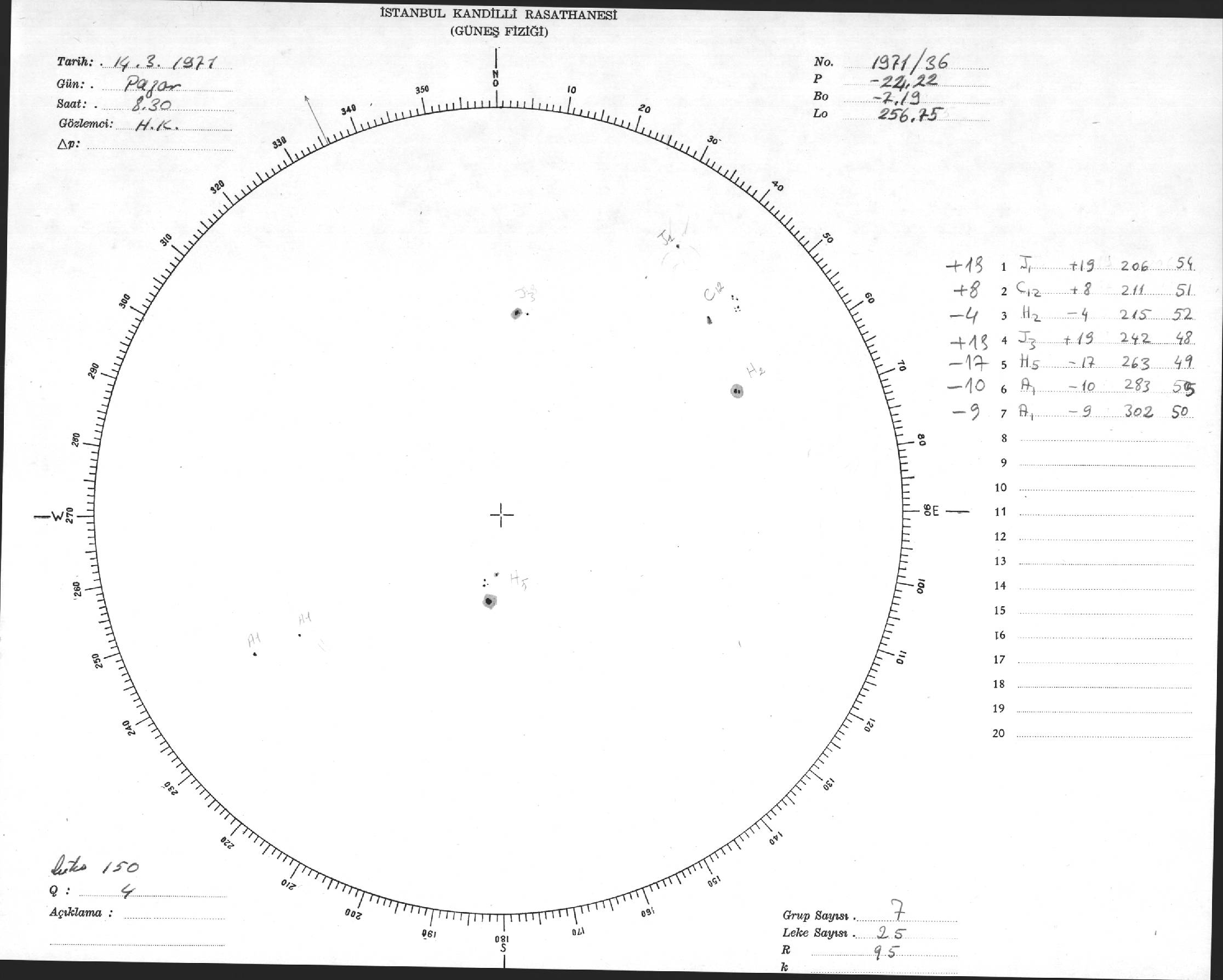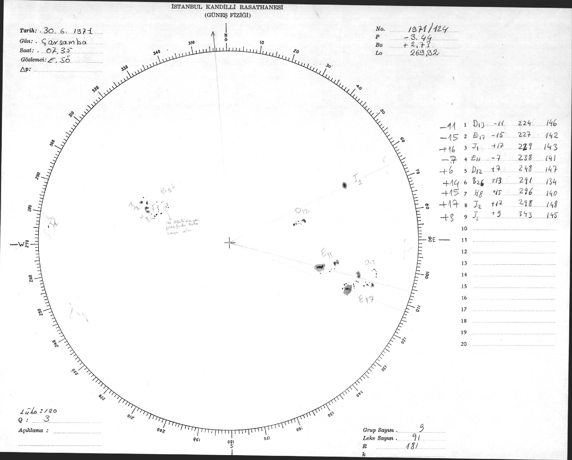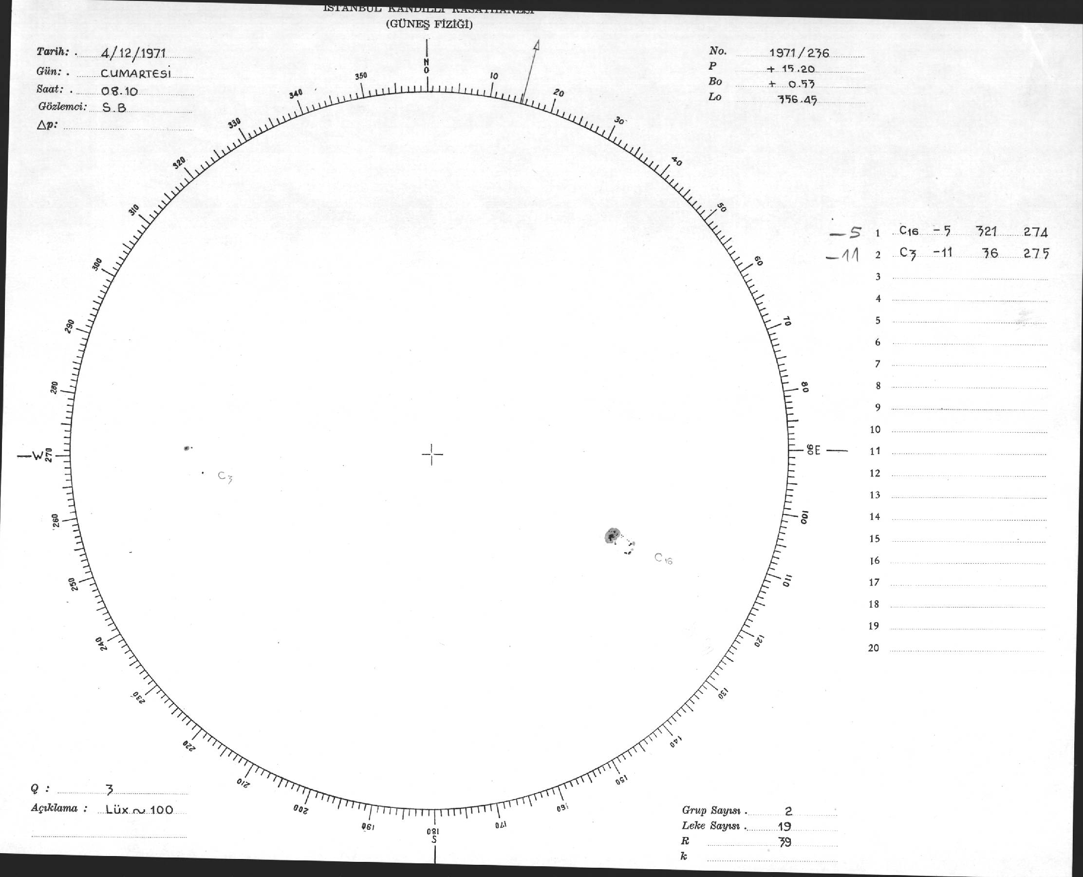 Güneş Lekesi Çizimleri / Kandilli Sunspot Drawings
