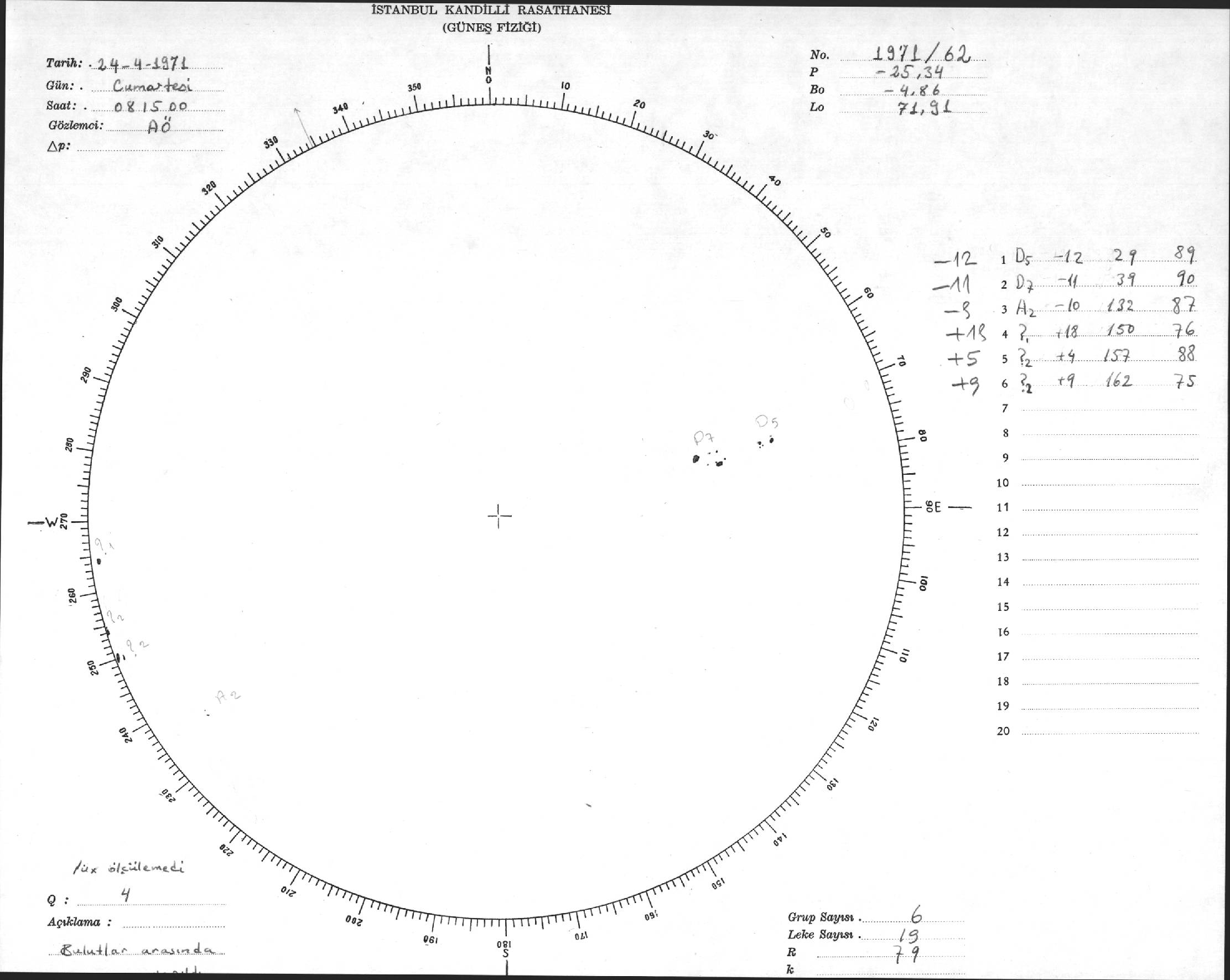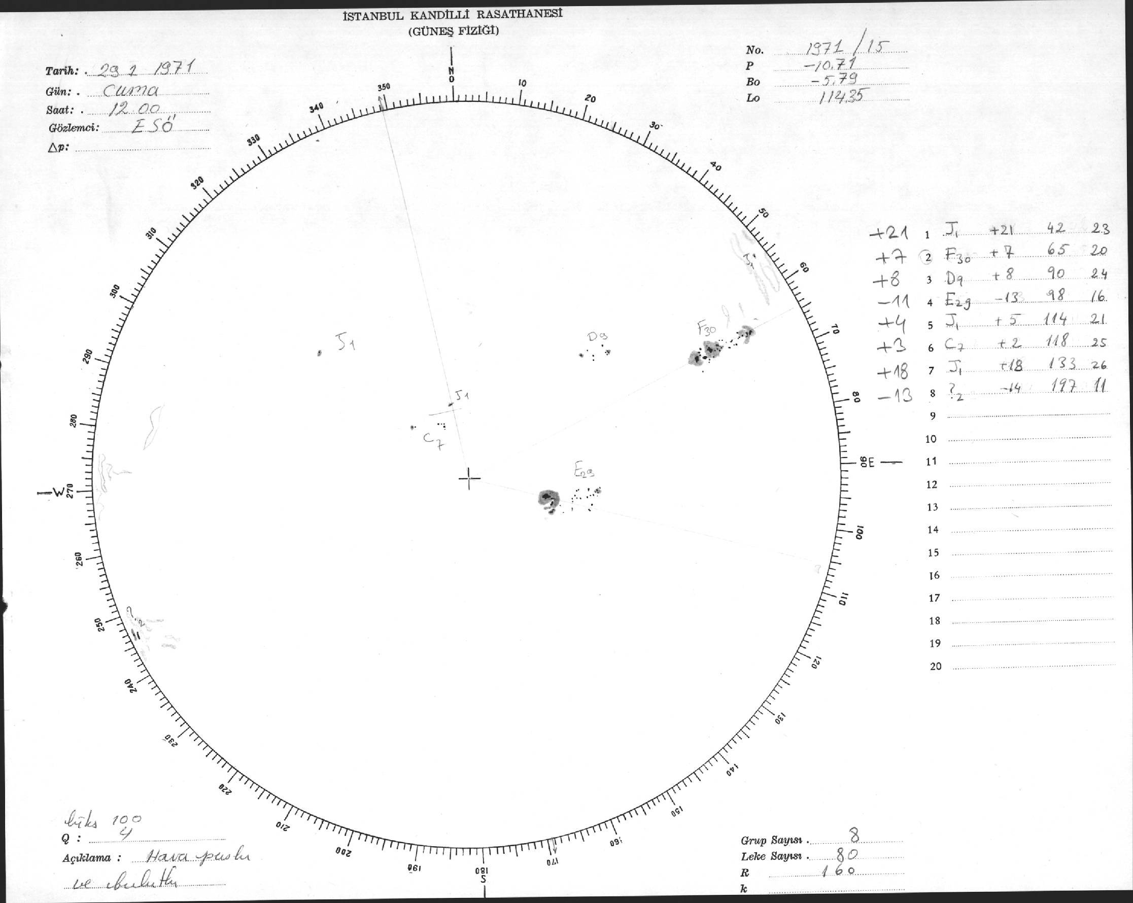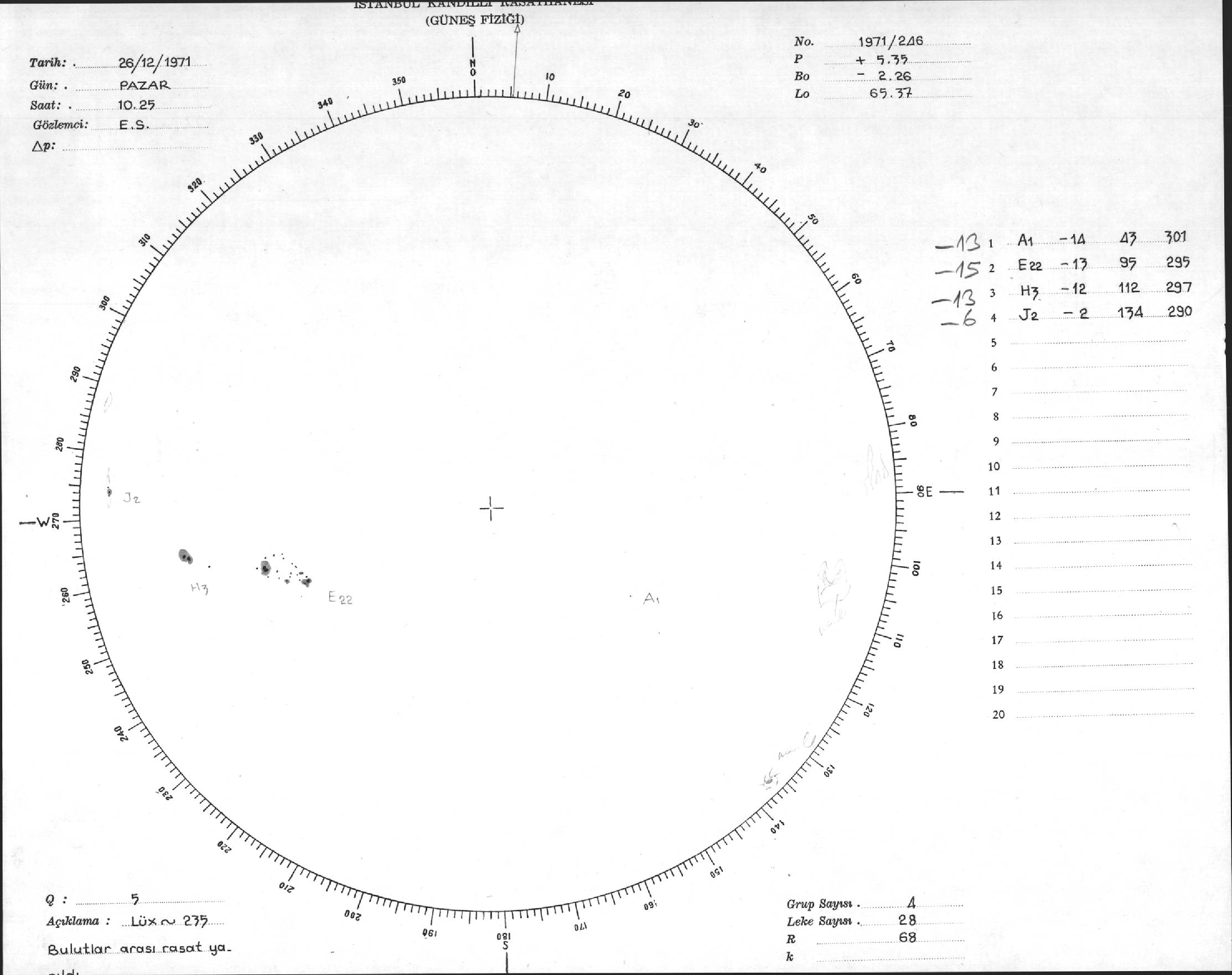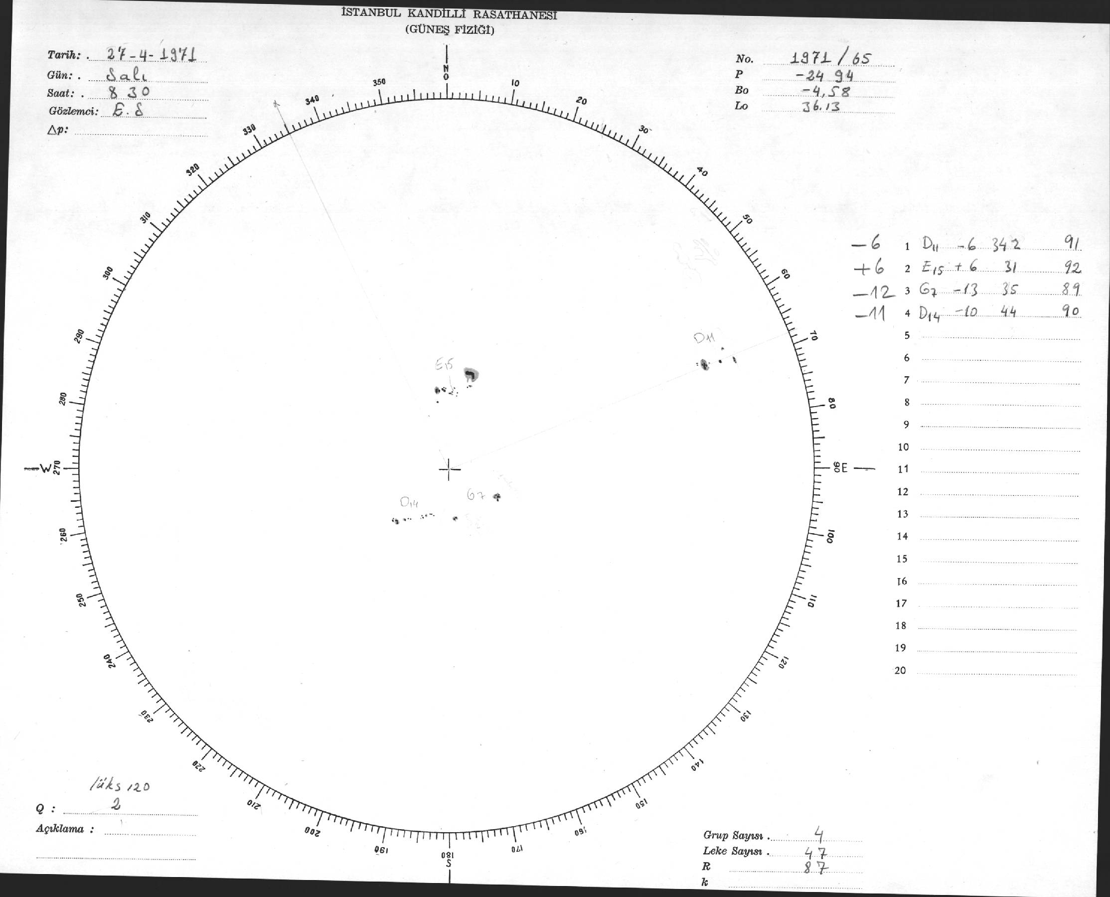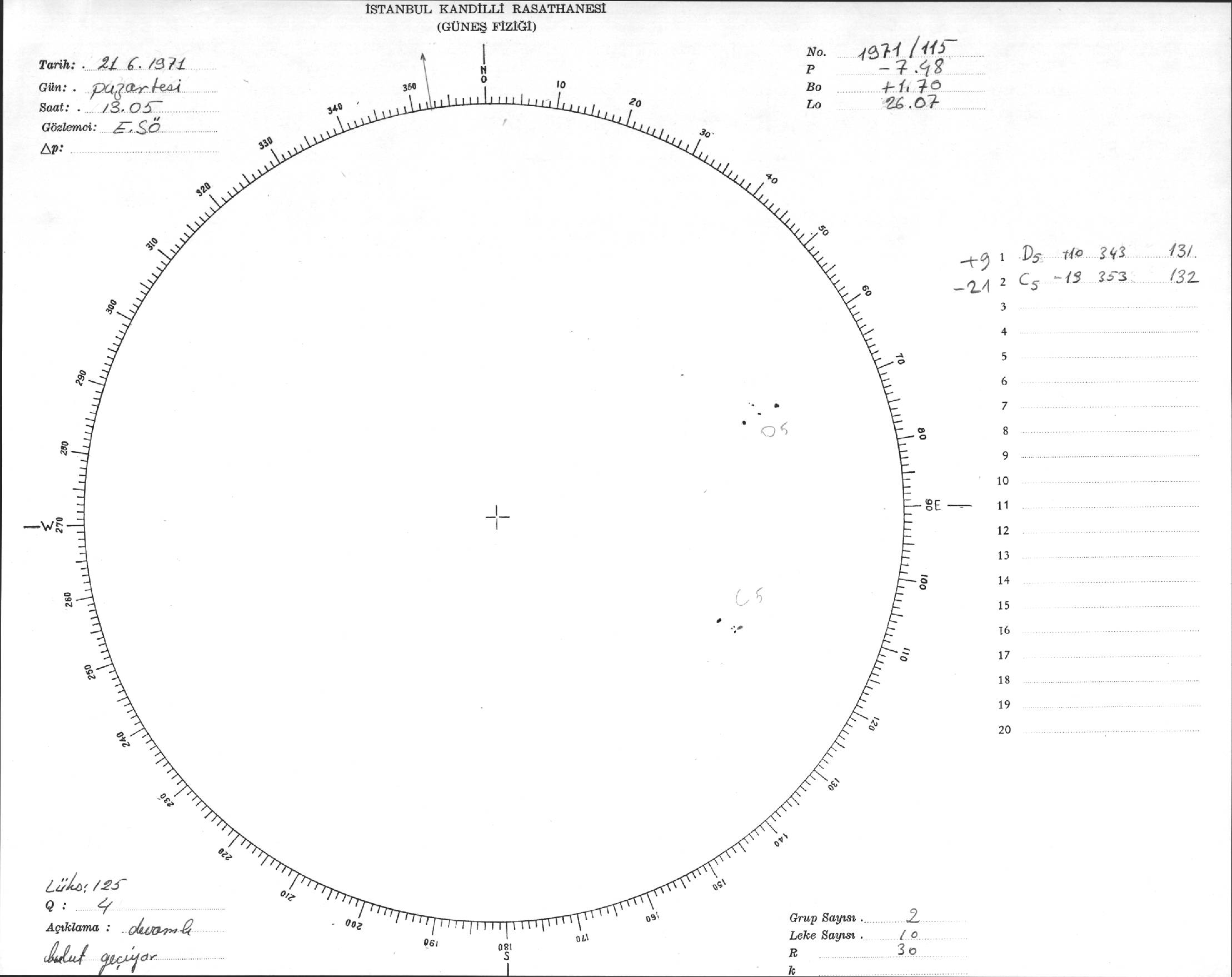 Güneş Lekesi Çizimleri / Kandilli Sunspot Drawings