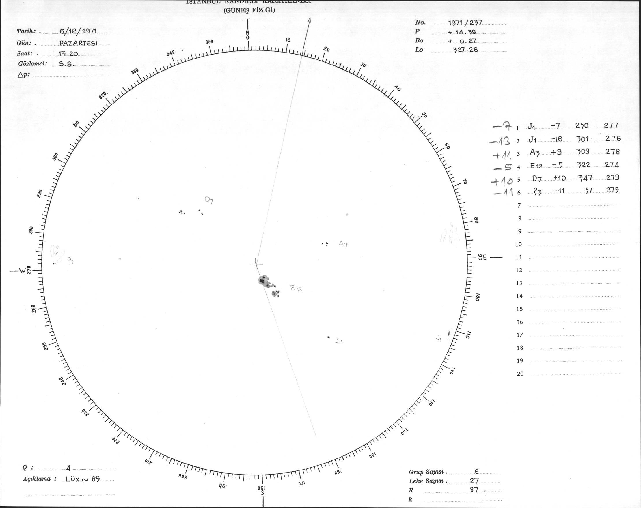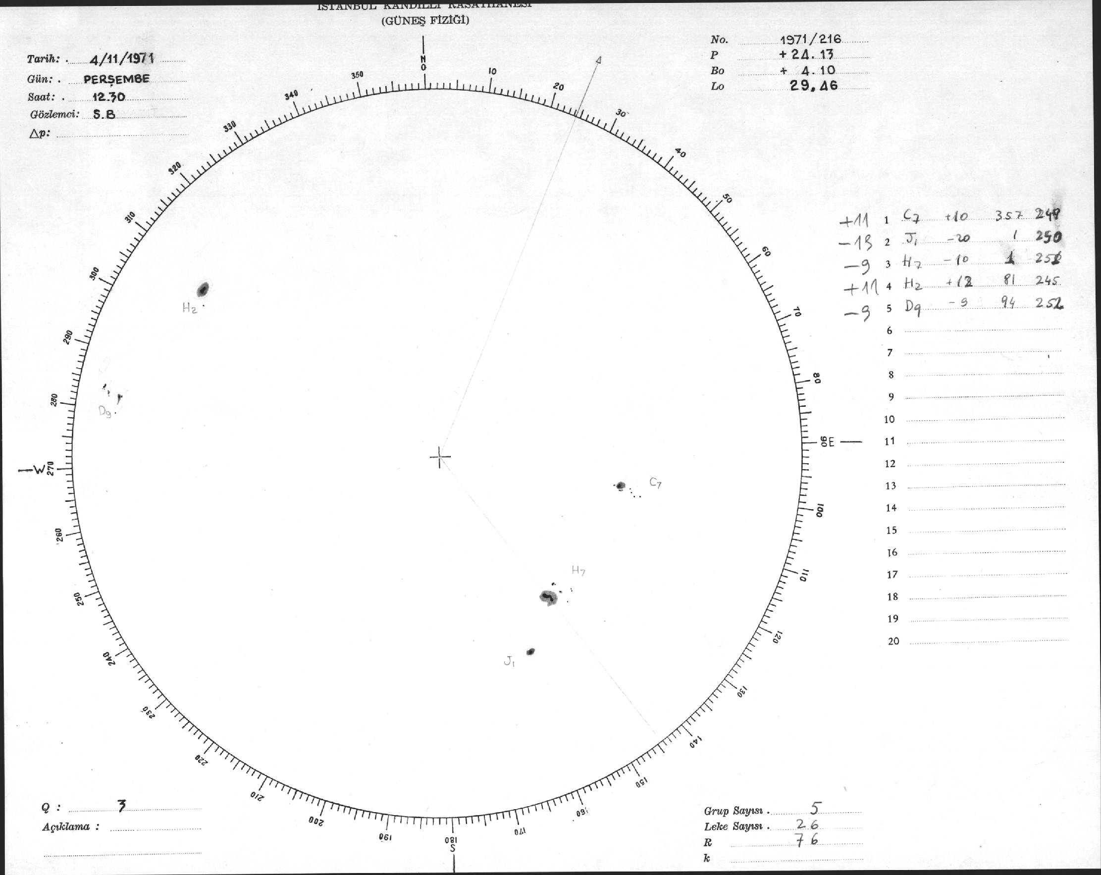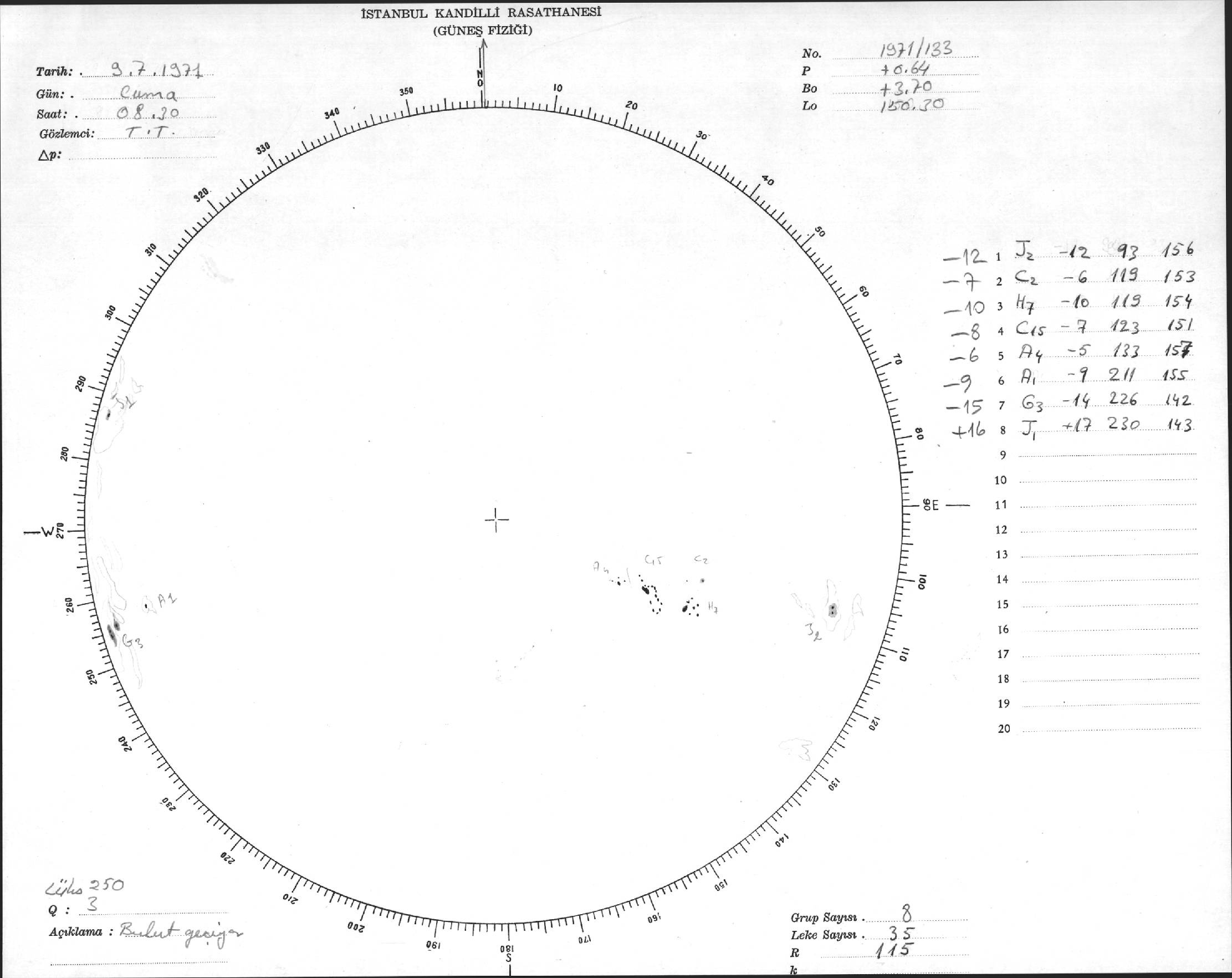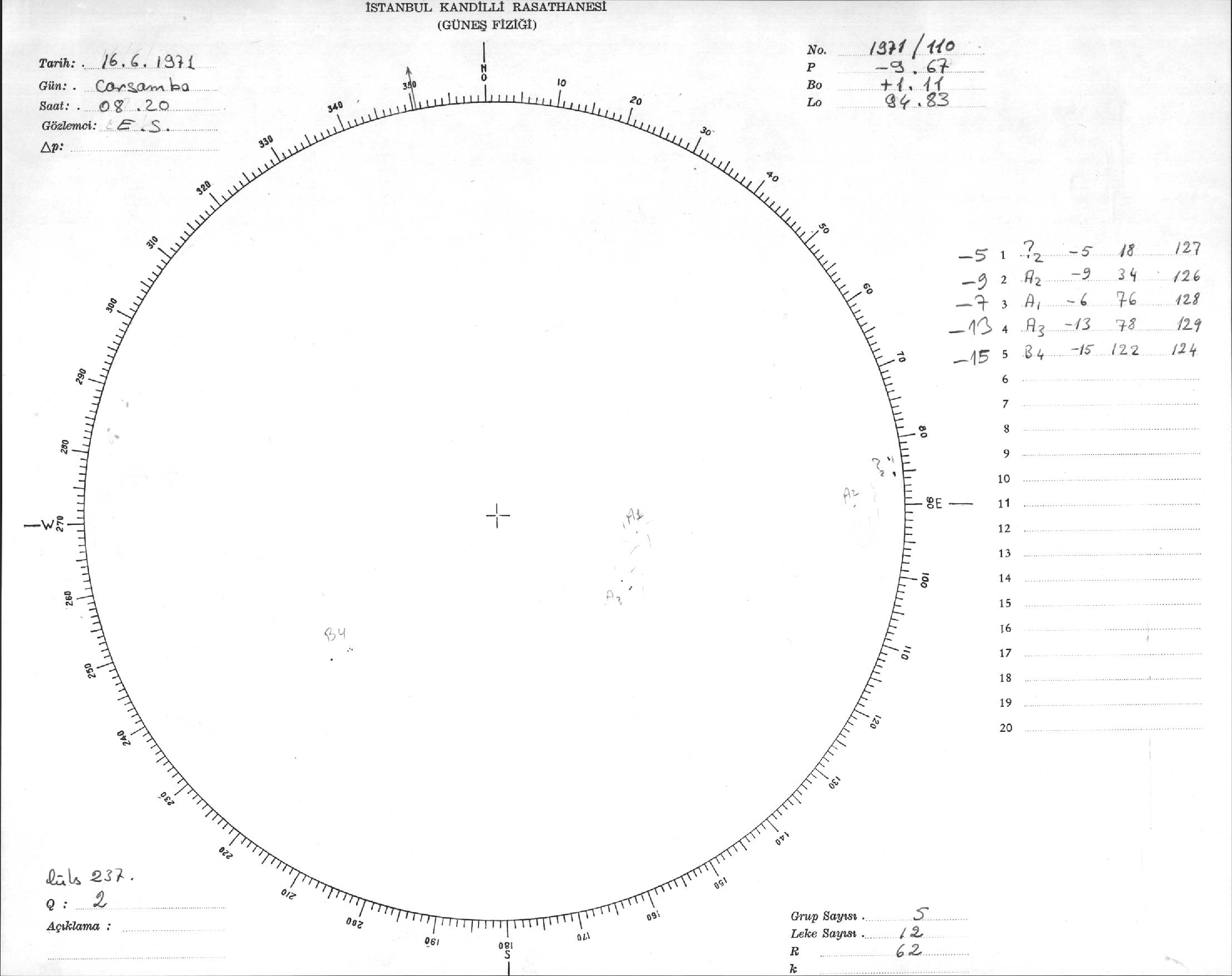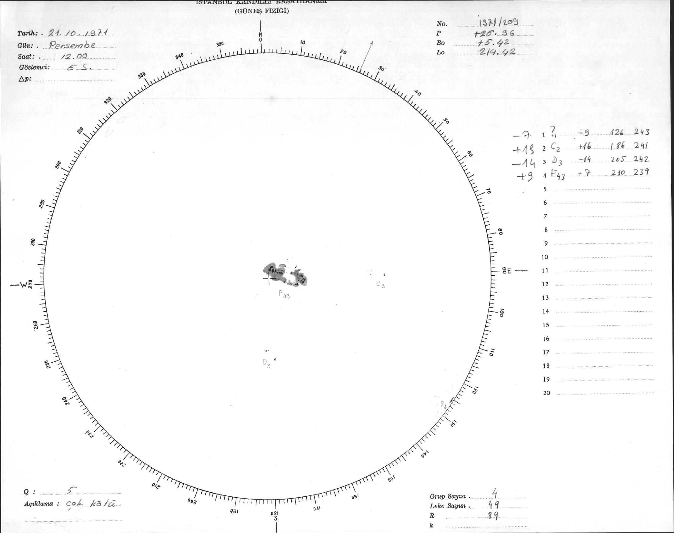 Güneş Lekesi Çizimleri / Kandilli Sunspot Drawings