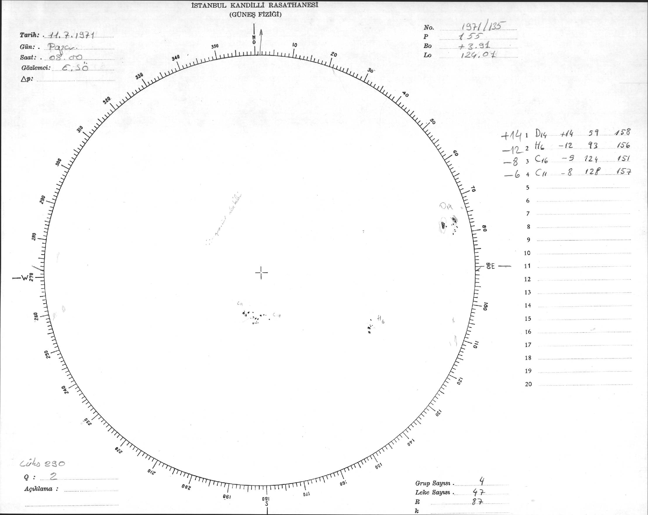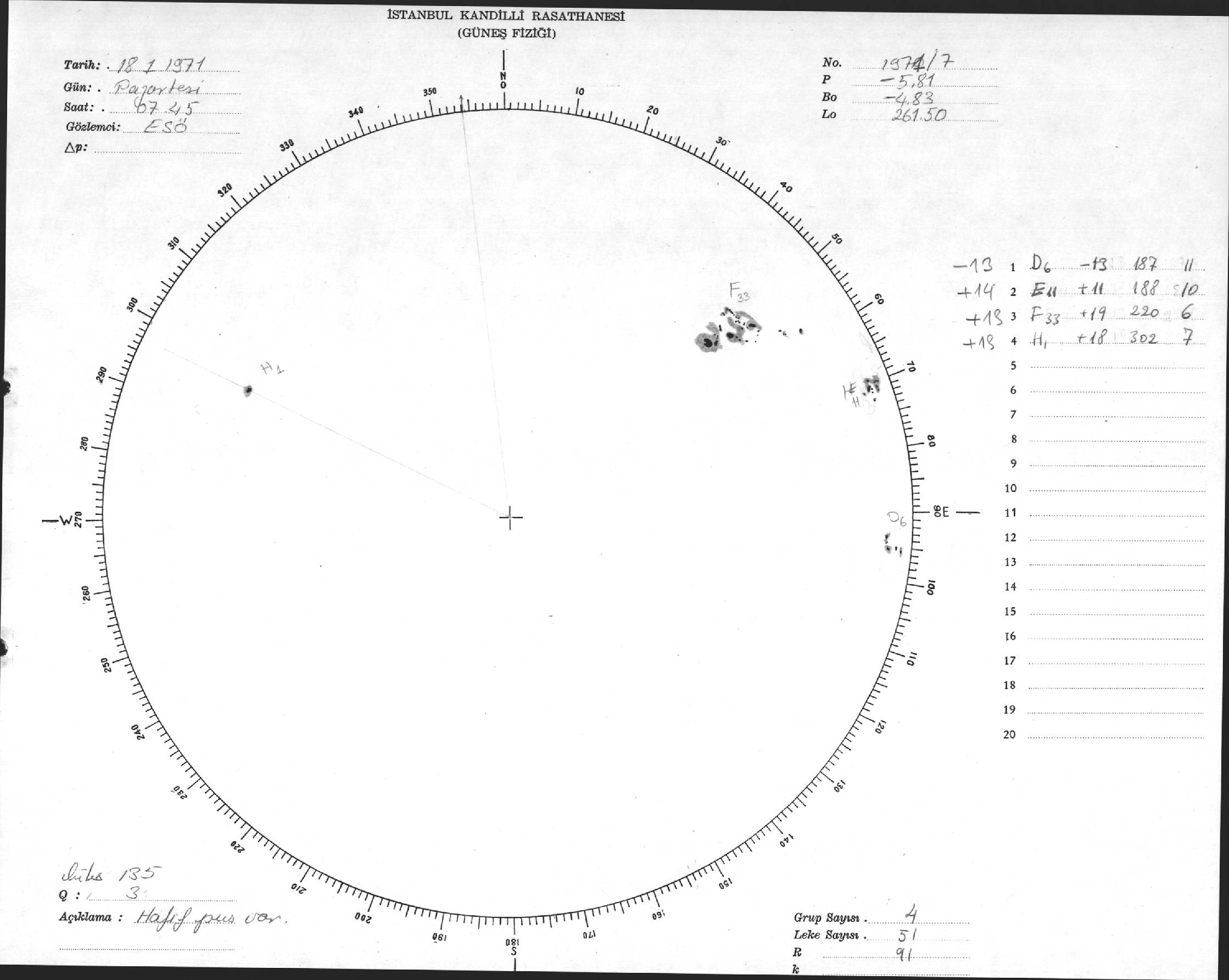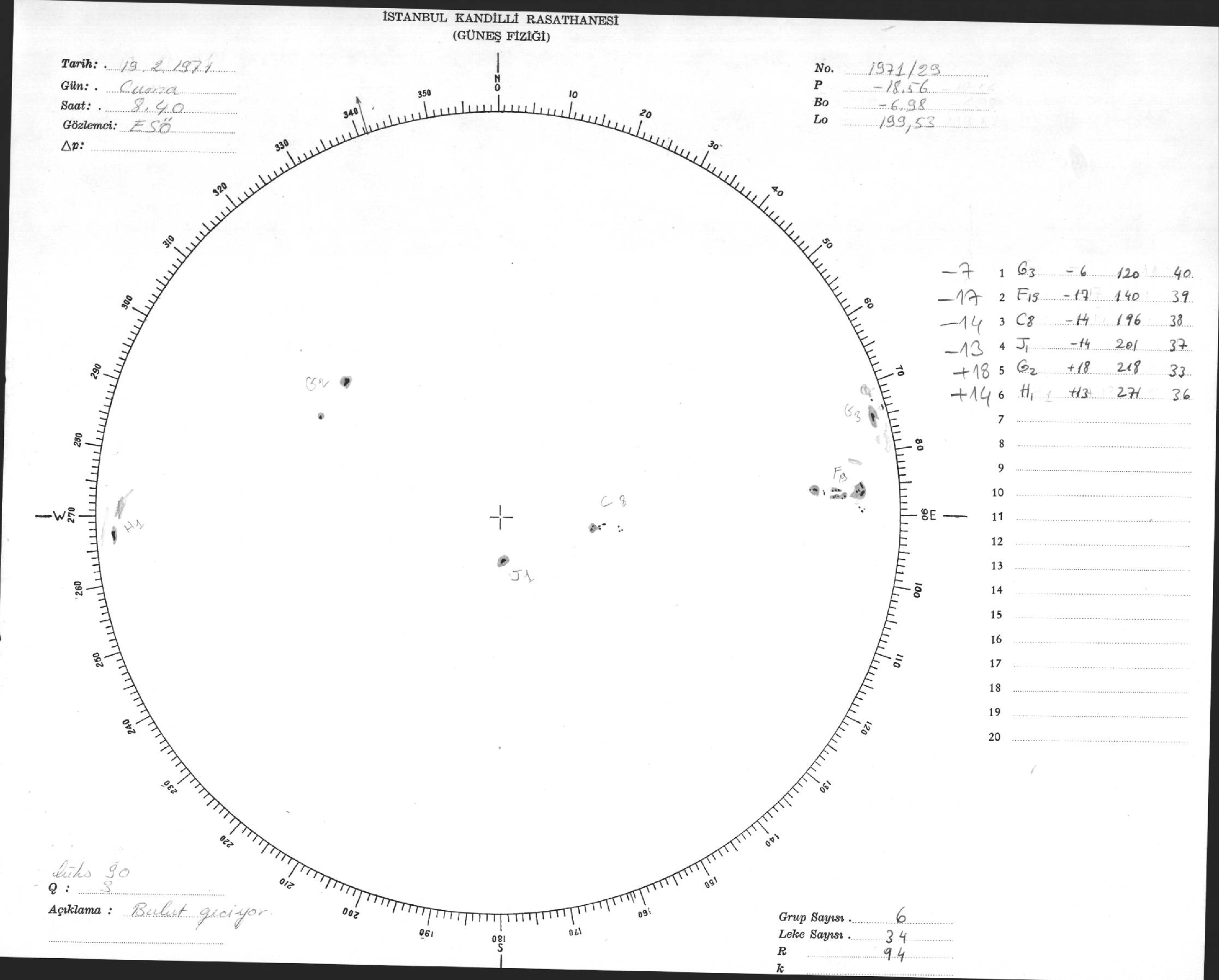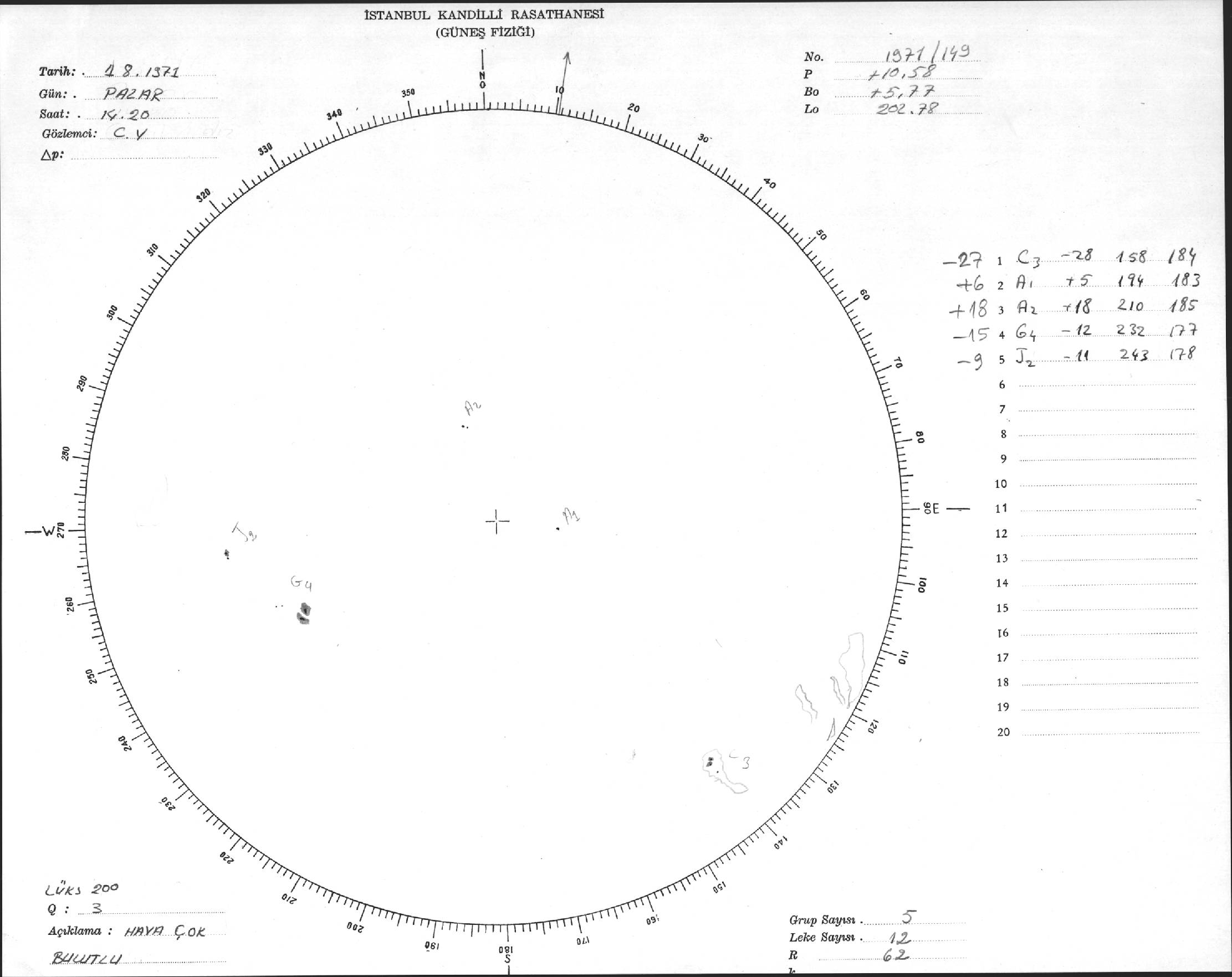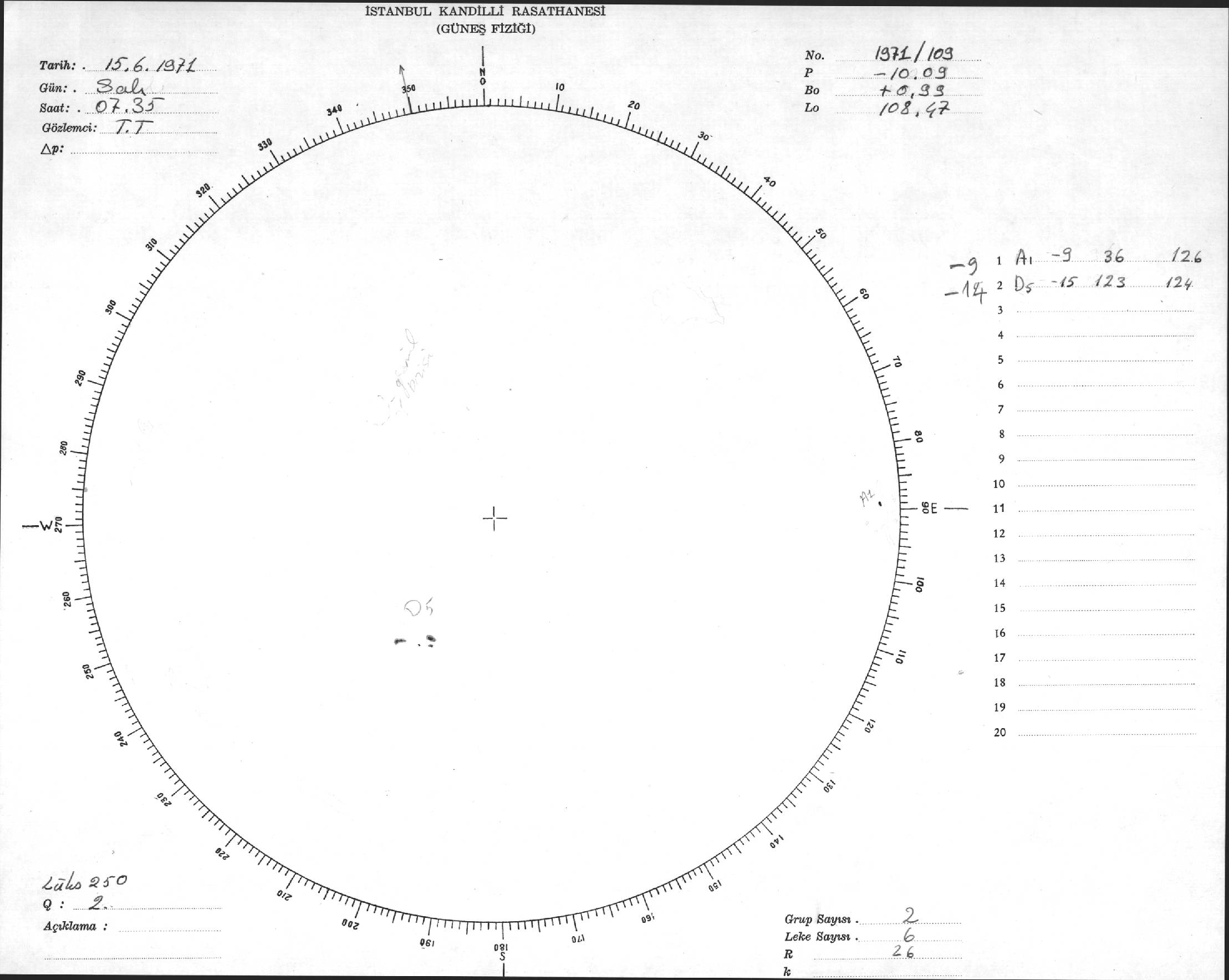 Güneş Lekesi Çizimleri / Kandilli Sunspot Drawings