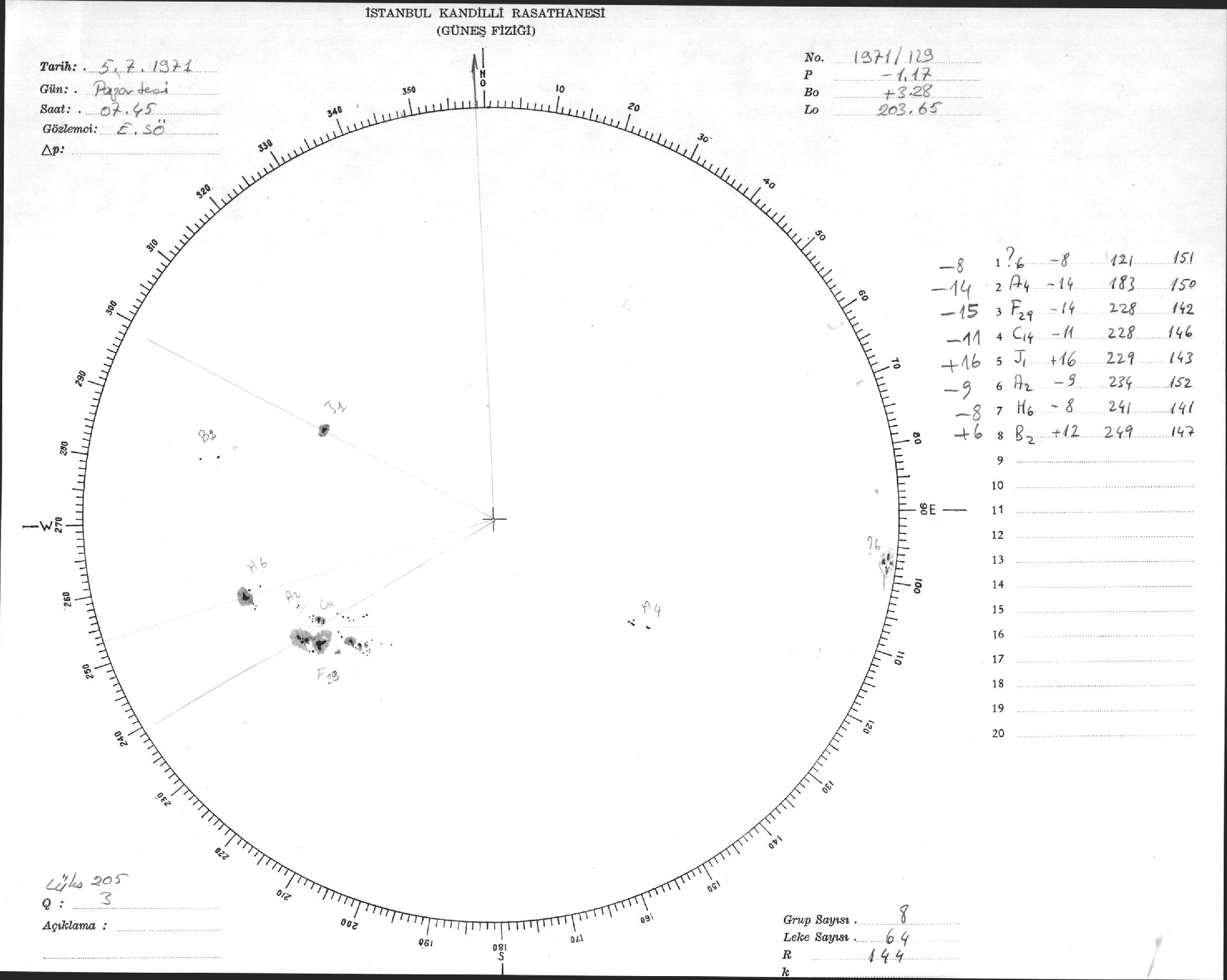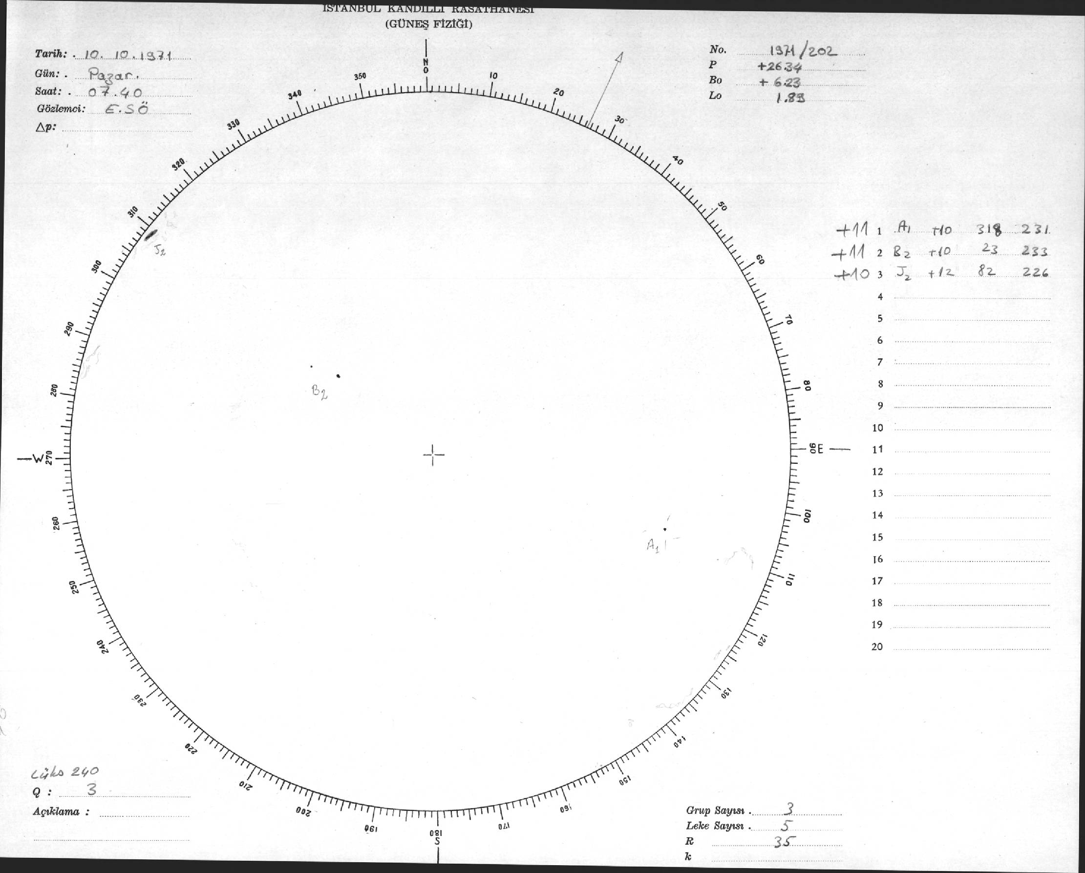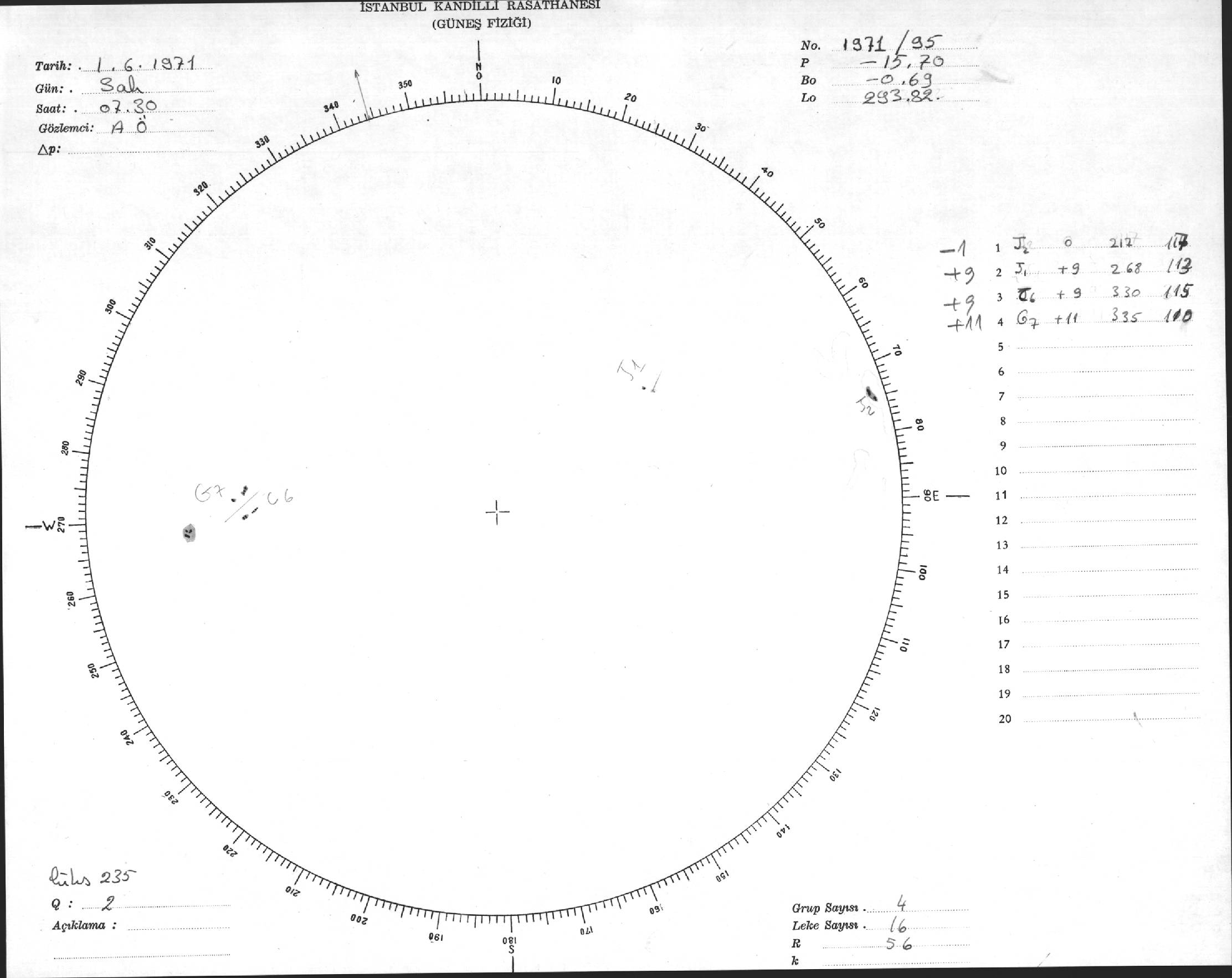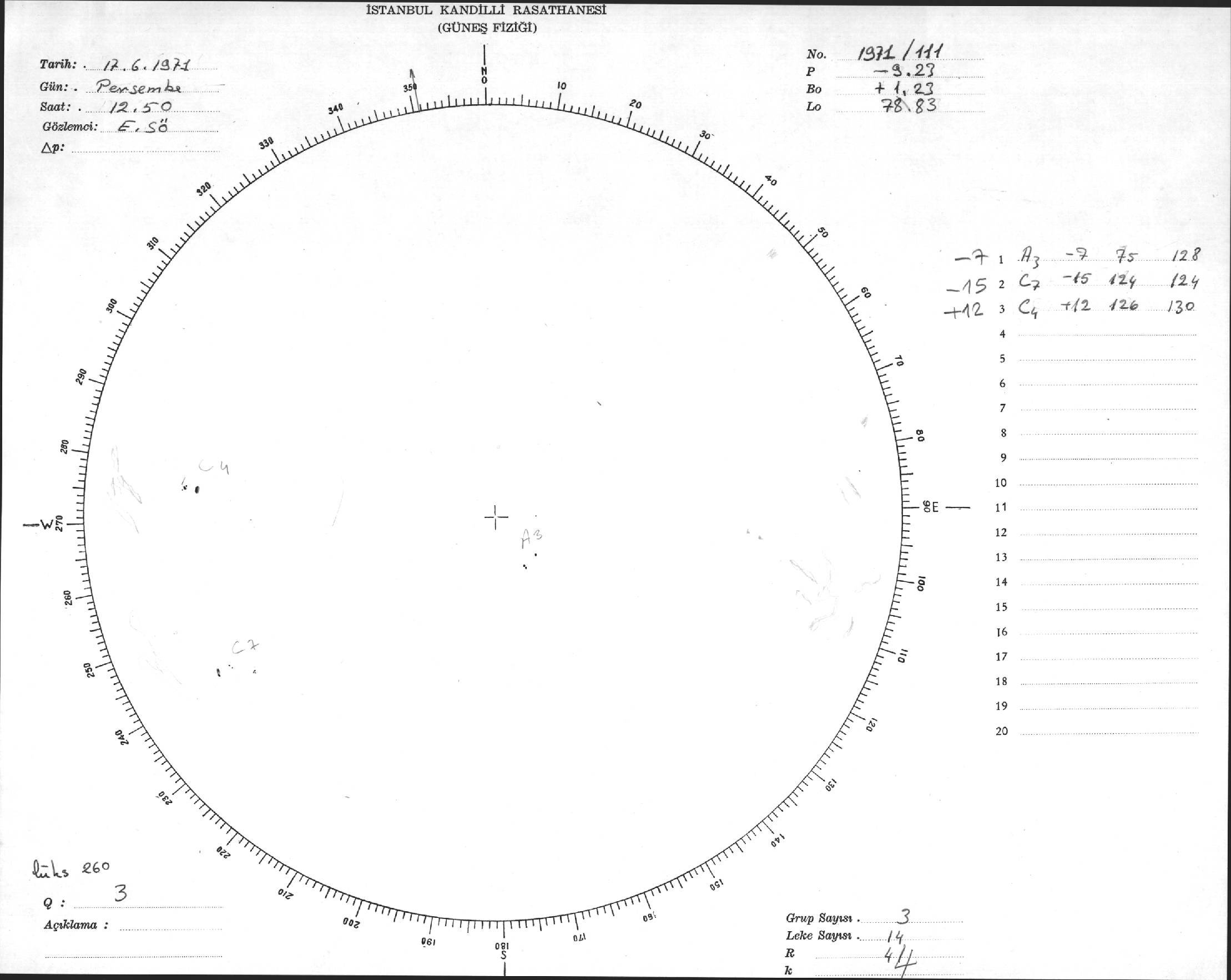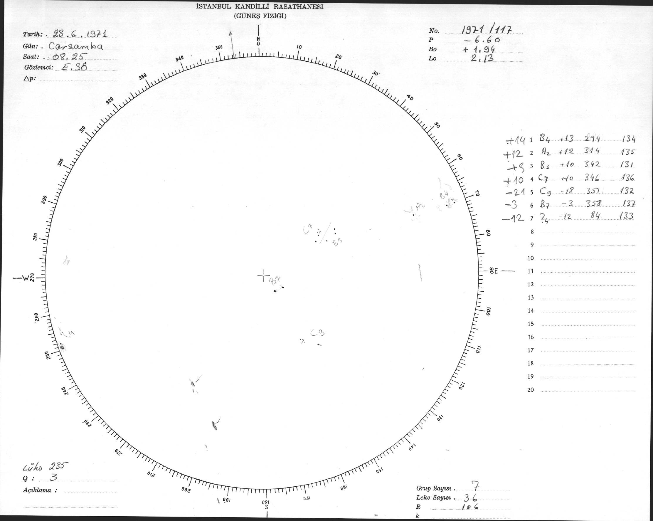 Güneş Lekesi Çizimleri / Kandilli Sunspot Drawings