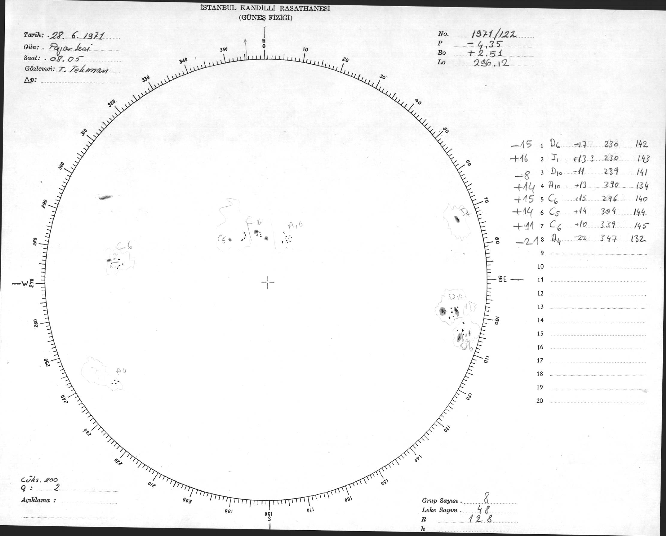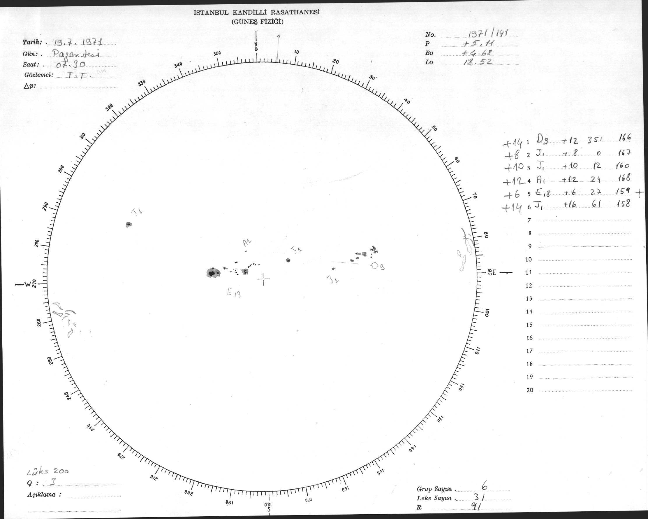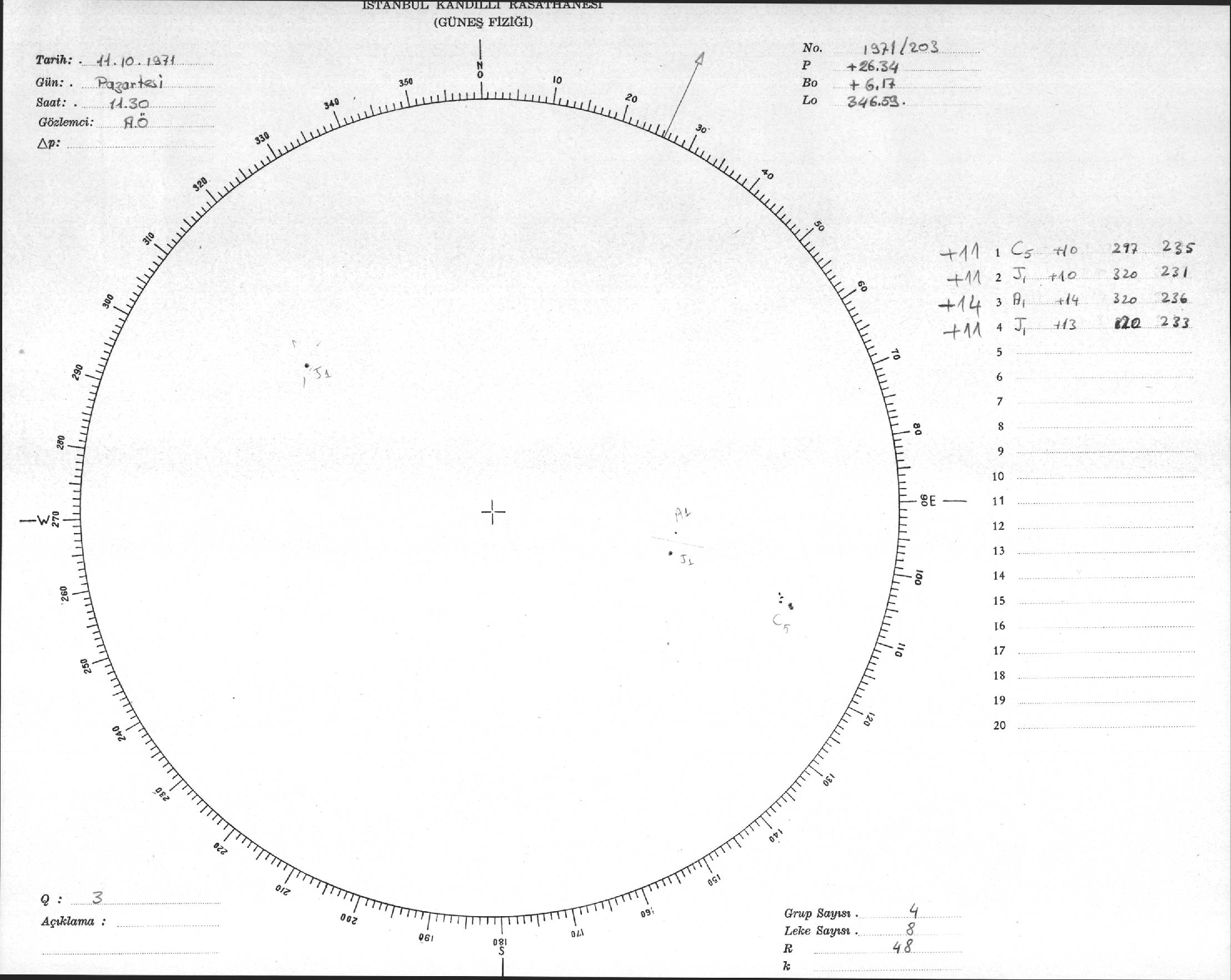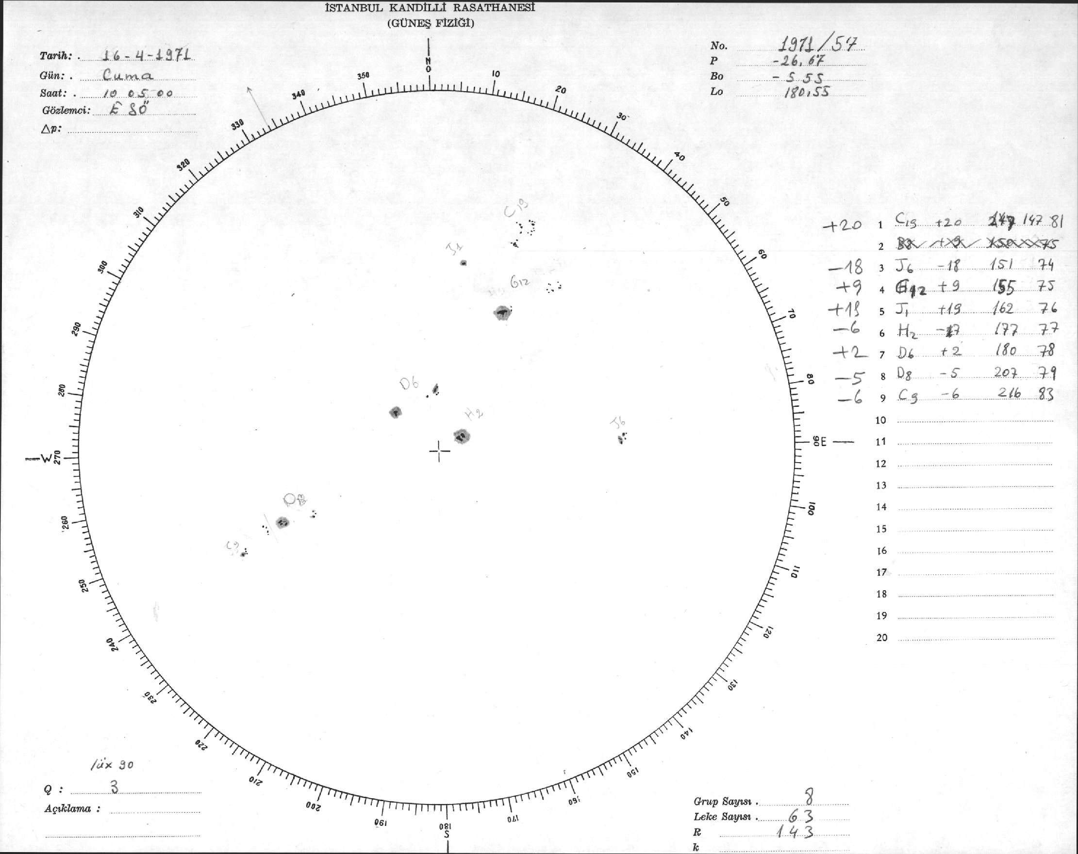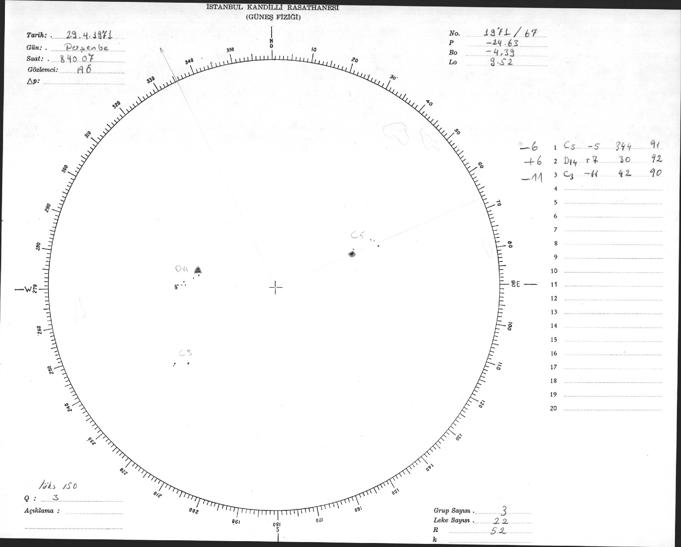 Güneş Lekesi Çizimleri / Kandilli Sunspot Drawings