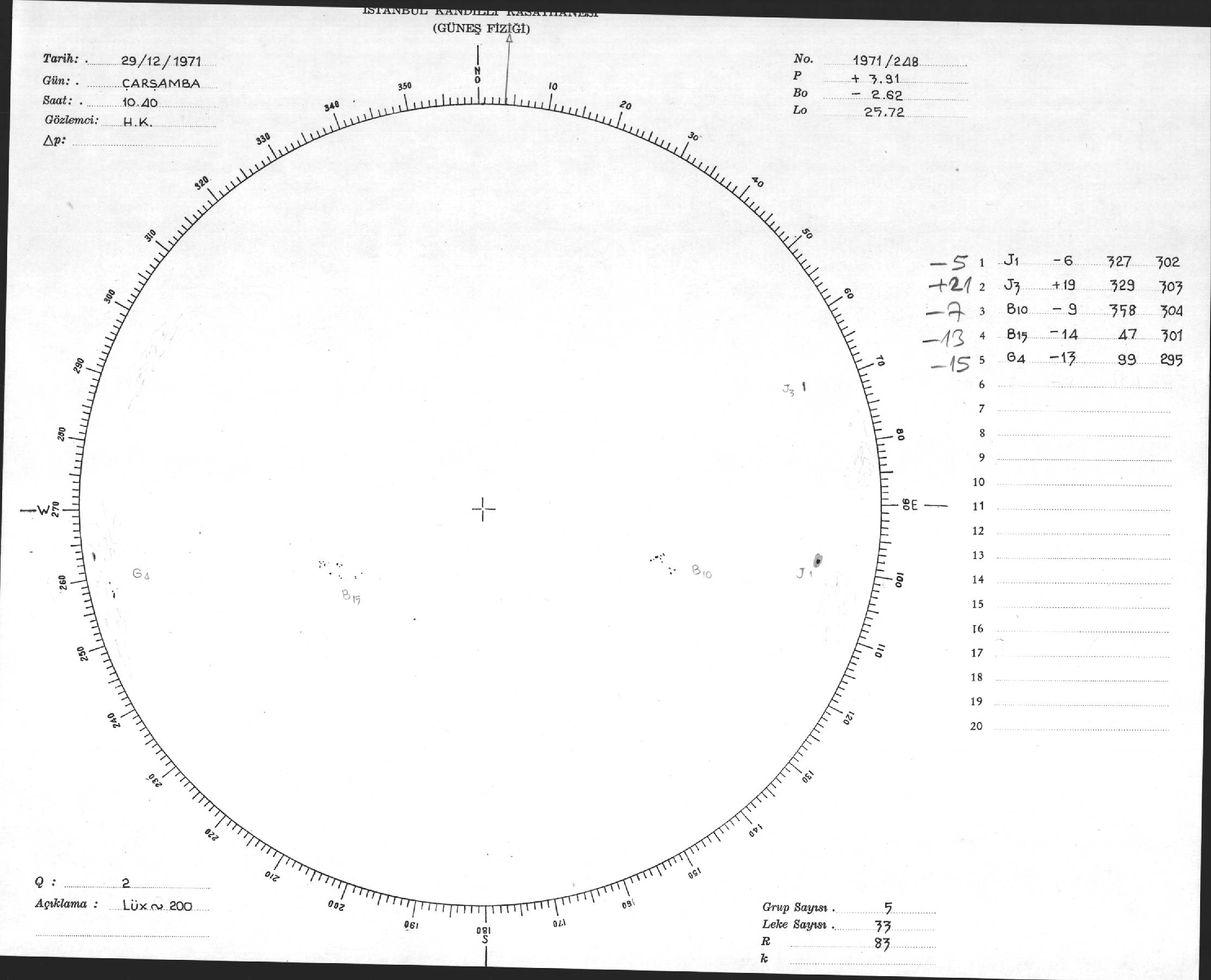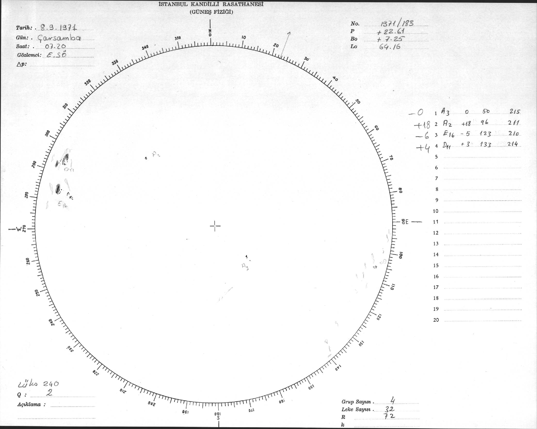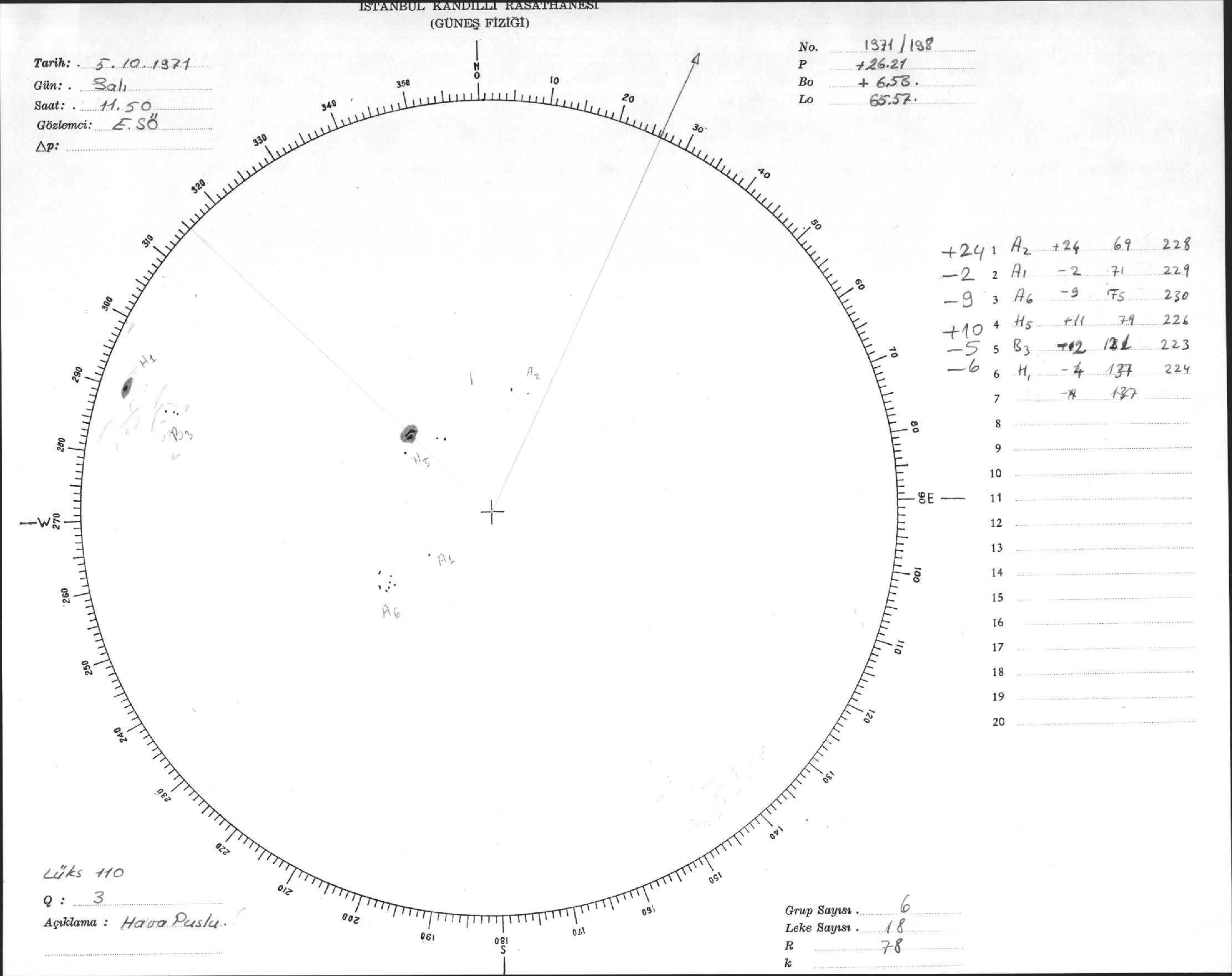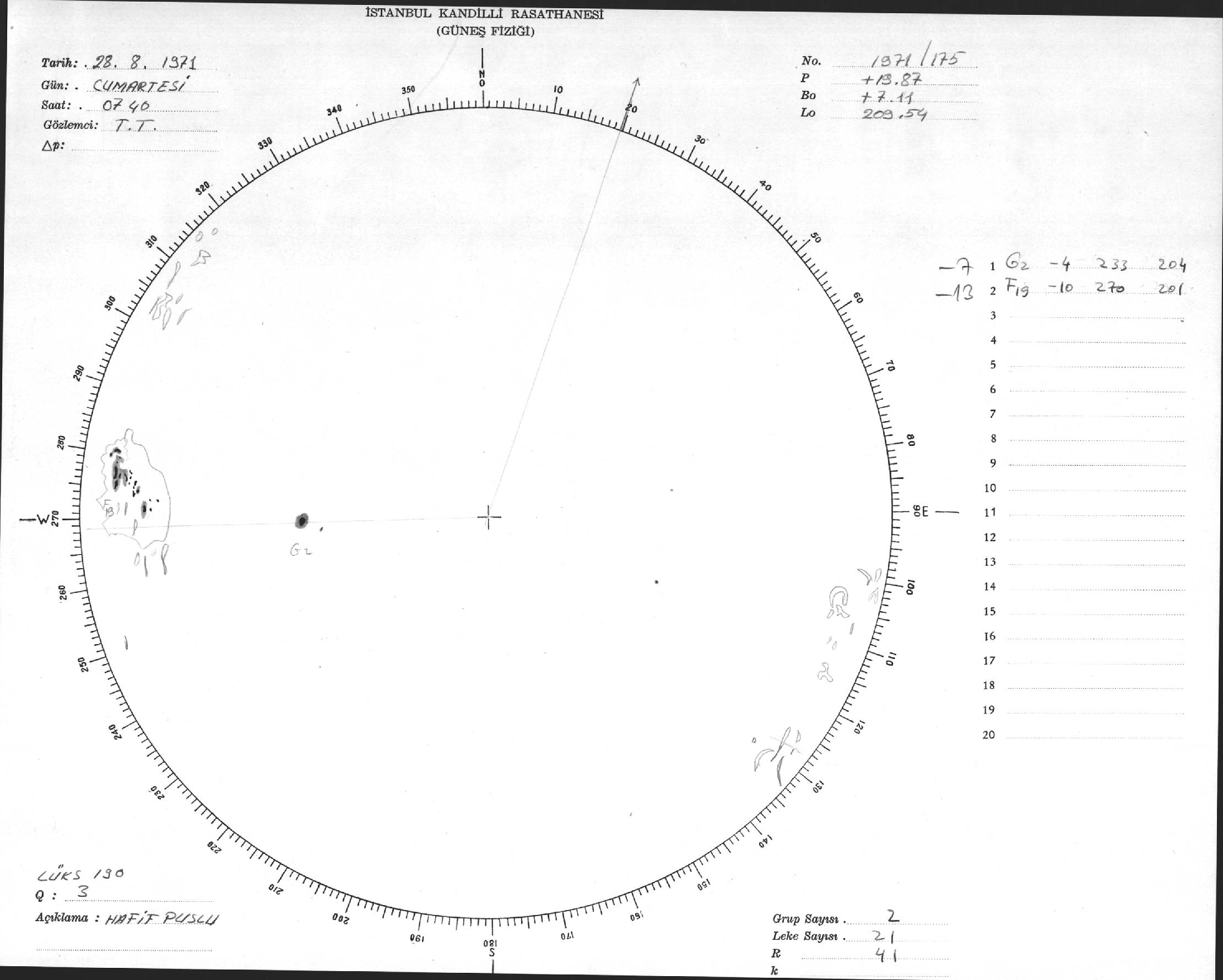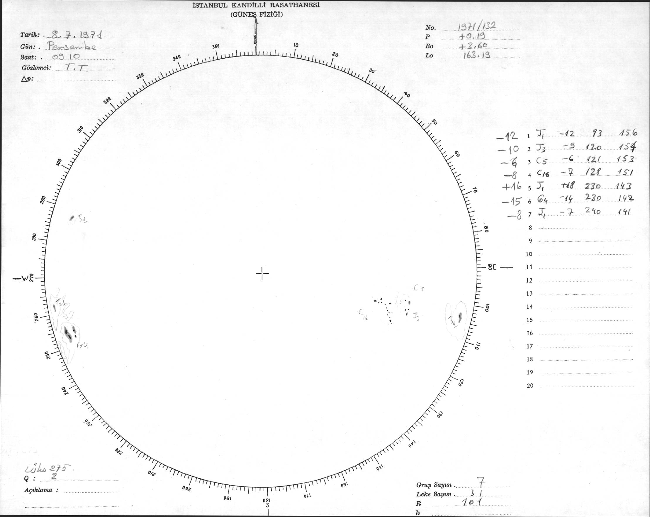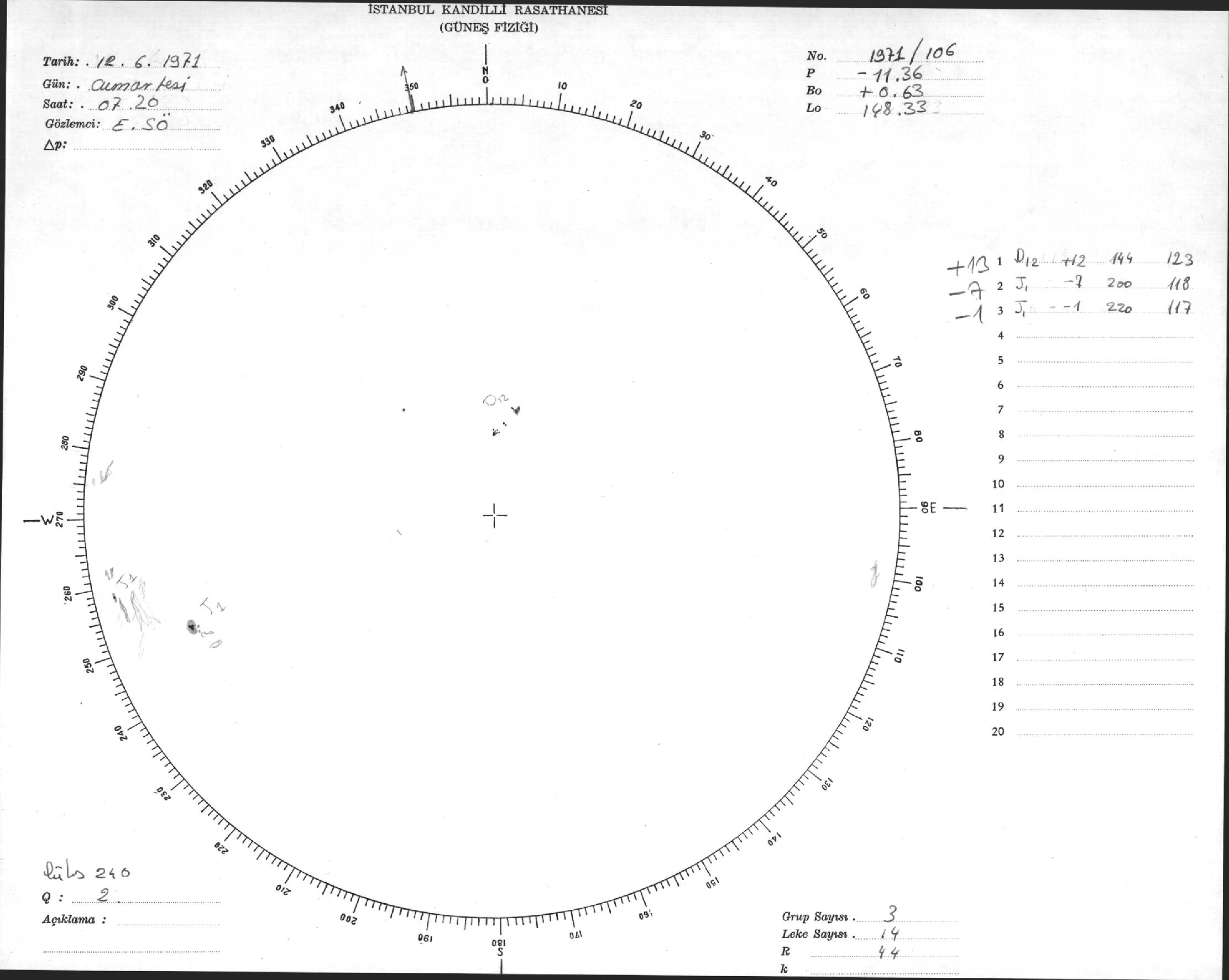 Güneş Lekesi Çizimleri / Kandilli Sunspot Drawings