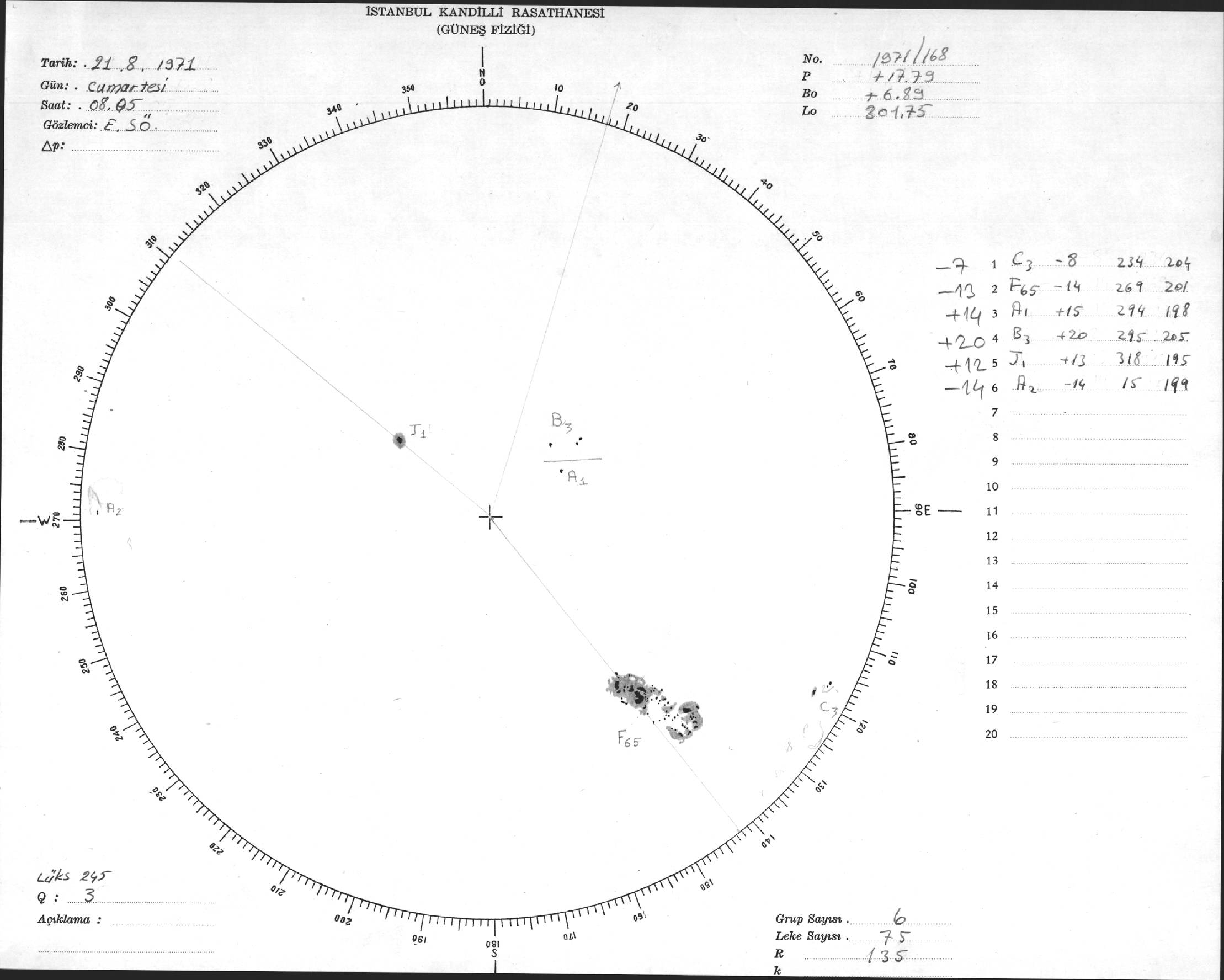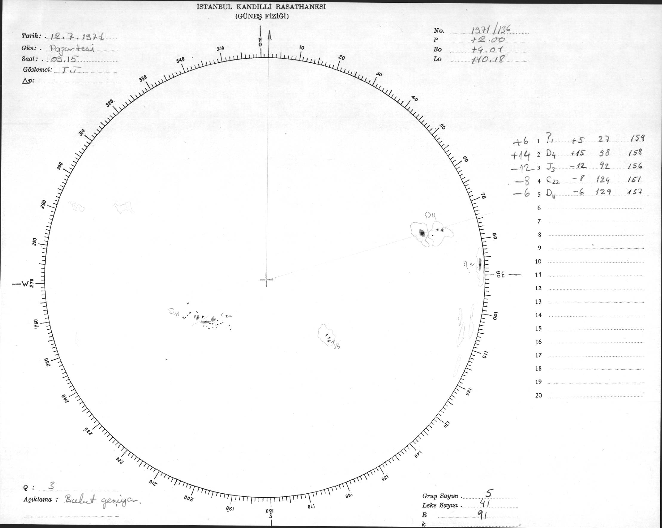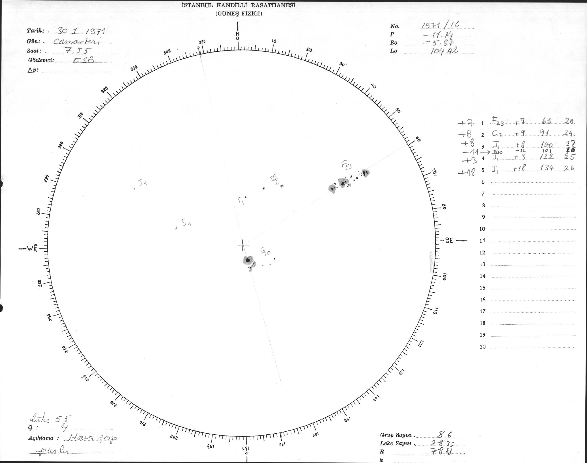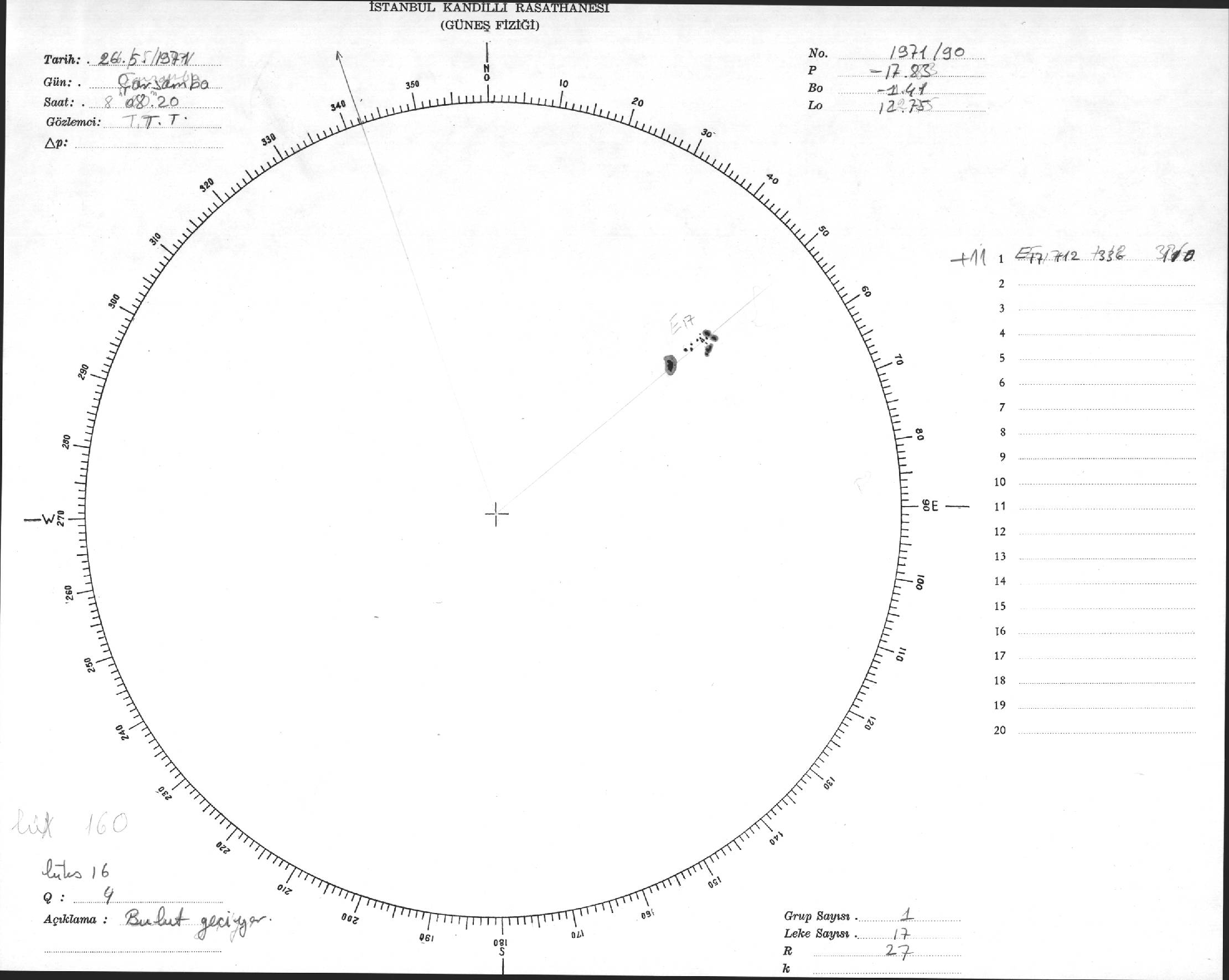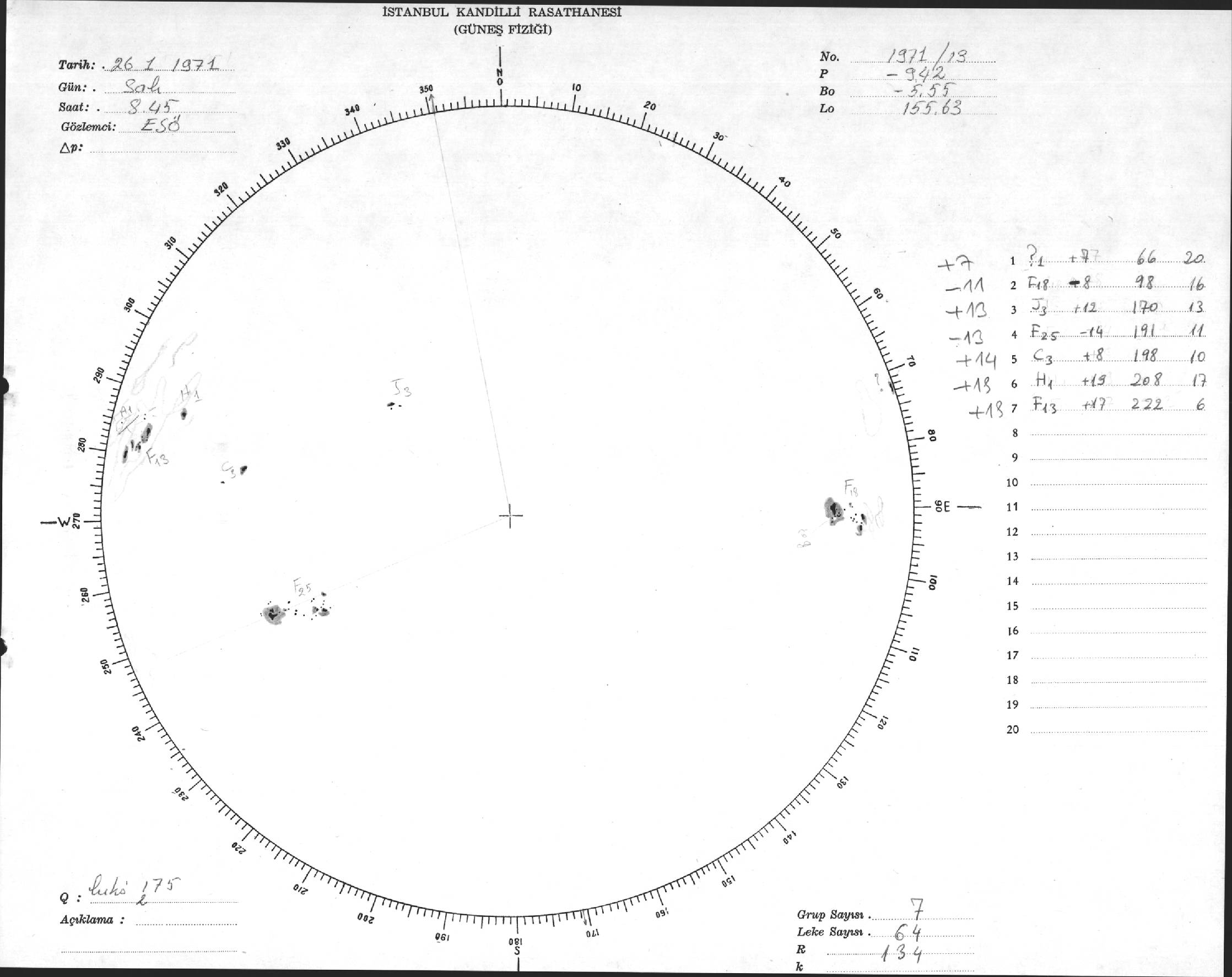 Güneş Lekesi Çizimleri / Kandilli Sunspot Drawings