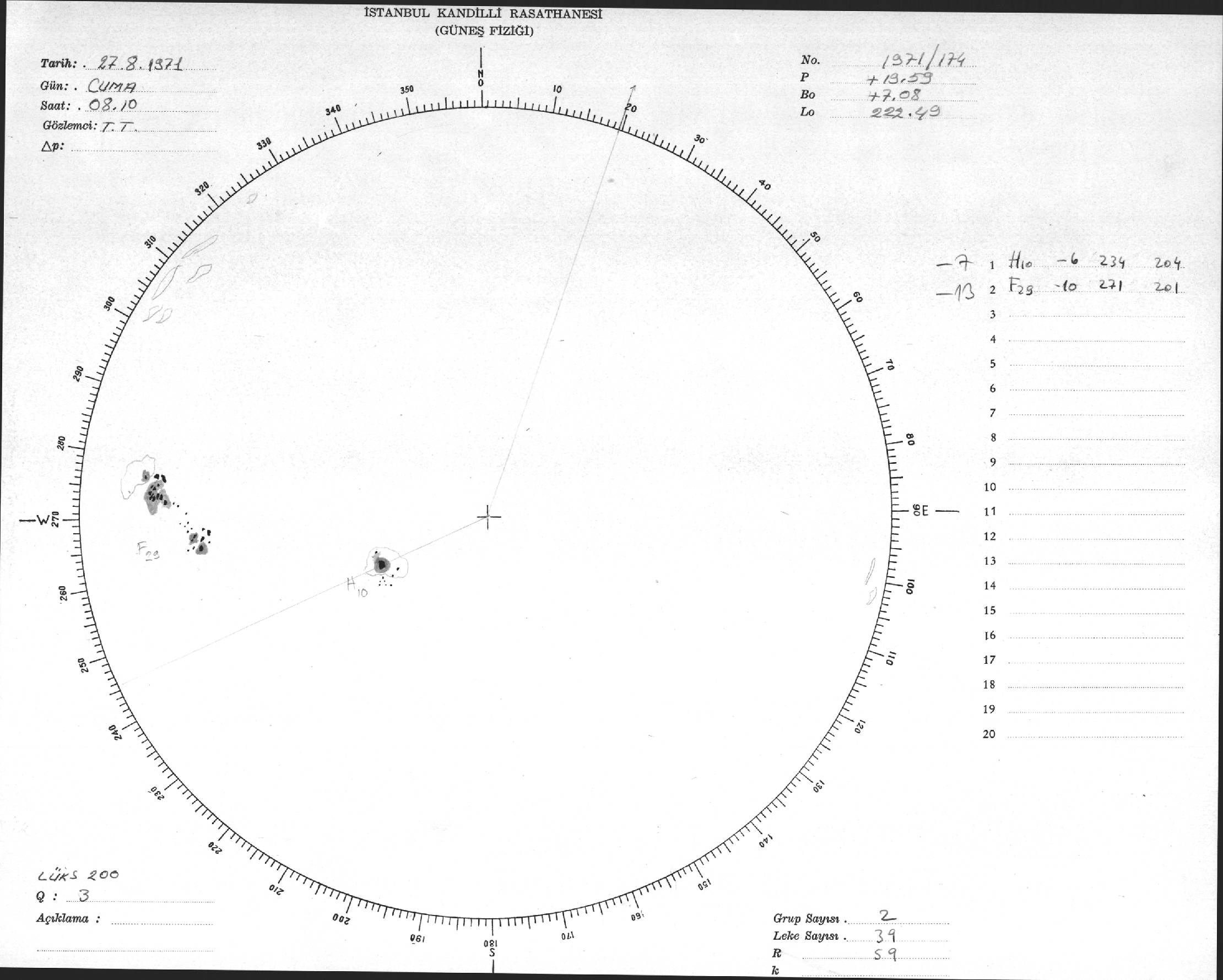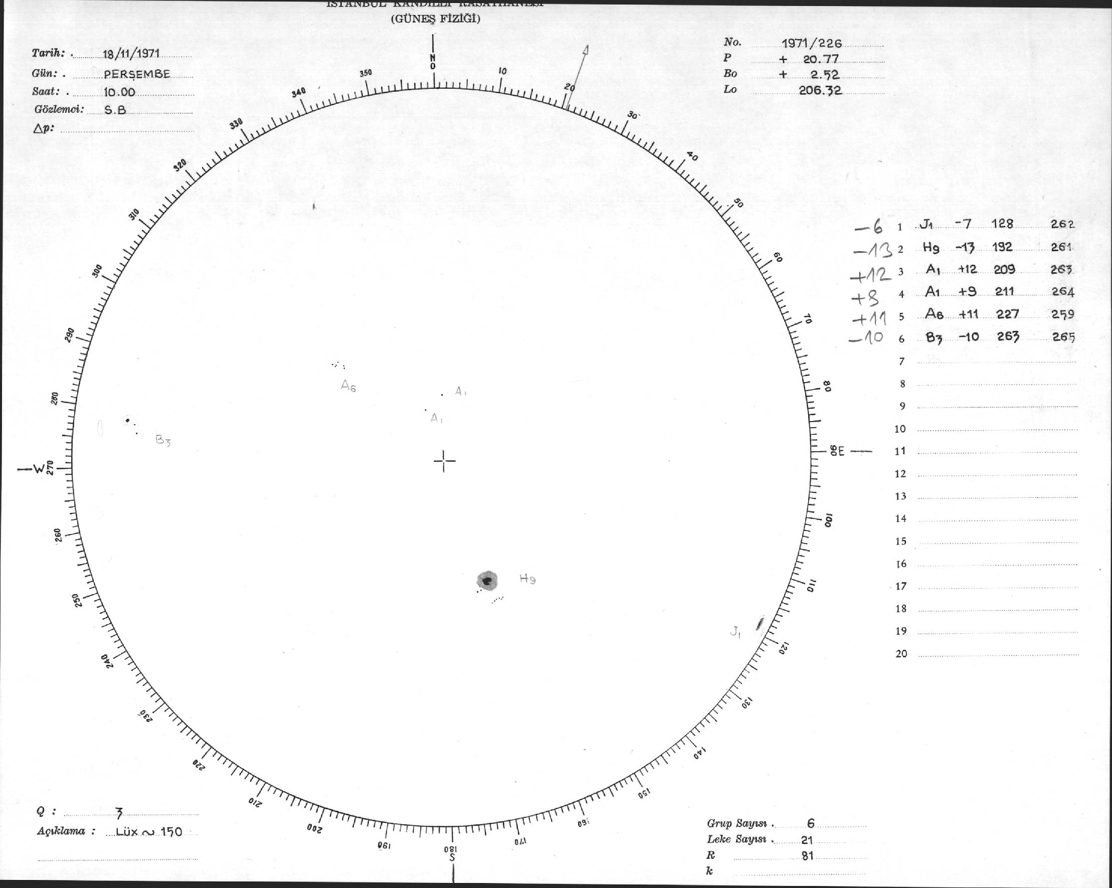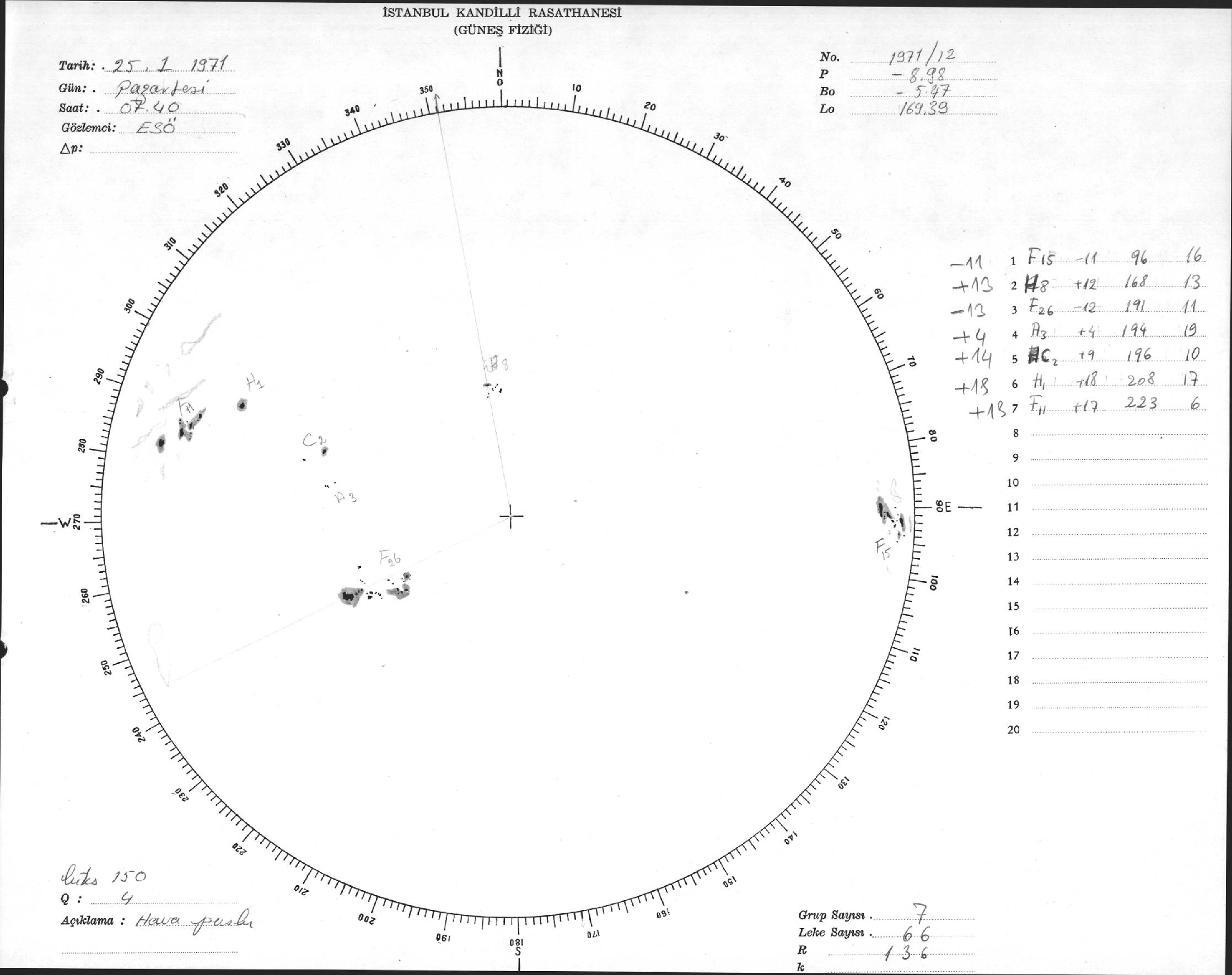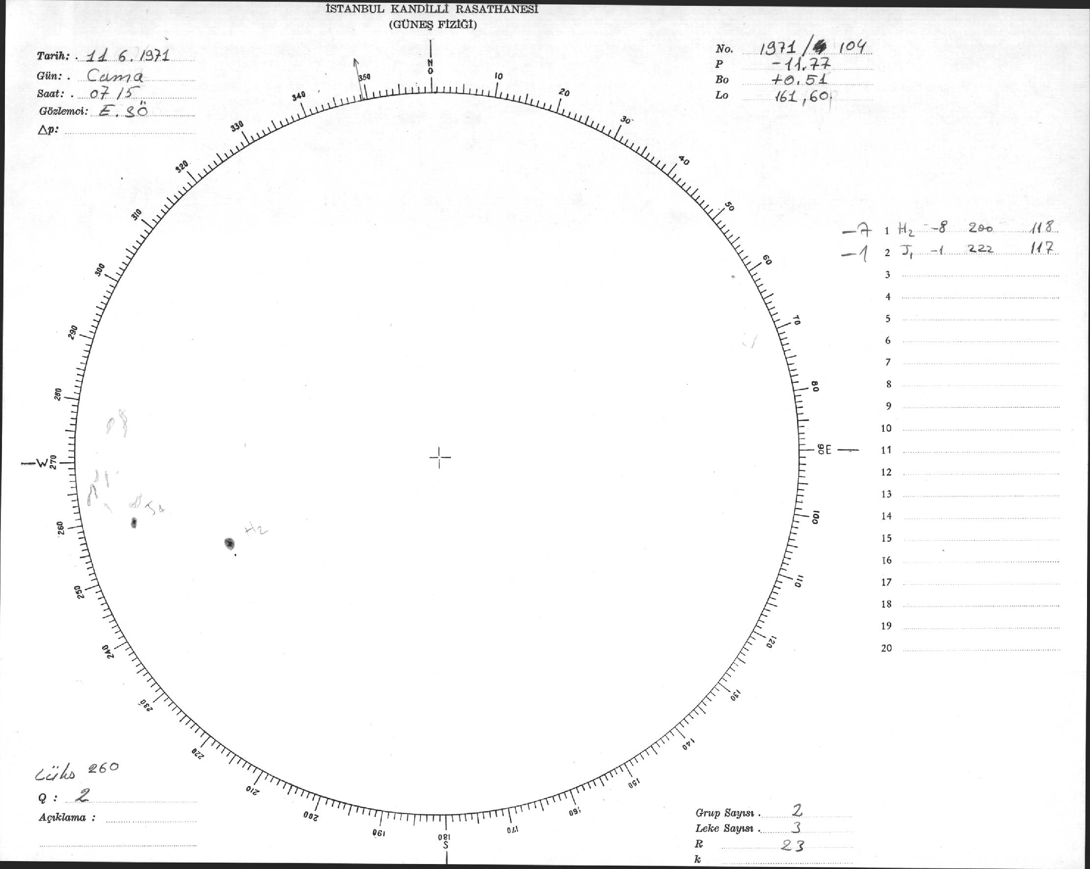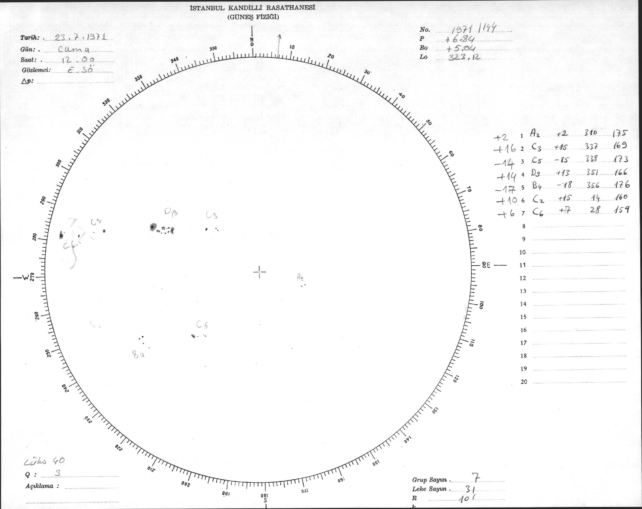 Güneş Lekesi Çizimleri / Kandilli Sunspot Drawings