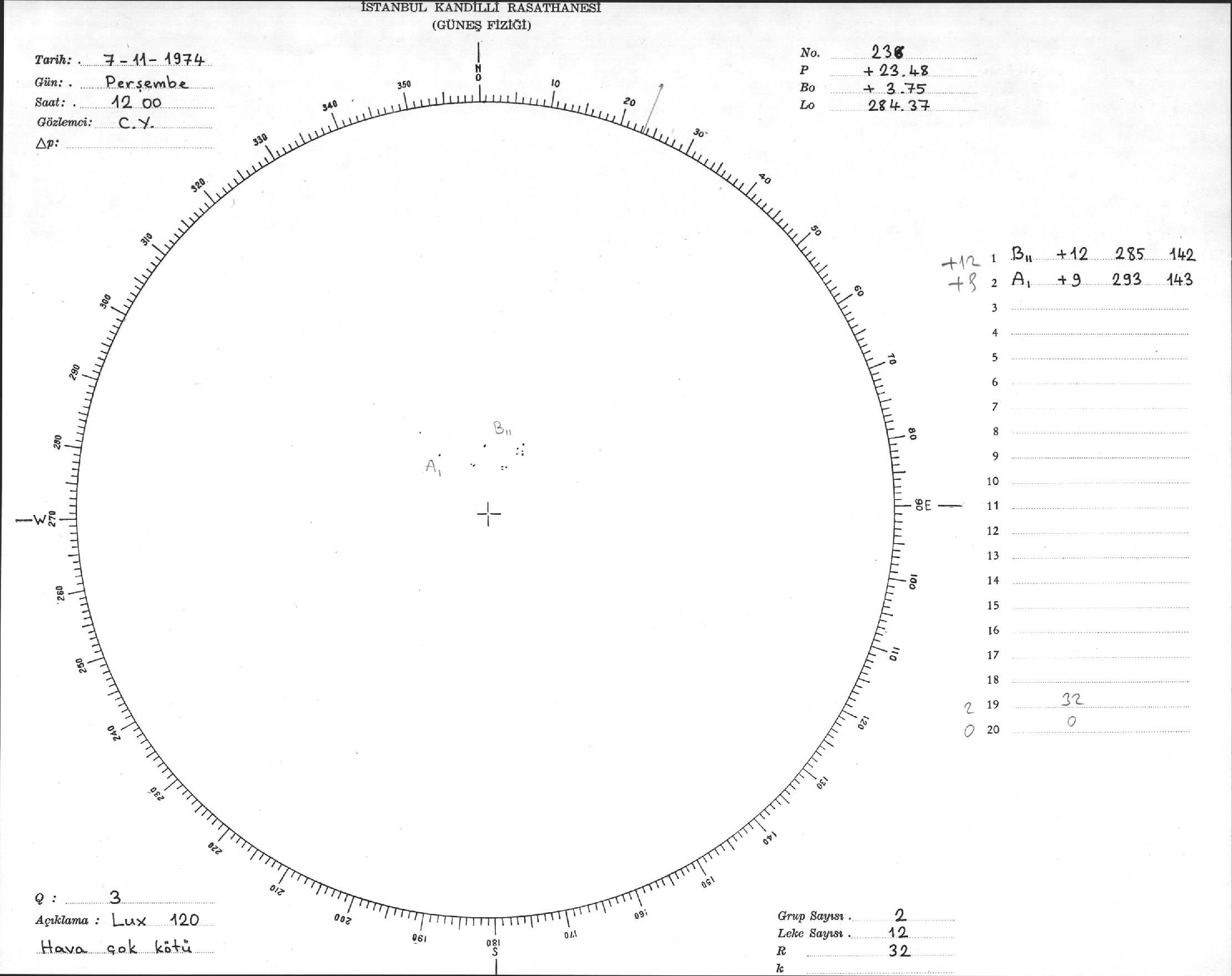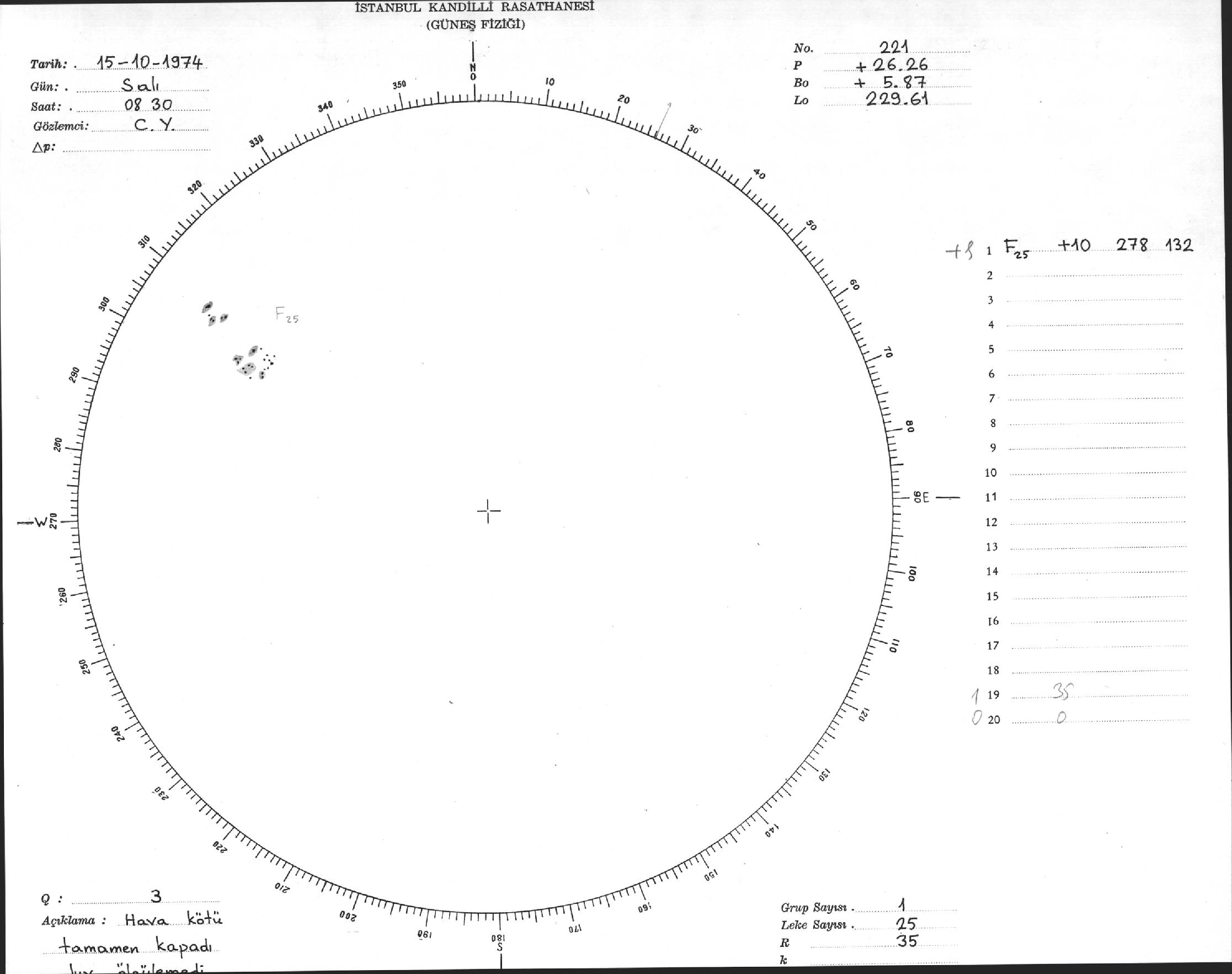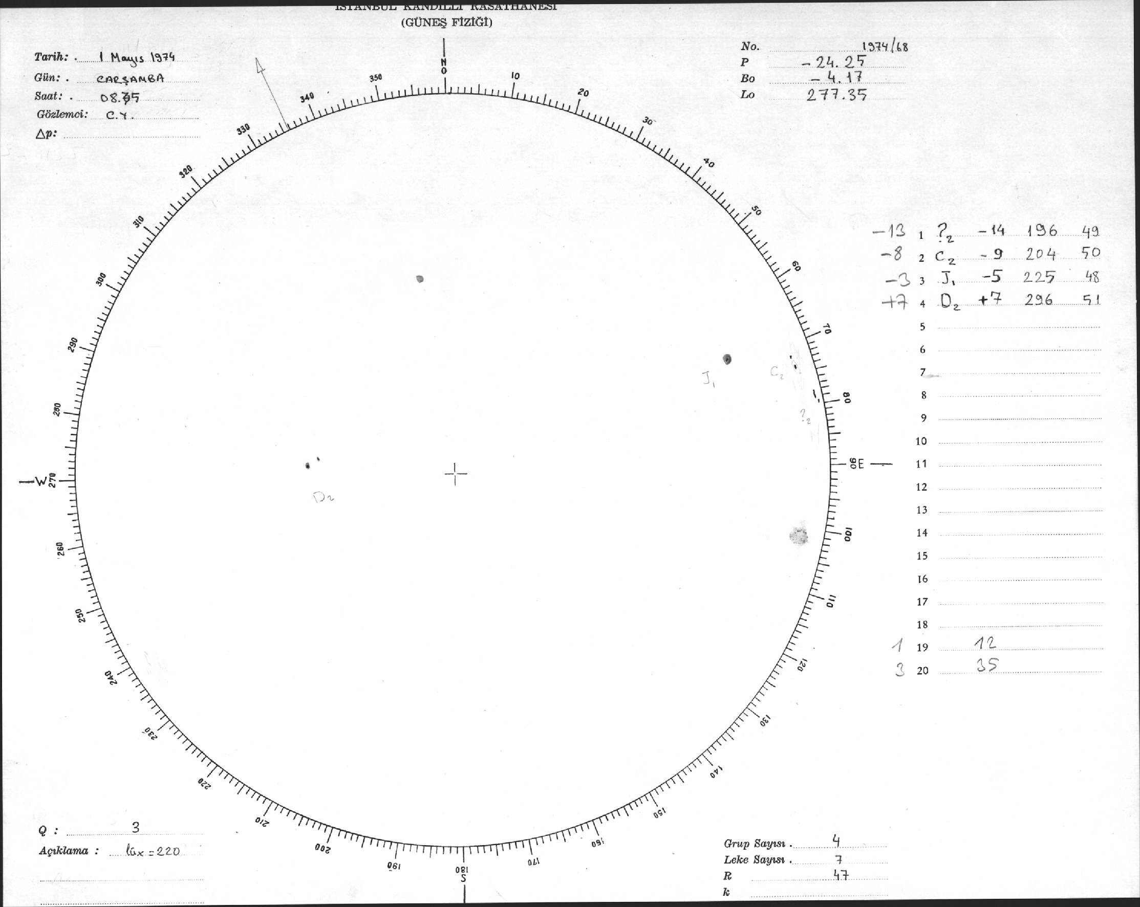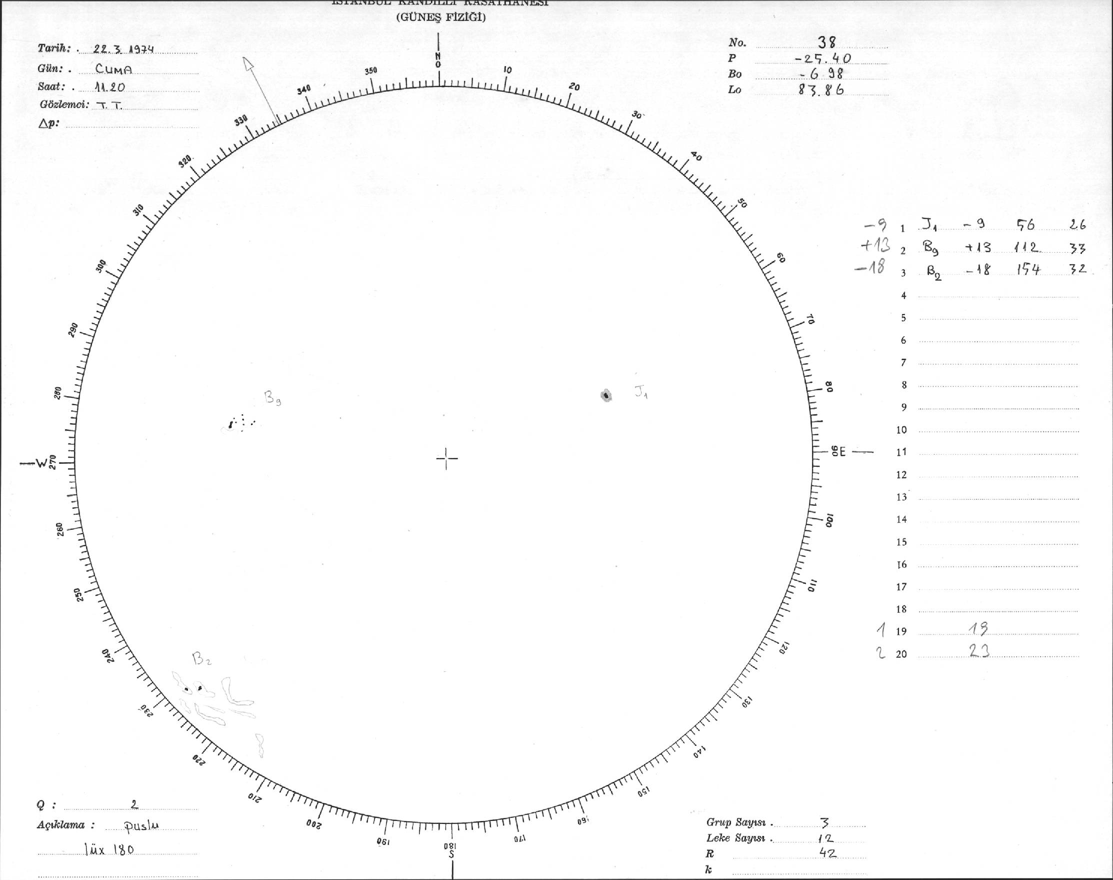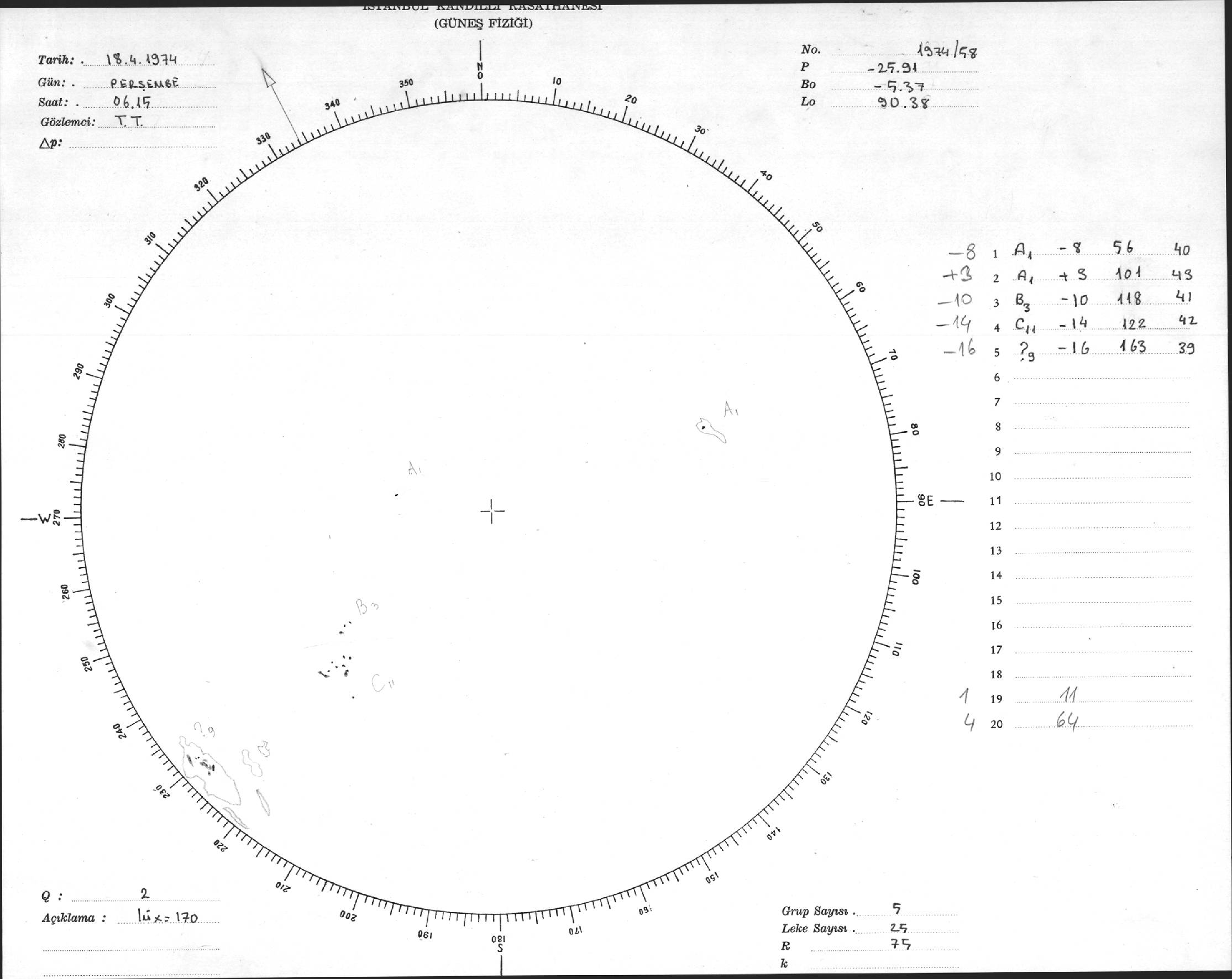Güneş Lekesi Çizimleri / Kandilli Sunspot Drawings