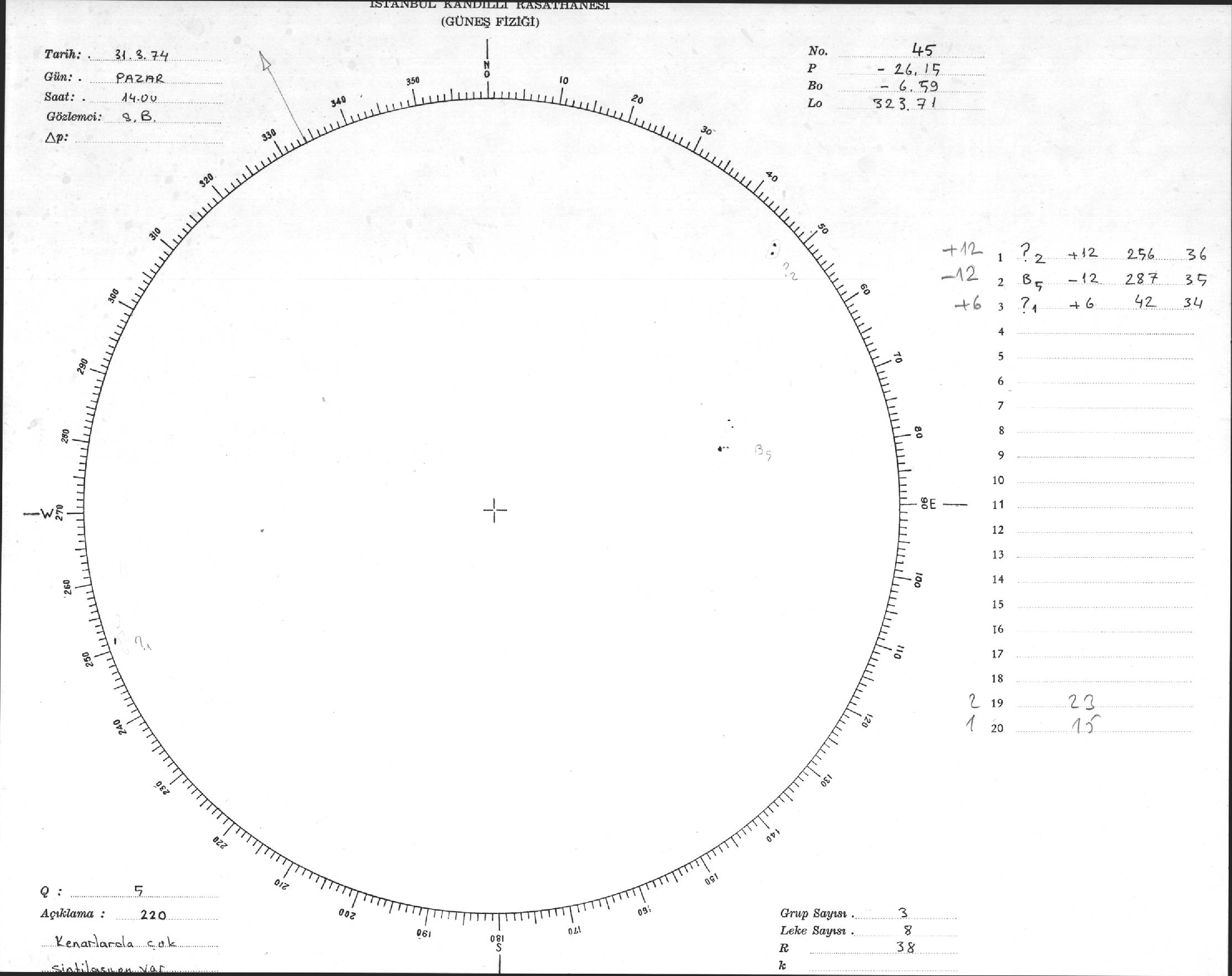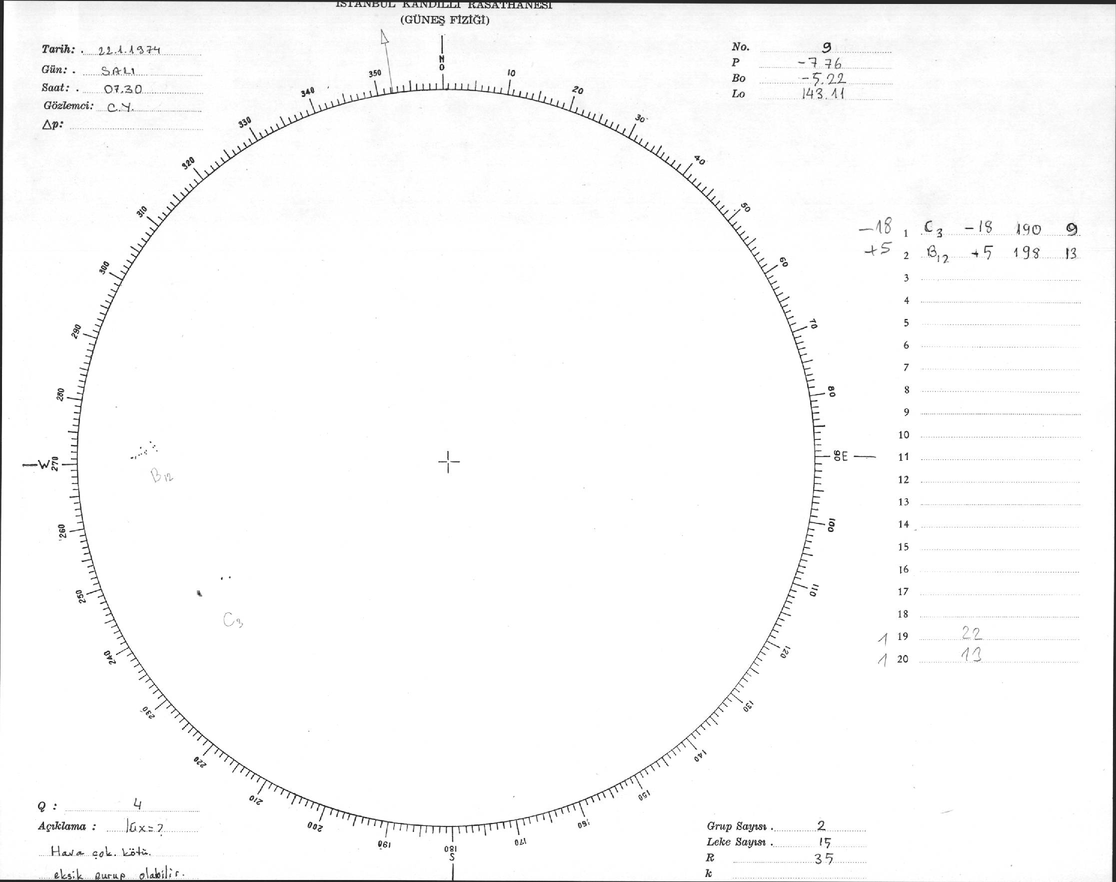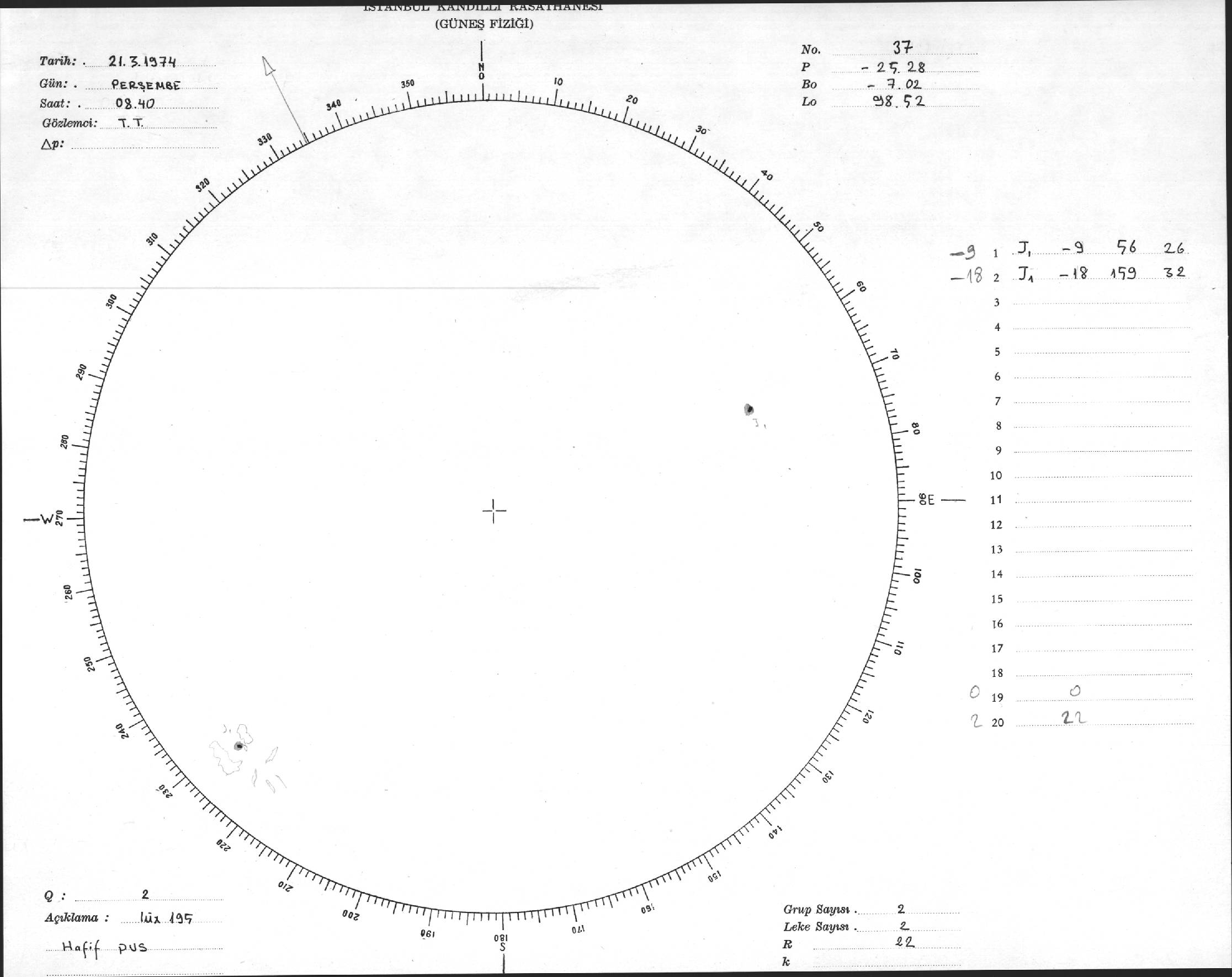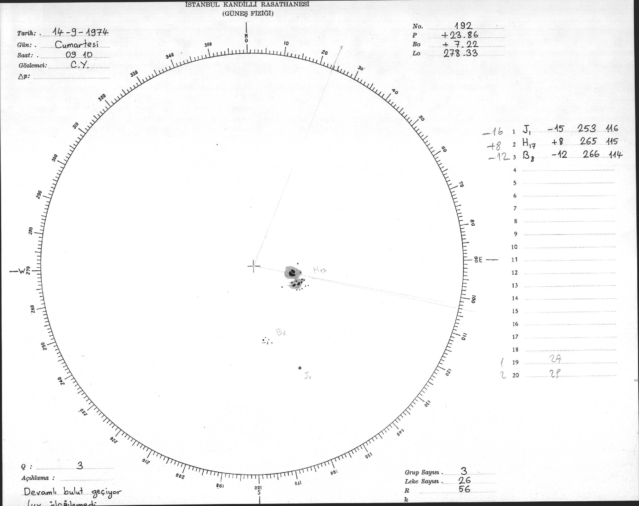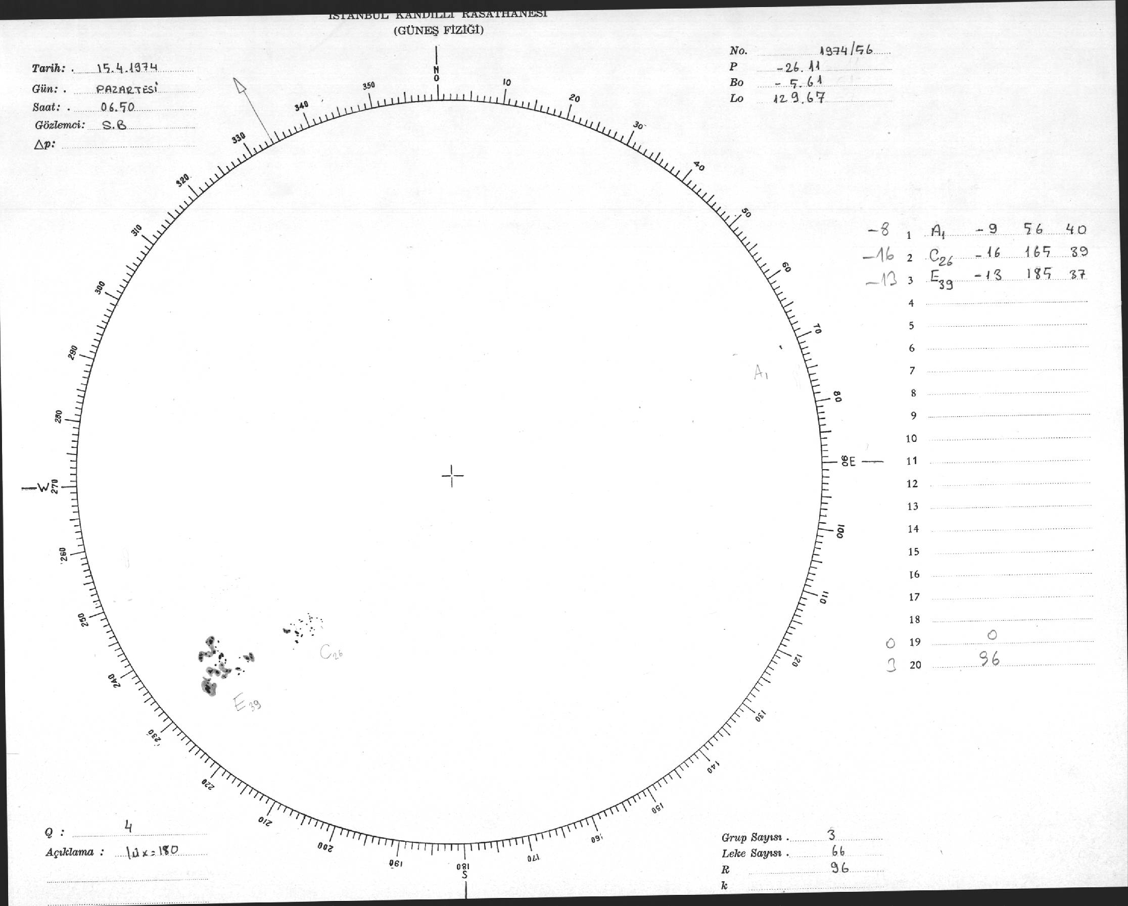 Güneş Lekesi Çizimleri / Kandilli Sunspot Drawings