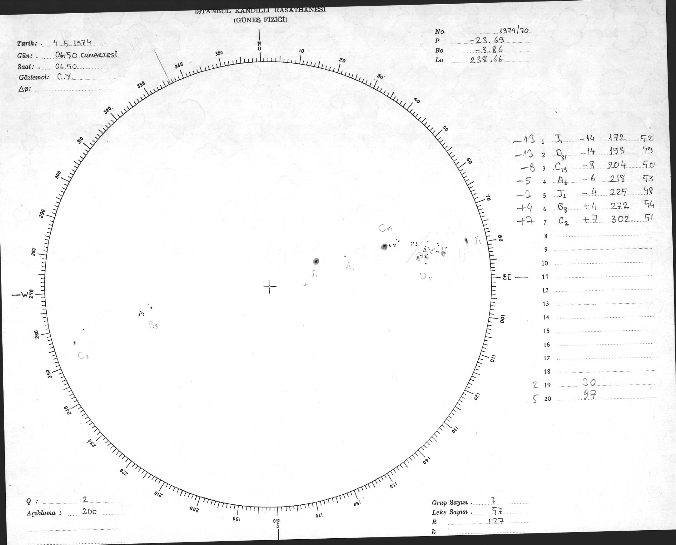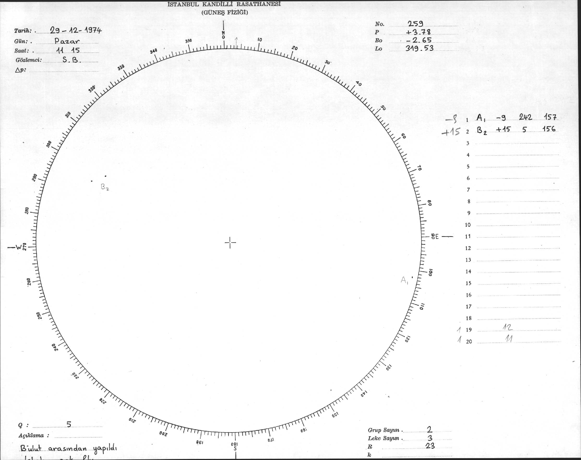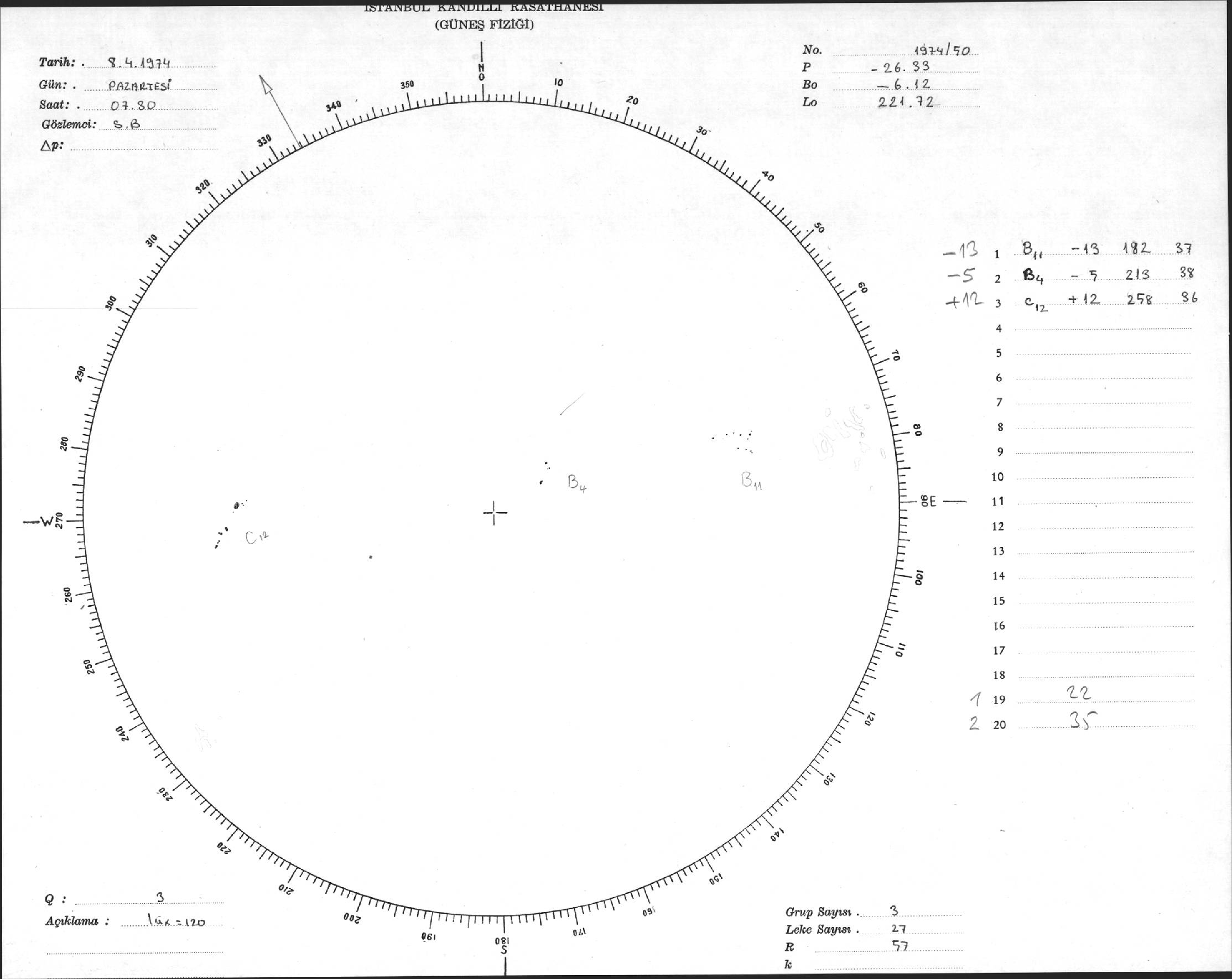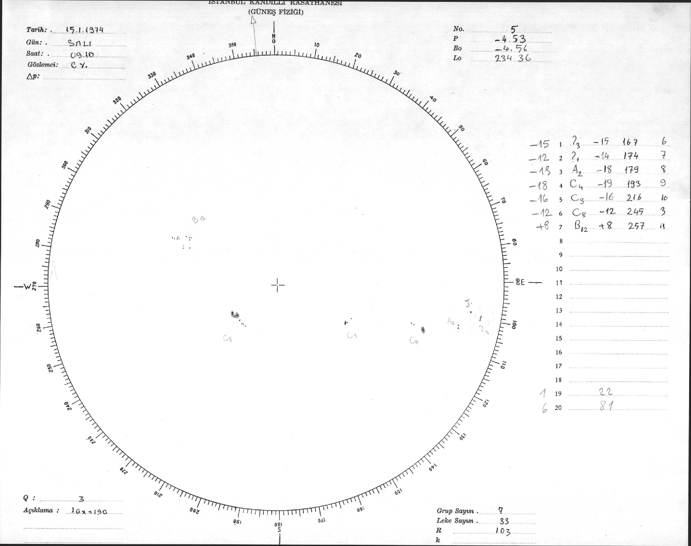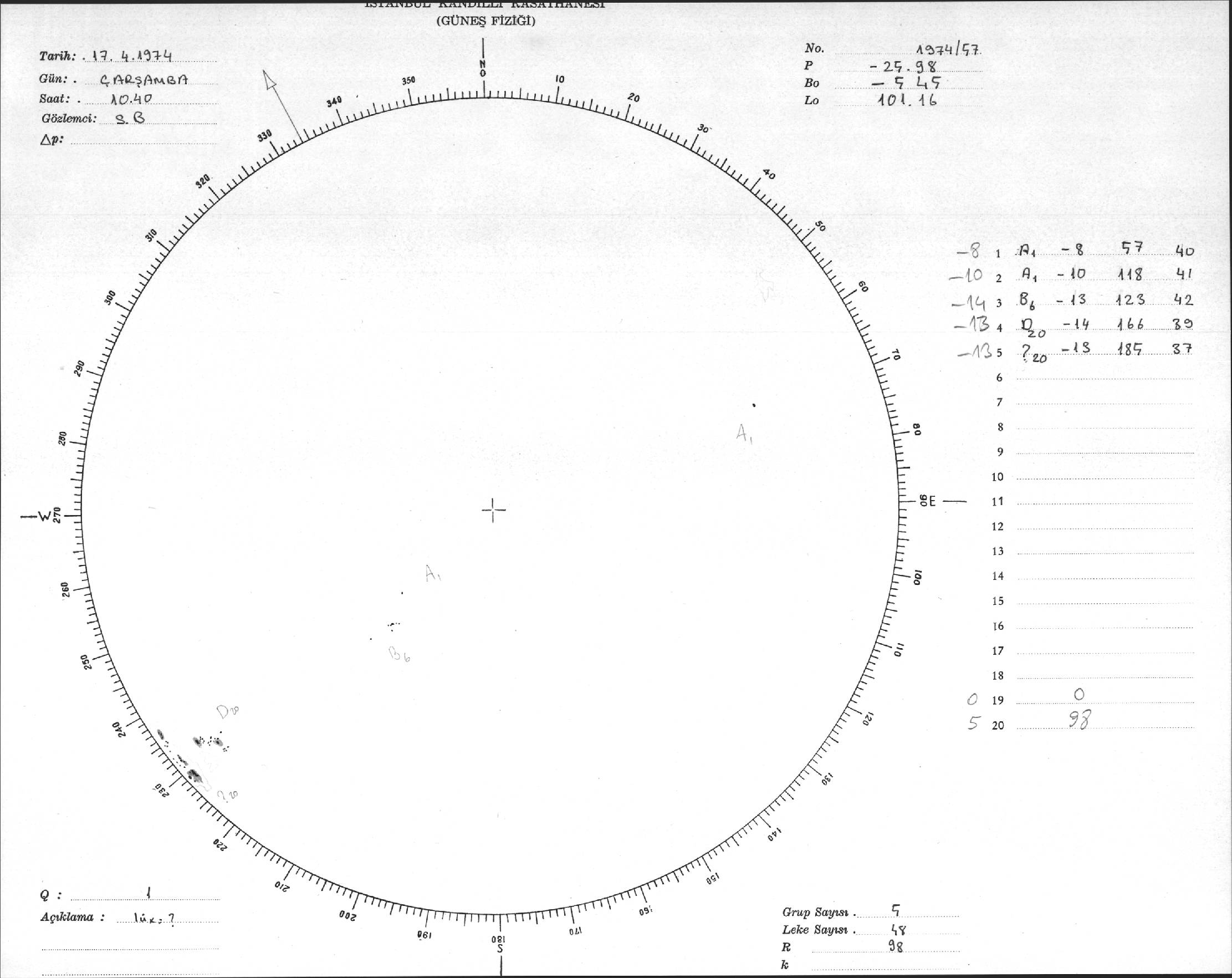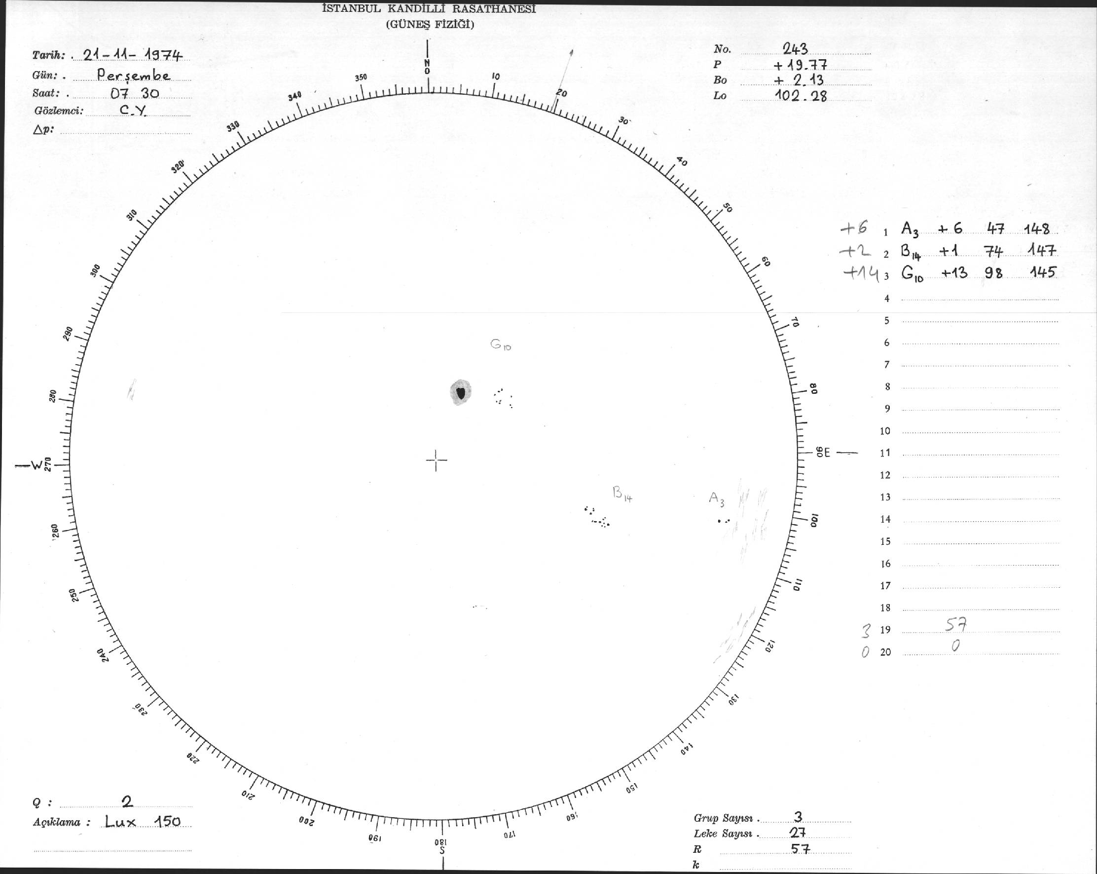 Güneş Lekesi Çizimleri / Kandilli Sunspot Drawings