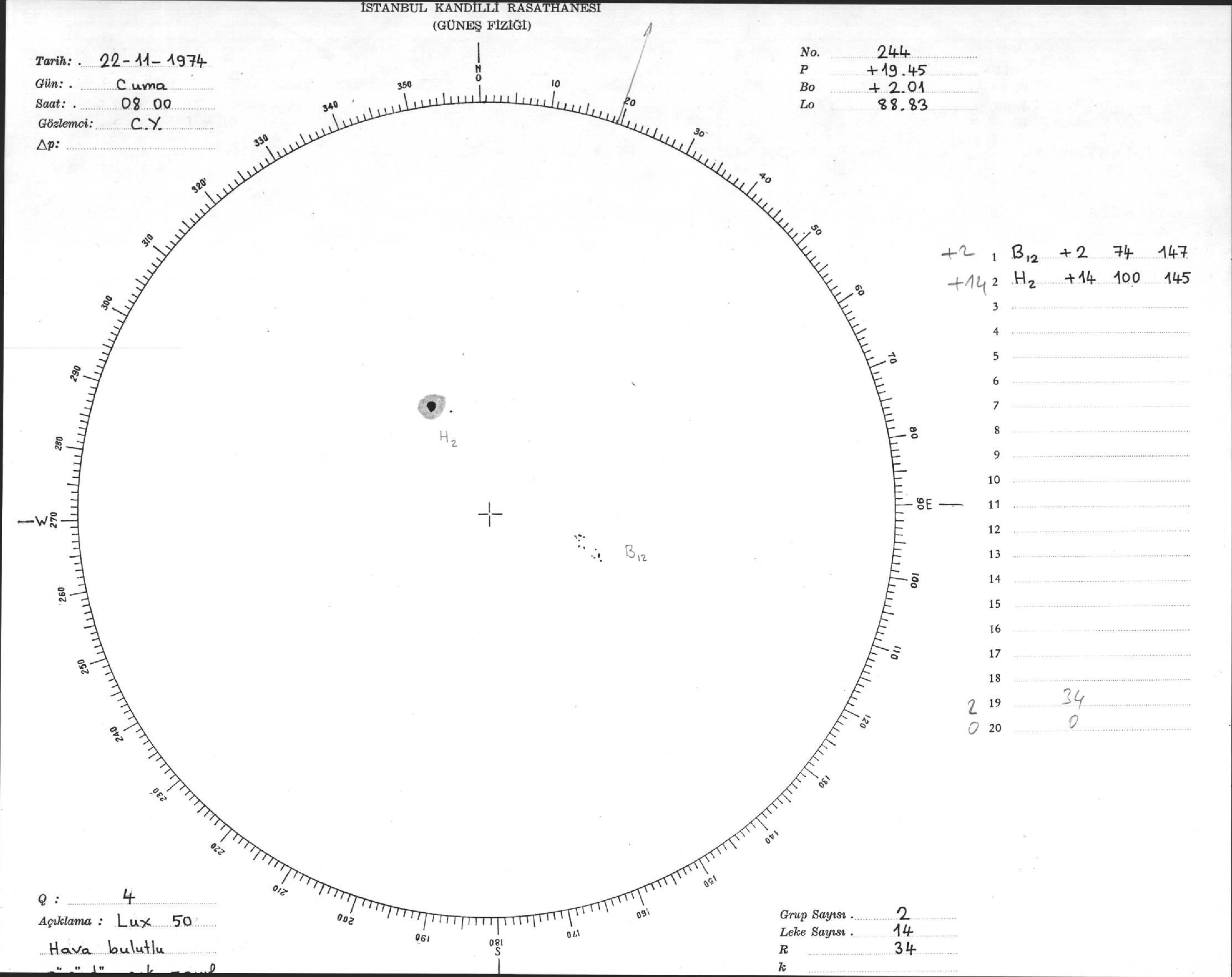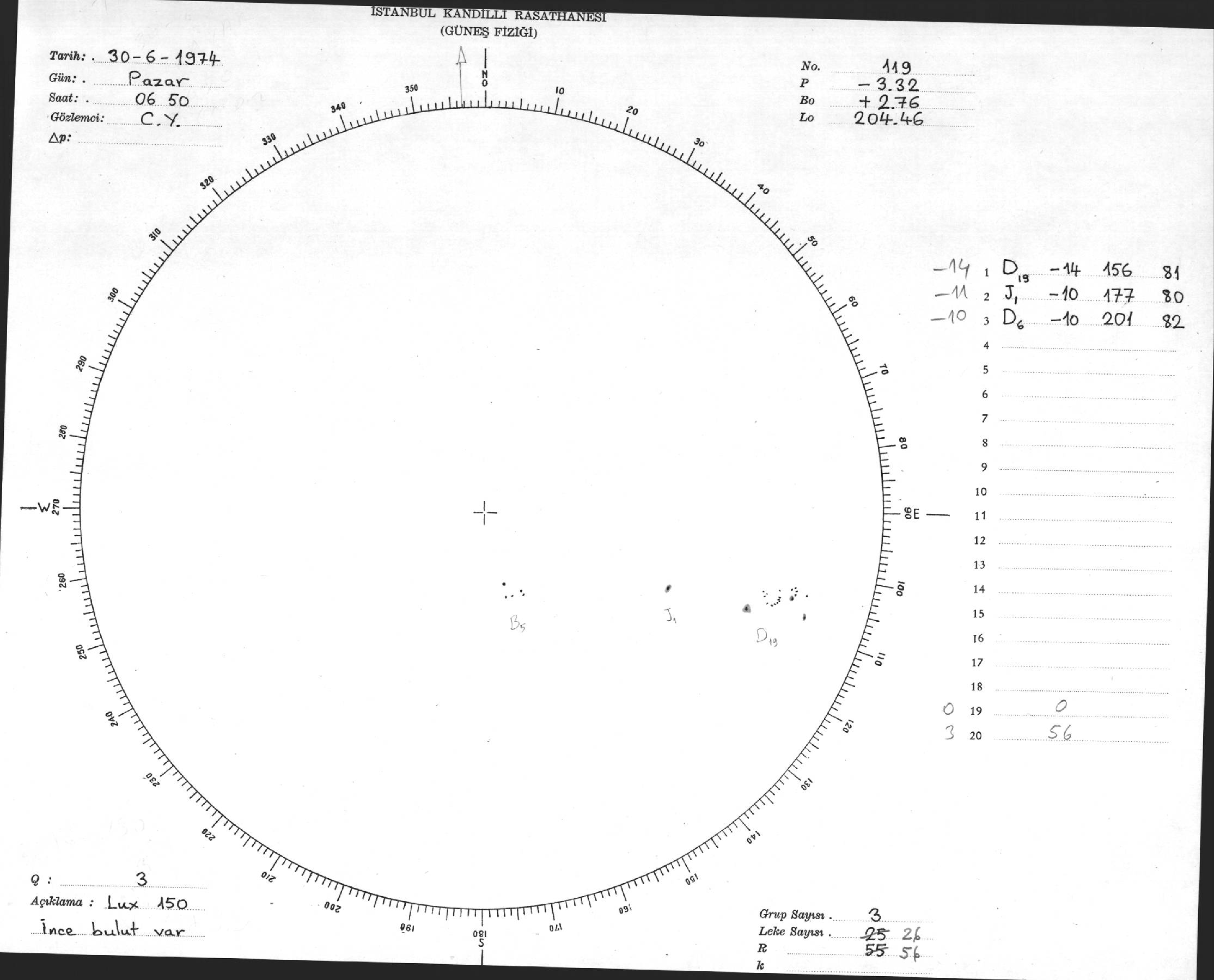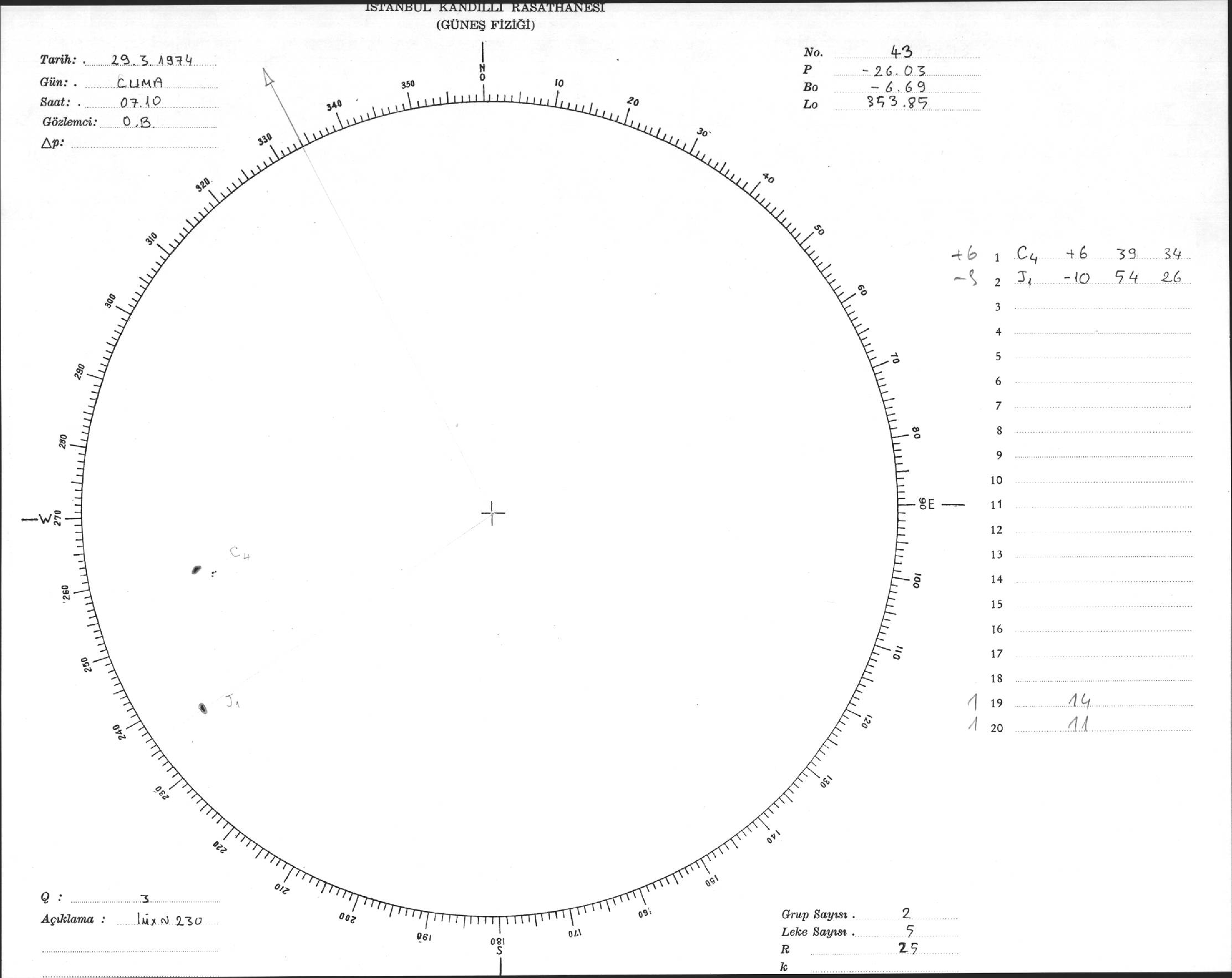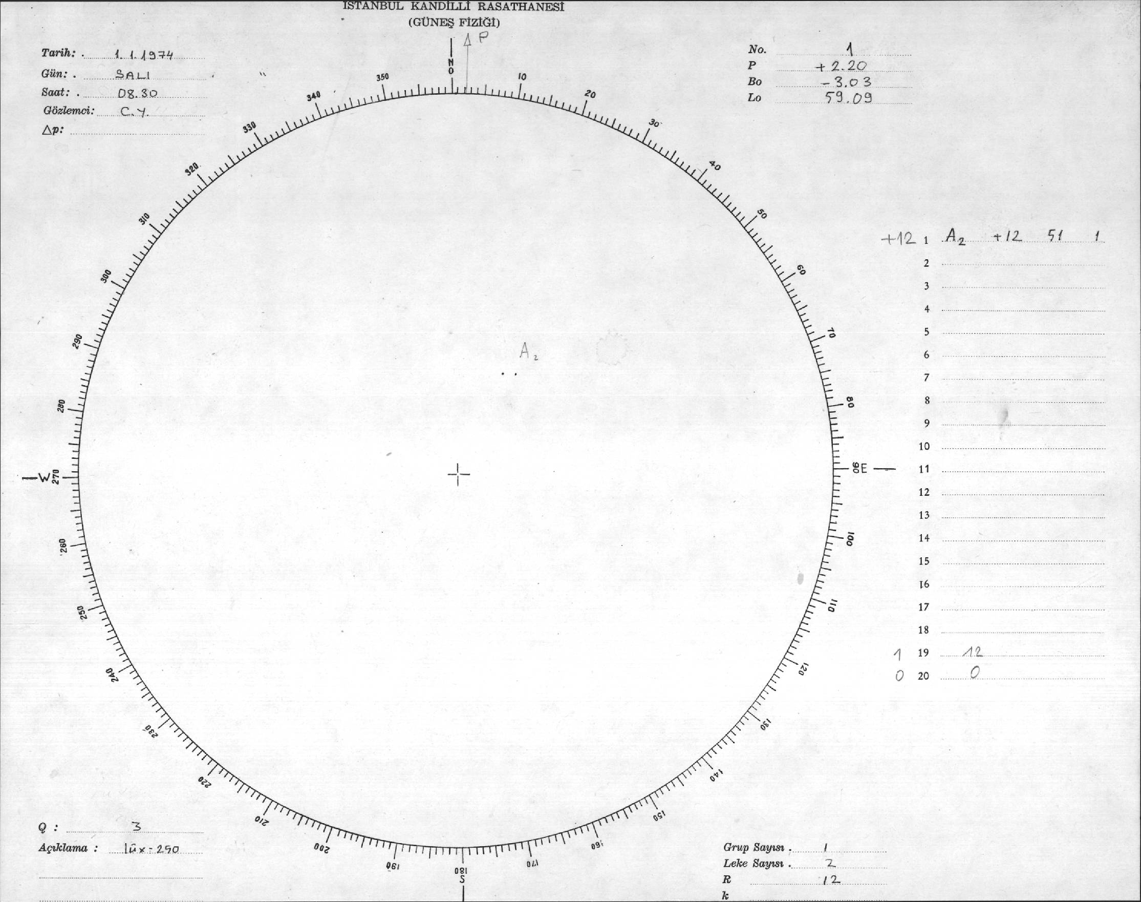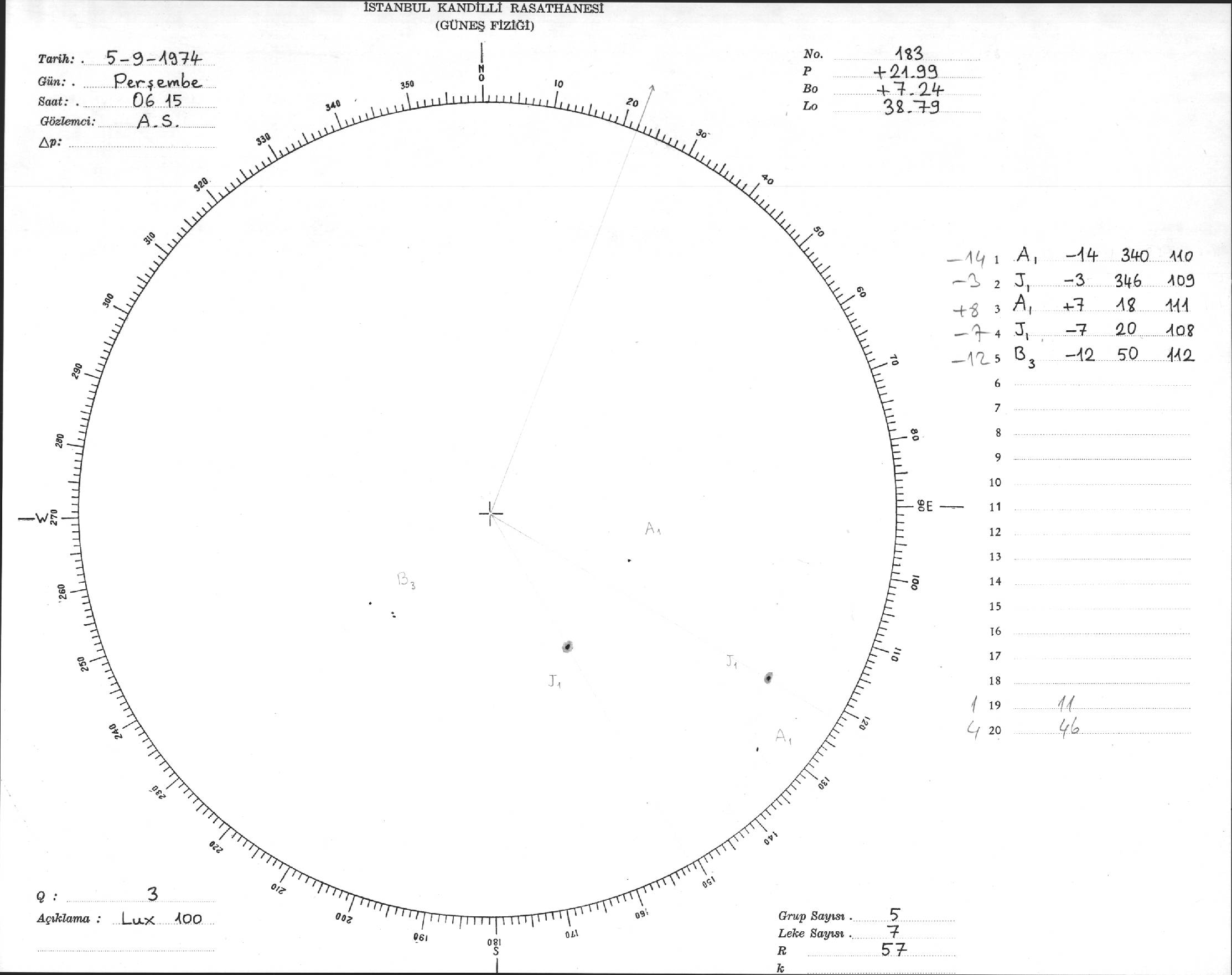 Güneş Lekesi Çizimleri / Kandilli Sunspot Drawings