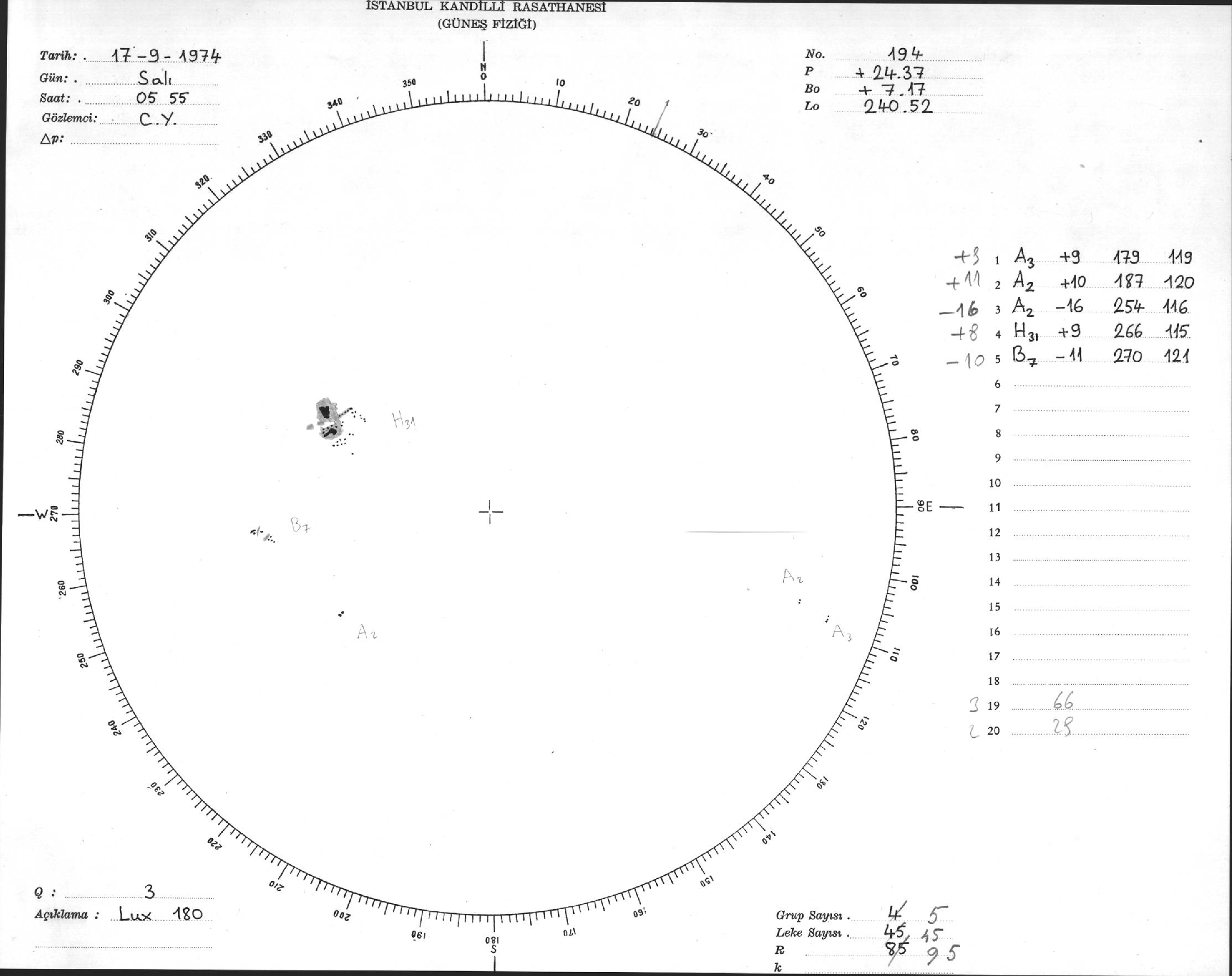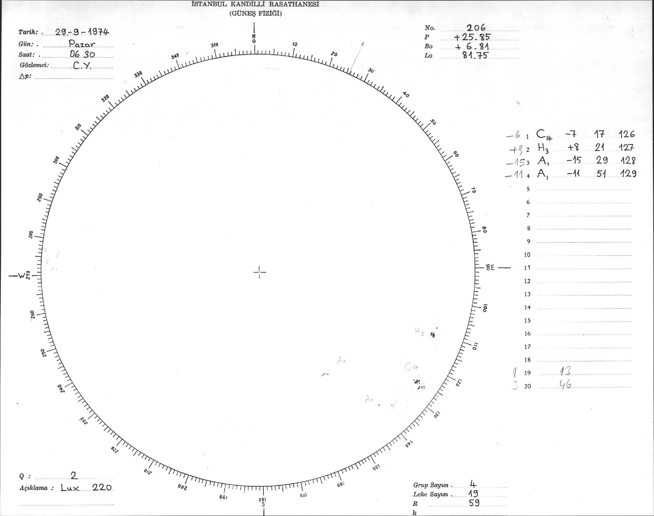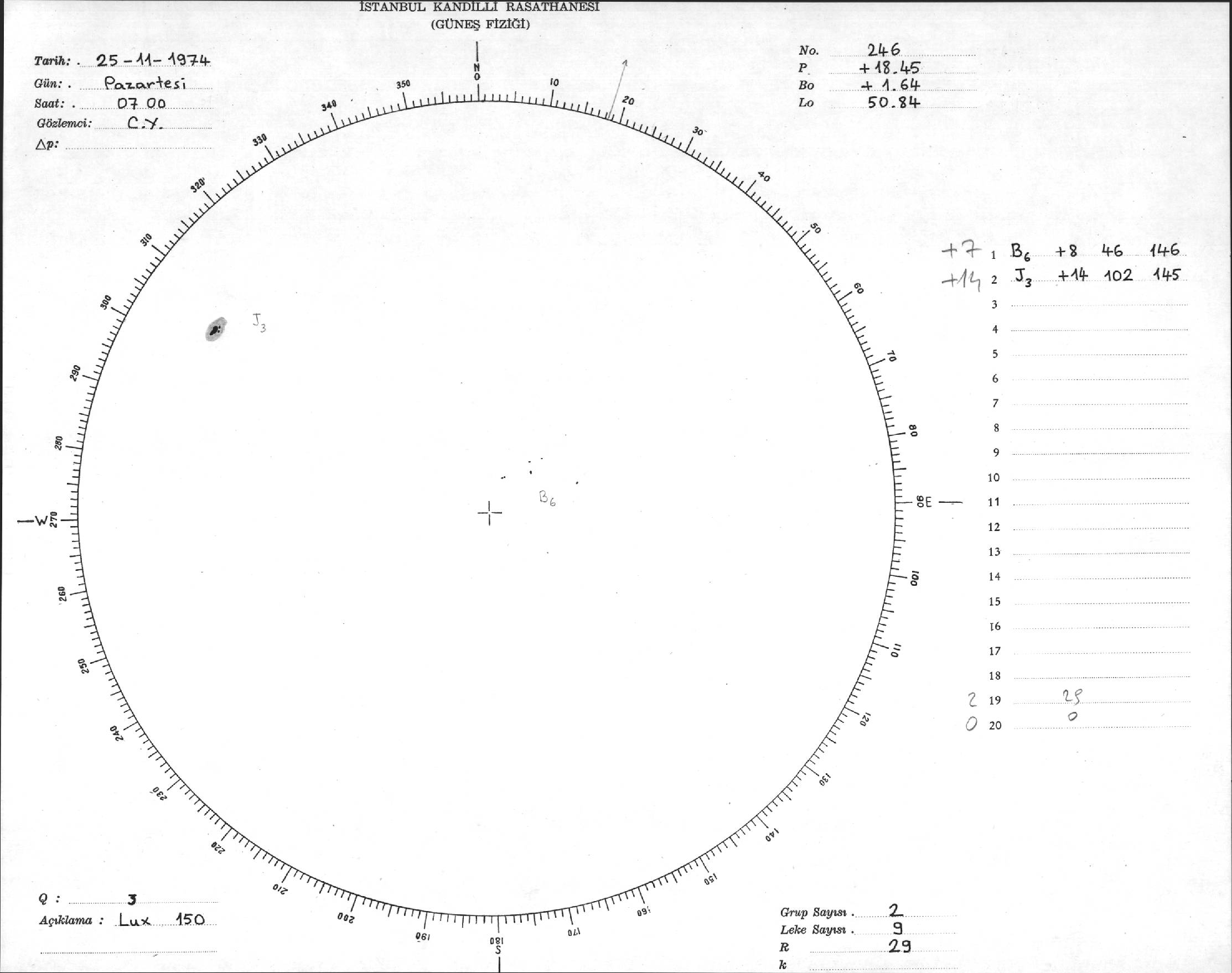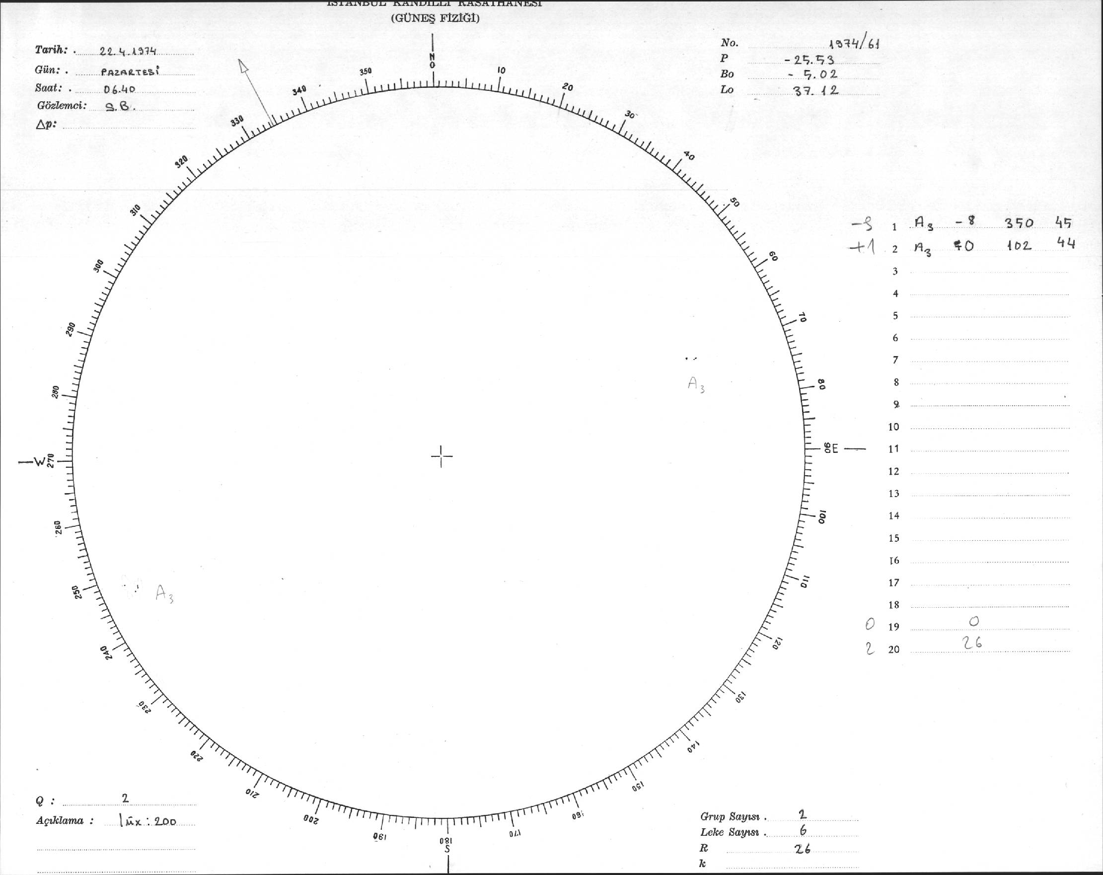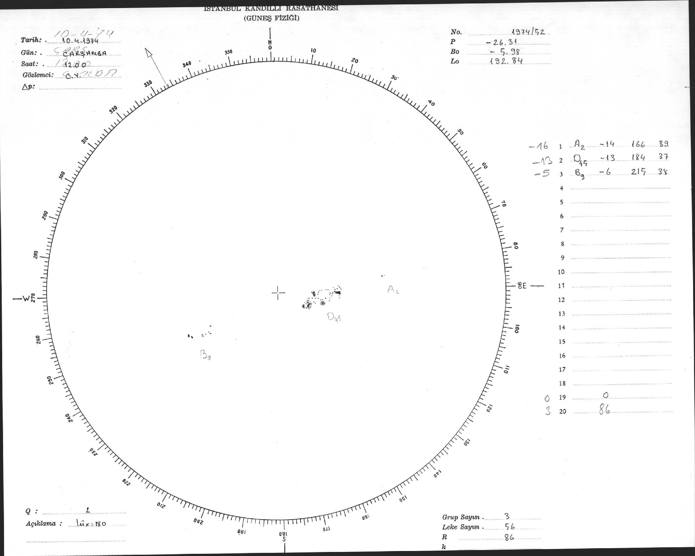 Güneş Lekesi Çizimleri / Kandilli Sunspot Drawings