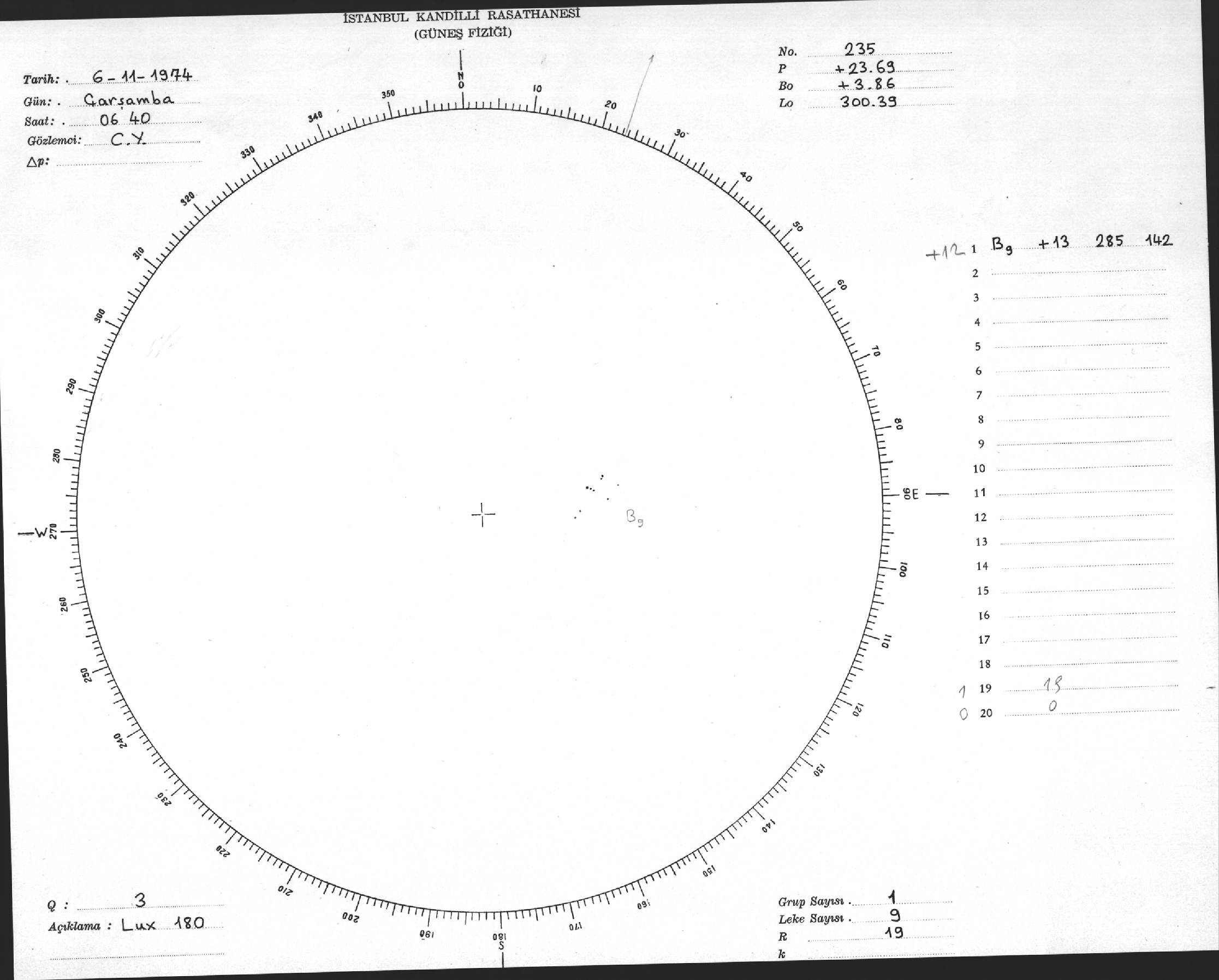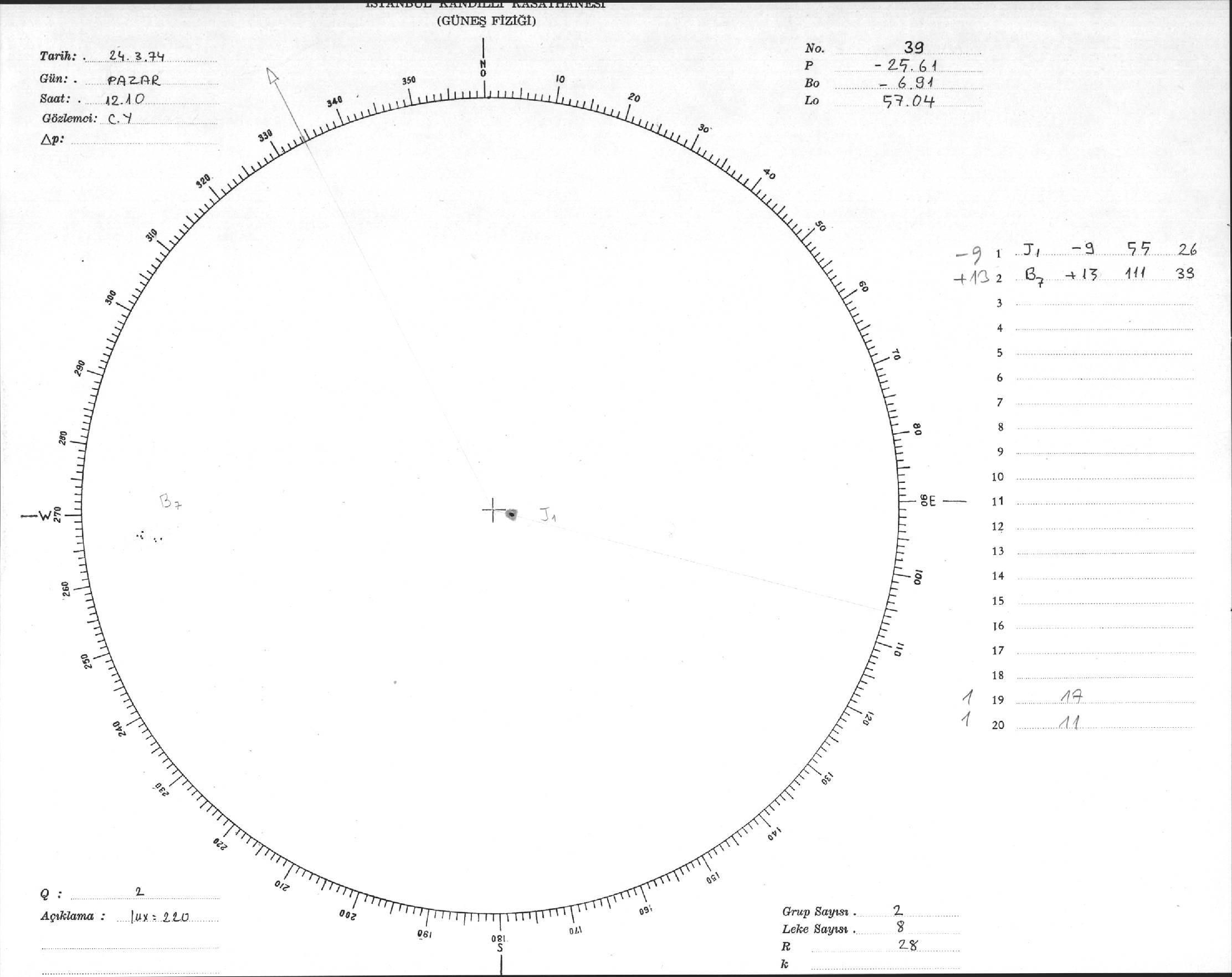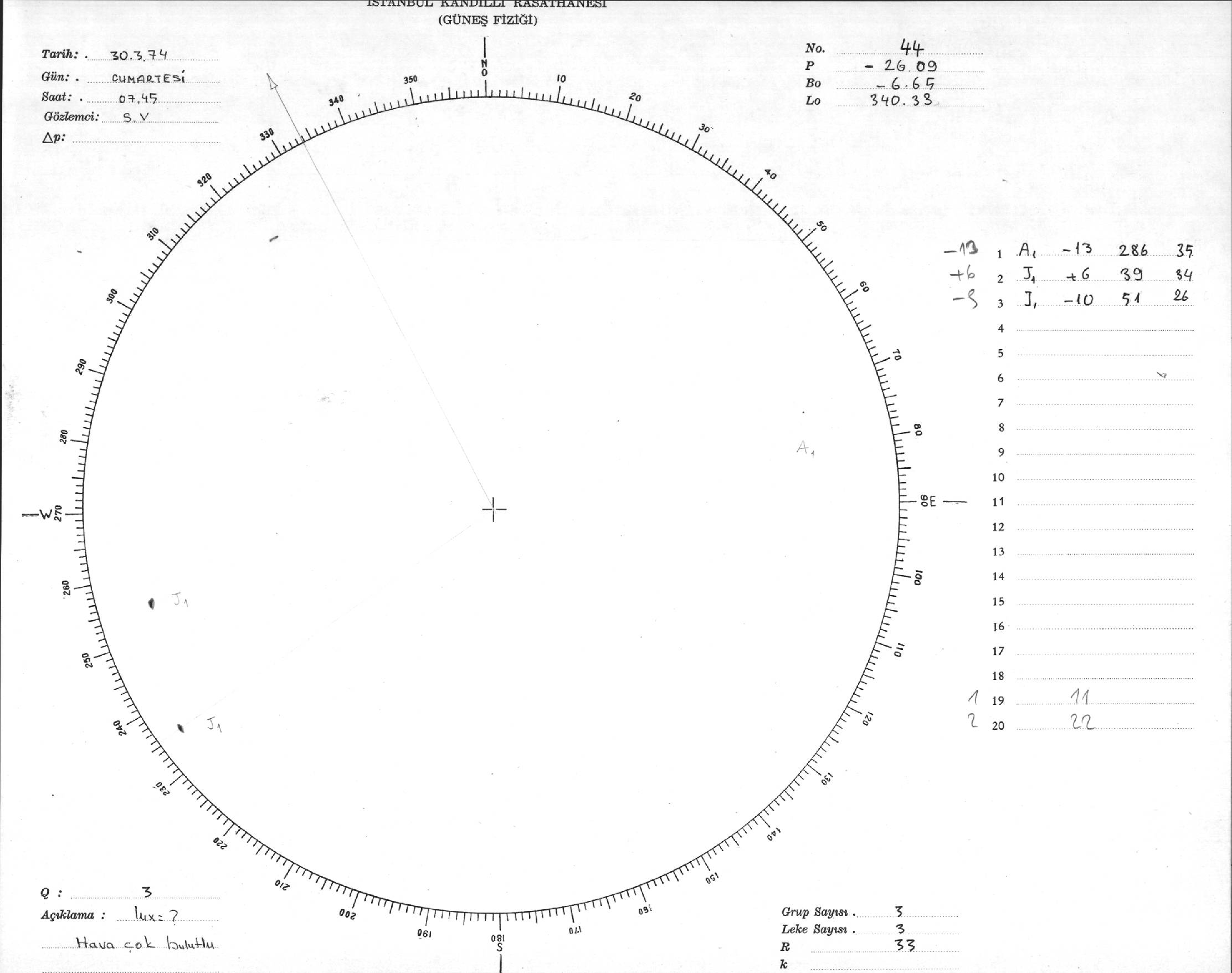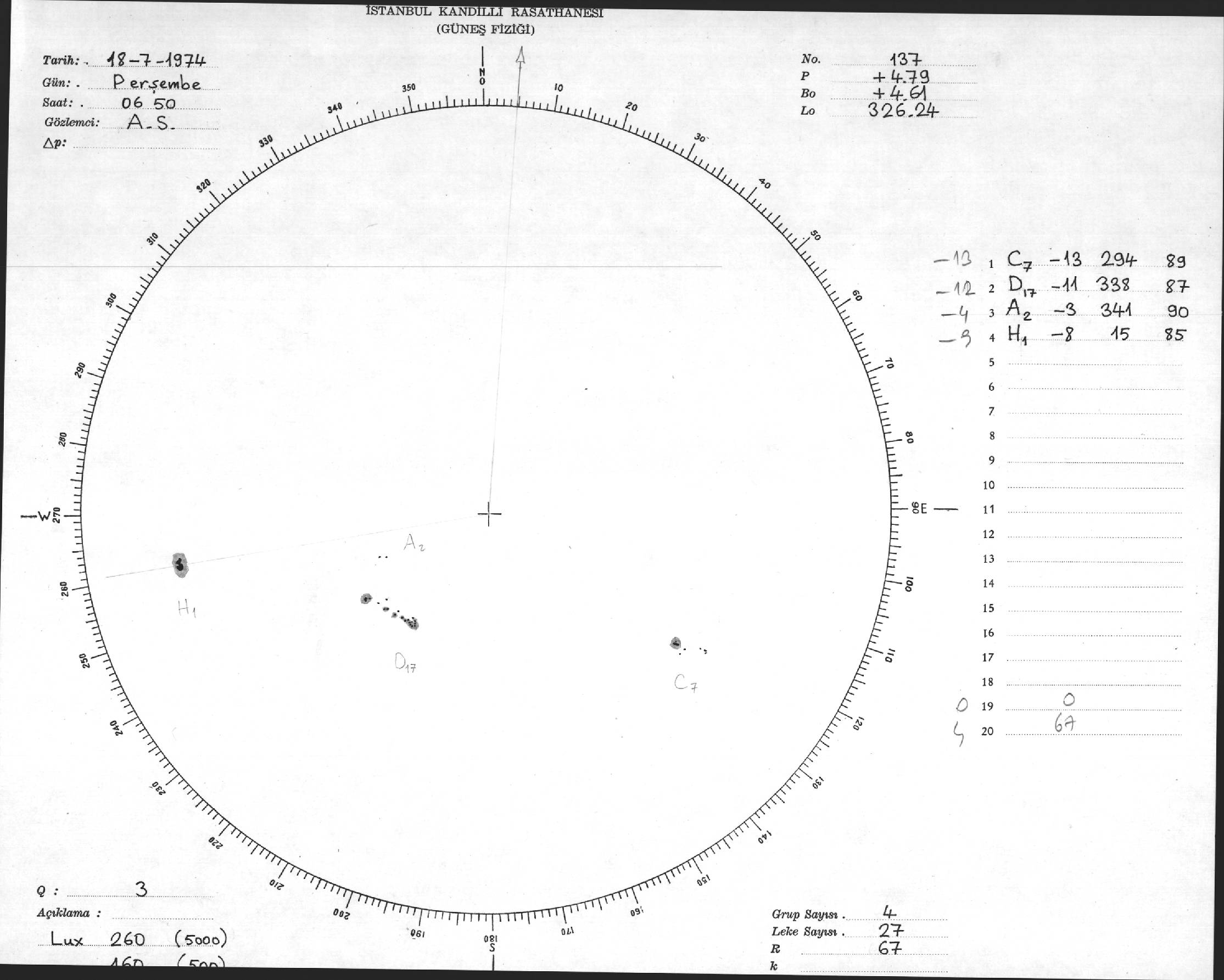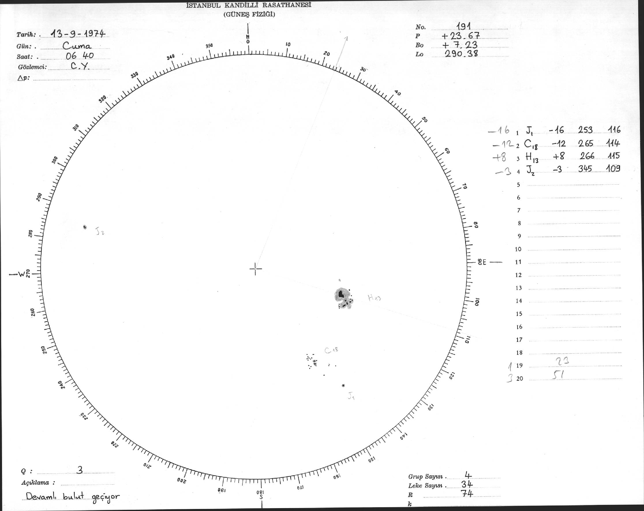 Güneş Lekesi Çizimleri / Kandilli Sunspot Drawings