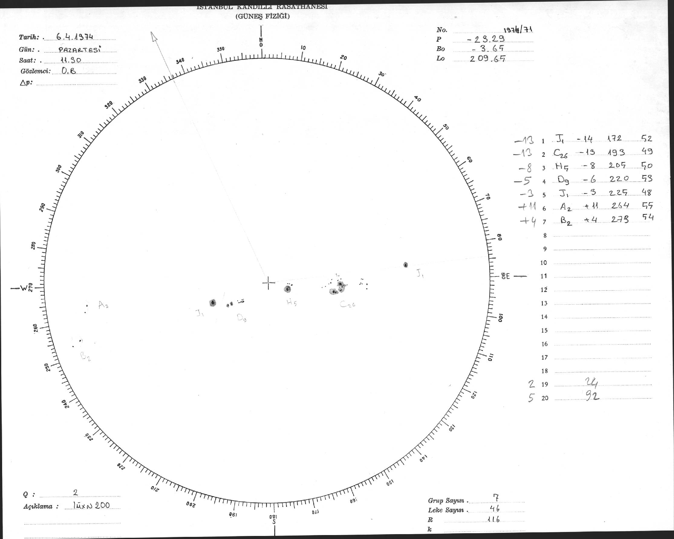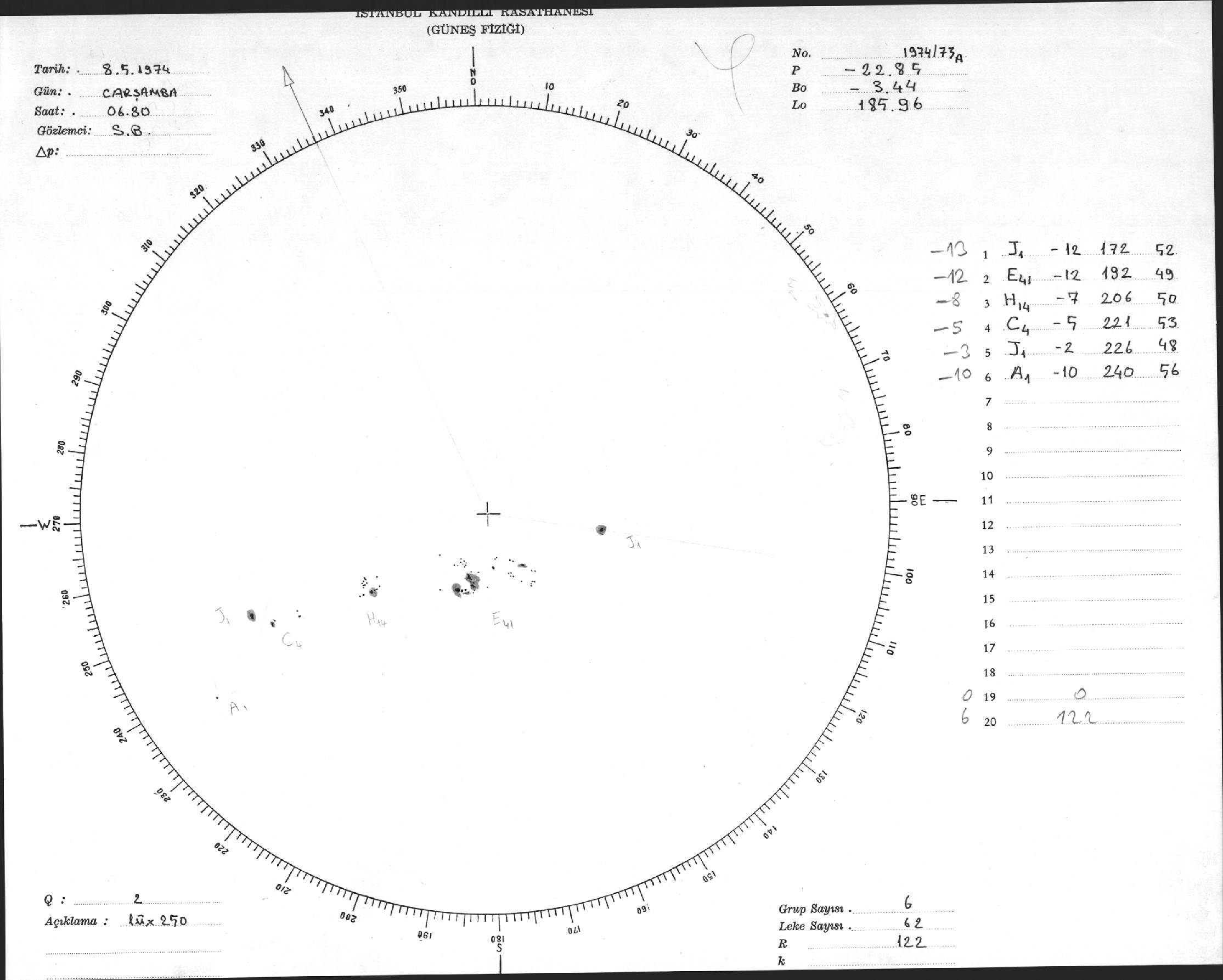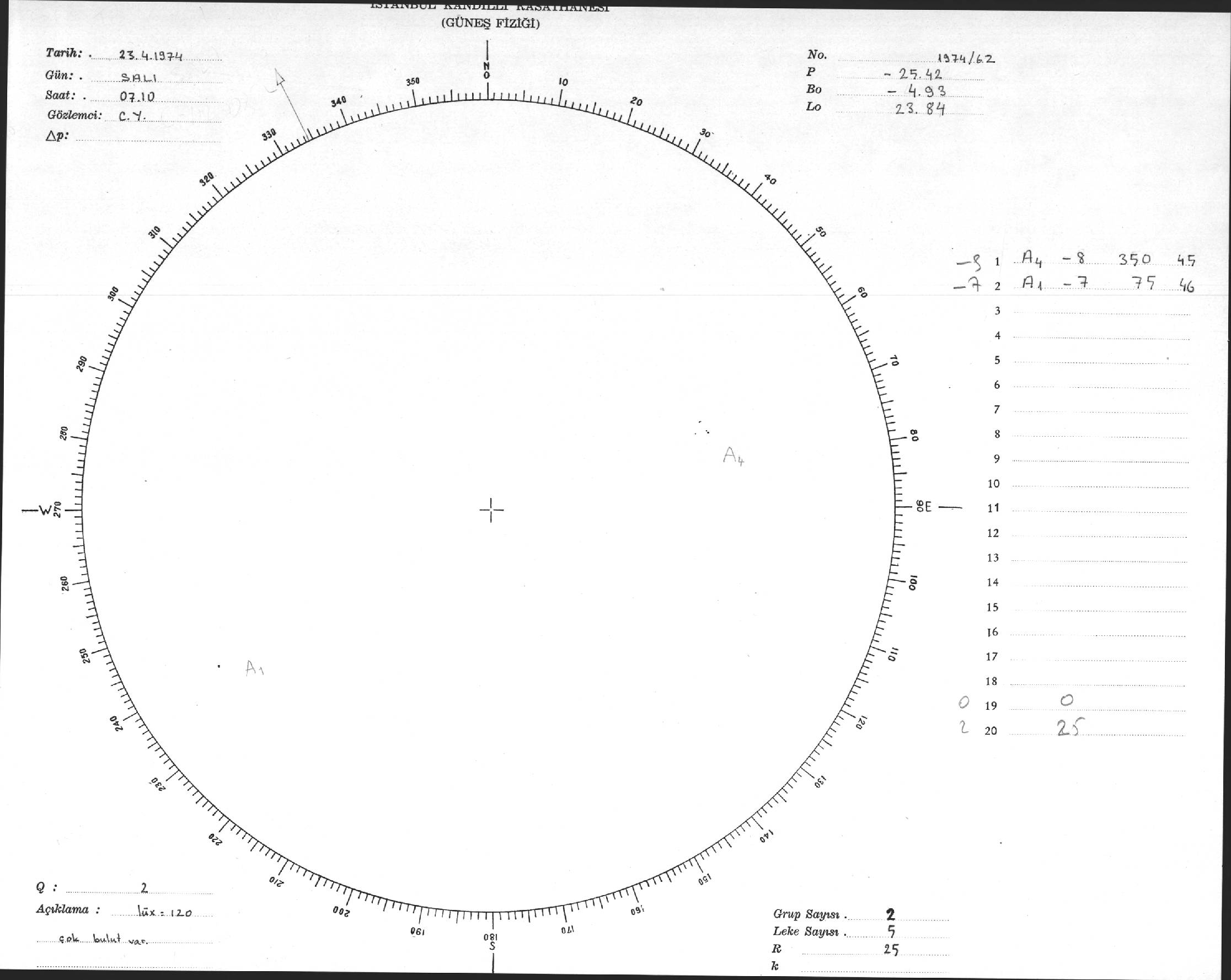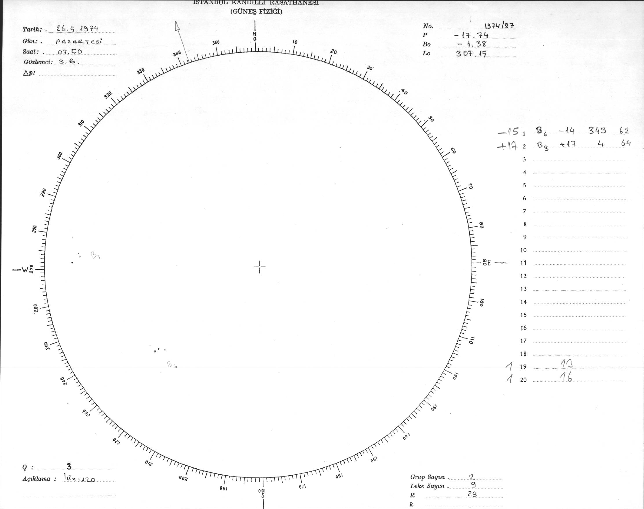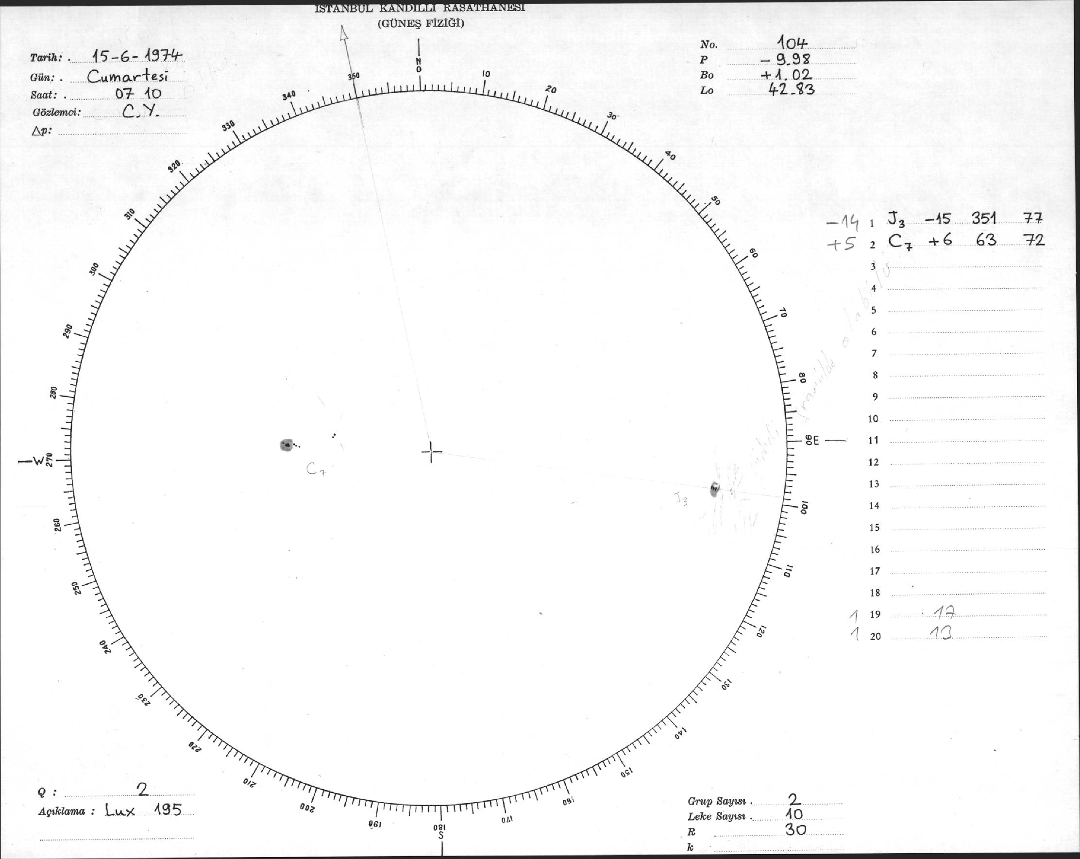 Güneş Lekesi Çizimleri / Kandilli Sunspot Drawings