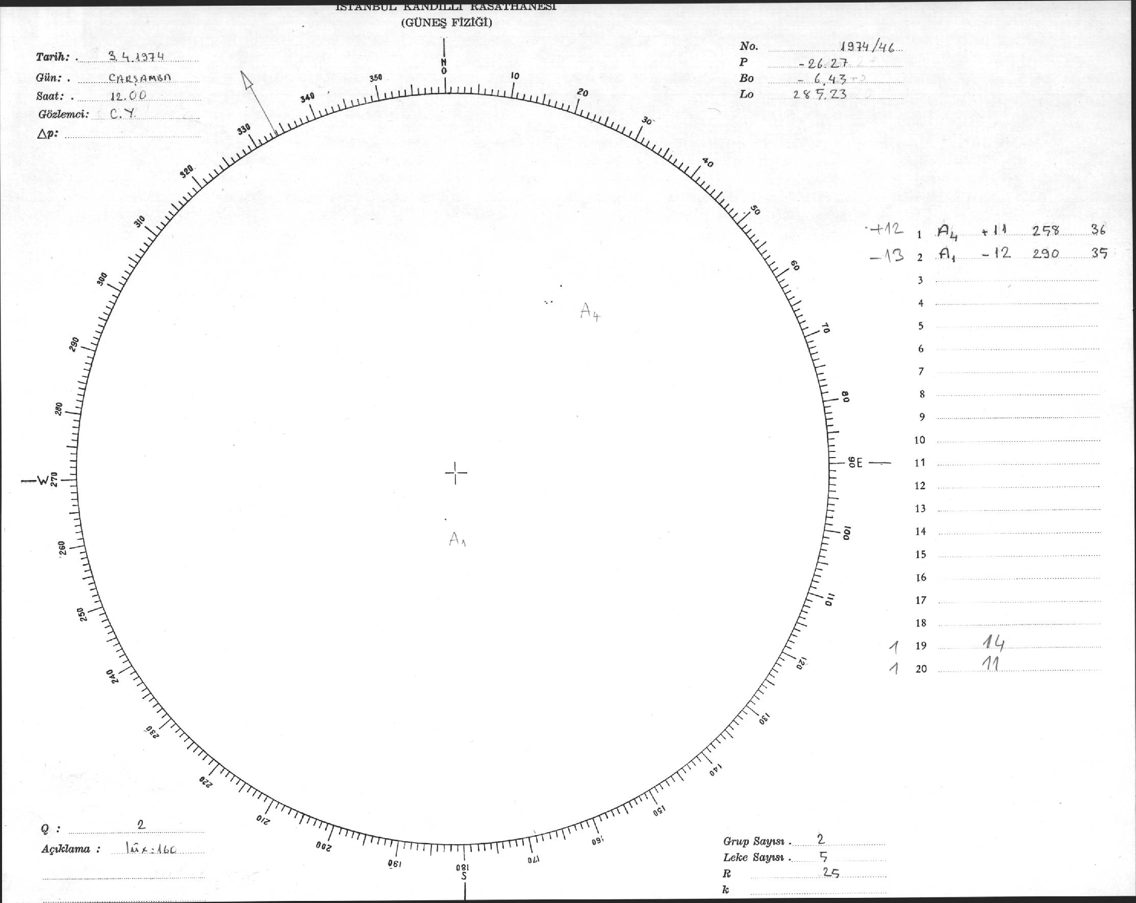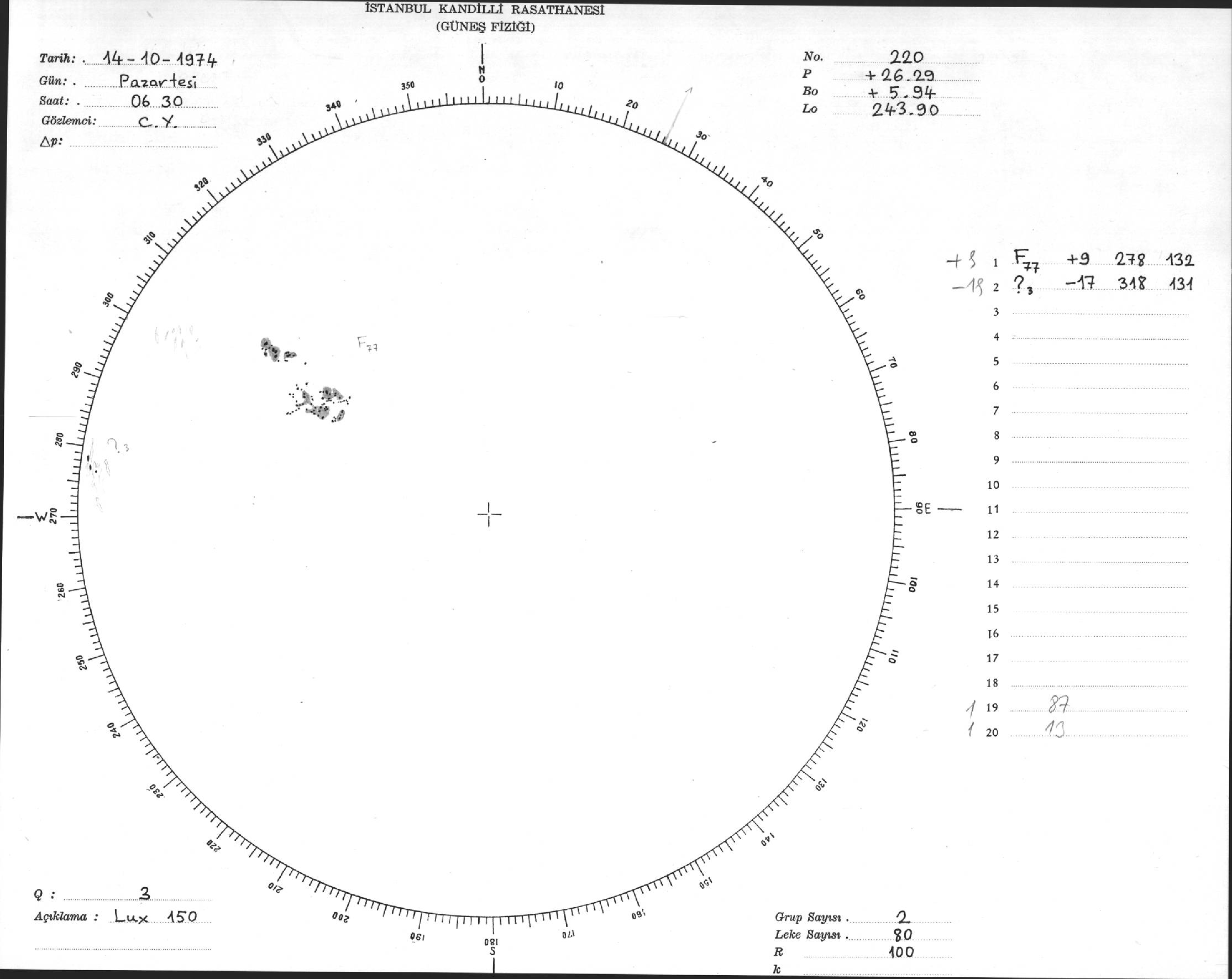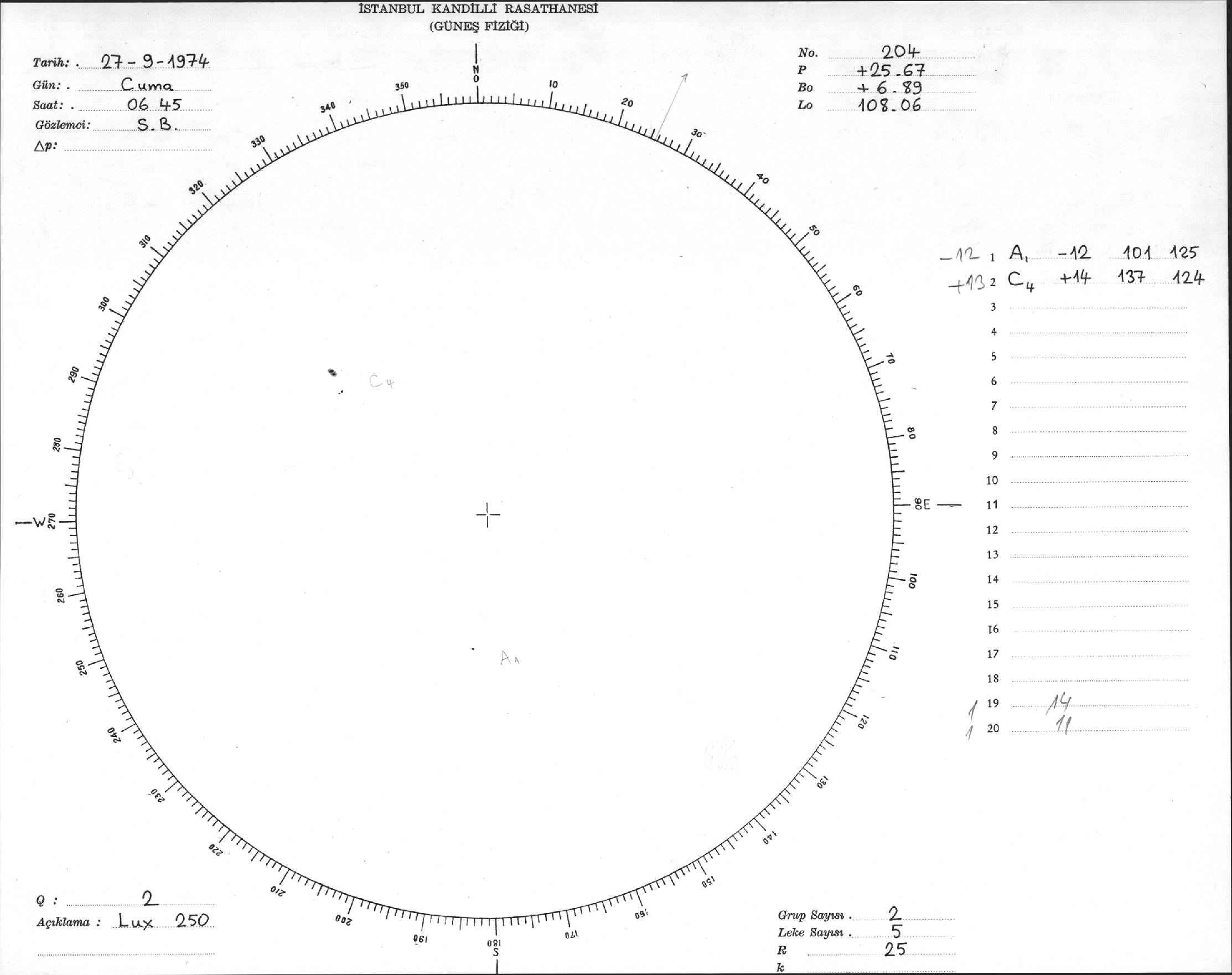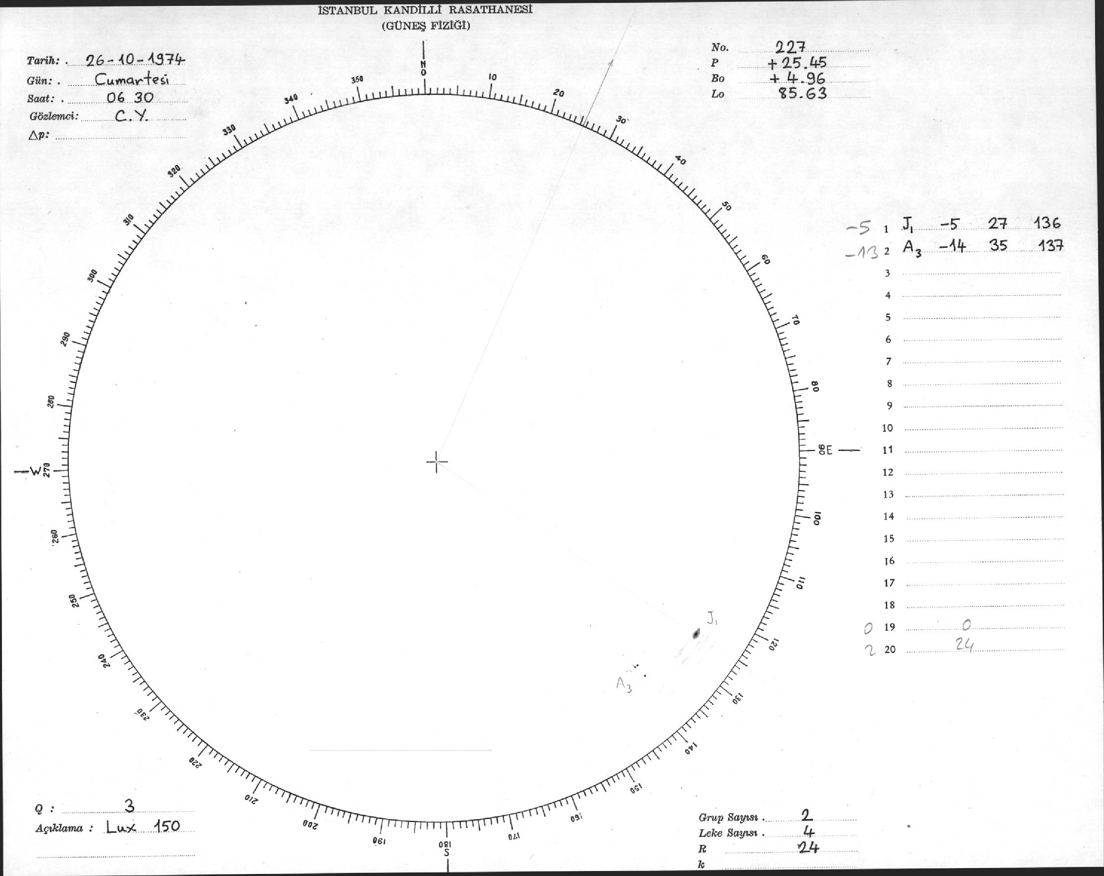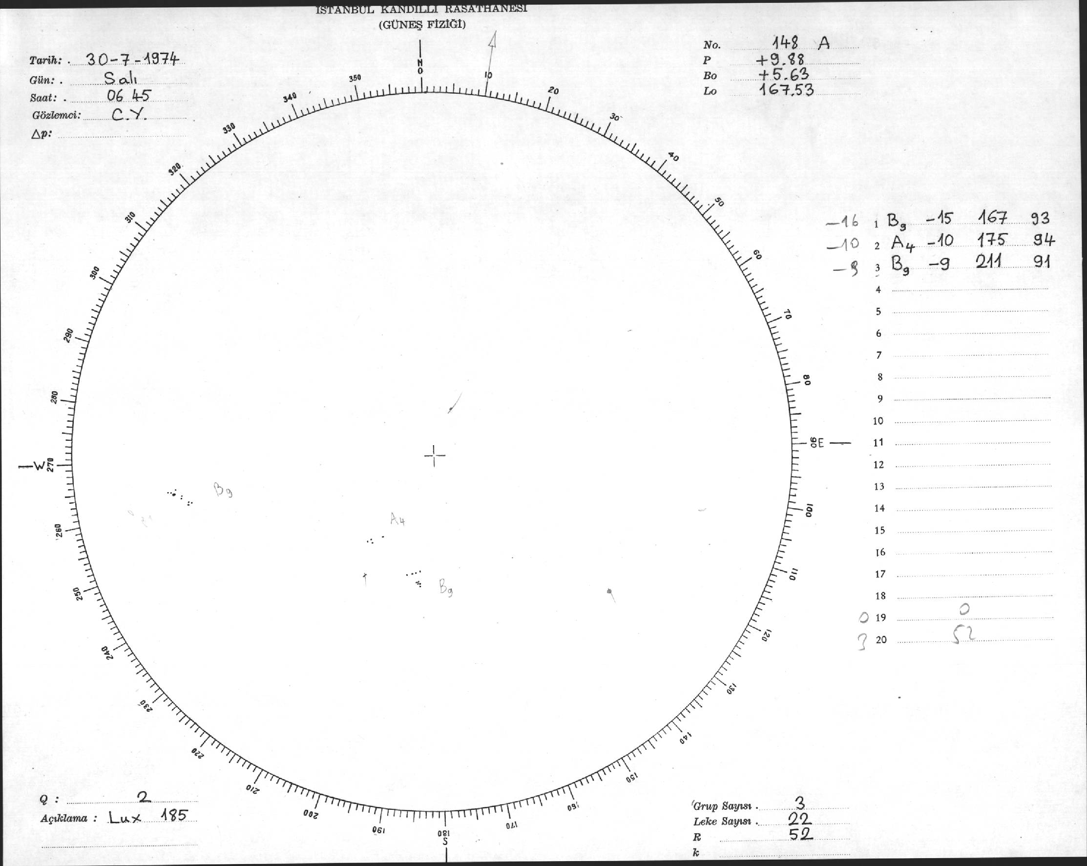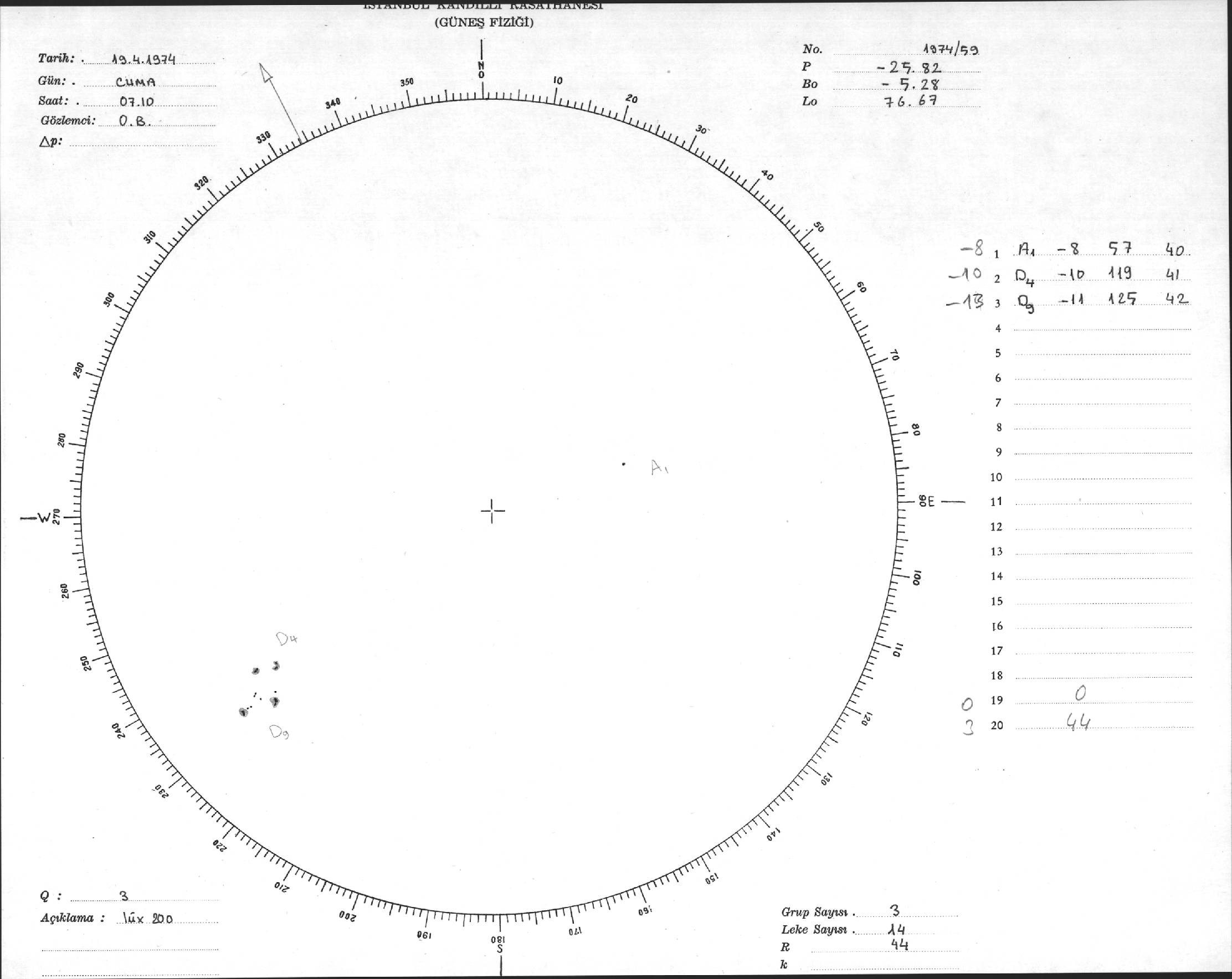Güneş Lekesi Çizimleri / Kandilli Sunspot Drawings