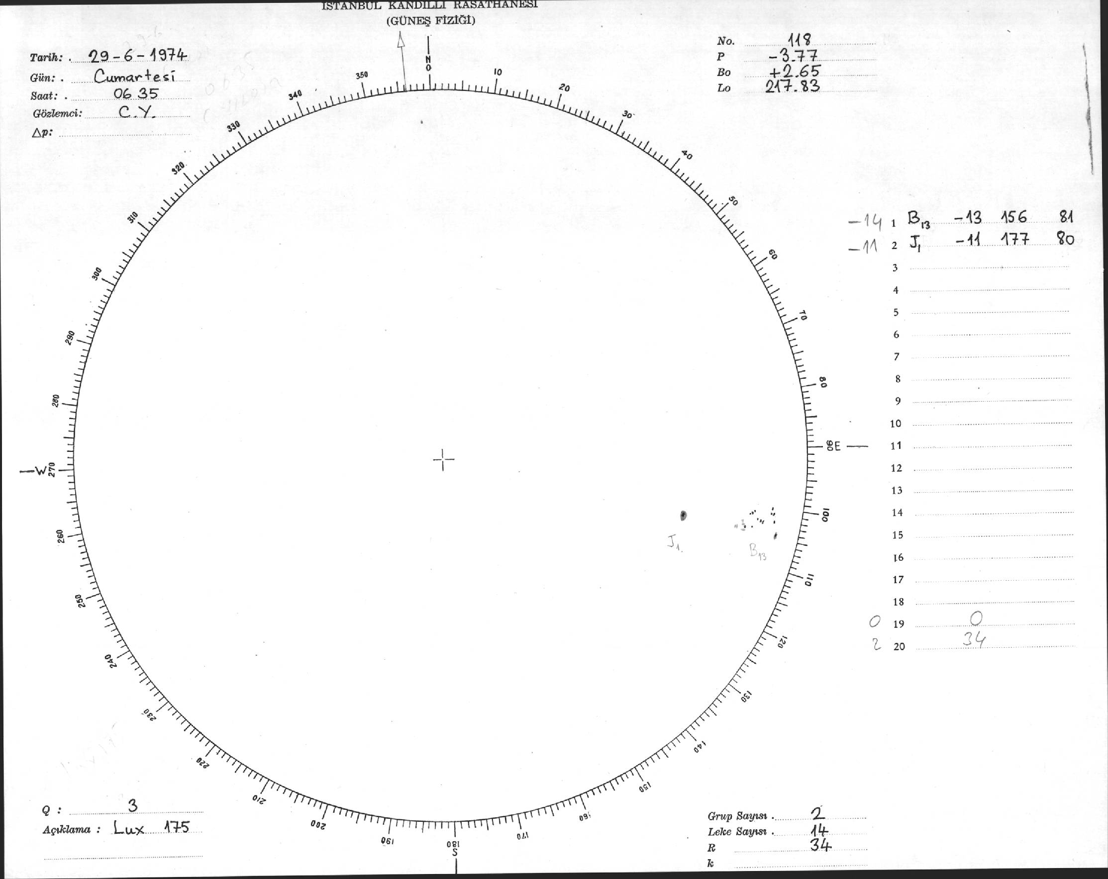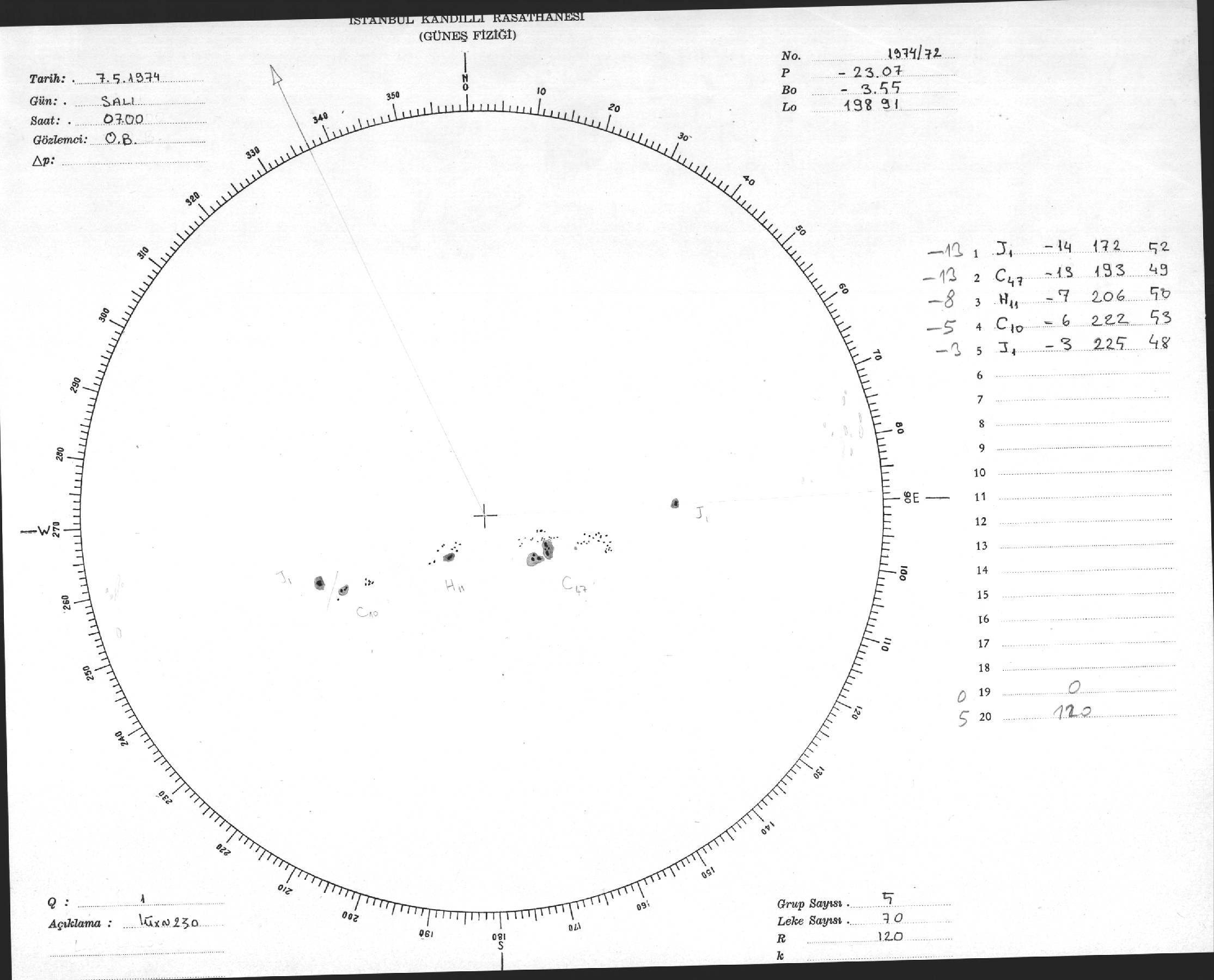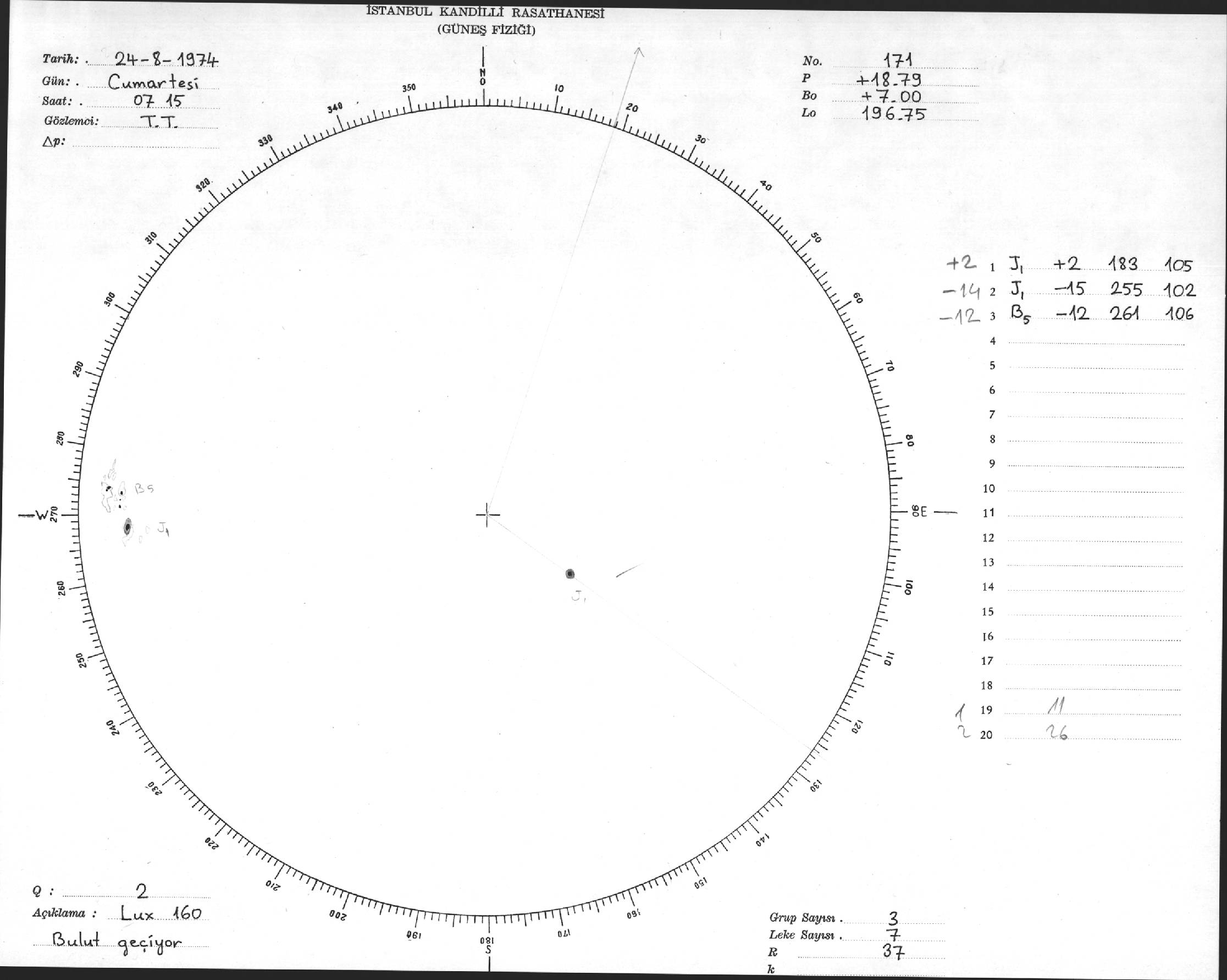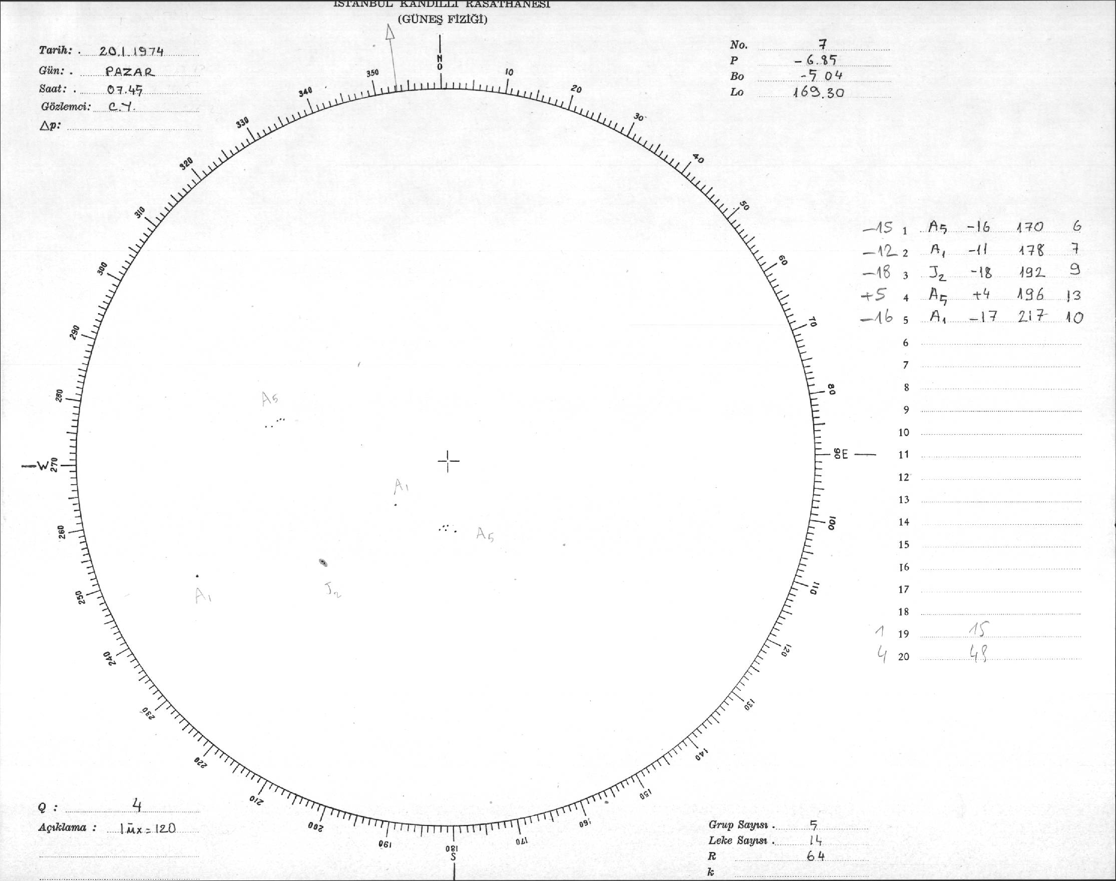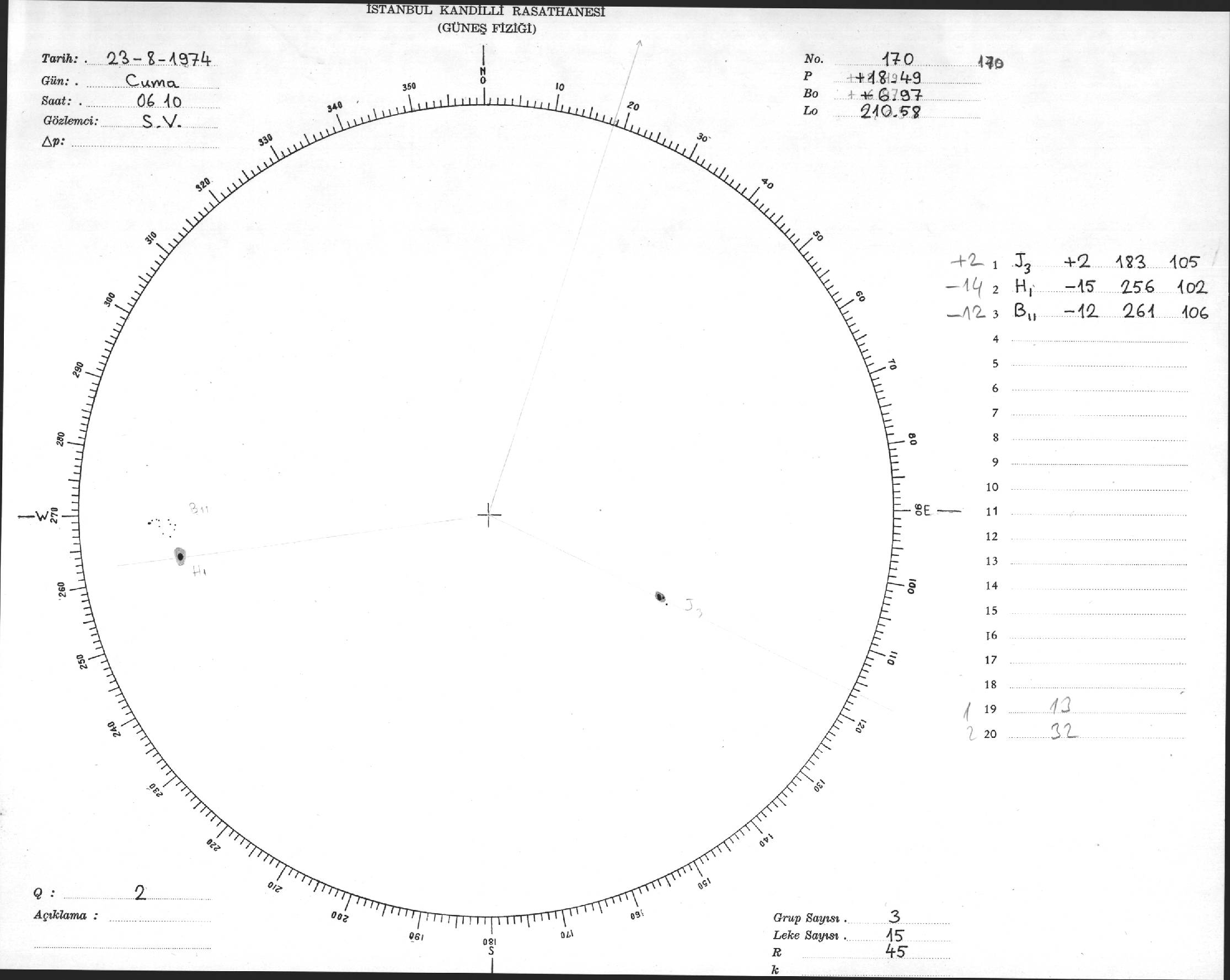 Güneş Lekesi Çizimleri / Kandilli Sunspot Drawings