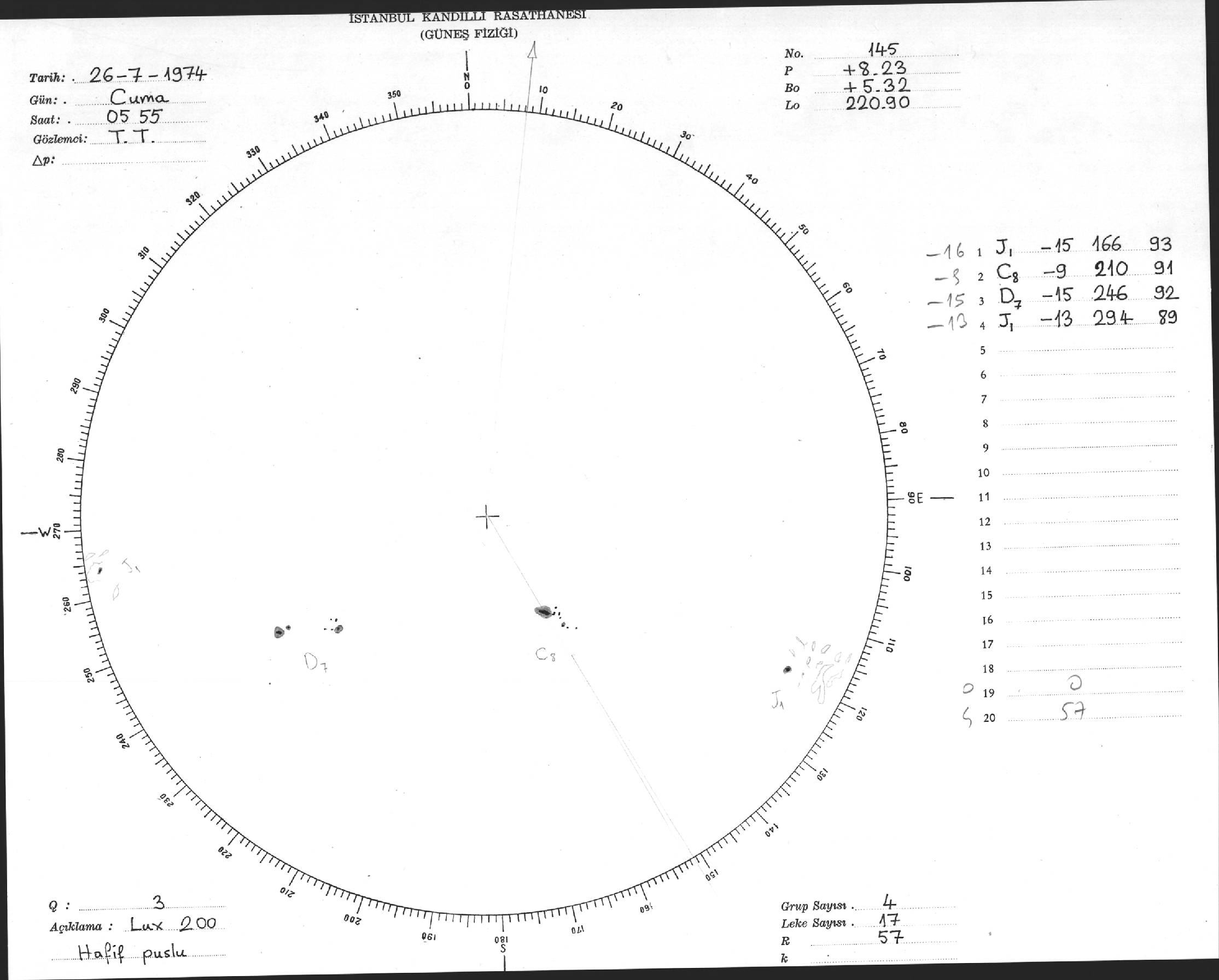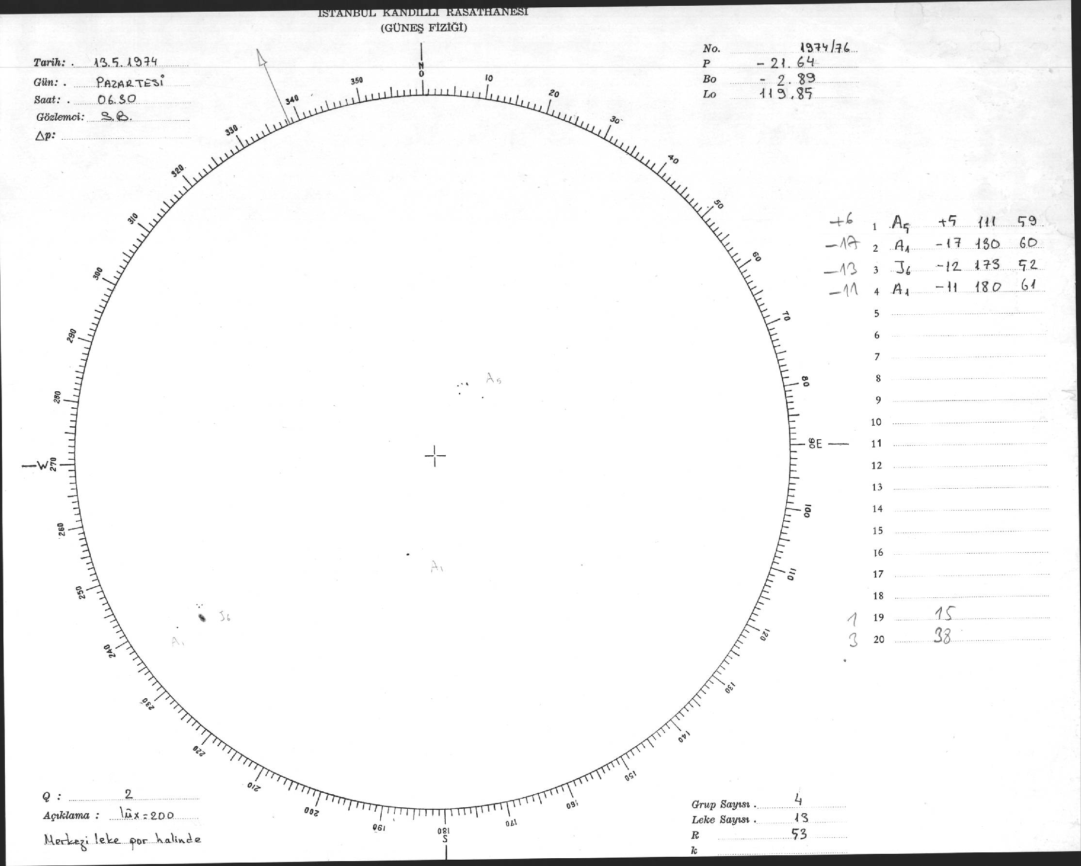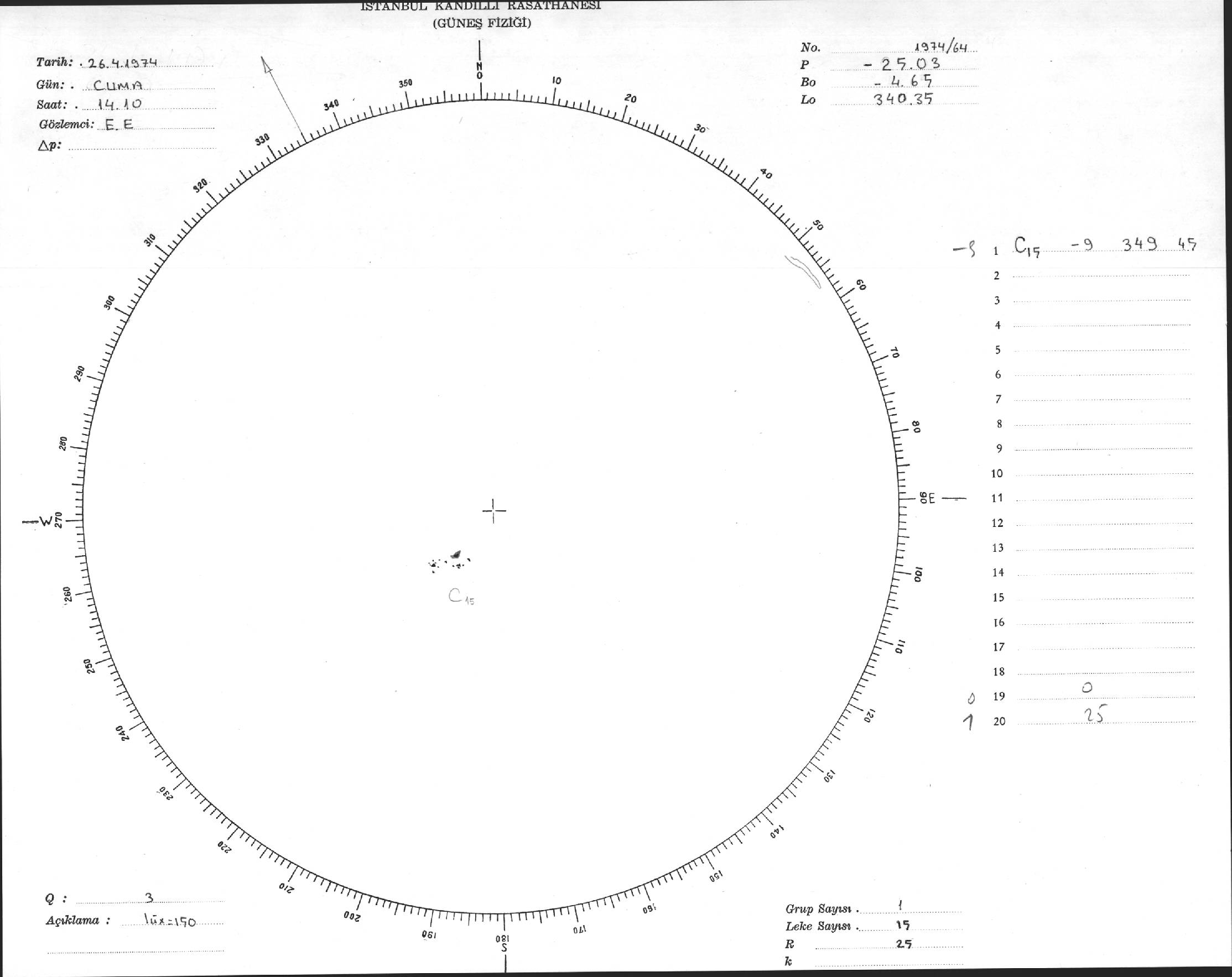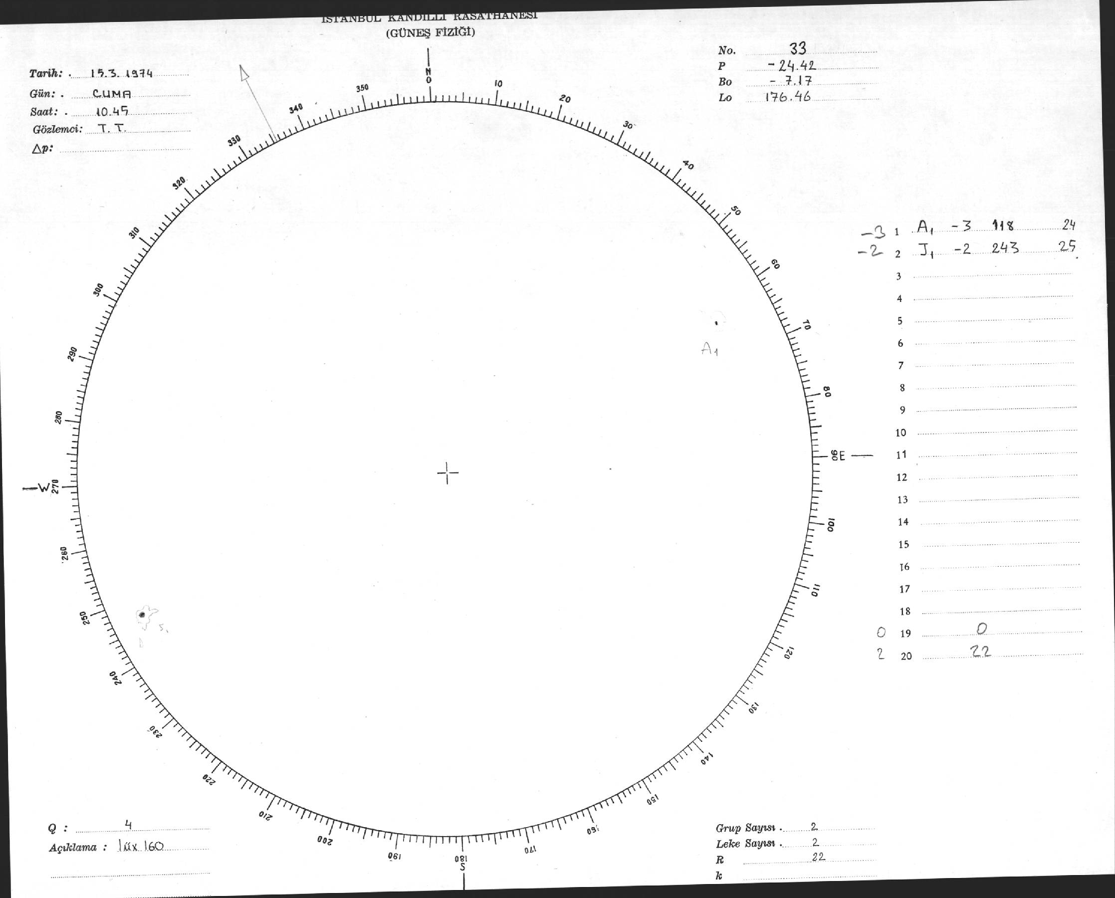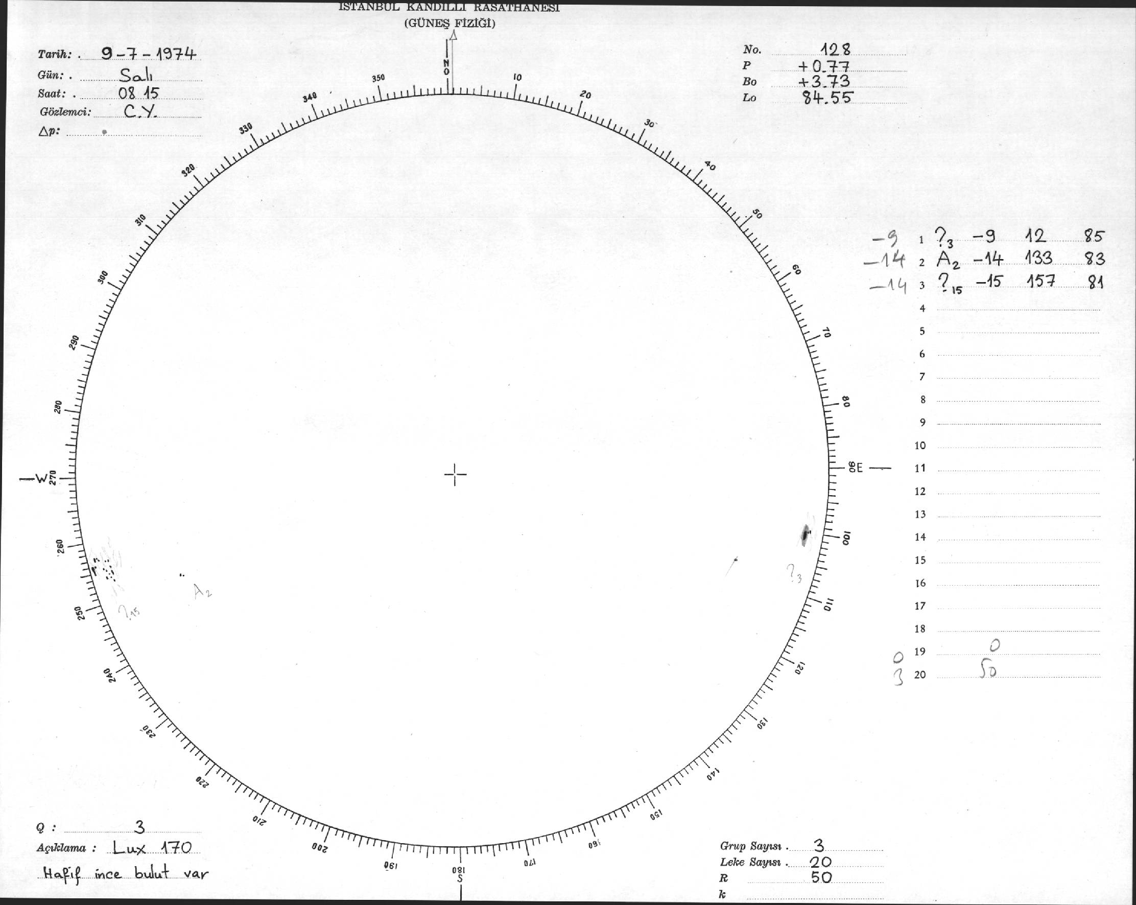 Güneş Lekesi Çizimleri / Kandilli Sunspot Drawings
